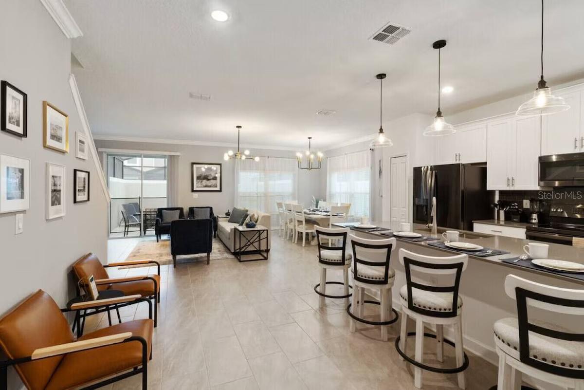 WELCOME TO THIS STUNNING WELL-THEMED FULLY FURNISHED VACATION HOME IN STOREY LAKE. IT WAS BUILT IN DECEMBER 2021, FULLY FURNISHED BY MID 2022. VERY WELL LOCATED AT THE HEART OF ORLANDO THAT OFFERS EASY ACCESS TO THE BEST ATTRACTIONS ORLANDO HAS TO OFFER!!! MINUTES TO WALT DISNEY WORLD, UNIVERSAL ORLANDO, SEAWORLD ORLANDO...IT'S ALSO CLOSE TO THE ORLANDO INTERNATIONAL AIRPORT AND IS SURROUNDED BY RESTAURANTS, POPULAR SHOPPING, AND GOLF COURSES. THISHOME FEATURES 5 BEDS AND 4 FULL BATHS, UPGRADED TILE AND CARPET THROUGHOUT THE HOME, QUARTZ COUNTERTOPS, STAINLESS STEEL APPLIANCES, AND AN OPEN FLOOR PLAN FIRST FLOOR THAT LEADS TO A COZY PRIVATE POOL. IT IS A GREAT OPPORTUNITY FOR INVESTORS WHO ARE LOOKING FOR AN IMMEDIATE CASH CAW INVESTMENT PROPERTY OR FAMILIES WHO WOULD LIKE TO HAVE A SECOND HOME IN ORLANDO. STOREY LAKE OFFERS ALL AMENITIES YOU COULD DREAM OF FOR YOUR VACATION: THE GORGEOUS RESORT-STYLE SWIMMING POOL, WATER PARK, LAZY RIVER, VOLLEYBALL COURT, MINI-GOLF... DON'T MISS OUT ON THIS OPPORTUNITY!!!