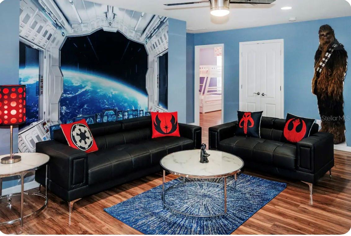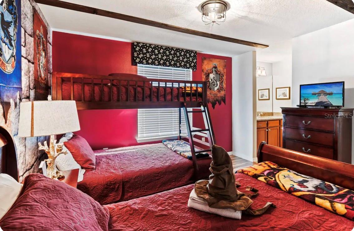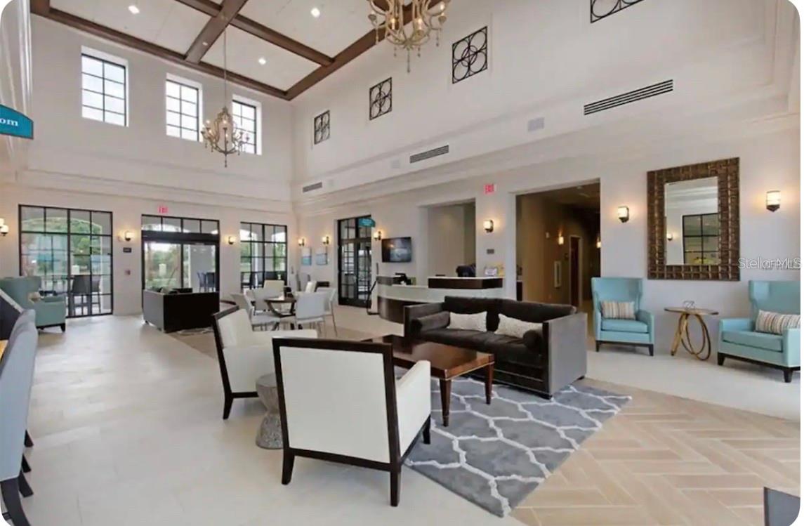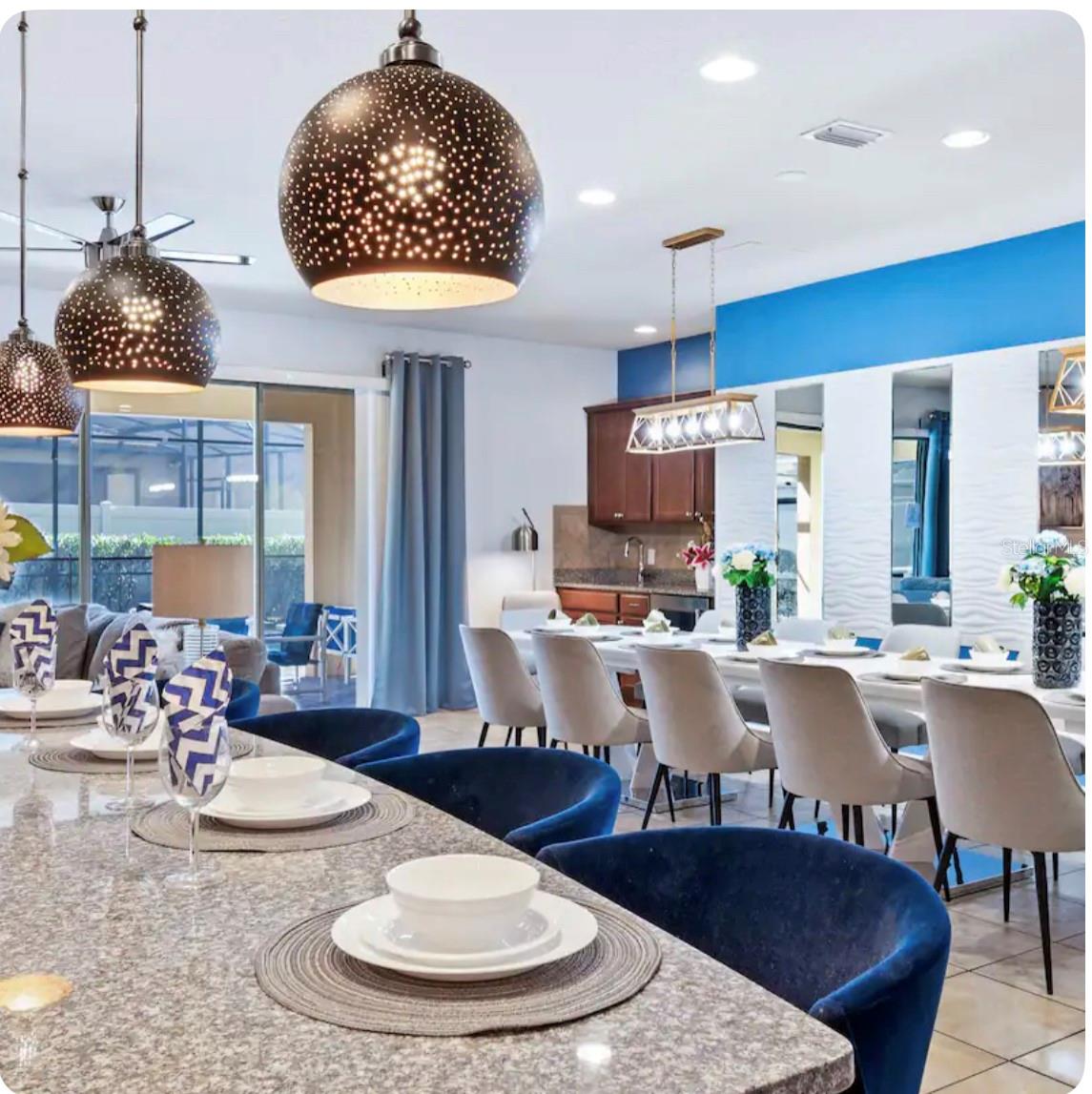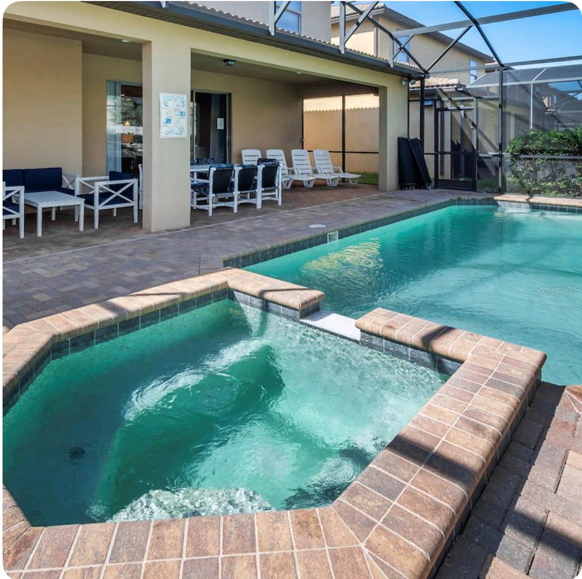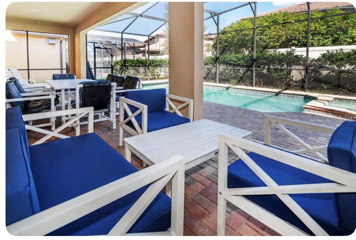 Discover the ultimate vacation retreat in the much sought after Windsor at Westside Resort with this stunning 9-bedroom, 6-bathroom home sits on one of the best lots in the community with views of the pond and the magnificent clubhouse! It is being sold fully furnished and features an expansive open floor plan designed for both relaxation and entertainment. The gourmet kitchen showcases light wood cabinets, stone countertops, stainless steel appliance and a generous breakfast bar that seamlessly connects to the living area, perfect for gatherings, while the spacious dining area is ideal for shared meals. Sliding glass doors lead to the heated pool with spa and covered lanai where you can relax in the afternoon sun or sit and enjoy a morning cup of coffee and watch the sun rise. The first-floor master bedroom provides a luxurious retreat and there is a second large bedroom on the first floor adjacent to a full bathroom. The second floor boasts a huge loft with a games room and wet bar as well as 7 more bedrooms. The home has a great rental history and has lots of future bookings that can be transferred to the new owner. Windsor at Westside is a premier gated community just minutes from Disney, offering top-notch amenities such as a resort-style clubhouse, heated pool and spa, lazy river, water playground, fitness center, on-site store, sand volleyball, tennis and basketball courts, a games room, and a restaurant and bar. With easy access to Disney World and Central Florida’s renowned attractions, this home is your perfect gateway to fun and relaxation!
