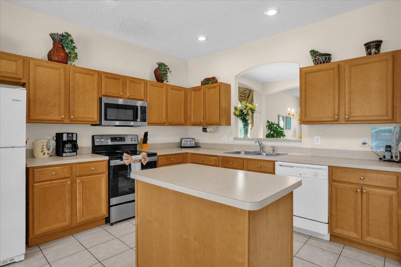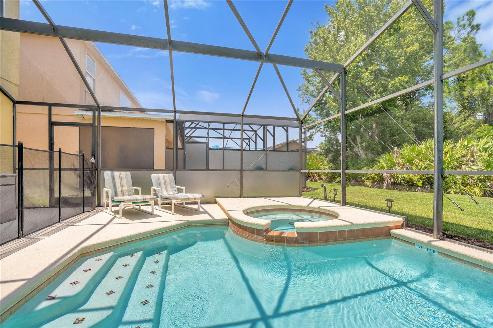 Stunningly Updated Home in Terra Verde – Space, Style, and Resort Living! Discover the ultimate combination of comfort, style, and convenience in this beautifully updated home, nestled in the heart of Orlando's attractions area. Perfect as a full-time residence or a spacious retreat, this property is designed to meet your every need with ease and elegance. Exceptional updates include: Exterior paint (2023) – fresh and modern curb appeal! New roof (2017) – offering peace of mind for years to come. Updated A/C (2022) – keeping you cool and comfortable. Recently resurfaced pool with a heater that’s less than 1 year old – your private oasis awaits! Step inside to a spacious and thoughtfully designed layout, starting with the main floor featuring open living and dining areas, a convenient half bath, a laundry room, and a luxurious primary suite. The heart of the home is the bright and inviting kitchen and family room, where two sets of sliding doors open to your private pool deck, seamlessly blending indoor and outdoor living. The kitchen is a chef’s dream, boasting ample counter and cabinet space, large and small appliances, and enough room to gather and entertain. The primary suite on the main floor is a tranquil retreat, complete with an ensuite bath featuring a soaker tub, separate shower, and a generous walk-in closet. Upstairs, you’ll find five additional bedrooms, including three private suites with their own baths, offering incredible flexibility for family, guests, or even a dedicated office space. The spacious 2-car garage has been transformed into a fun gaming area with extra storage, adding another layer of versatility to this home. Outdoor living shines with a private screened pool and spa, a spacious patio, and the added bonus of no rear neighbors – the perfect setting for relaxation or hosting unforgettable gatherings. The Terra Verde community offers world-class resort-style amenities, including a game room, fitness center, sparkling pool, bar and grill, playground, basketball court, beach volleyball, tennis, and more. With HOA fees that include cable, internet, Wi-Fi, and lawn care, you’ll enjoy a maintenance-free lifestyle in a vibrant, secure gated community. Conveniently located just minutes from shopping, dining, and Orlando’s iconic theme parks, this home delivers the perfect mix of tranquility and accessibility. Schedule your tour today and experience the magic of this exceptional property firsthand – your dream home awaits!