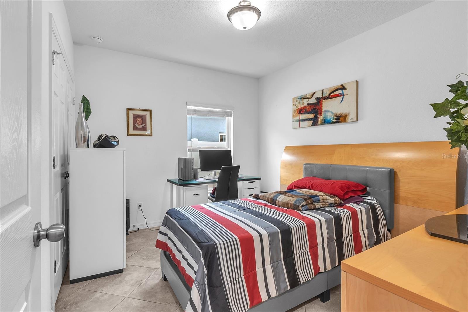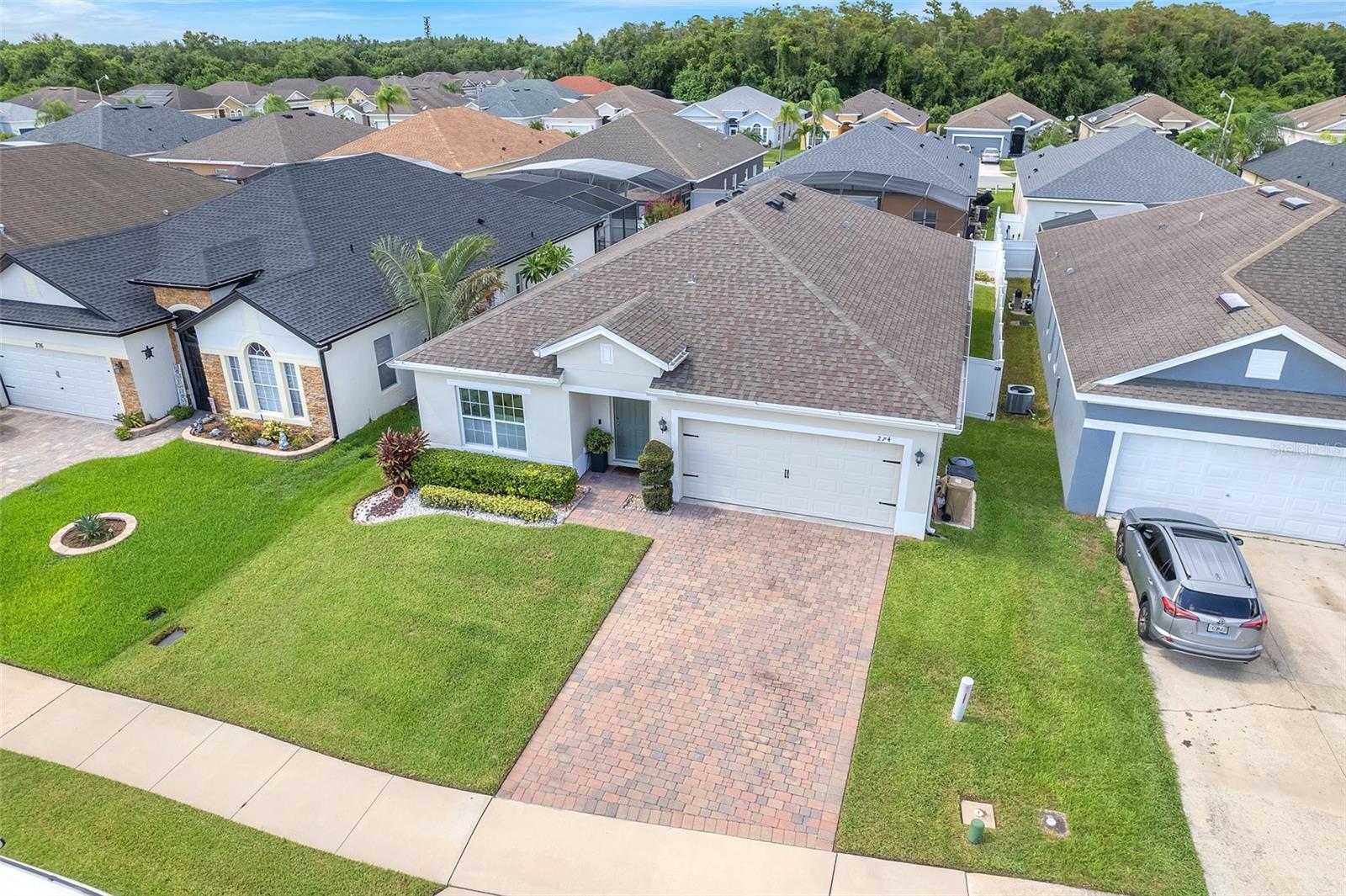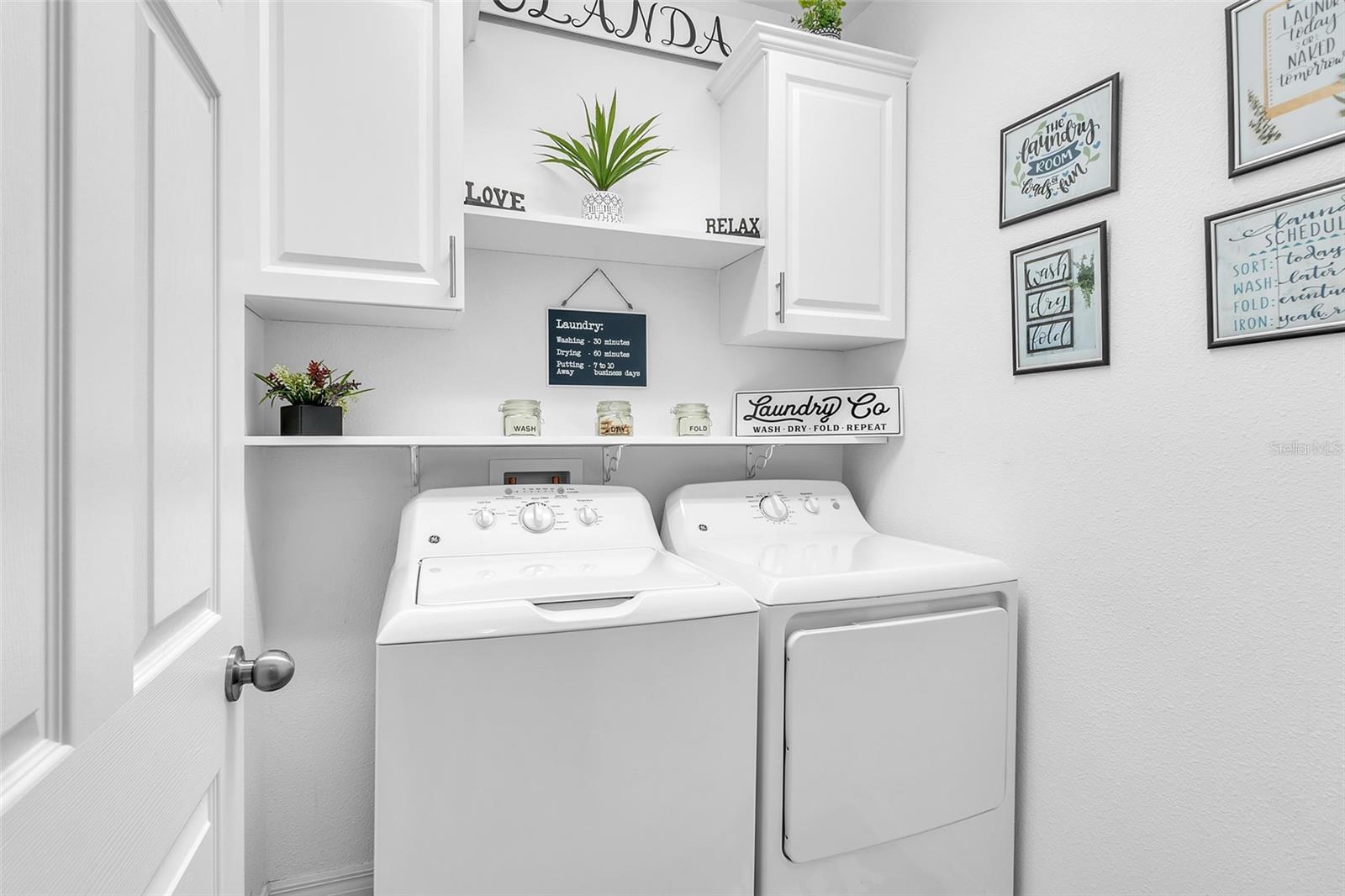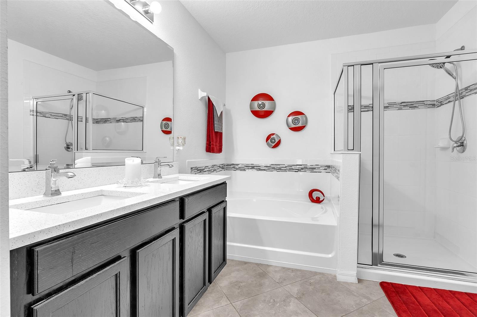 Discover luxury and comfort in this beautifully designed 4-bedroom, 2-bathroom home nestled in the sought-after gated community of Magic Landings. With 1,987 square feet of living space, this home boasts an array of exquisite features and thoughtful upgrades, making it a true gem. As you enter, you'll be greeted by a formal living room and dining room adorned with elegant illusion lamps and stylish curtains, creating a warm and inviting ambiance. The entire home is floored with modern gray 19 x 19 tiles, adding a sleek and contemporary touch throughout. The spacious kitchen is a chef’s dream, featuring granite countertops, large cabinets with crown moldings, a glass slab backsplash, and a beautifully designed tile accent behind the sink to keep the lower cabinets pristine. The sink is equipped with a large Delta faucet, perfect for all your kitchen needs. The informal dining area opens up to a family room, where you'll find a TV wall enhanced with decorative fascia, tiles, and color-changing LED lights—ideal for cozy movie nights. The master bedroom is a serene retreat, complete with a lamp fascia and illusion curtains that add a touch of luxury. The master bathroom offers a spa-like experience with a tiled tub and shower featuring a decorative strip, double quartz sinks, and a private toilet area. The walk-in closet provides ample storage for all your wardrobe essentials. The guest bathroom also features a quartz countertop, maintaining the home's consistent elegance. The laundry room is both functional and stylish, decorated and equipped with cabinets for extra storage. The electric sliding door leads to a fully enclosed porch, perfect for enjoying the outdoors in comfort and privacy. The home is completely fenced, offering added security and peace of mind. The two-car garage is not only spacious but also features custom closets and a cement floor, providing both utility and style. Built in 2017, this immaculate home is move-in ready and the furniture is negotiable. Located close to shopping, dining, and entertainment, and with easy access to major highways connecting you to Orlando and Central Florida, this home is perfectly positioned for convenience. Don’t miss your chance to own this exceptional property—schedule a showing today!