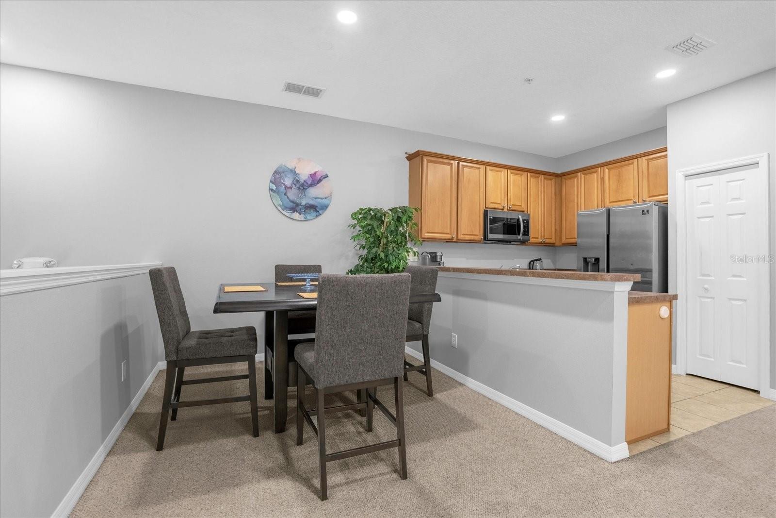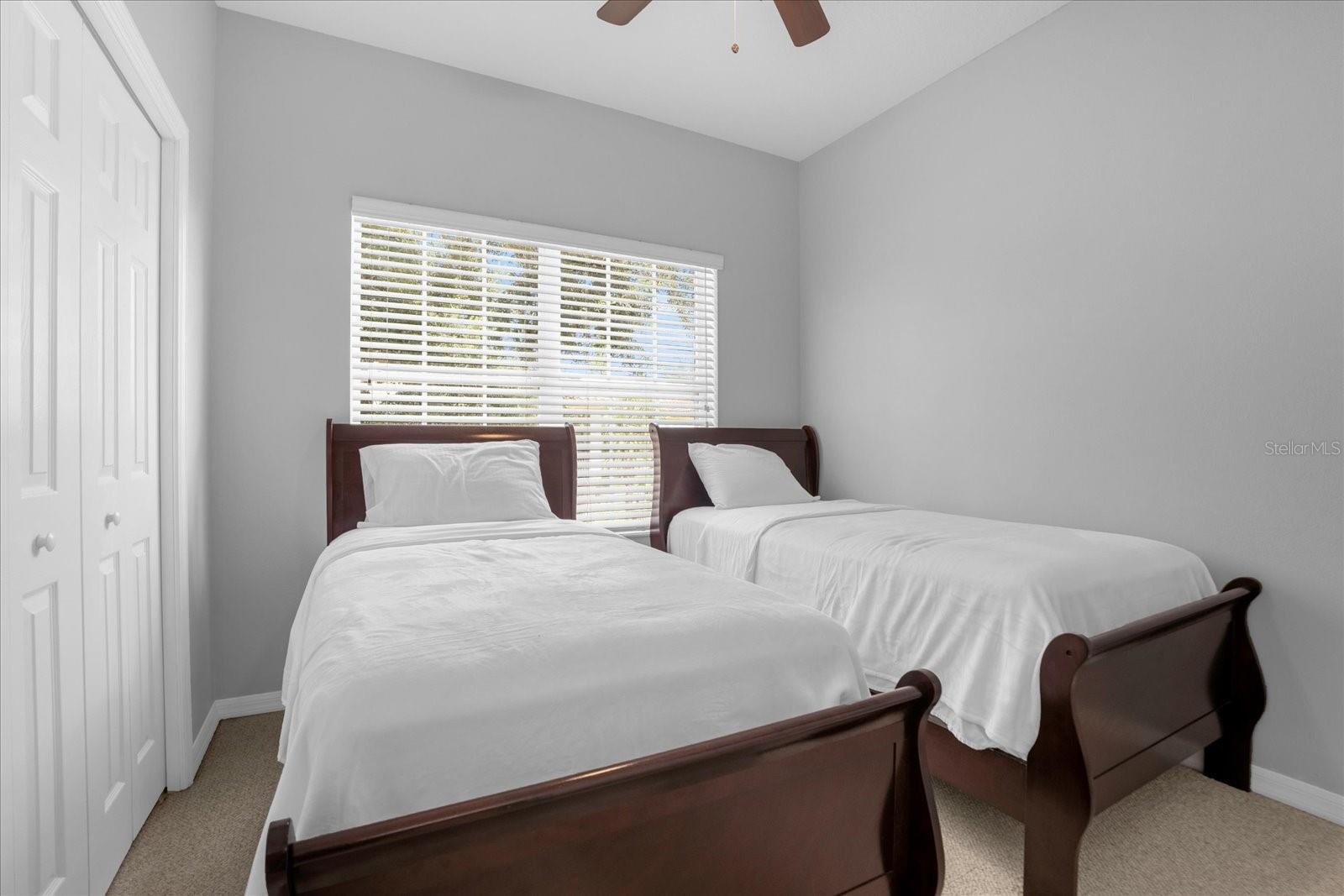 Only 1.5 MILES FROM DISNEY! This stunning 2-bedroom, 2-bathroom townhome sits in a resort-style community offering a lagoon-style pool with serene lake views, tennis and volleyball courts, a fitness center, playground, and clubhouse. Inside, you'll find a spacious living and dining area, plus a cozy breakfast bar for extra seating. Fully furnished - new light fixtures and ceiling fans, new interior paint and upgraded bathroom vanities. Step outside to your screened-in covered patio, perfect for relaxing. The home also features a one-car attached garage with an electric door opener for added privacy and security. Ideally located near Kissimmee's top attractions, you’re practically at Disney’s doorstep! With outlet malls just 15-20 minutes away and Orlando International Airport a quick 25-minute drive, this could be the investment opportunity you’ve been searching for!