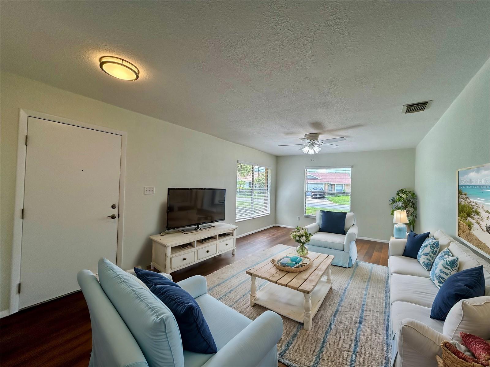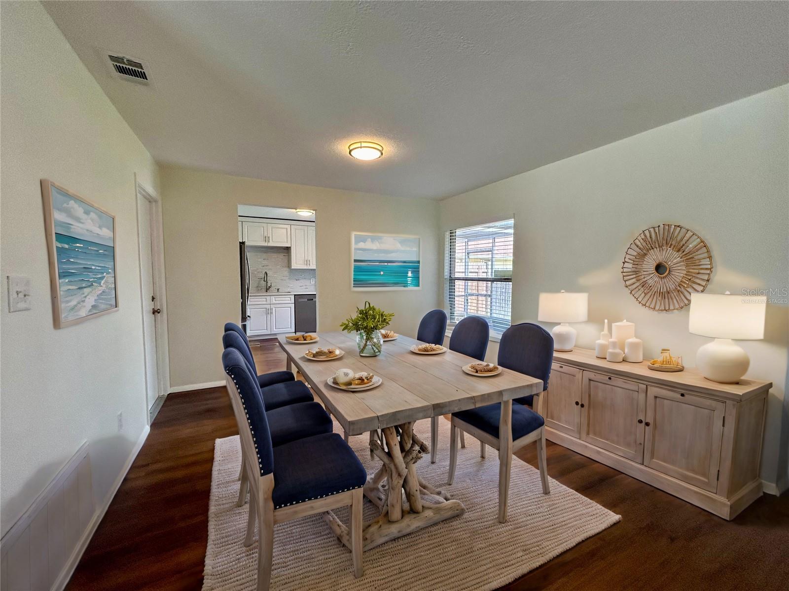 One or more photo(s) has been virtually staged.*Reduced!* Move-in ready! Beautifully updated home with a large fenced backyard in one of the most accessible areas of Kissimmee. The updated features include brand new kitchen with cabinets, granite counters, stainless appliances, new bath vanities and fixtures, new luxury vinyl plank flooring throughout, new knockdown ceiling and light fixtures, new paint, new window treatments and new screens in the lanai. New roof in 2021. Indian Wells has a voluntary HOA with a $100.00 annual membership (See http://indianwells-hoa.com/ for details). The community features pool, tennis court, basketball court, succor field and playground. Conveniently located with easy access to shops and restaurants, Disney and surrounding resorts, I-4, 417-Greenway, Osceola Pkwy and more! Excellent opportunity for anyone looking for a primary home, a second home for the winter, a short-term rental or a long-term rental.