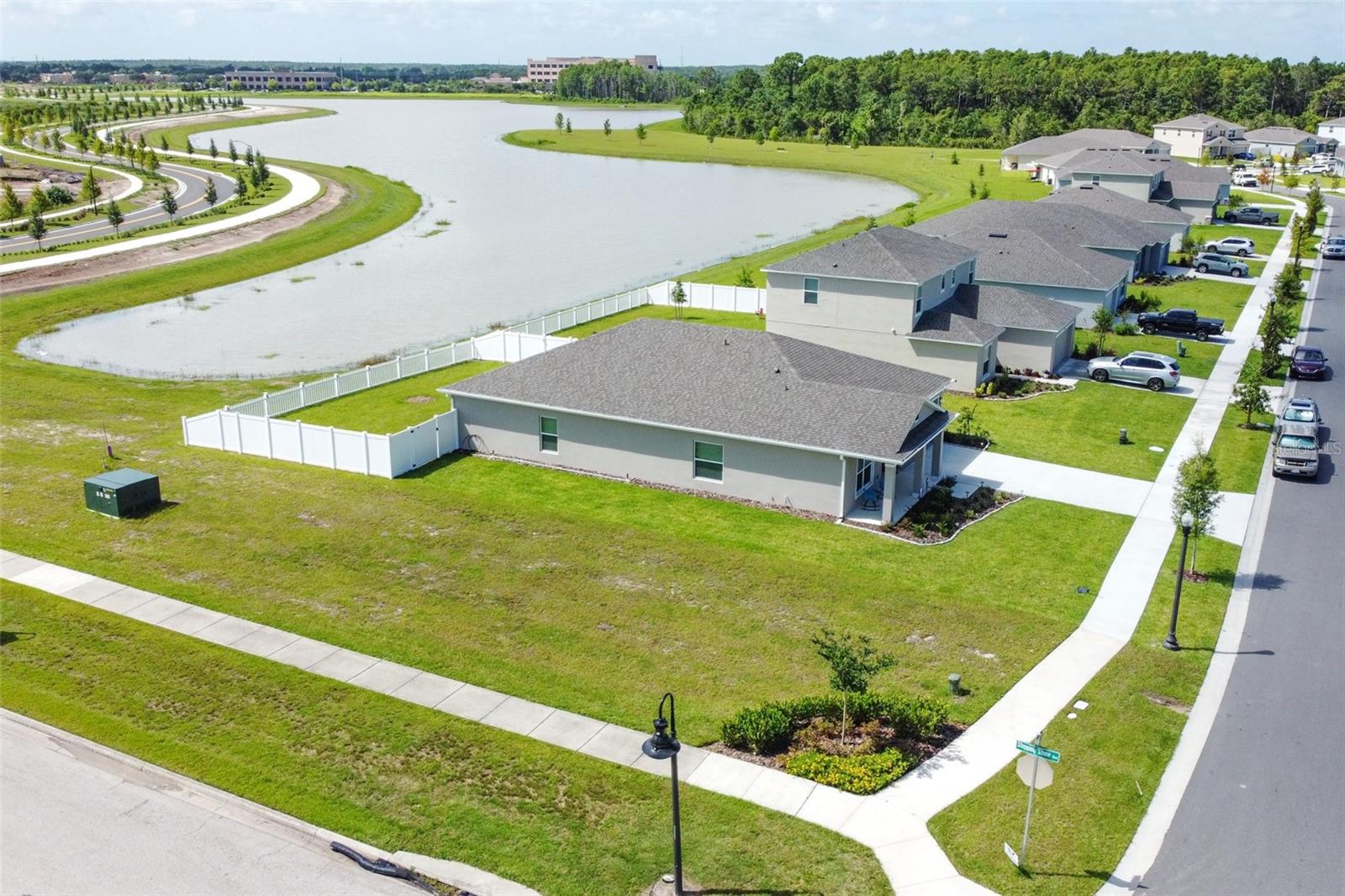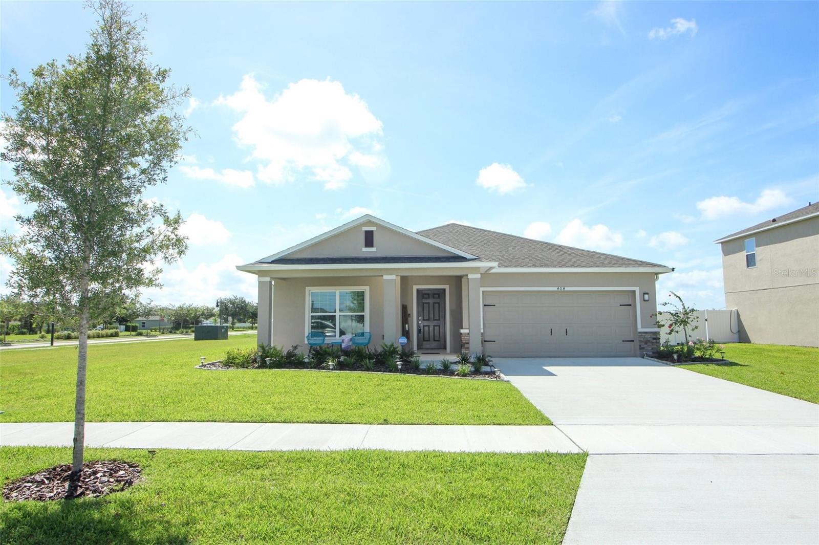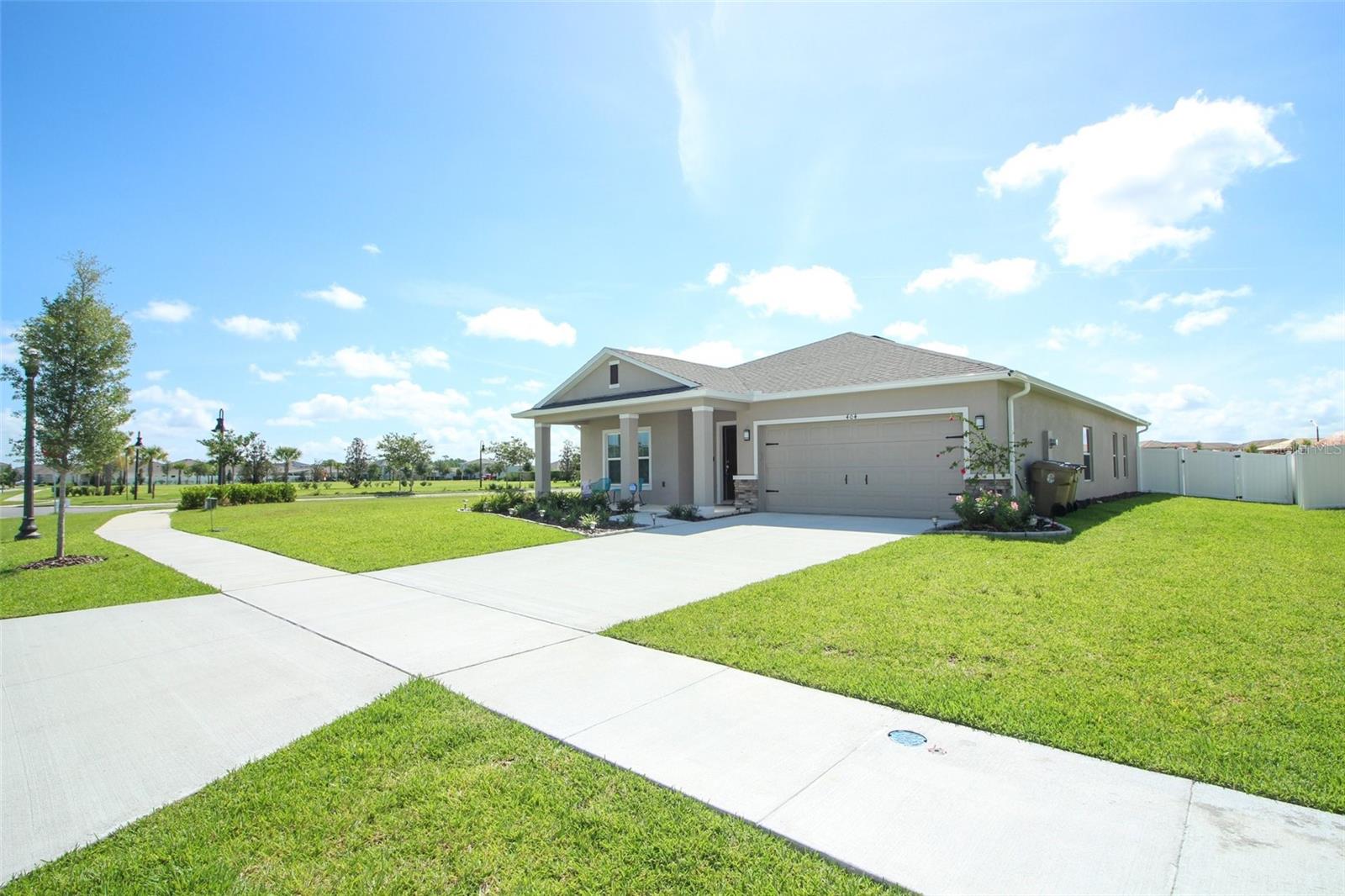 This home shows like a MODEL! Home was built in 2022, and sits on a huge corner lot. You will be blown away the minute you walk into this 4 bedrooms 2 bath home. AMAZING curb appeal, & Front Porch seating area! Home may or may not be sold FULLY FURNISHED! This Bright & Open floor plan includes gorgeous tile flooring, Formal living & dining room! Kitchen is completely updated with quartz counter-tops, lots of prepping space, large wood cabinets, back-splash, stainless-steel appliances, Hands-Free Kitchen faucet & under counter water filter, & huge breakfast bar area! Family room is Open to the kitchen which makes it inviting for family gatherings. Home includes a Touch screen AC thermostat with Wi-fi with MERV 13 air filter & security system. The sliding doors open to the HUGE Fenced in yard with plenty of space for a pool, which was just installed about a month ago, censored solar lights, side vinyl fencing, and a picket fence allows for stunning views of the POND! This is a SPLIT PLAN model, master suite is spacious, master bath includes his and hers sink, updated shower with water filtered shower head, an ultraviolet light Anti- bacterial fan in both bath bathrooms, and plenty of closet space. Indoor laundry room includes, Steel Smart front-load washer and dryer with a protection plan in place till 2025. ALL 4 bedrooms have LED lights. HOA includes a Playground area, Spectrum Tv platinum package which includes 2 Receivers & 1 Digital recorder (DVR), AND the Internet ULTRA package 500MPSx20Mbps with in home WIFI equipment! Exterior Gutters have also been recently installed! This home is a COMPLETE turnkey! call us today for a private tour!
