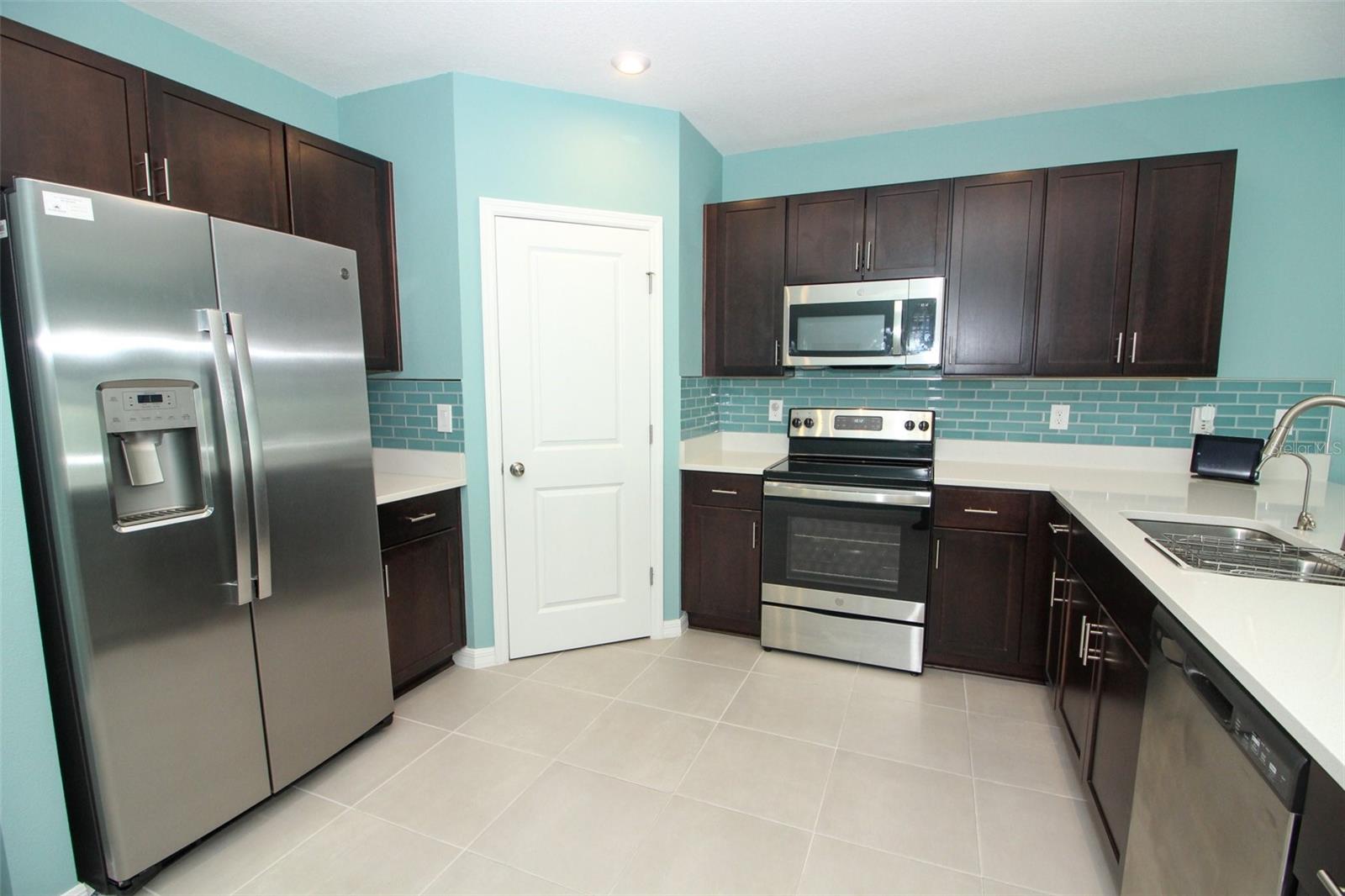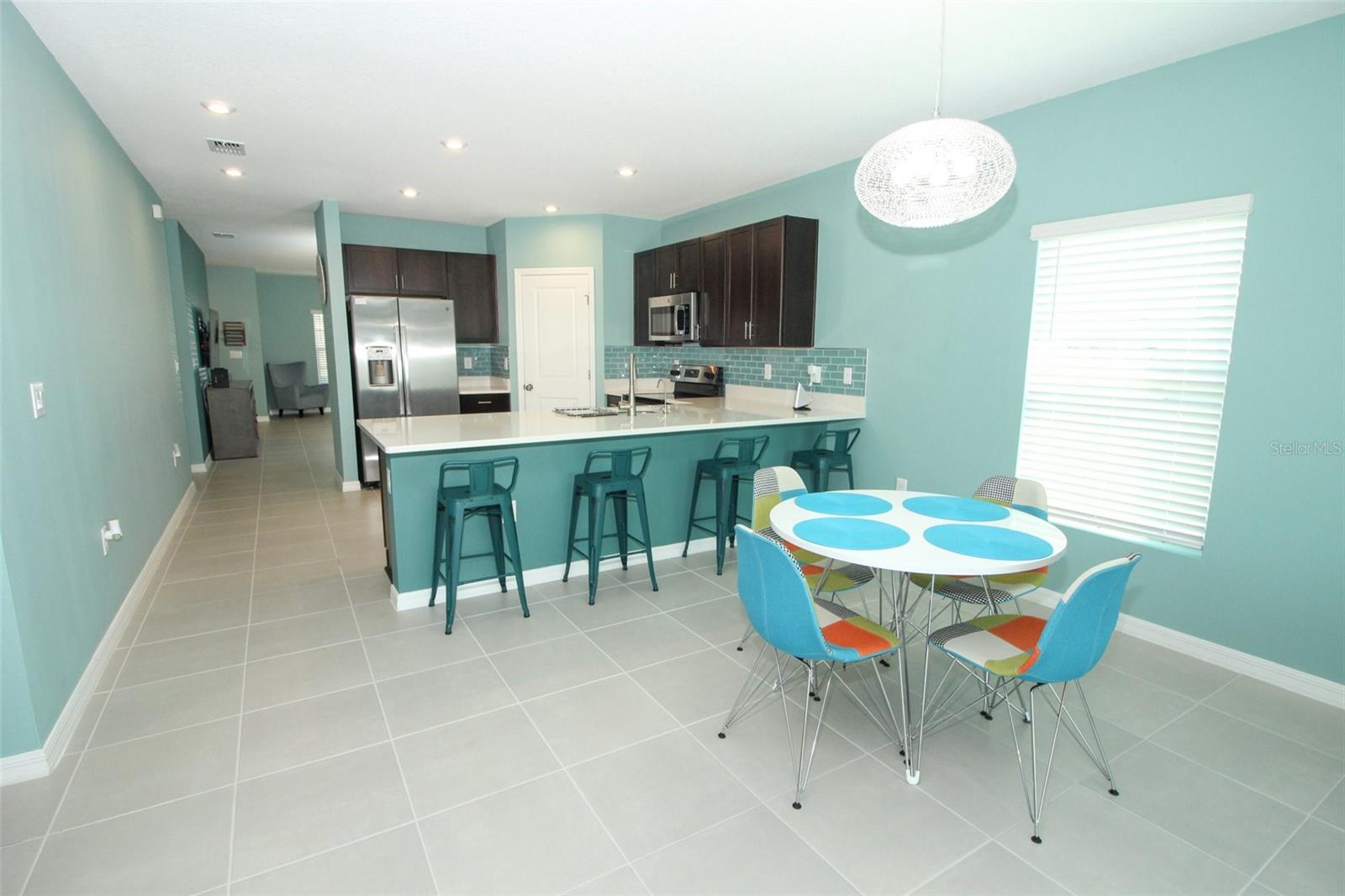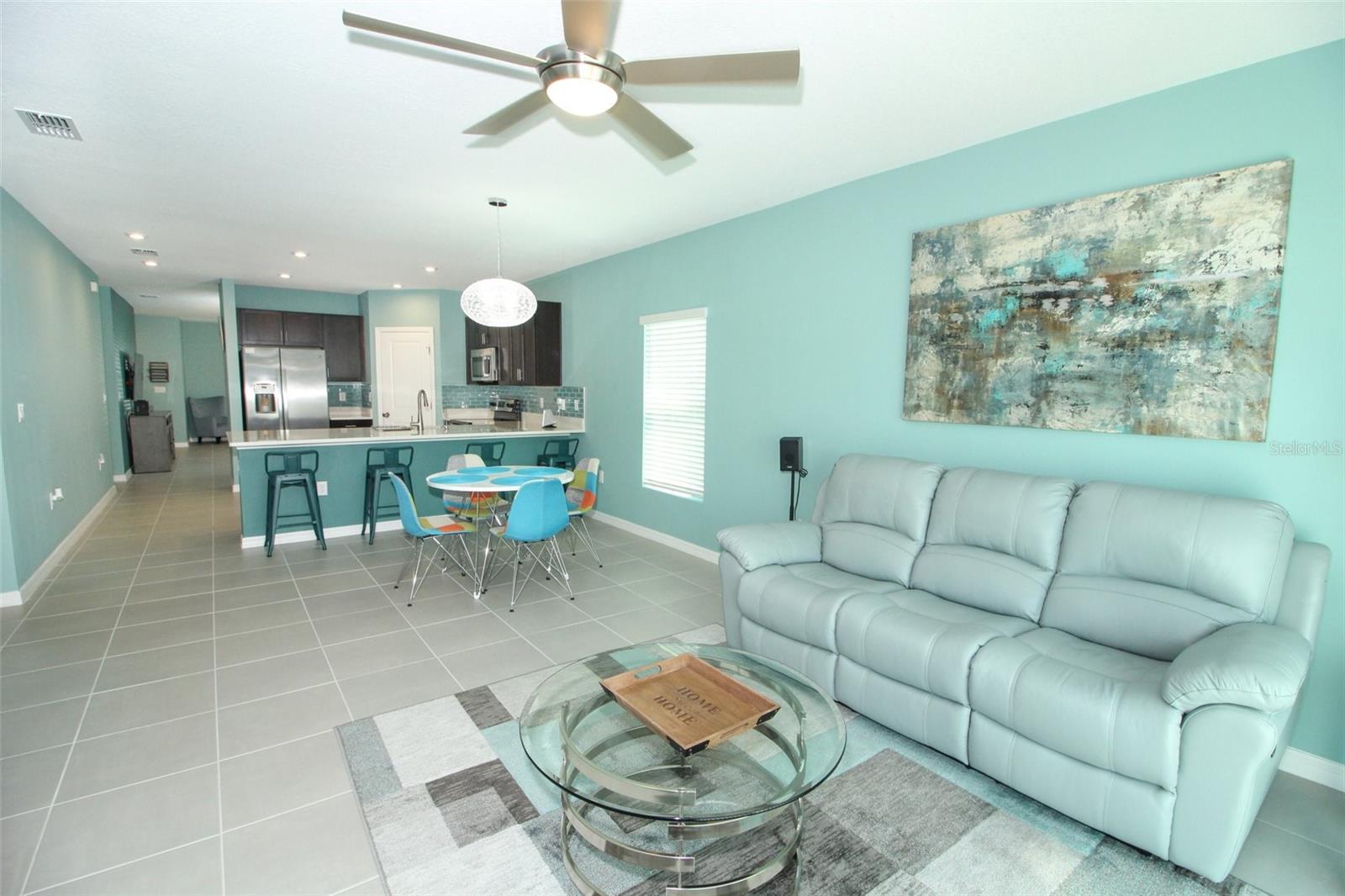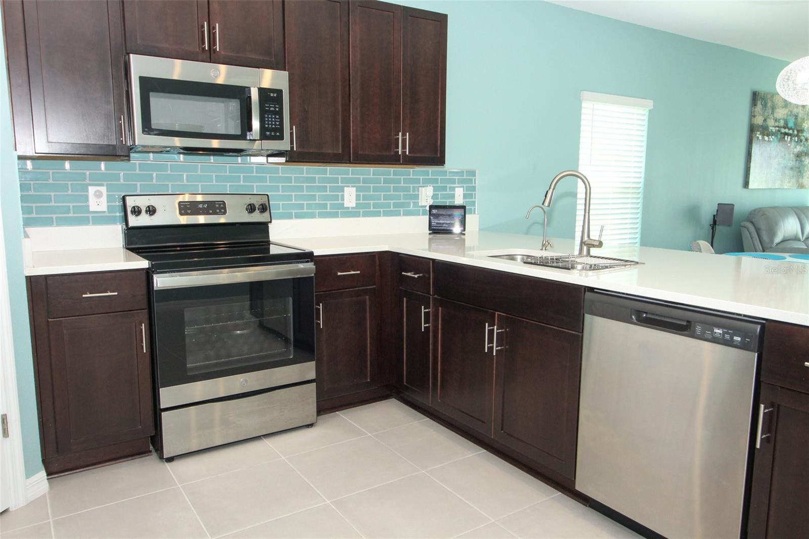 This home shows like a MODEL! Home was built in 2022, and sits on a huge corner lot. You will be blown away the minute you walk into this 4 bedrooms 2 bath home. AMAZING curb appeal, & Front Porch seating area! Home may or may not be sold FULLY FURNISHED! This Bright & Open floor plan includes gorgeous tile flooring, Formal living & dining room! Kitchen is completely updated with quartz counter-tops, lots of prepping space, large wood cabinets, back-splash, stainless-steel appliances, Hands-Free Kitchen faucet & under counter water filter, & huge breakfast bar area! Family room is Open to the kitchen which makes it inviting for family gatherings. Home includes a Touch screen AC thermostat with Wi-fi with MERV 13 air filter & security system. The sliding doors open to the HUGE Fenced in yard with plenty of space for a pool, which was just installed about a month ago, censored solar lights, side vinyl fencing, and a picket fence allows for stunning views of the POND! This is a SPLIT PLAN model, master suite is spacious, master bath includes his and hers sink, updated shower with water filtered shower head, an ultraviolet light Anti- bacterial fan in both bath bathrooms, and plenty of closet space. Indoor laundry room includes, Steel Smart front-load washer and dryer with a protection plan in place till 2025. ALL 4 bedrooms have LED lights. HOA includes a Playground area, Spectrum Tv platinum package which includes 2 Receivers & 1 Digital recorder (DVR), AND the Internet ULTRA package 500MPSx20Mbps with in home WIFI equipment! Exterior Gutters have also been recently installed! This home is a COMPLETE turnkey! call us today for a private tour!