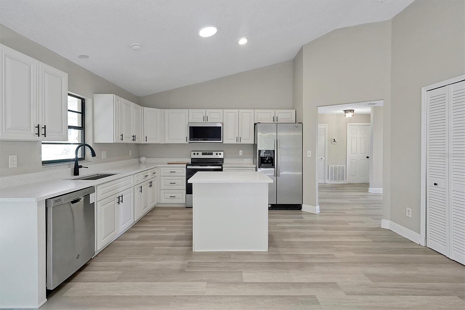 Welcome to this meticulously renovated 4-bedroom, 2-bathroom home that perfectly blends modern living. Step inside to discover a spacious open-concept floor plan accentuated by abundant natural light, stylish finishes, and fresh paint throughout. The heart of the home is the living area, seamlessly flowing into the kitchen. Featuring new countertops, stainless steel appliances, and ample cabinetry, this kitchen is designed for both functionality and elegance. The primary suite offers a tranquil retreat, complete with an ensuite bathroom featuring contemporary fixtures and beautiful tile work. Three additional generously-sized bedrooms provide plenty of space for family and guests, or make for a perfect home office or workout room. One of the standout features of this home is the incredible bonus room, which can be utilized as a playroom, media room, or guest space, allowing for endless possibilities to suit your lifestyle. Step outside to the spectacular screened-in pool, measuring a generous 364 sq ft, where you can relax and unwind while enjoying the Florida sunshine in a private, serene setting. This outdoor space is perfect for entertaining, featuring a spacious patio area that is ideal for gatherings, barbecues, or simply soaking up the sun. Situated in a welcoming neighborhood with convenient access to local amenities, schools, and parks, this remarkable home offers both comfort and convenience. Don’t miss your chance to experience this one-of-a-kind property! Schedule your private tour today!