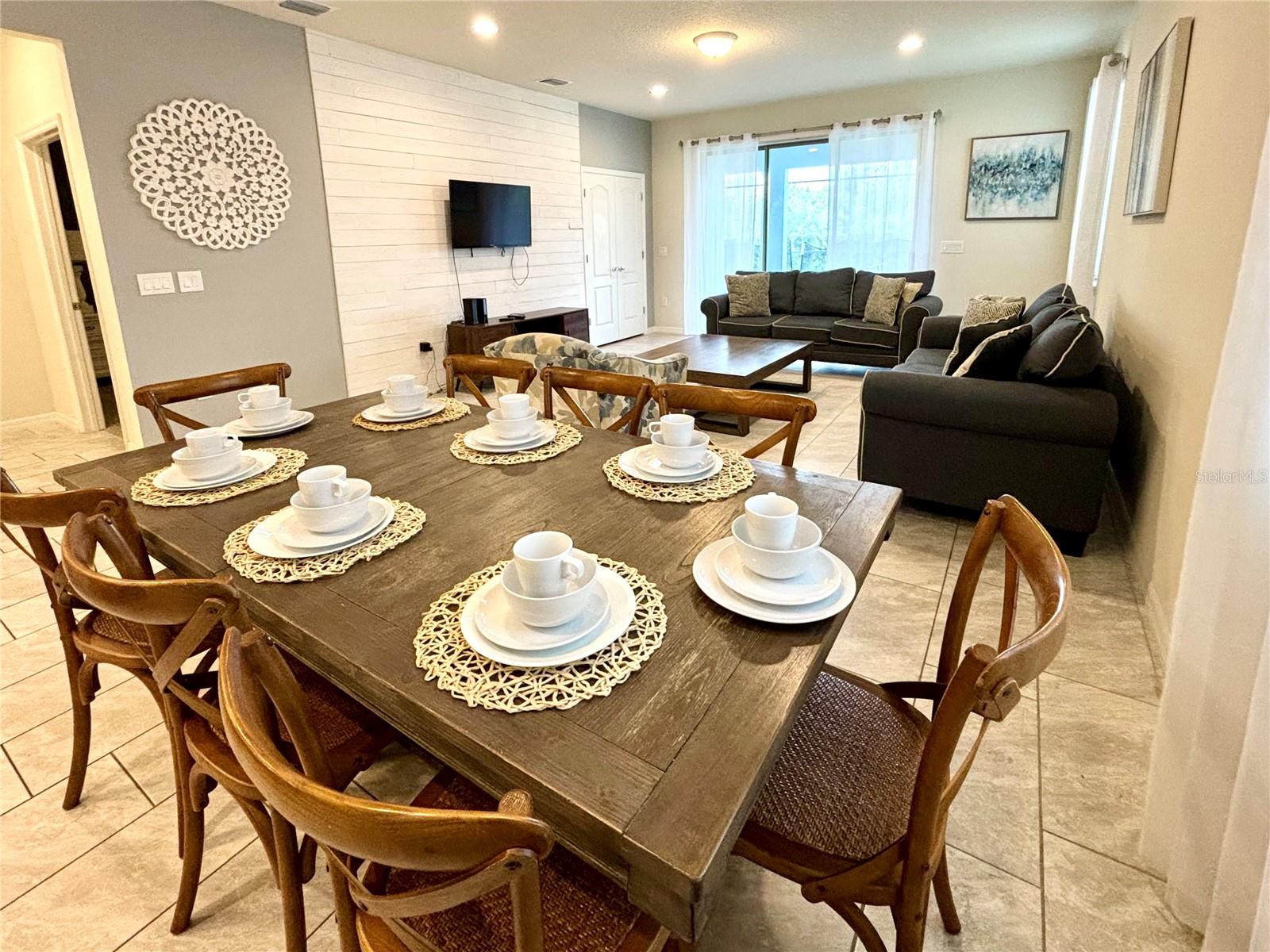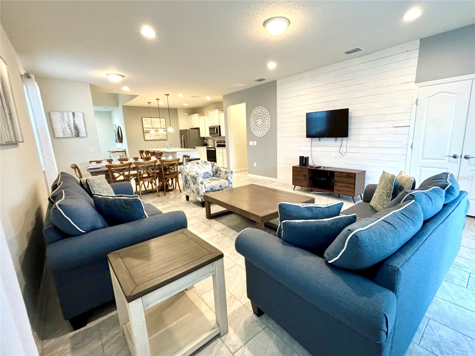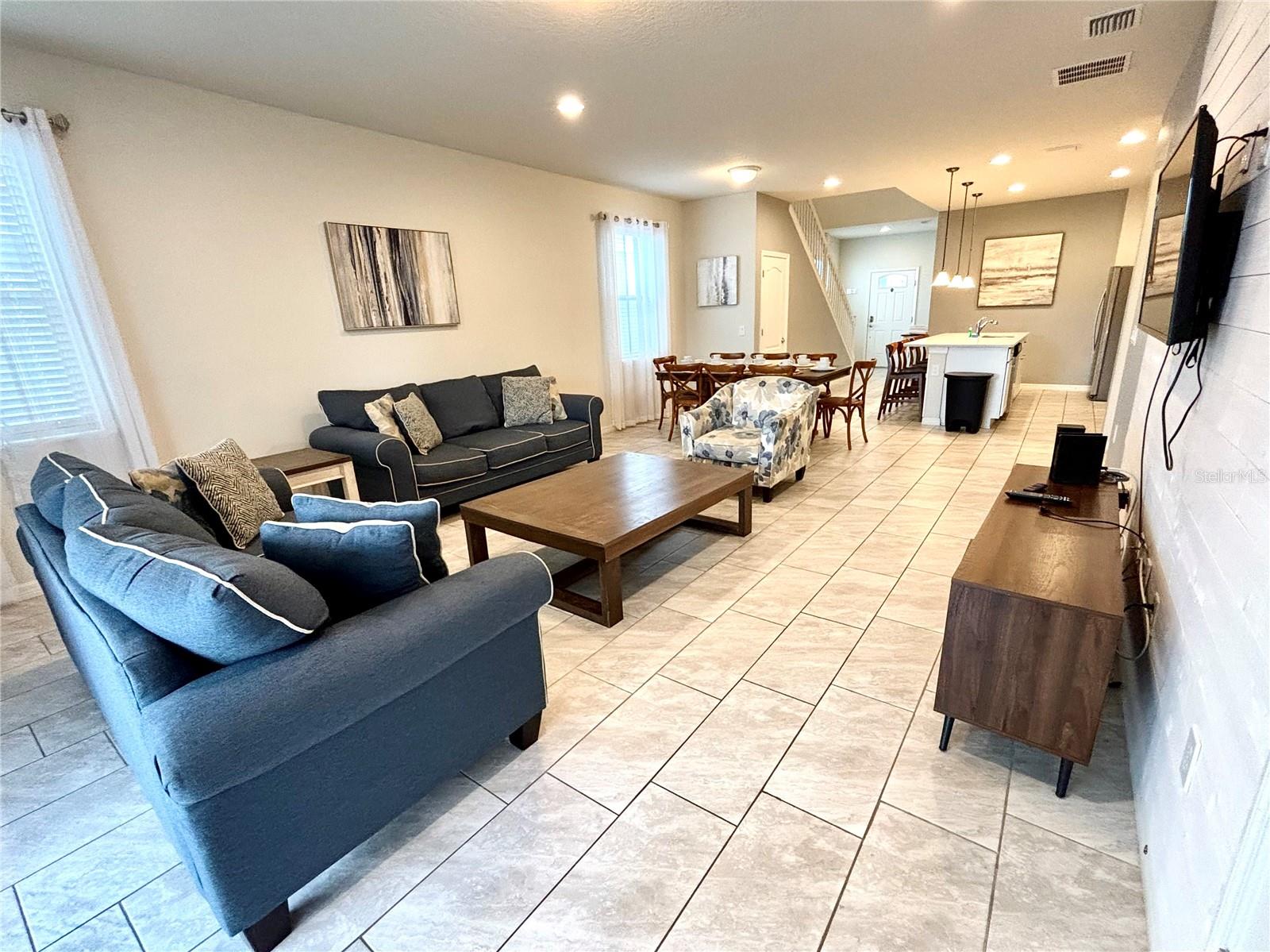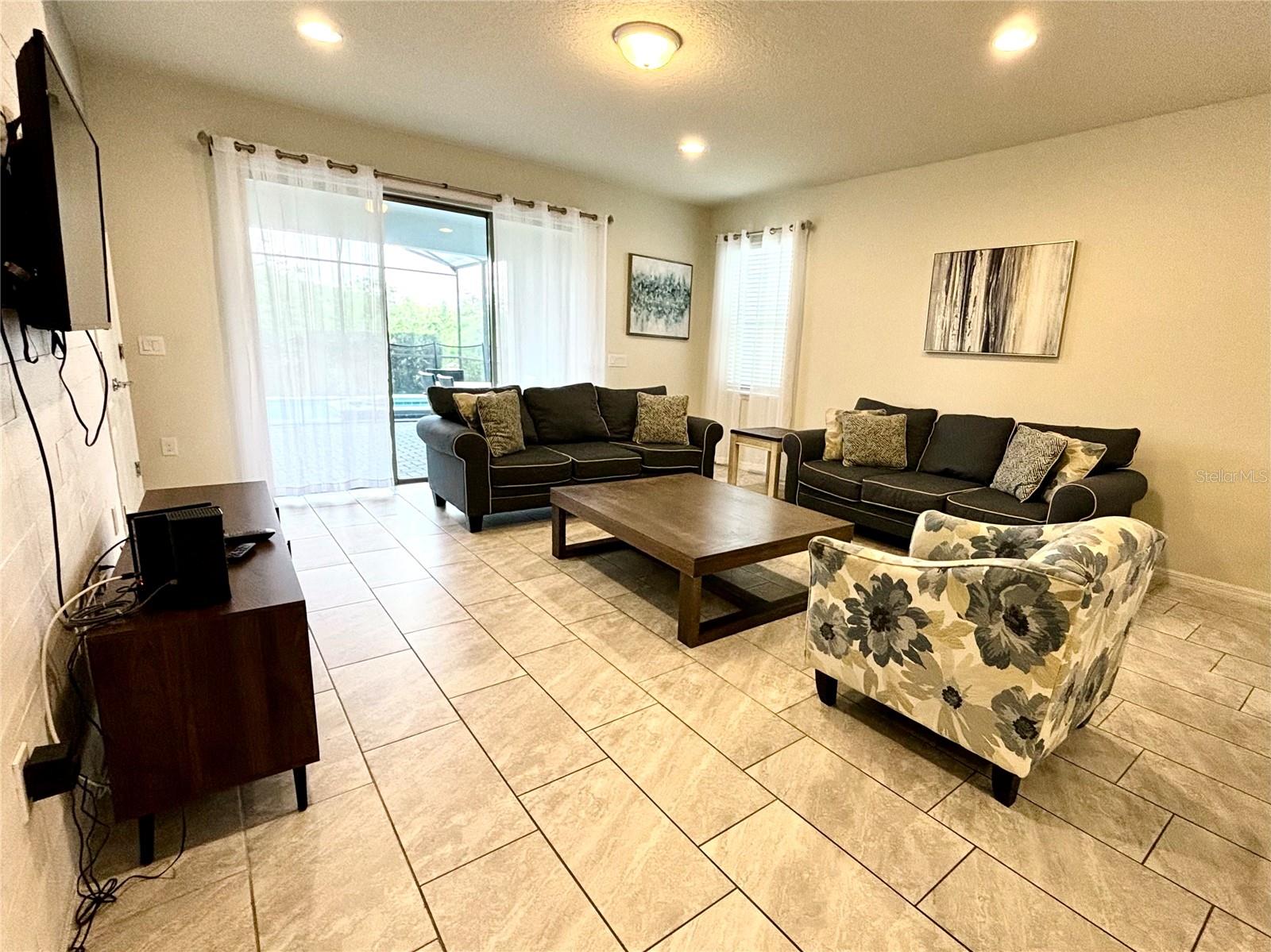 Welcome to this luxurious single-family home in the Windsor at Westside resort community. This stunning property features 7 spacious bedrooms and 5 and a half bathrooms, with all rooms professionally furnished and decorated. Upon entering the entryway, you will be captivated by the open-concept floor plan that seamlessly integrates the kitchen, dining, and living areas, creating a fantastic space for entertaining. This amazing home offers everything you and your guests need for a remarkable vacation, including a fully screened pool and spa, taking your entertainment from indoor to outdoor. One of the bedrooms is on the first floor, while the other well-decorated bedrooms are upstairs. On the second floor, you will find a spacious bonus lounge and TV room, perfect for movie nights and other activities. The Windsor at Westside resort community provides a range of amenities, such as a clubhouse, a beautiful lake with a charming pier, and a large resort-style pool with a fun waterslide, a lazy river, and a water playground. Additionally, the community offers a fitness center, volleyball courts, a sundry shop, and an arcade. Discover the convenience of a prime location with easy access to top attractions, including the well-known Disney World, shops, restaurants, and several other exciting new attractions coming soon to Central Florida.