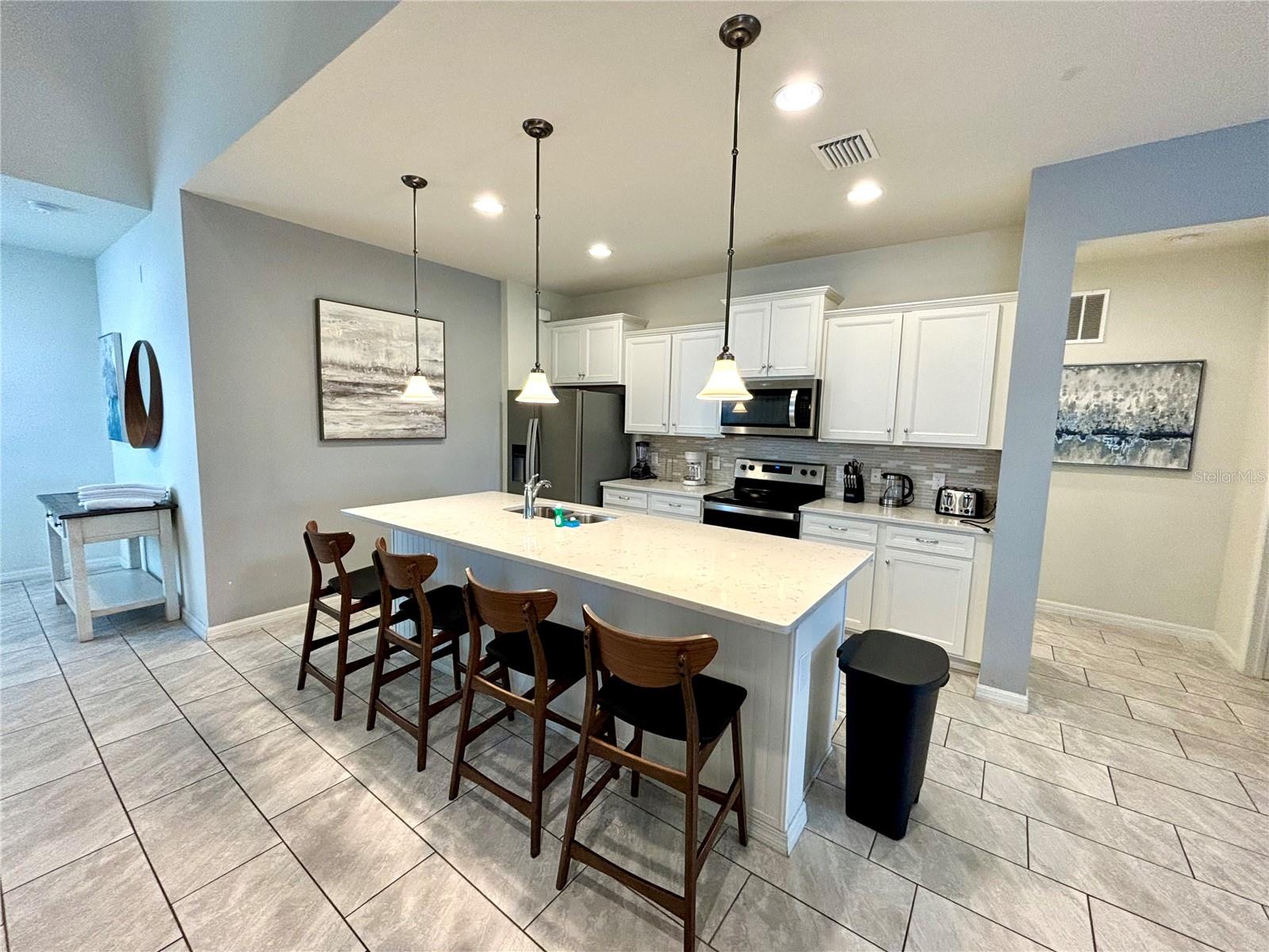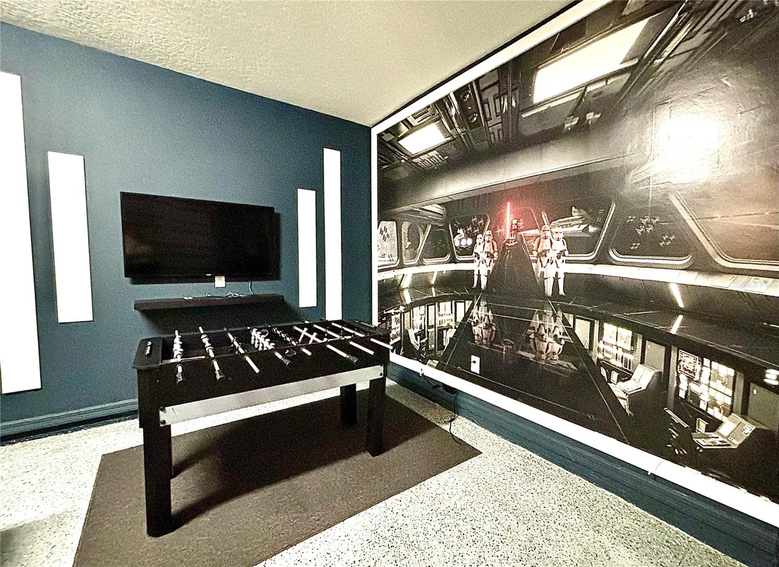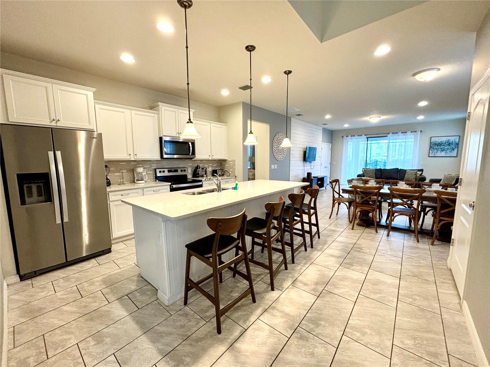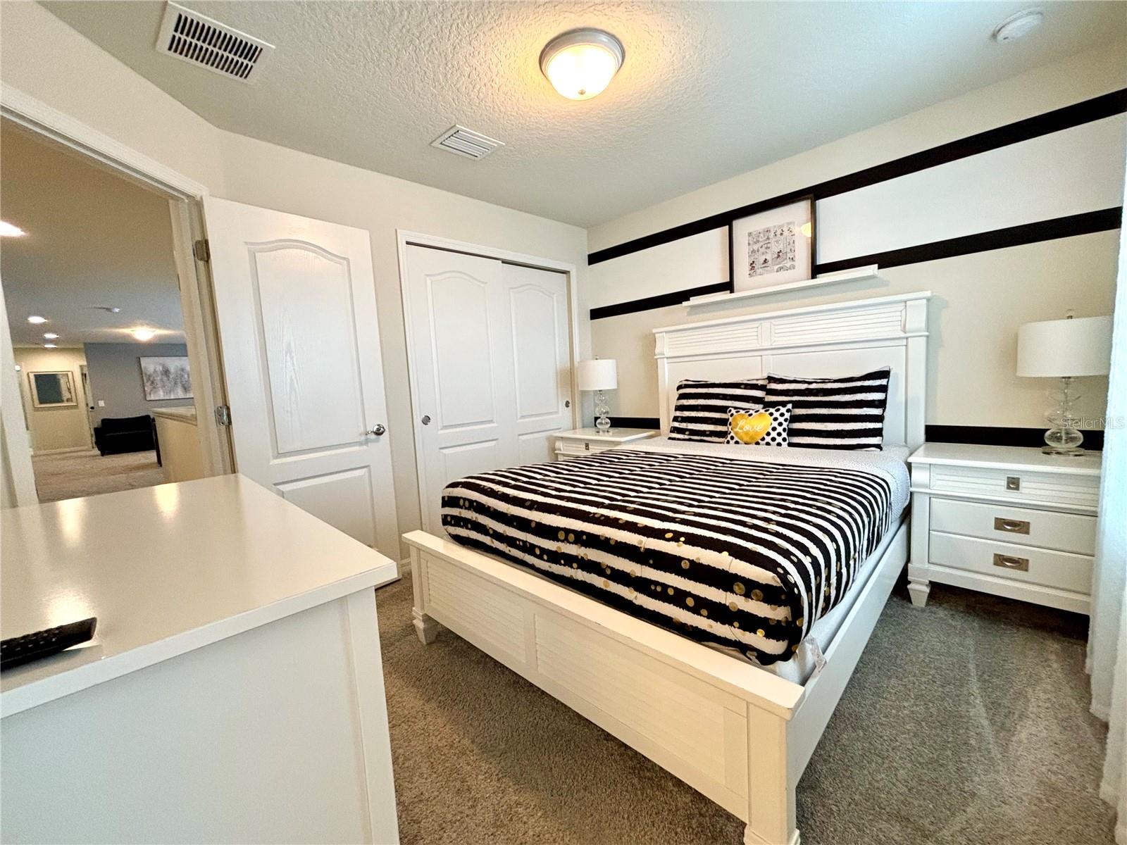 Welcome to this luxurious single-family home in the Windsor at Westside resort community. This stunning property features 7 spacious bedrooms and 5 and a half bathrooms, with all rooms professionally furnished and decorated. Upon entering the entryway, you will be captivated by the open-concept floor plan that seamlessly integrates the kitchen, dining, and living areas, creating a fantastic space for entertaining. This amazing home offers everything you and your guests need for a remarkable vacation, including a fully screened pool and spa, taking your entertainment from indoor to outdoor. One of the bedrooms is on the first floor, while the other well-decorated bedrooms are upstairs. On the second floor, you will find a spacious bonus lounge and TV room, perfect for movie nights and other activities. The Windsor at Westside resort community provides a range of amenities, such as a clubhouse, a beautiful lake with a charming pier, and a large resort-style pool with a fun waterslide, a lazy river, and a water playground. Additionally, the community offers a fitness center, volleyball courts, a sundry shop, and an arcade. Discover the convenience of a prime location with easy access to top attractions, including the well-known Disney World, shops, restaurants, and several other exciting new attractions coming soon to Central Florida.