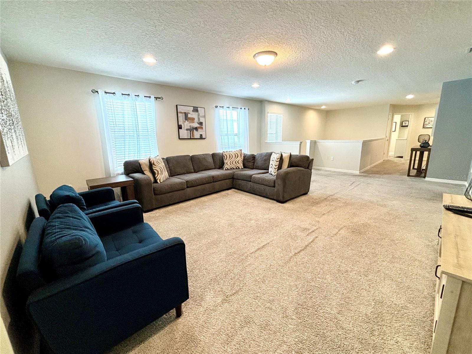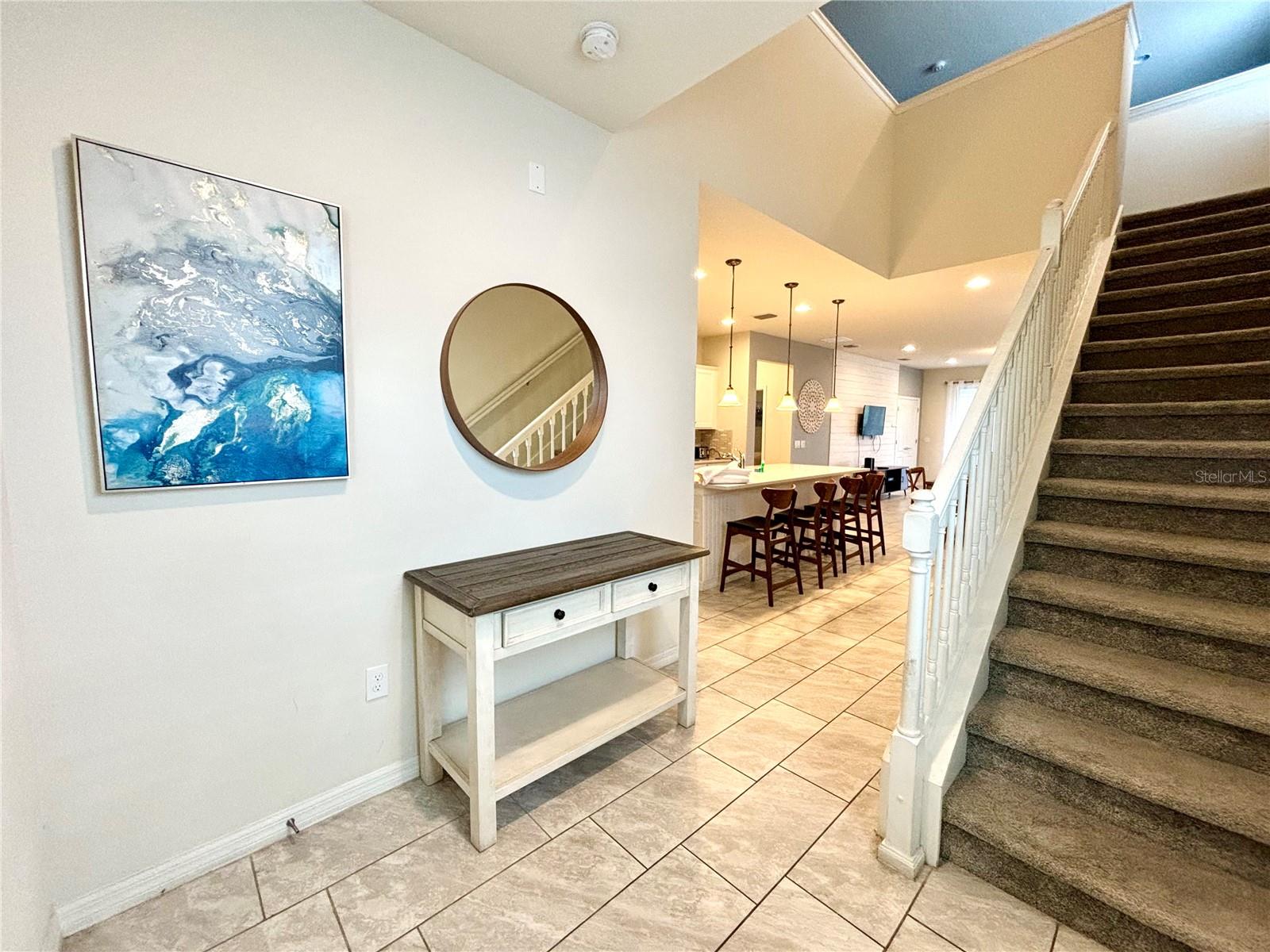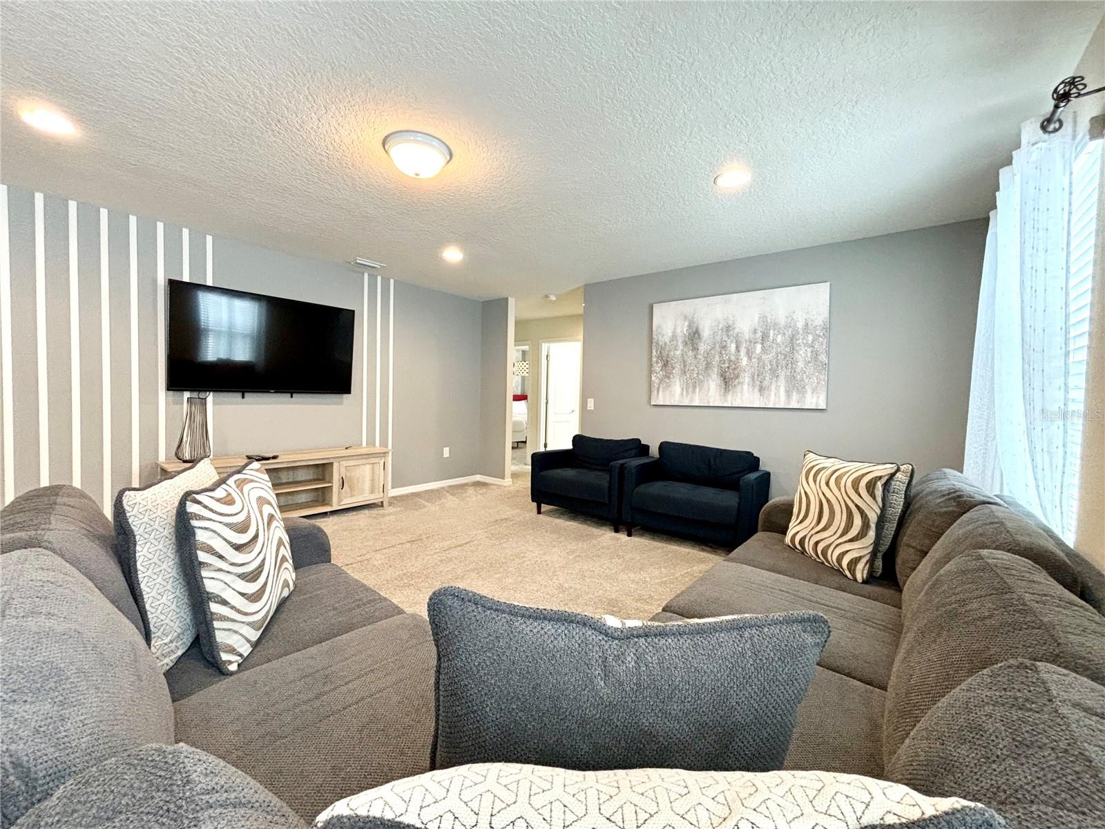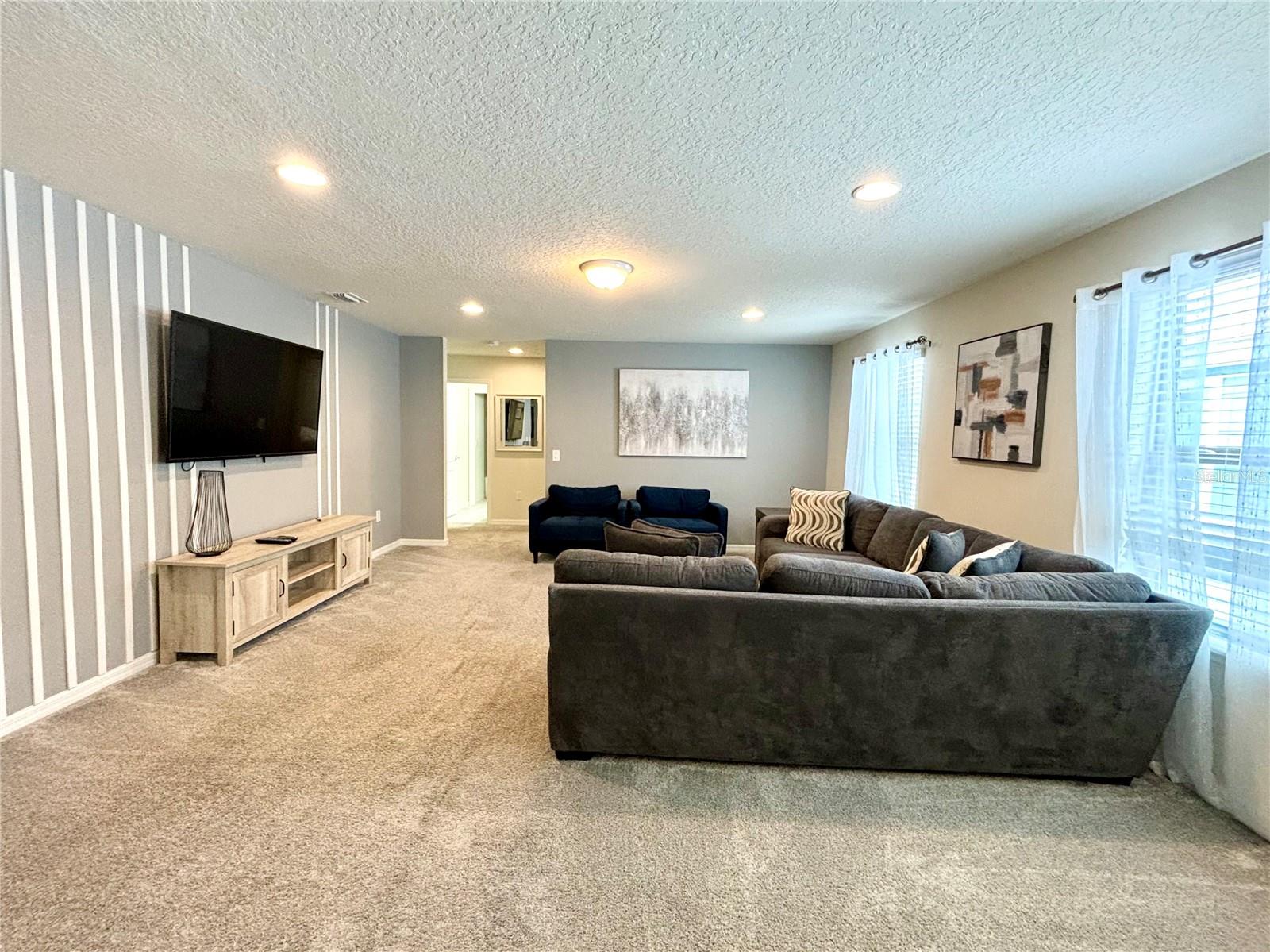 Welcome to this luxurious single-family home in the Windsor at Westside resort community. This stunning property features 7 spacious bedrooms and 5 and a half bathrooms, with all rooms professionally furnished and decorated. Upon entering the entryway, you will be captivated by the open-concept floor plan that seamlessly integrates the kitchen, dining, and living areas, creating a fantastic space for entertaining. This amazing home offers everything you and your guests need for a remarkable vacation, including a fully screened pool and spa, taking your entertainment from indoor to outdoor. One of the bedrooms is on the first floor, while the other well-decorated bedrooms are upstairs. On the second floor, you will find a spacious bonus lounge and TV room, perfect for movie nights and other activities. The Windsor at Westside resort community provides a range of amenities, such as a clubhouse, a beautiful lake with a charming pier, and a large resort-style pool with a fun waterslide, a lazy river, and a water playground. Additionally, the community offers a fitness center, volleyball courts, a sundry shop, and an arcade. Discover the convenience of a prime location with easy access to top attractions, including the well-known Disney World, shops, restaurants, and several other exciting new attractions coming soon to Central Florida.