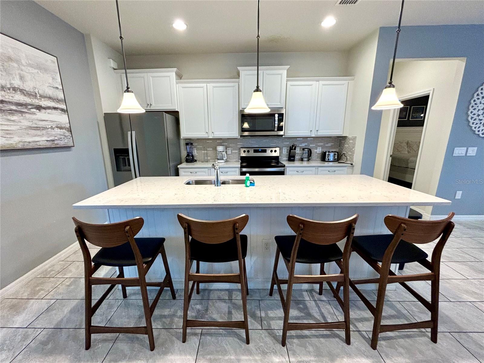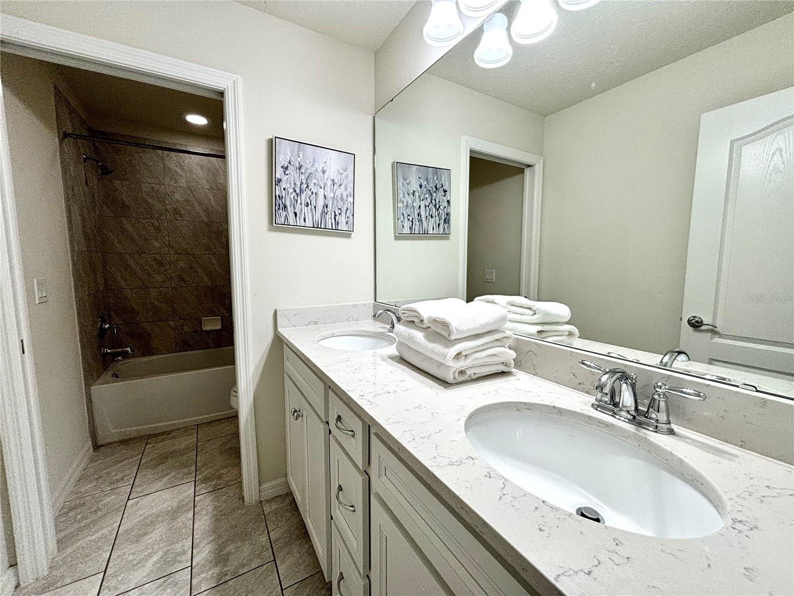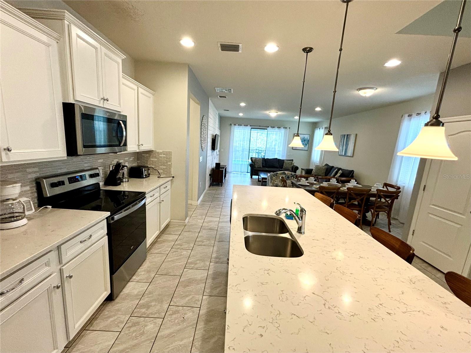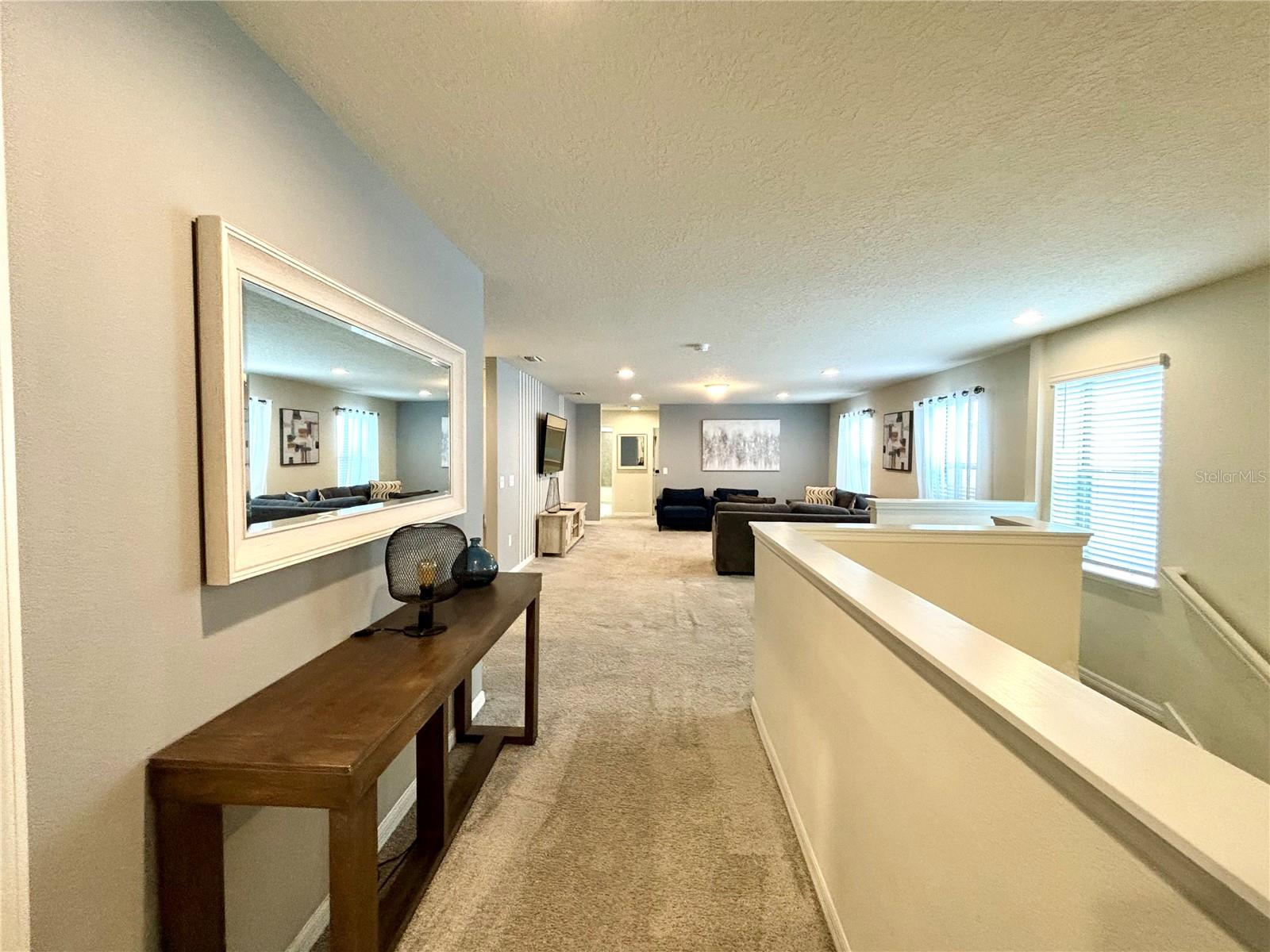 Welcome to this luxurious single-family home in the Windsor at Westside resort community. This stunning property features 7 spacious bedrooms and 5 and a half bathrooms, with all rooms professionally furnished and decorated. Upon entering the entryway, you will be captivated by the open-concept floor plan that seamlessly integrates the kitchen, dining, and living areas, creating a fantastic space for entertaining. This amazing home offers everything you and your guests need for a remarkable vacation, including a fully screened pool and spa, taking your entertainment from indoor to outdoor. One of the bedrooms is on the first floor, while the other well-decorated bedrooms are upstairs. On the second floor, you will find a spacious bonus lounge and TV room, perfect for movie nights and other activities. The Windsor at Westside resort community provides a range of amenities, such as a clubhouse, a beautiful lake with a charming pier, and a large resort-style pool with a fun waterslide, a lazy river, and a water playground. Additionally, the community offers a fitness center, volleyball courts, a sundry shop, and an arcade. Discover the convenience of a prime location with easy access to top attractions, including the well-known Disney World, shops, restaurants, and several other exciting new attractions coming soon to Central Florida.