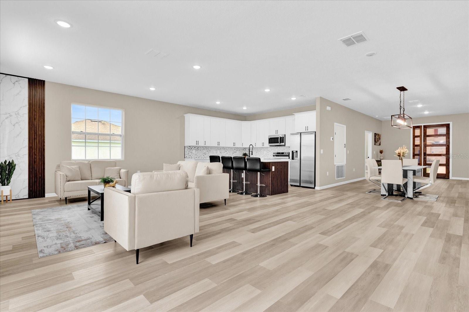 * NEW CONSTRUCTION * Welcome to this stunning brand new home located at 4955 Castle St E, Kissimmee, FL 34758! This stunning 4-bedroom, 3-bathroom house is a gem waiting for you to call it your own. Boasting 2061 sqft of space. As you step into this house, you are greeted by an open concept floorplan that is perfect for modern living. The spacious dining room can easily accommodate a huge table, making it ideal for hosting gatherings and creating lasting memories with family and friends. The luxury waterproof vinyl flooring and neutral paint palette throughout the house create an elegant and inviting ambiance. This home features not one, but two primary suites, each with unique wood paneling designs and generous closet space. The bathrooms are beautifully appointed with mosaic tiling and modern shower stalls, giving you a spa-like experience right at home. Located in a gated community, you can also enjoy the many amenities, including a basketball court, volleyball court, cinema, large pool area with a jacuzzi, game room, gym, and a fishing pier with a BBQ area. Whether you love staying active or prefer relaxation, this community has something for everyone. This home also has a garage with a long driveway, and the option to negotiate furniture. The property is ideal for those looking for a turnkey solution with modern conveniences. 4955 Castle St E is not just a house; it's a lifestyle waiting for you. Don't miss this opportunity to make this house your forever home. Contact us today to schedule a viewing and start envisioning your future in this beautiful property. Embrace the opportunity to make this house your own, and let the journey to homeownership begin in this inclusive and welcoming community.