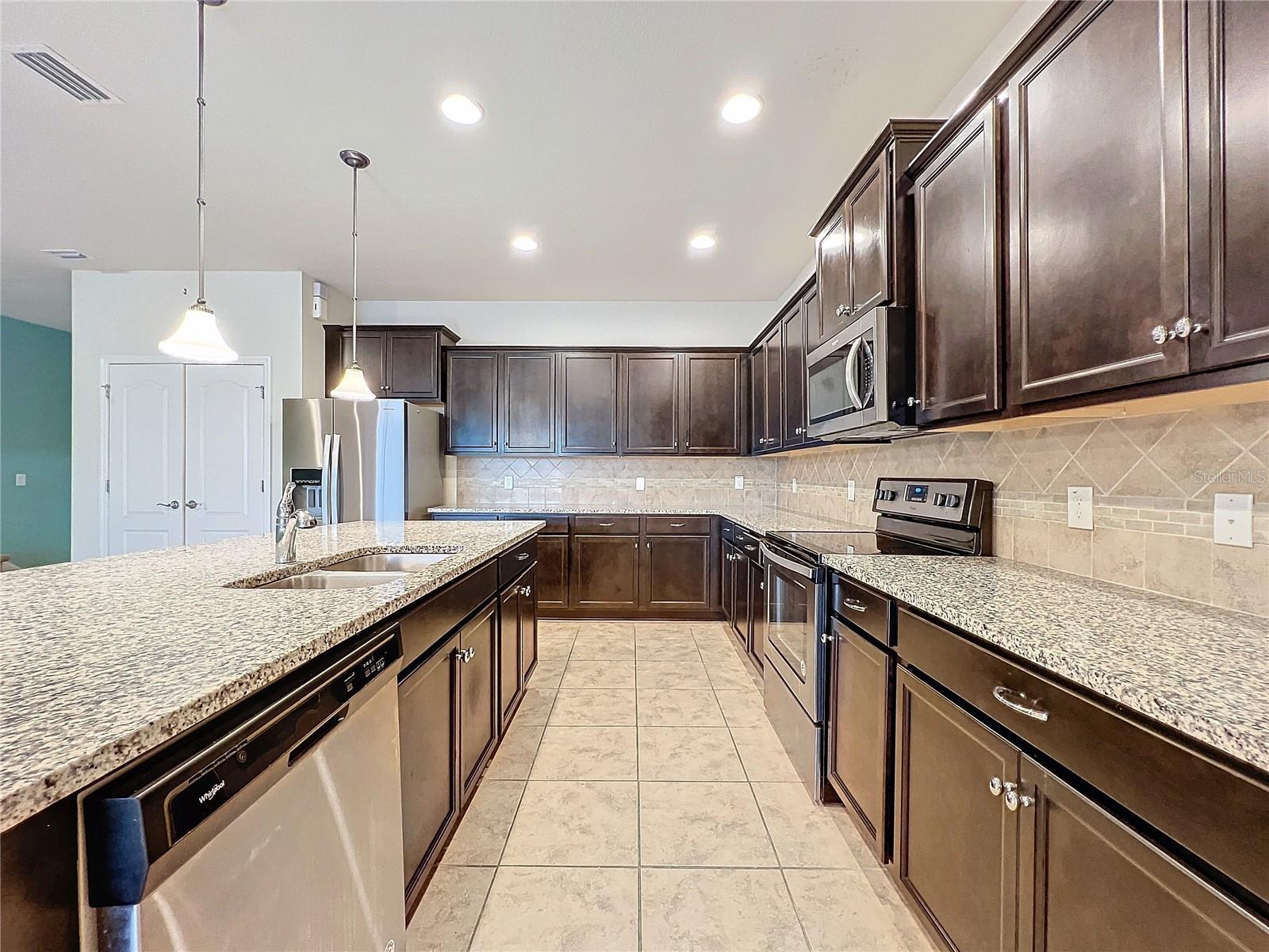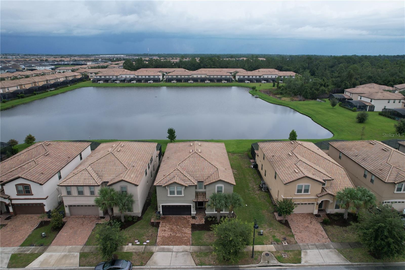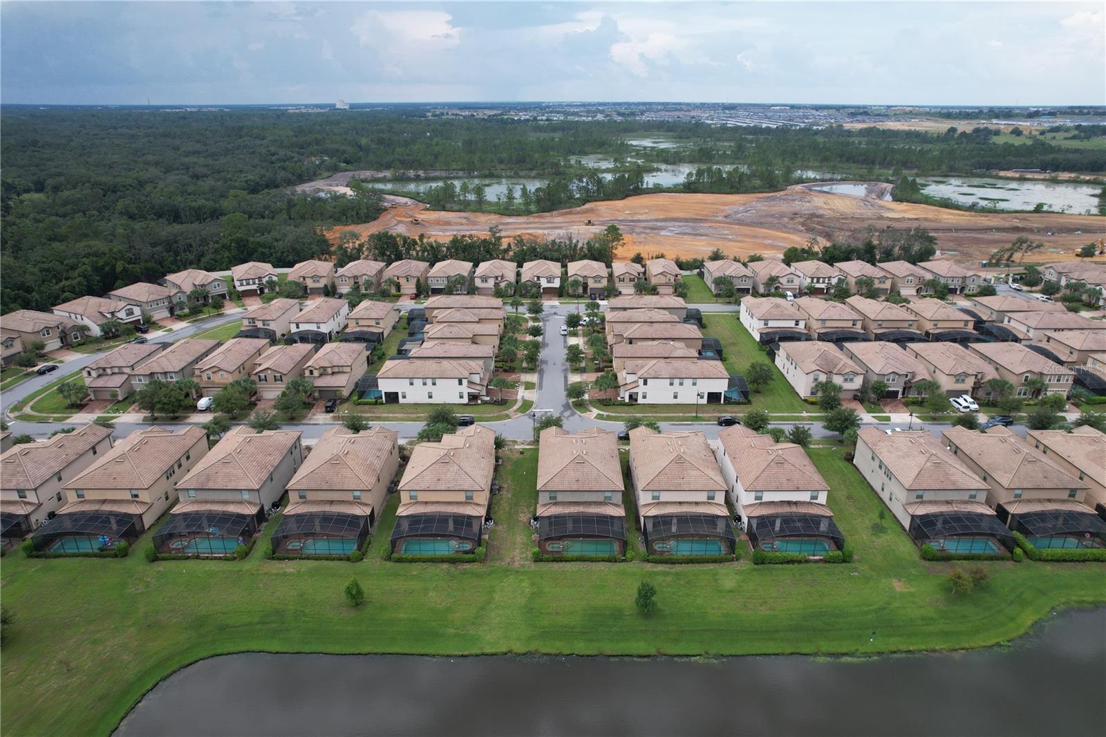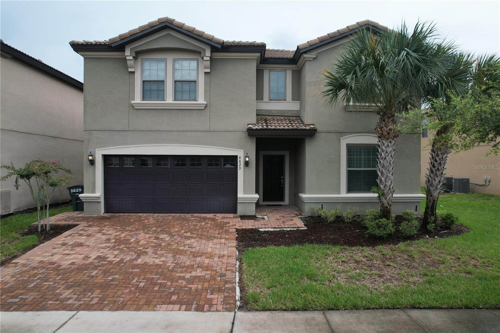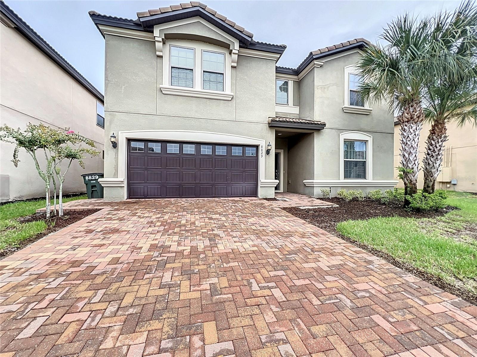 Experience the ultimate vacation retreat at Windsor at Westside Resort with this exquisite water view 9-bedroom, 6-bathroom pool home, perfectly situated on one of the community's prime lots. Enjoy captivating views of the pond from this fabulous home that features a spacious open floor plan designed for both relaxation and entertainment. The gourmet kitchen boasts dark wood cabinets, sleek stone countertops, stainless steel appliances, and a generous breakfast bar that seamlessly flows into the living area, making it ideal for gatherings. The adjacent dining area is perfect for shared meals. Sliding glass doors open to a huge, covered lanai with a heated pool and spa set on a brick paver deck, offering a serene space to unwind and enjoy the Florida lifestyle. The first-floor master bedroom provides a luxurious retreat, and an additional large bedroom on the same floor is conveniently located next to a full bathroom. Upstairs, you'll find a massive loft area that has the flexibility to be used as a games room, movie theater or play area, along with 7 more bedrooms to accommodate family and friends. Windsor at Westside is a premier gated community located just minutes from Disney World, featuring top-tier amenities including a resort-style clubhouse, heated pool and spa, lazy river, water playground, fitness center, on-site store, sand volleyball court, tennis and basketball courts, a games room, and a restaurant and bar. This home is the perfect gateway to endless fun and relaxation in Central Florida!
