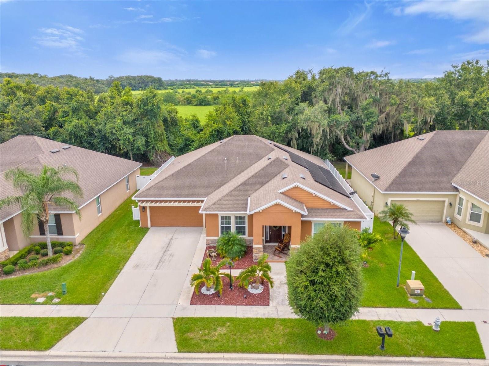 This Immaculate 4 Bedroom 3 Bathroom residence has all the bells and whisltes you can ask from from Solar Panels (PAID OFF), New A/C System, Whole House Filtration System, Gutters, Fully Fenced, 2 Master Suites, Massive Enclosed Porch with Windows & screens, 2 car garage, plus much more). This beautiful house has been well taken care of. The owners have upgraded the front landscaping to include palm trees & a custom sidewalk that resembles an island. The kitchen features new stainless steel appliances & granite countertops. House has a split bedroom layout where the master bedroom is on it's own private side and there is also a second master bedroom suite with its own bathroom. All bedrooms are spacious and feature a walk-in closet. Community features boat doc, clubhouse, community pool, dog park & tennis courts. Don't miss out on the opportunity to see this magnificent property.