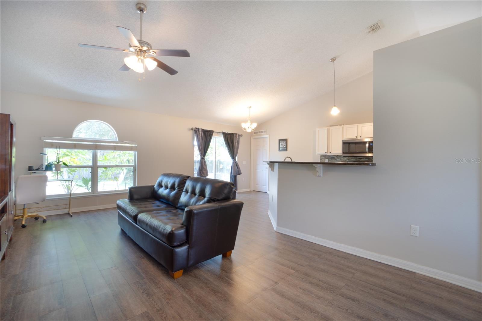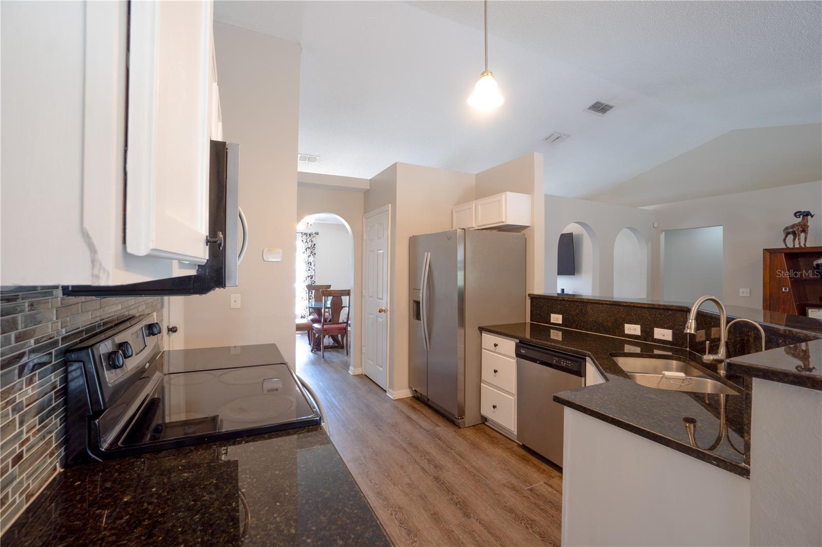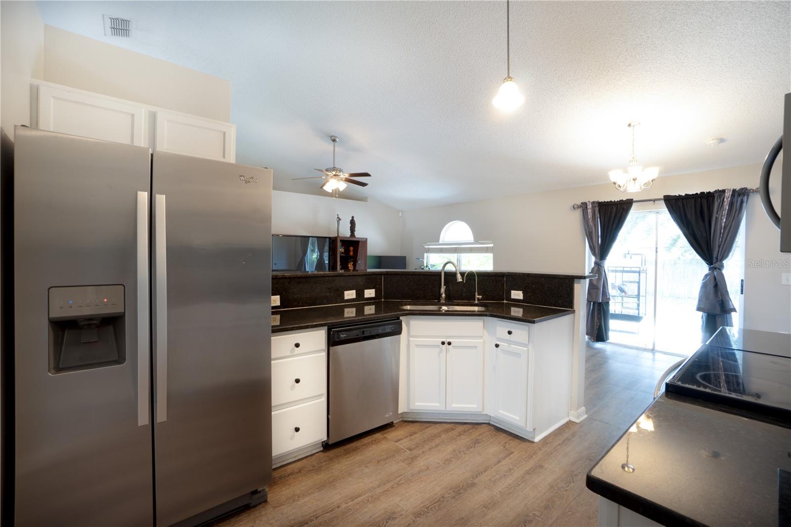 Discover an incredible opportunity to own this beautifully maintained 4-bedroom, 2-bath home in the highly sought-after Poinciana Villages community. As you step inside, you’re welcomed by soaring vaulted ceilings and vinyl flooring that flows seamlessly throughout the home. The formal living and dining rooms provide a warm and inviting space for gatherings. The heart of the home is the modern kitchen, which boasts granite countertops, stainless steel appliances, a closet pantry, and ample cabinet and counter space. The kitchen overlooks a cozy family room and breakfast nook, where sliding glass doors open to a fully fenced-in backyard, perfect for outdoor entertaining. The primary suite featuring vaulted ceilings, a spacious walk-in closet, and an ensuite bath for your comfort. The additional bedrooms are generously sized and share a well-appointed hall bath. Whether you're looking for a perfect starter home, a lucrative investment property, or a second home, this property fits the bill. Conveniently located just 20 minutes from Disney properties and 20 minutes south of downtown Kissimmee, you'll be close to shopping, schools, parks, and recreational activities.