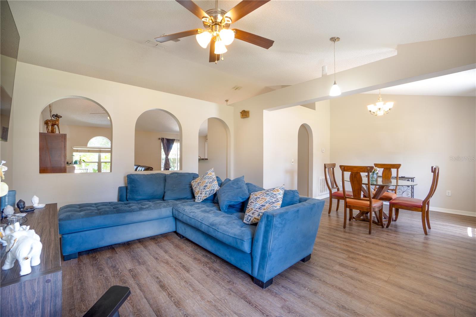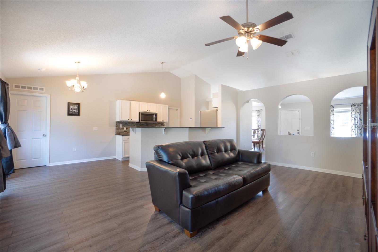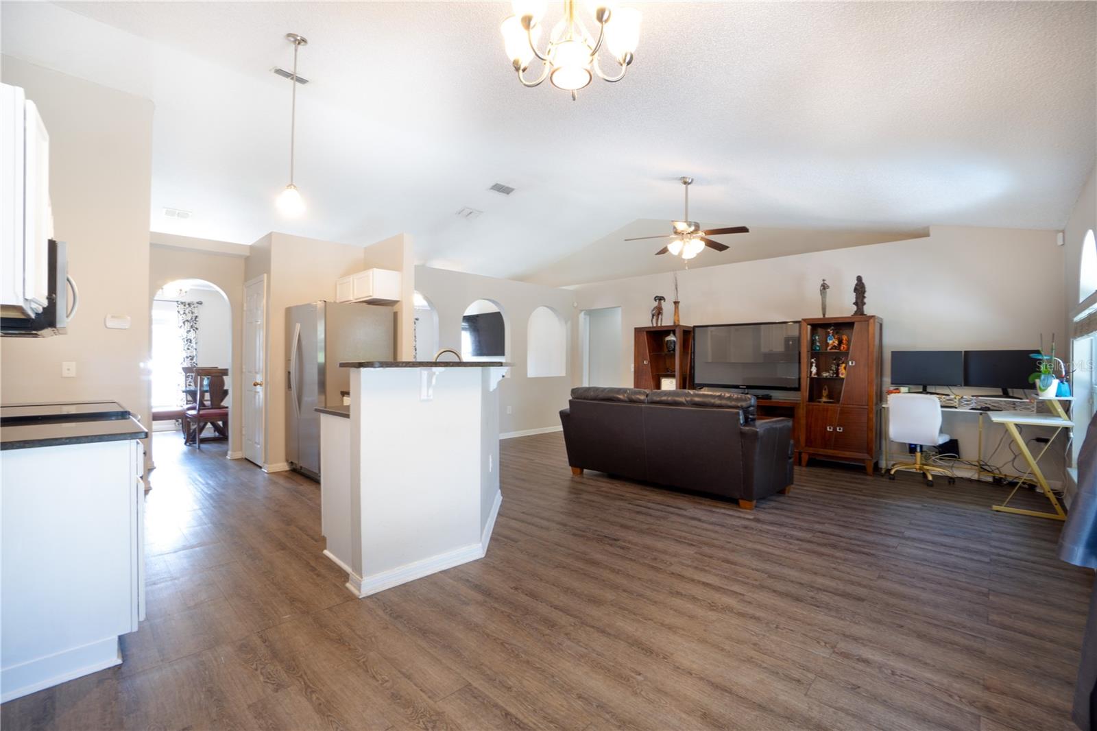 Discover an incredible opportunity to own this beautifully maintained 4-bedroom, 2-bath home in the highly sought-after Poinciana Villages community. As you step inside, you’re welcomed by soaring vaulted ceilings and vinyl flooring that flows seamlessly throughout the home. The formal living and dining rooms provide a warm and inviting space for gatherings. The heart of the home is the modern kitchen, which boasts granite countertops, stainless steel appliances, a closet pantry, and ample cabinet and counter space. The kitchen overlooks a cozy family room and breakfast nook, where sliding glass doors open to a fully fenced-in backyard, perfect for outdoor entertaining. The primary suite featuring vaulted ceilings, a spacious walk-in closet, and an ensuite bath for your comfort. The additional bedrooms are generously sized and share a well-appointed hall bath. Whether you're looking for a perfect starter home, a lucrative investment property, or a second home, this property fits the bill. Conveniently located just 20 minutes from Disney properties and 20 minutes south of downtown Kissimmee, you'll be close to shopping, schools, parks, and recreational activities.