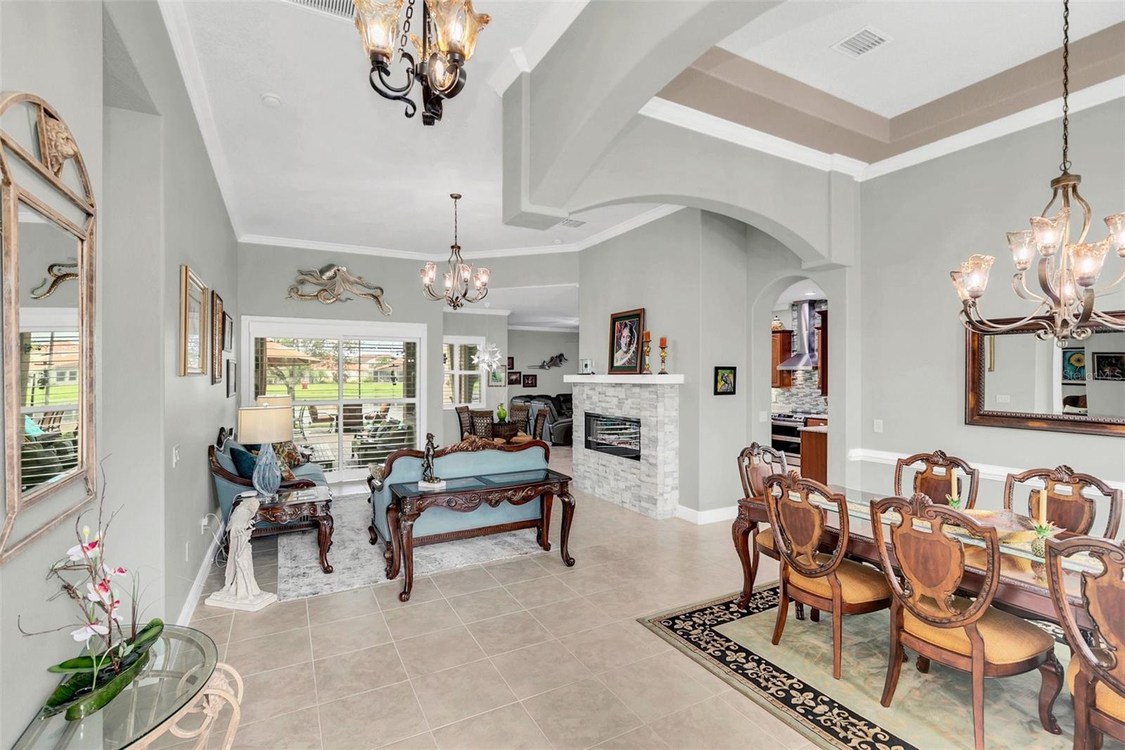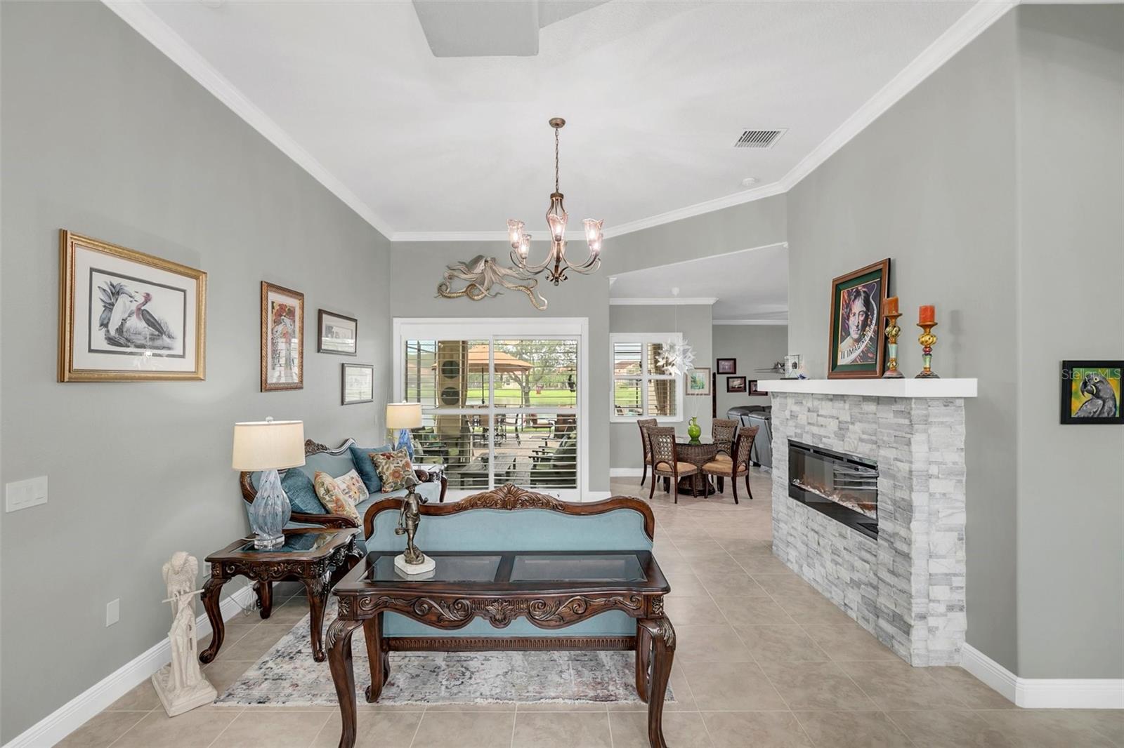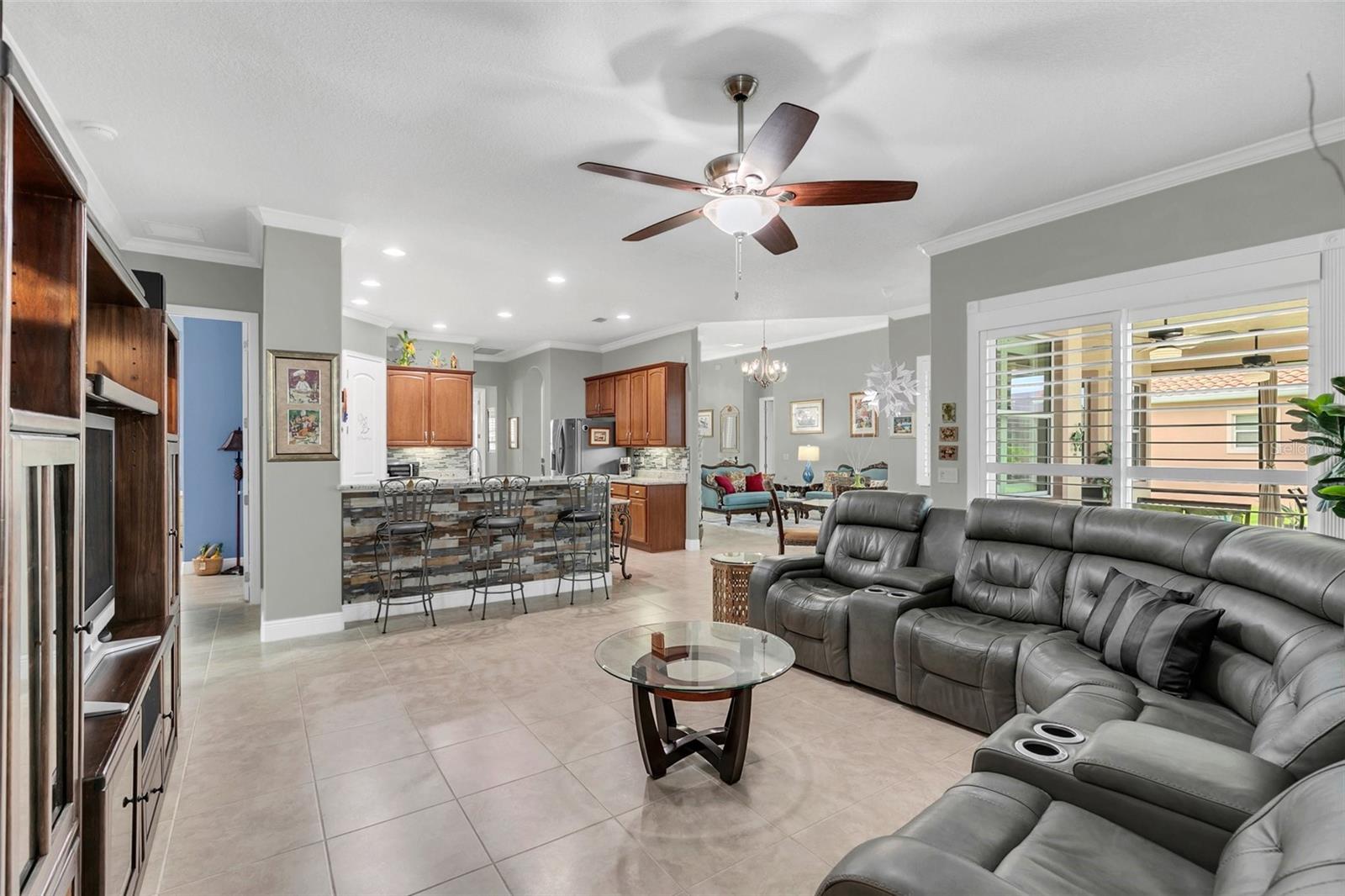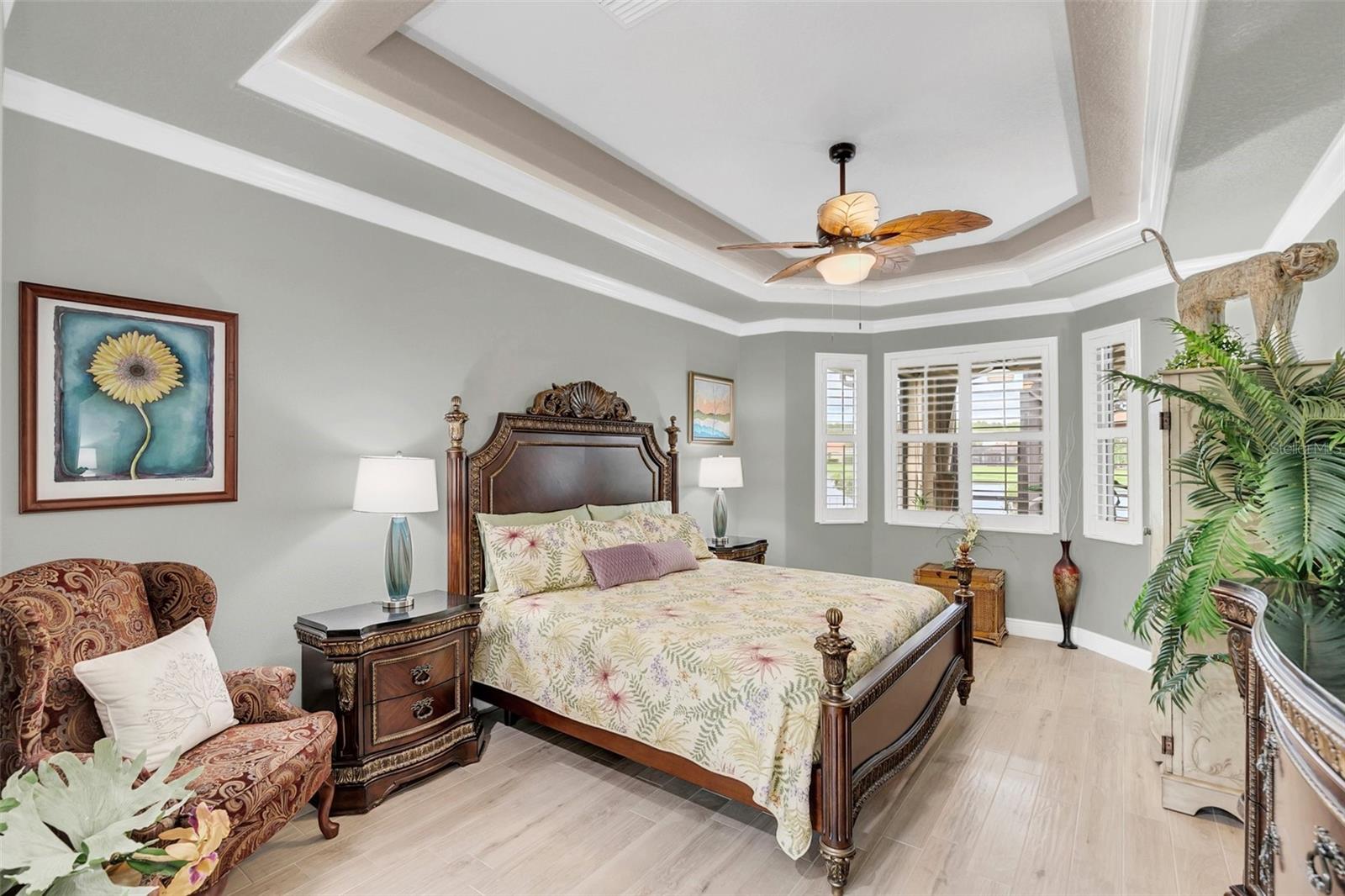 Exquisite 5-Bedroom, 4-Bath Lakefront Home in a Gated Community! Step into luxury and comfort with this beautifully updated 5-bedroom, 4-bath home, offering high ceilings, plantation shutters, and new floors. Thoughtful upgrades include custom closet organizers, a brand-new AC, and an air-conditioned garage for added convenience. The heart of the home is the gourmet kitchen, featuring new granite countertops, stainless steel appliances, pull-out shelves, bar seating, and a charming breakfast nook with serene lake views. Multiple living spaces, including a cozy family room, formal dining room, and a formal living room with an elegant electric fireplace, make this home perfect for entertaining and everyday living. Step outside to your expansive paver lanai with brand-new screens, where you can unwind while soaking in breathtaking lake views. Nestled in a gated community, residents enjoy lawn care, a resort-style pool, tennis, and basketball courts. This move-in-ready gem offers the perfect blend of style, function, and resort-style amenities—schedule your private tour today!