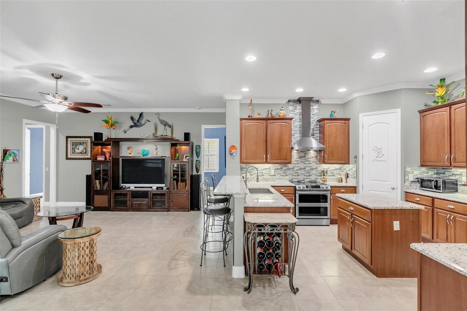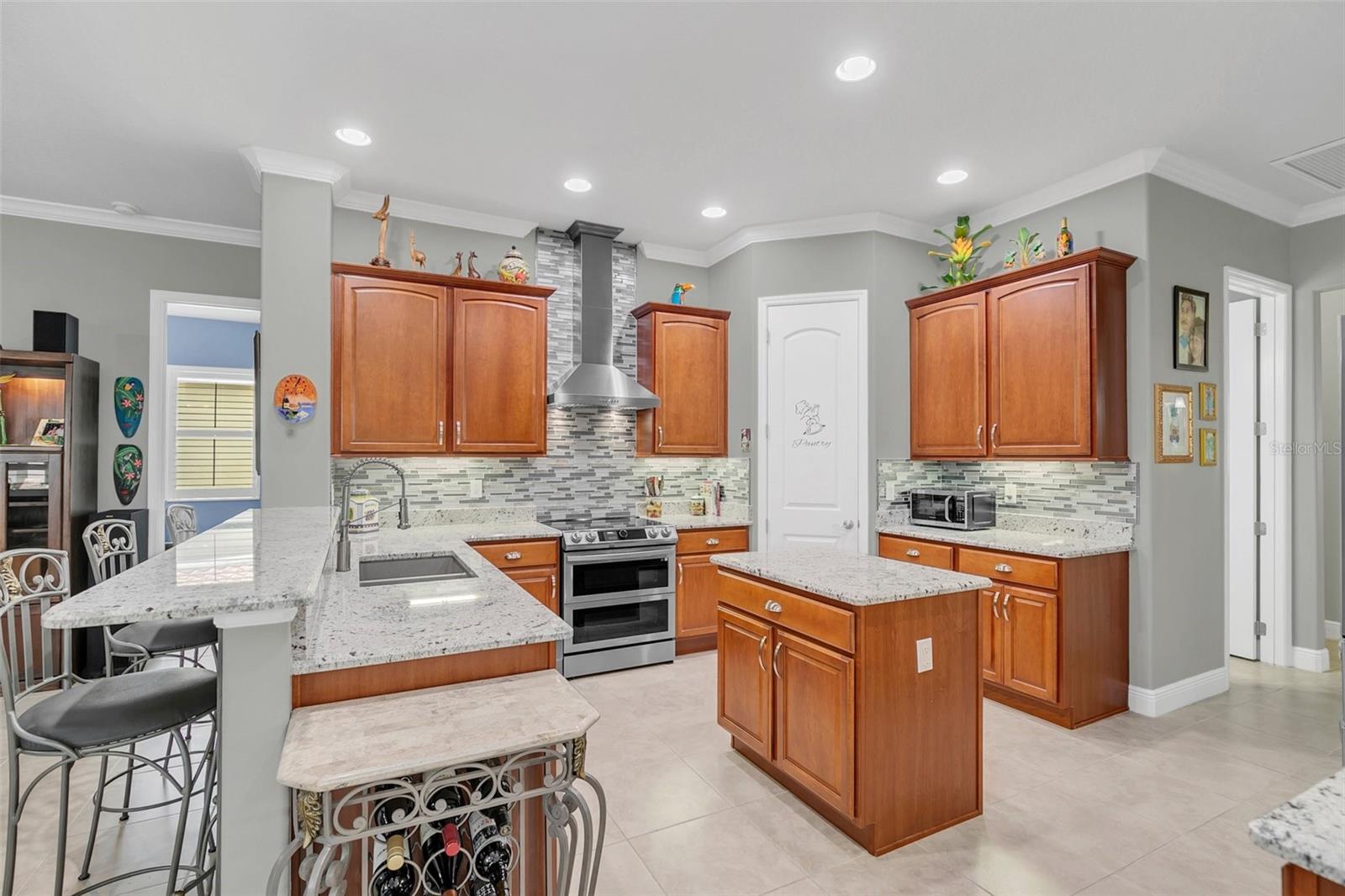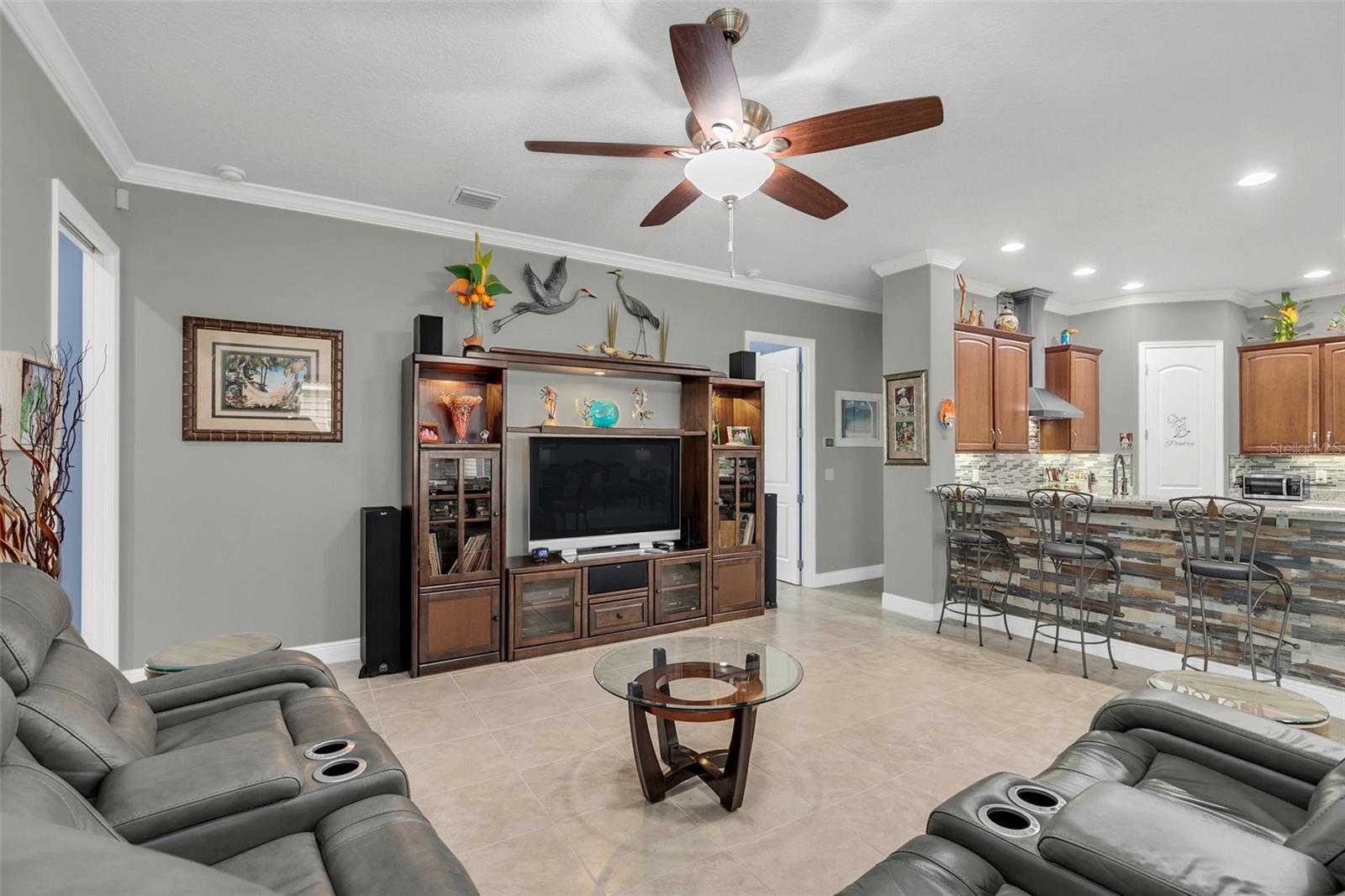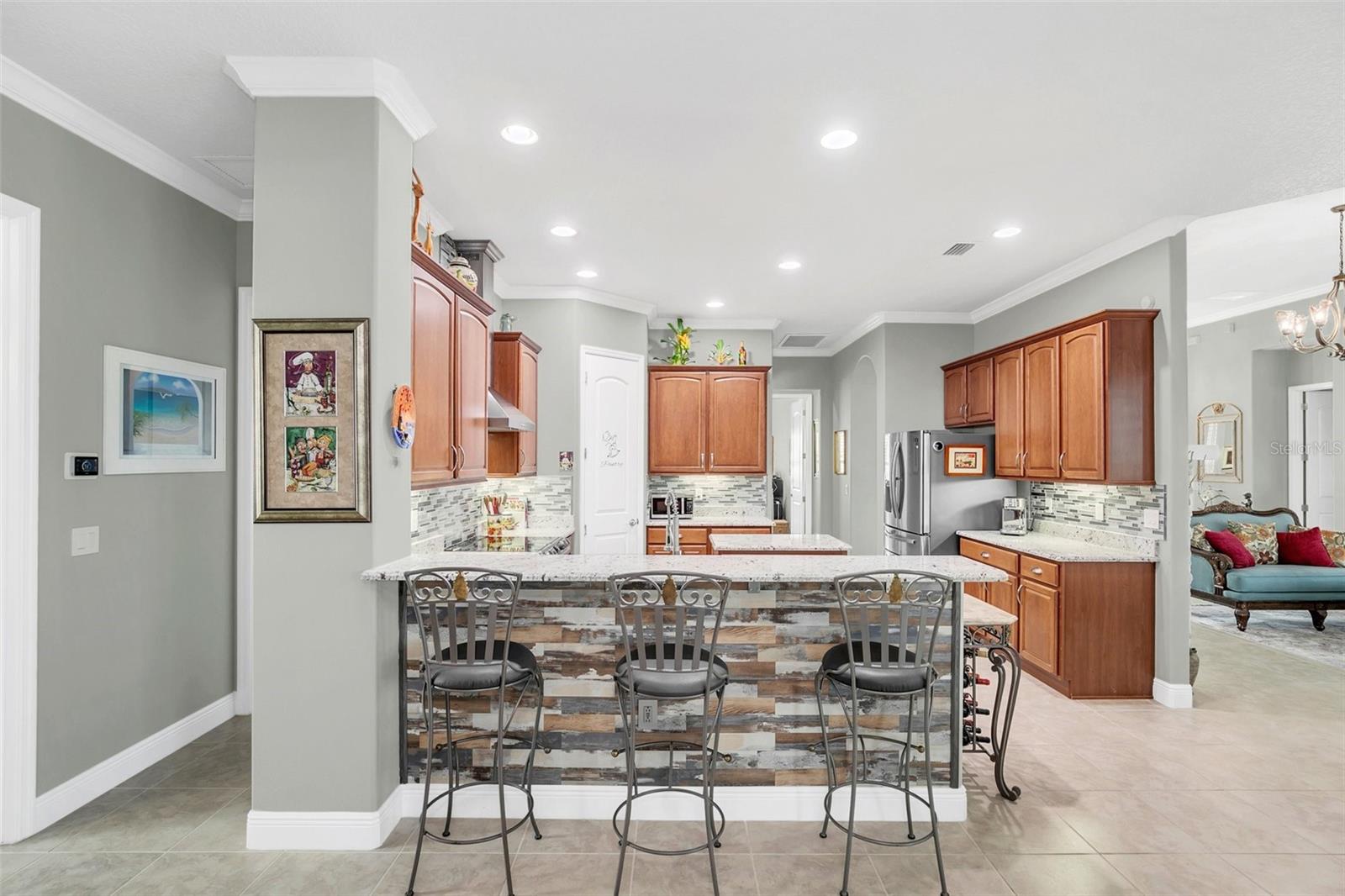 Exquisite 5-Bedroom, 4-Bath Lakefront Home in a Gated Community! Step into luxury and comfort with this beautifully updated 5-bedroom, 4-bath home, offering high ceilings, plantation shutters, and new floors. Thoughtful upgrades include custom closet organizers, a brand-new AC, and an air-conditioned garage for added convenience. The heart of the home is the gourmet kitchen, featuring new granite countertops, stainless steel appliances, pull-out shelves, bar seating, and a charming breakfast nook with serene lake views. Multiple living spaces, including a cozy family room, formal dining room, and a formal living room with an elegant electric fireplace, make this home perfect for entertaining and everyday living. Step outside to your expansive paver lanai with brand-new screens, where you can unwind while soaking in breathtaking lake views. Nestled in a gated community, residents enjoy lawn care, a resort-style pool, tennis, and basketball courts. This move-in-ready gem offers the perfect blend of style, function, and resort-style amenities—schedule your private tour today!