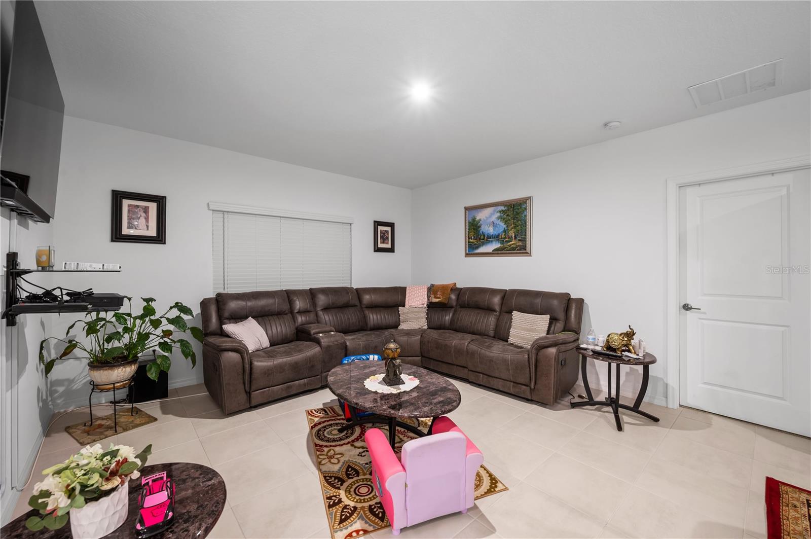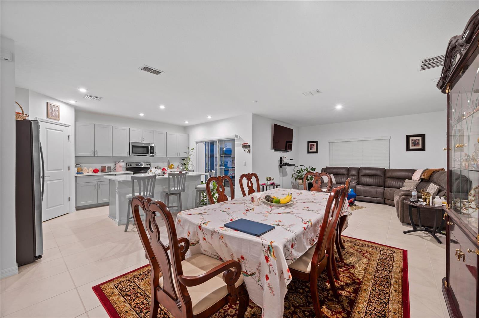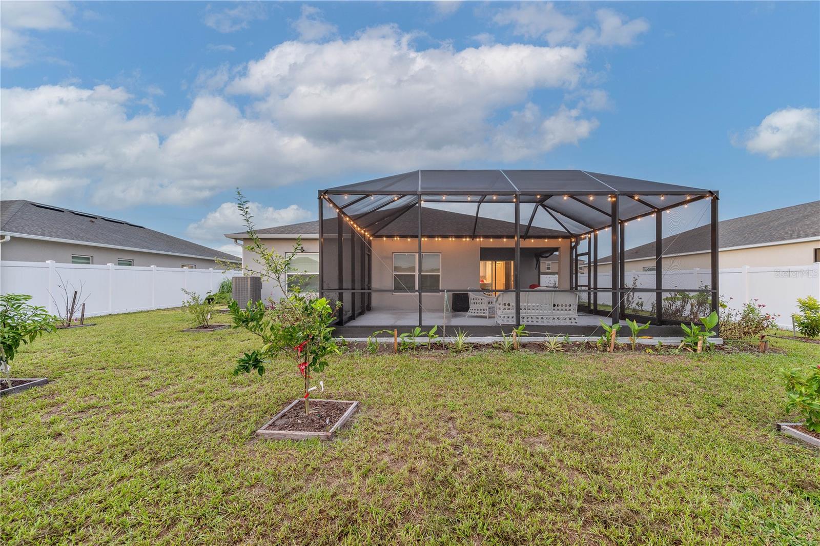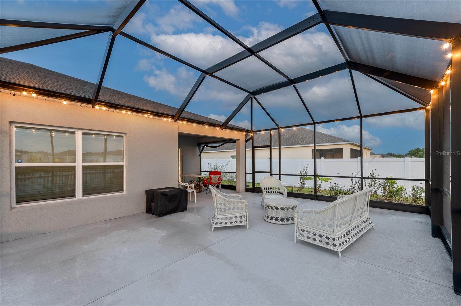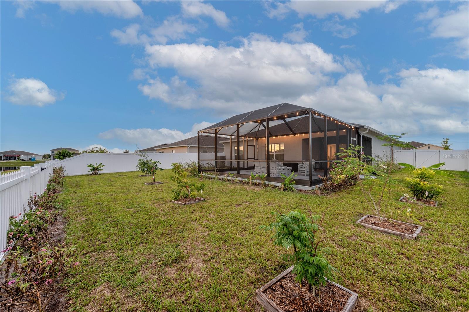 Stunning Waterviews with a HUGE enclosed screen, and NEW fence, enjoy your nights outside with the family. This cozy single-story plan makes smart use of every square foot without sacrificing a bit of style. Lots of natural light and a seamless open-concept flow from gathering room to dining room to well-equipped kitchen with island and quartz countertops add to the sense of spaciousness. The owner's suite features a spacious walk-in closet, deal sinks and a large shower. Three secondary bedrooms allows room for everyone! Tile throughout home with exceptions of bedrooms. 2-Car Garage plus carport makes this great to host family and friends!