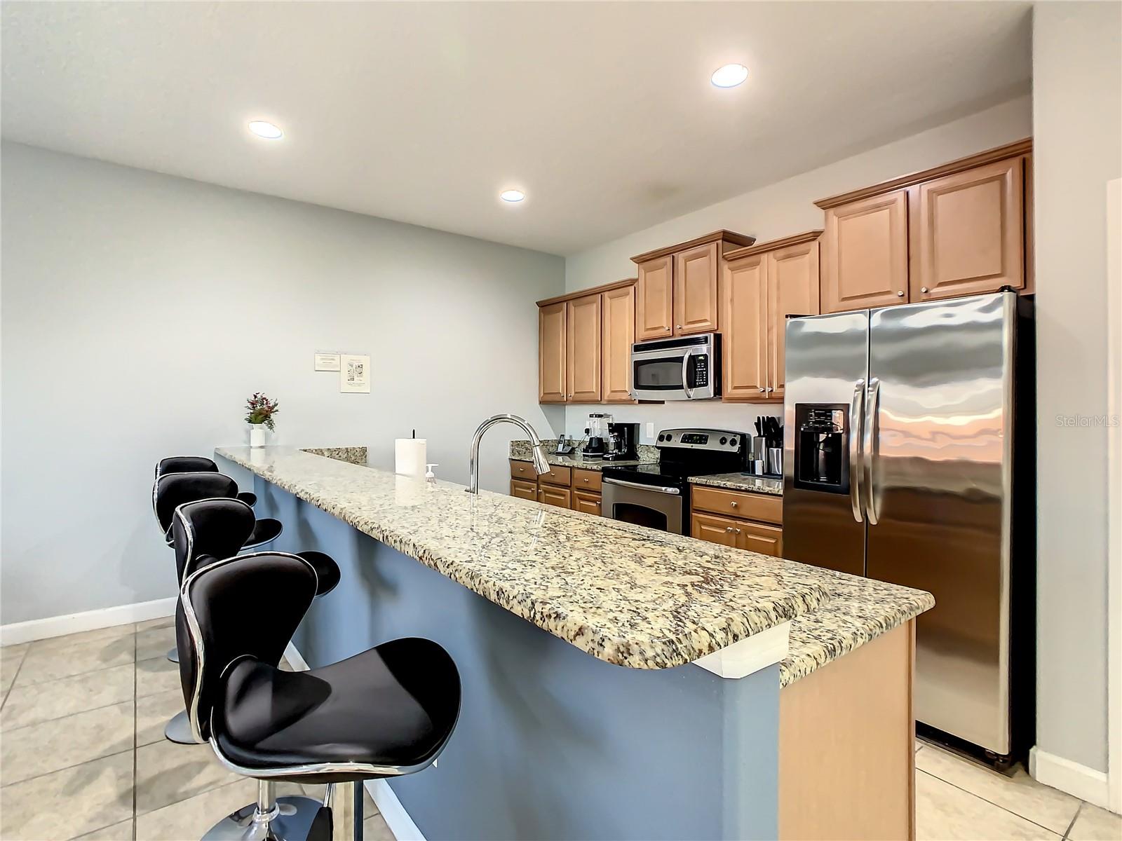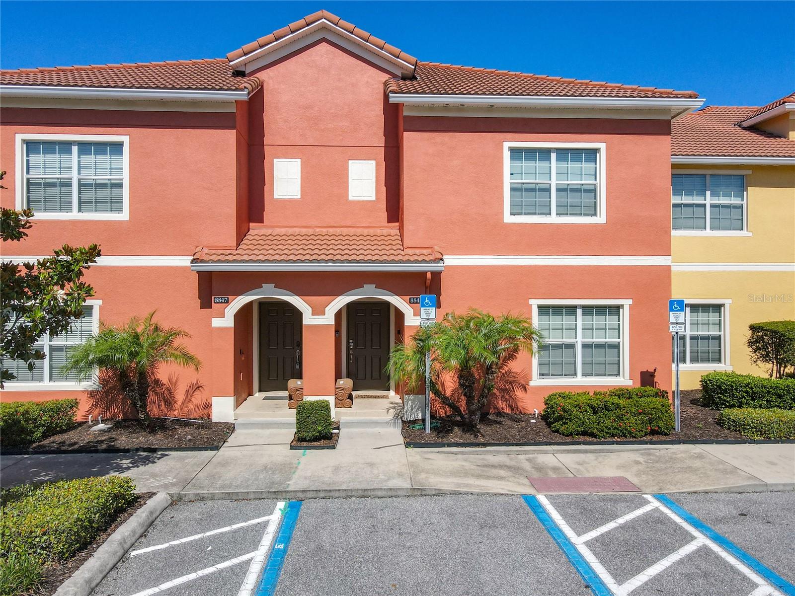 WOW!! 4/3 REMODELED townhouse on the exclusive Resort Style community "Paradise Palm Resort". Entirely furnished townhouse with Waterview and private pool. Modern design all over the place, living and dining room with brand new furniture, gourmet kitchen with granite countertop and breakfast bar, brand new luxury vinyl floor bedroom with 3 closet & 1 full bathroom. The elegant recently done stair will take you to a spacious second floor all new Luxury water resistant vinyl floors in hallway and bedrooms, the spectacular master bedroom with in-suite bathroom offers brand new furniture, drapes & energy efficient LED lighting fixtures, night lamps with usb-cell phone charger. The en-suite bathroom with double sink, shower-tub combination and private toilet room for a unique privacy. the hallway will lead you to bedrooms 2 where the magic of Disney comes alive, all furnished and Disney themed but keeping a modern touch. Bedroom 3 all furnished, and Marvel themed for the younger. a private and elegant hallway bathroom with dual sink and private toilet-shower room. The lanai offers a secluded pool area with outdoor furniture and grill with a stunning view to a pond. This home is perfect for vacation rental, airbnb, vacation home or for all resort lifestyle lovers. Paradise palm resort has many amenities such as lagoon style pool with slides, 2 hot tubs, pool bar, kid's water splash, tennis court, basketball court, volleyball court, clubhouse, gym, sauna, convenient store and a wonderful movie theater with daily showings. Brand new A/C installed on March 2023. This amazing home is located close to shopping plazas, restaurants, water park, major highways and 10 minutes away for the MAGICAL WORLD of Walt Disney World theme parks. you can' miss this opportunity to live on a resort style place. schedule your showing today.