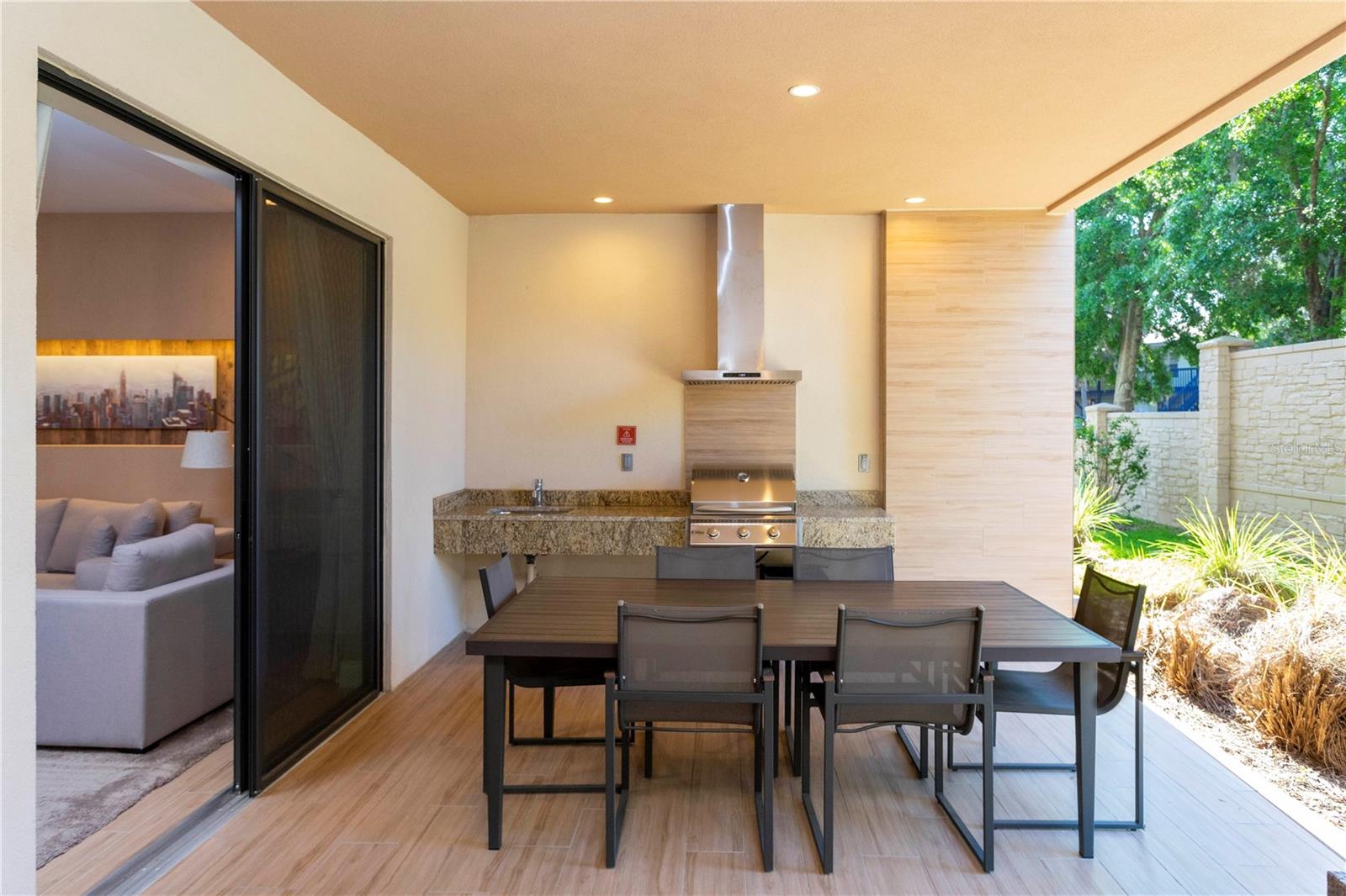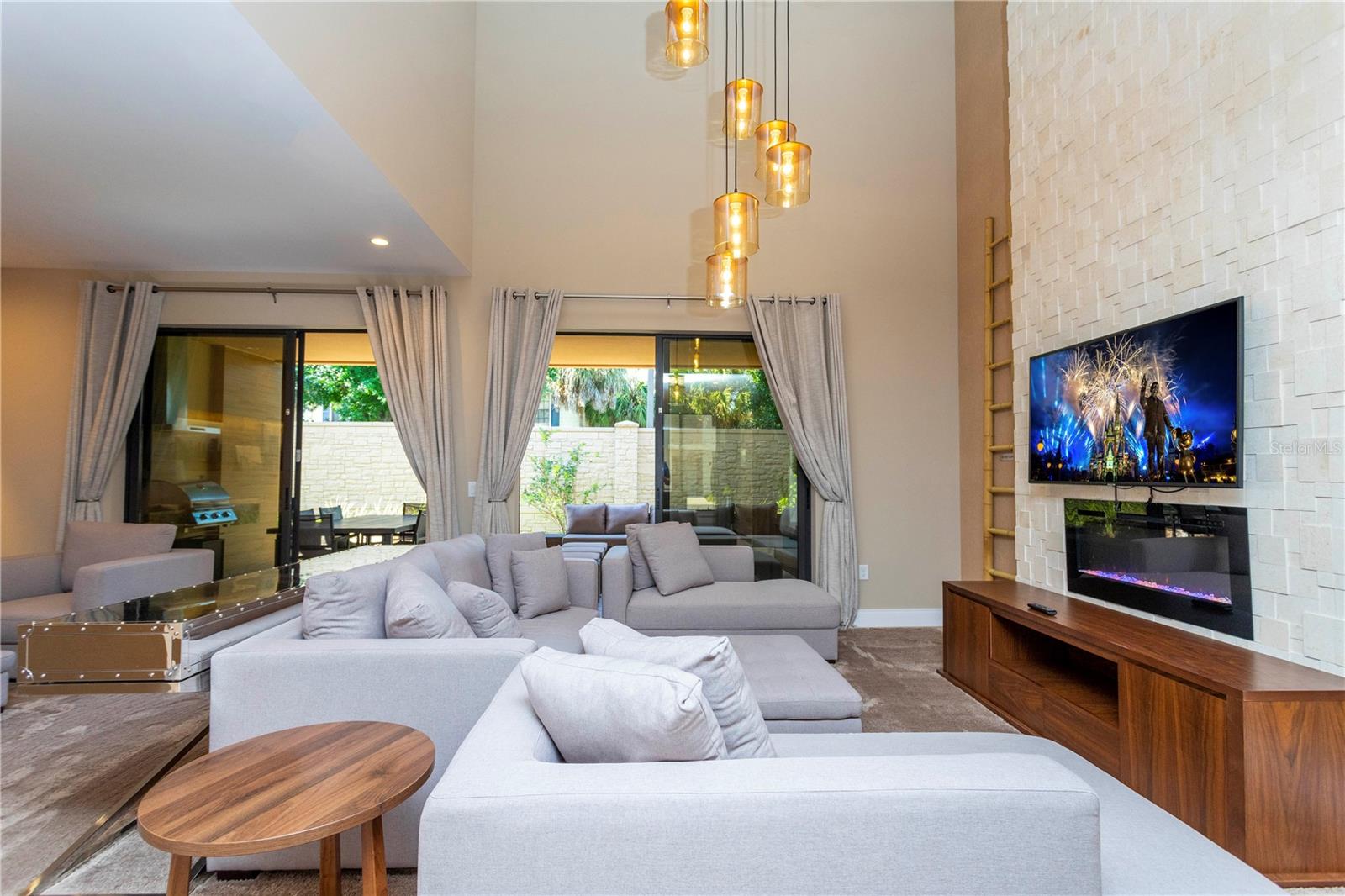 Inspired by sophistication and luxury this resort style townhome located in Magic Village is synonymous with elegance, modernity, and quality. This stunning 3 bedroom, 3.5 bath home features a gourmet kitchen with Samsung stainless steel appliances, granite counter tops and all wood cabinetry. This contemporary home features soaring floor to ceiling windows in the large family room with an electric fireplace. Just outside the family room is a nice covered patio with an outdoor summer kitchen and the outdoor dining area. Upstairs are the 3 spacious bedrooms each with their own private A large master retreat that features a separate seating area. The spa like master bathroom has a large shower and dual vanity. The house is fully furnished with a high end decoration designed by a famous Brazilian interior designer. Magic Village is a unique project that perfectly unites sophistication in design and excellence in Hospitality, offering a fantastic opportunity for investors who seek comfort, style and exclusivity in a vacation resort in Orlando. Magic Village provides full support in all stages, from the purchase of your vacation home all the way through its rental offering of five star hotel services.
