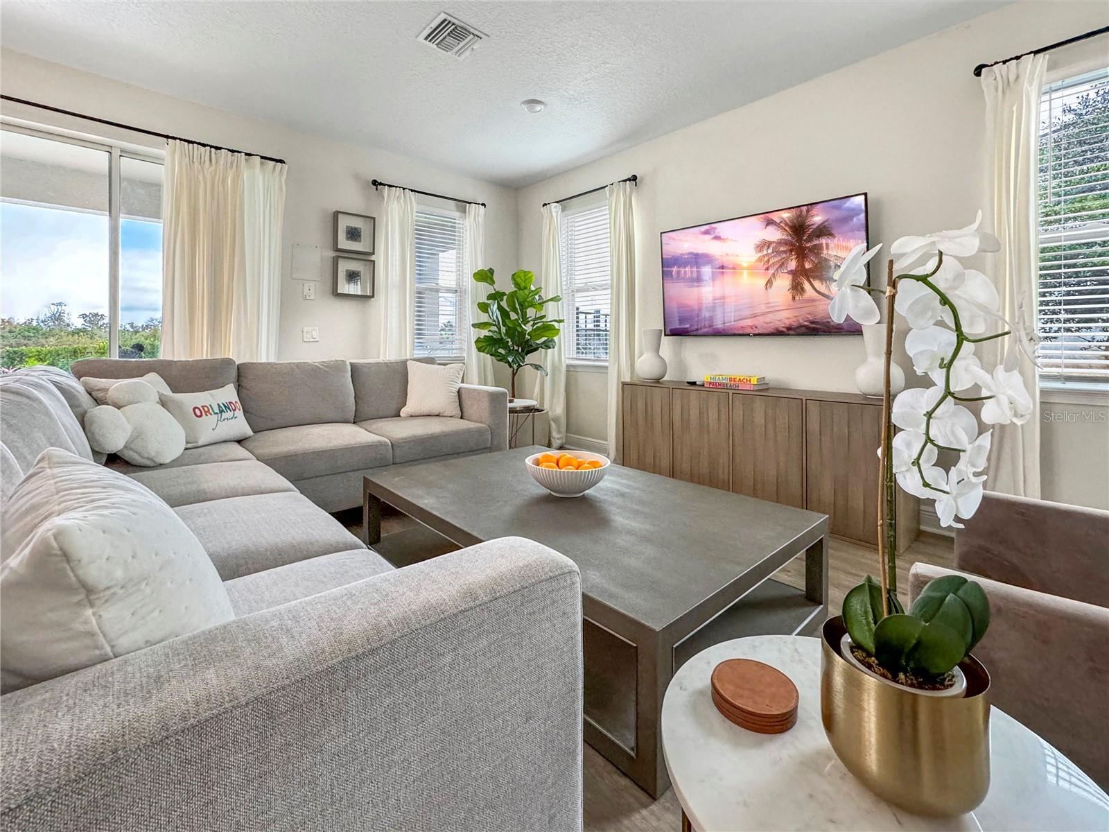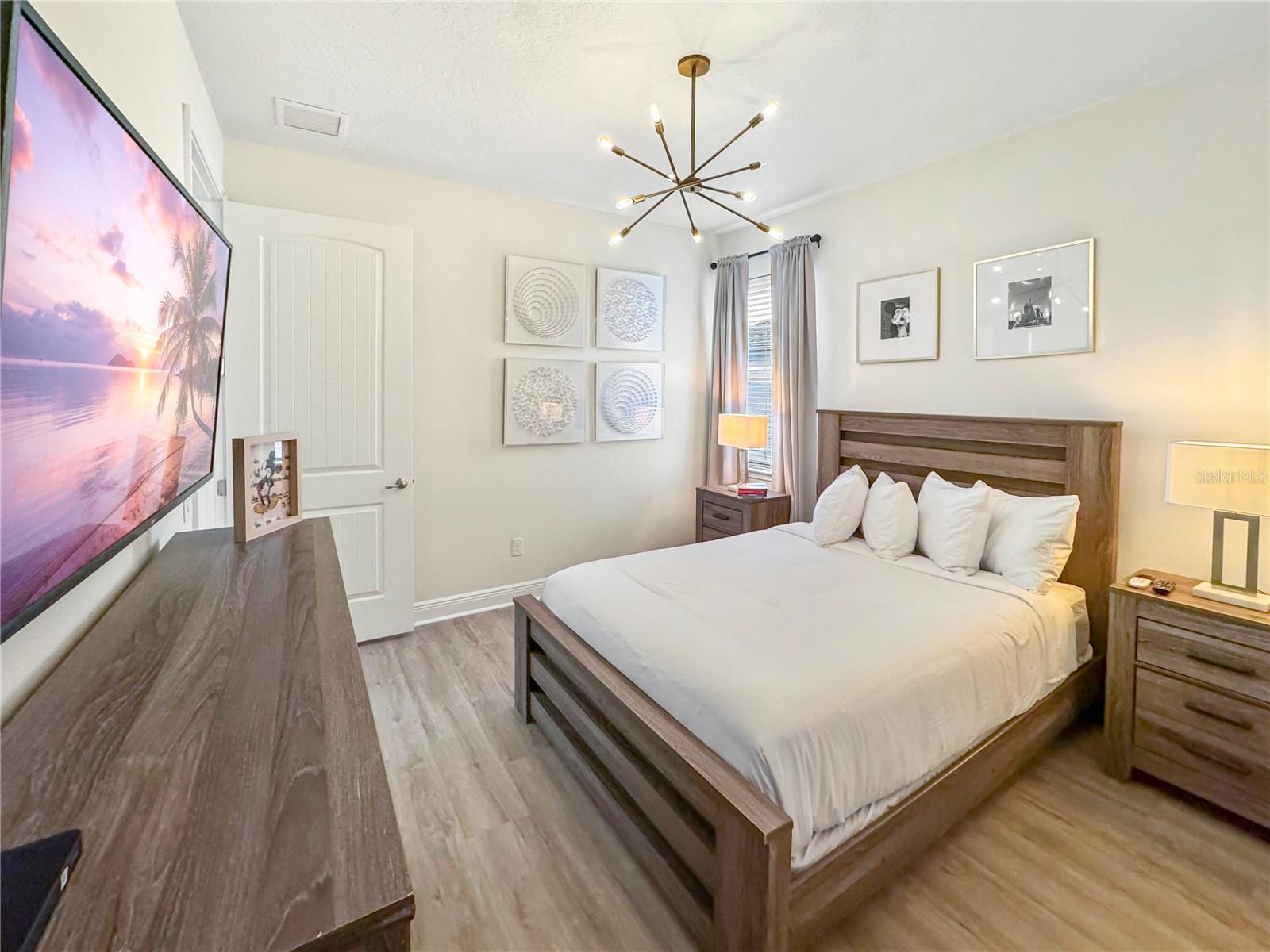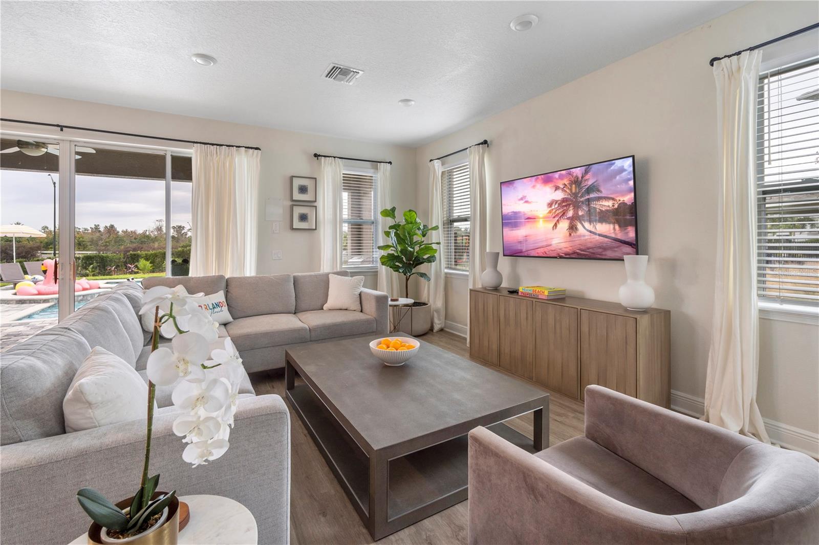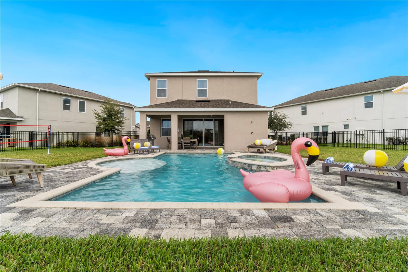 **Discover Your Dream Vacation Home or Investment Opportunity!** Step into luxury with this turn-key home, boasting over $100k in high-end upgrades, including new flooring, furniture, and exquisite decor. Perfectly situated on an oversized lot just over a quarter of an acre, this spacious 5-bedroom, 5-bathroom retreat is just 10 minutes from Disney! Located within the exclusive gated community of Encore Resort at Reunion, this property offers unparalleled amenities, including one of the area's only water parks. Enjoy endless fun in your backyard oasis featuring an extended covered lanai, a sparkling pool with a spa and splash area for kids, plus volleyball and soccer setups surrounded by lush greenery. Each of the five upstairs bedrooms comes with private en suite bathrooms, ensuring comfort and privacy for all. The HOA takes care of your pool, lawn, and landscape maintenance, giving you more time to indulge in the resort's luxury lifestyle. Encore Resort's spectacular neighborhood water park is a true gem, complemented by a cutting-edge gym, basketball, volleyball, and tennis courts. The Clubhouse offers a marketplace, casual bar, award-winning restaurants, and a concierge desk ready to assist with booking tickets, spa services, reservations, and resort-provided shuttles. Seize this incredible opportunity to own a slice of Central Florida paradise—ideal as a luxurious vacation home or a profitable investment property with flexible rental options!
