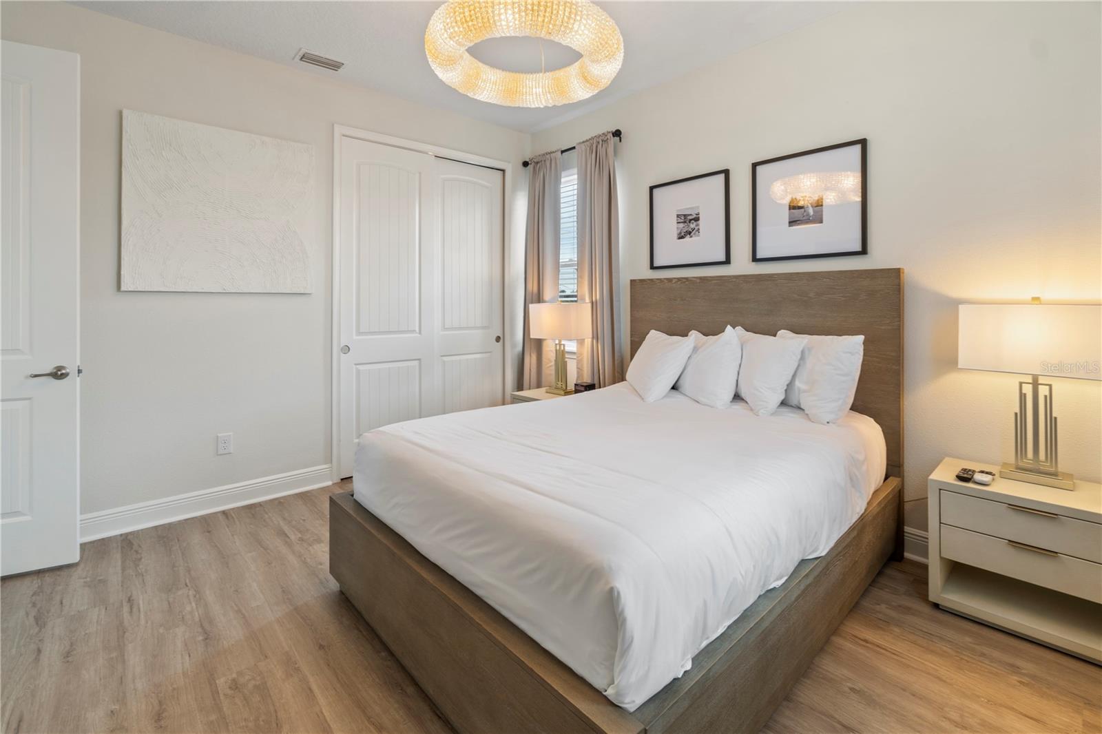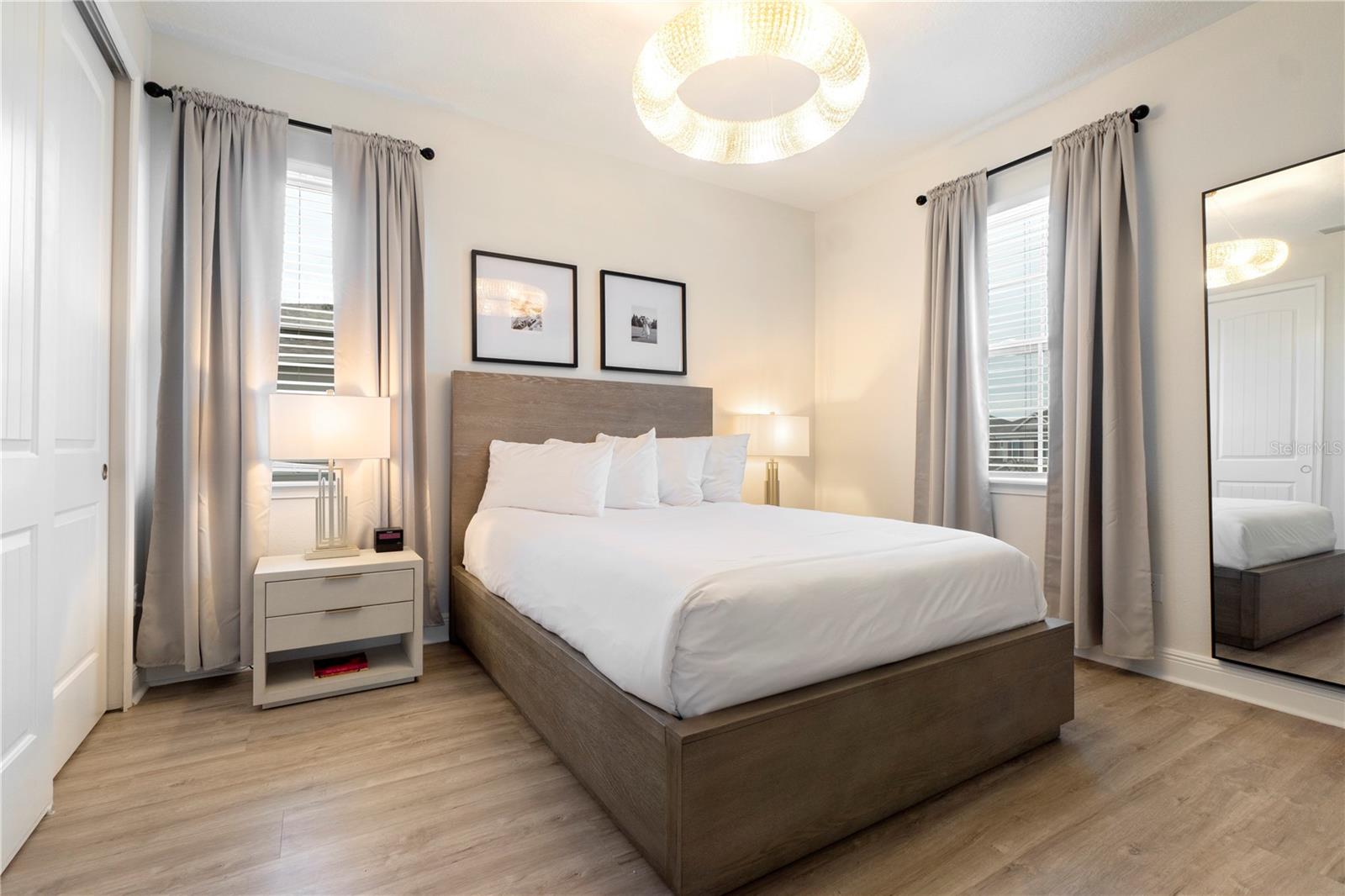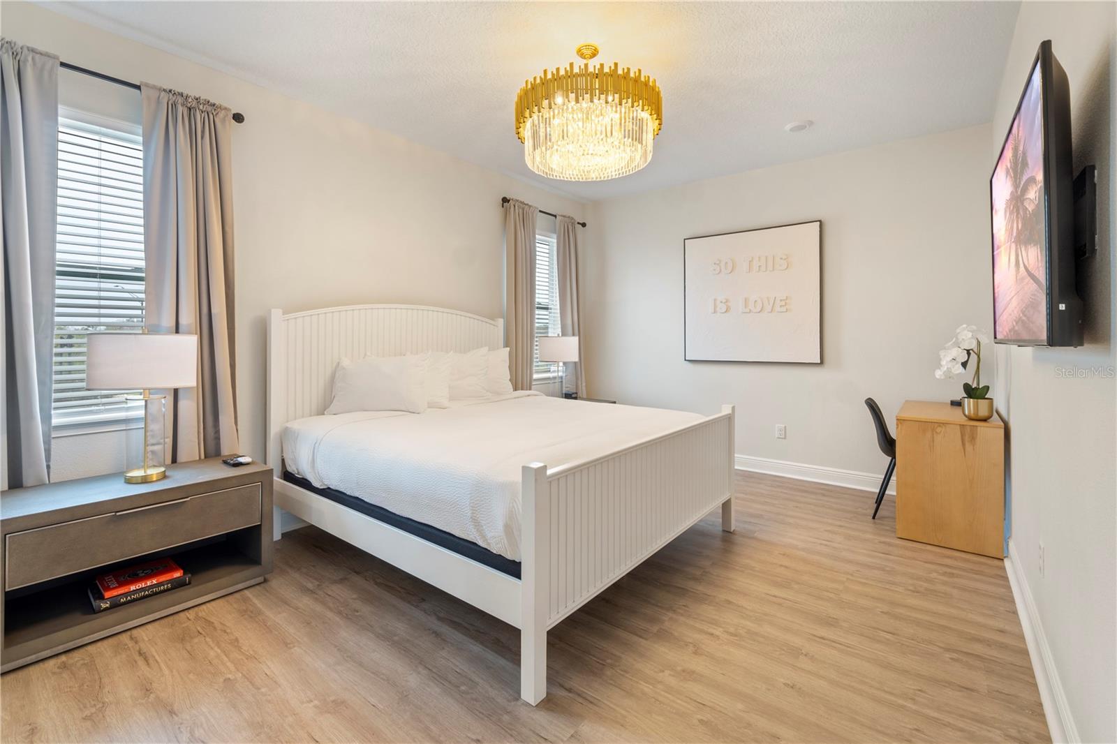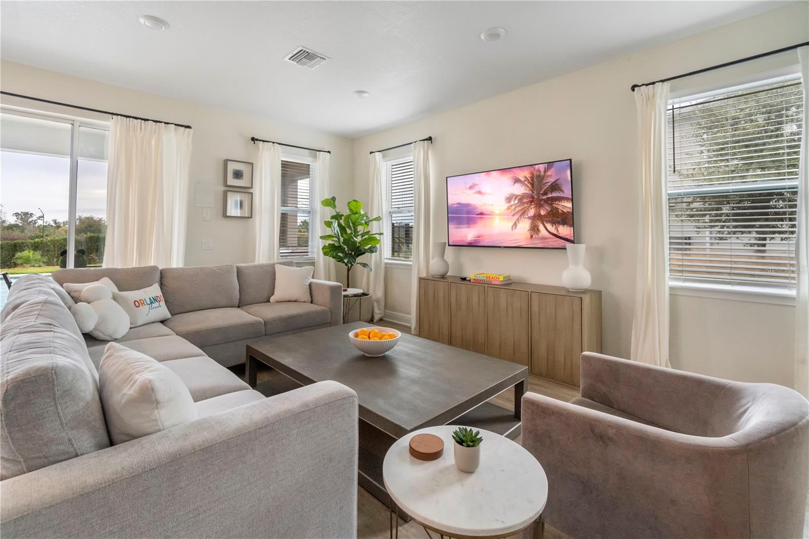 **Discover Your Dream Vacation Home or Investment Opportunity!** Step into luxury with this turn-key home, boasting over $100k in high-end upgrades, including new flooring, furniture, and exquisite decor. Perfectly situated on an oversized lot just over a quarter of an acre, this spacious 5-bedroom, 5-bathroom retreat is just 10 minutes from Disney! Located within the exclusive gated community of Encore Resort at Reunion, this property offers unparalleled amenities, including one of the area's only water parks. Enjoy endless fun in your backyard oasis featuring an extended covered lanai, a sparkling pool with a spa and splash area for kids, plus volleyball and soccer setups surrounded by lush greenery. Each of the five upstairs bedrooms comes with private en suite bathrooms, ensuring comfort and privacy for all. The HOA takes care of your pool, lawn, and landscape maintenance, giving you more time to indulge in the resort's luxury lifestyle. Encore Resort's spectacular neighborhood water park is a true gem, complemented by a cutting-edge gym, basketball, volleyball, and tennis courts. The Clubhouse offers a marketplace, casual bar, award-winning restaurants, and a concierge desk ready to assist with booking tickets, spa services, reservations, and resort-provided shuttles. Seize this incredible opportunity to own a slice of Central Florida paradise—ideal as a luxurious vacation home or a profitable investment property with flexible rental options!