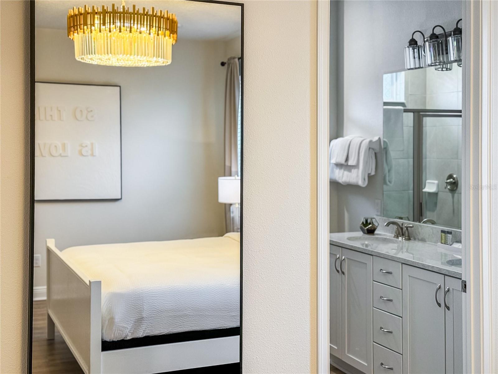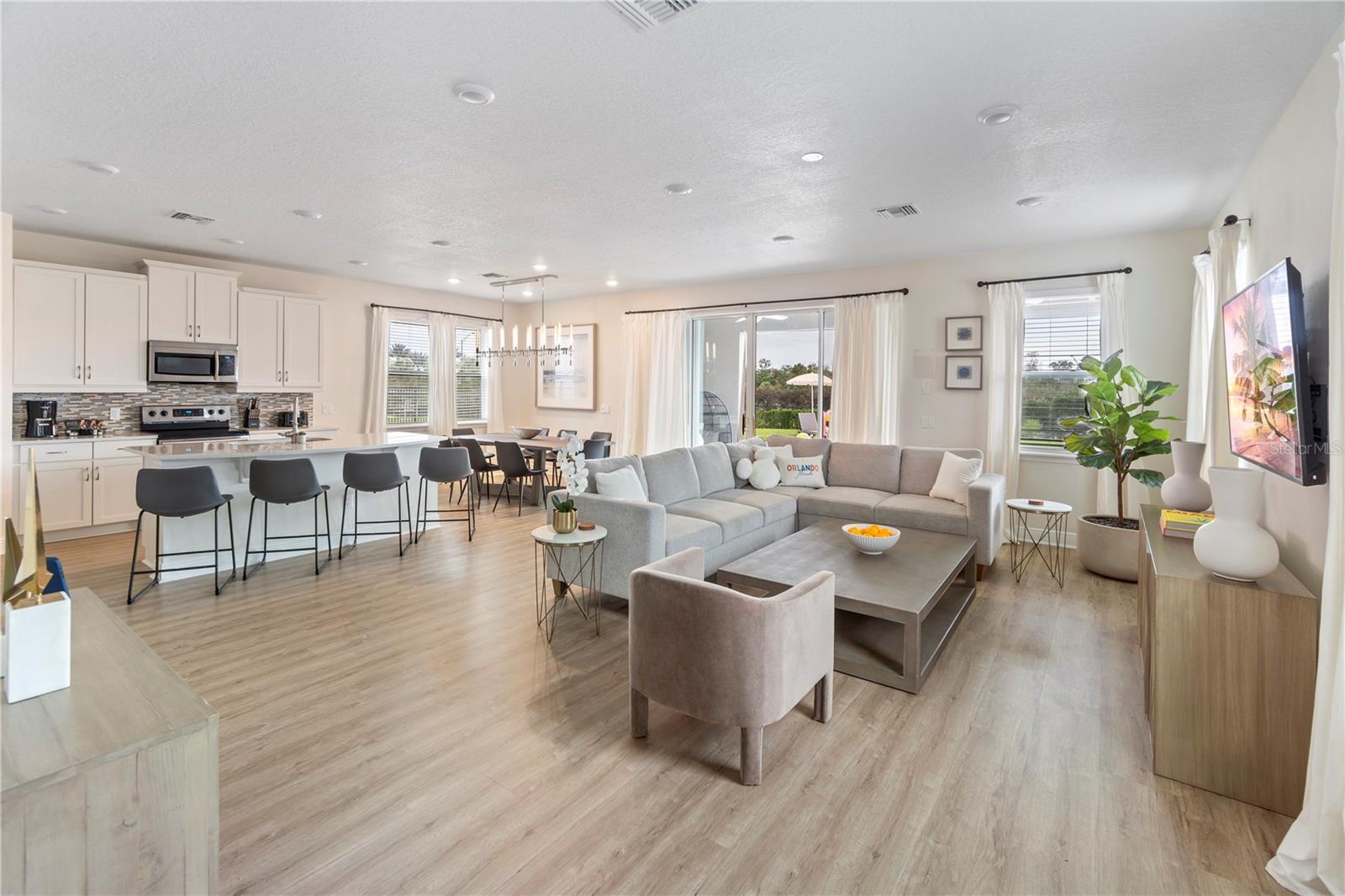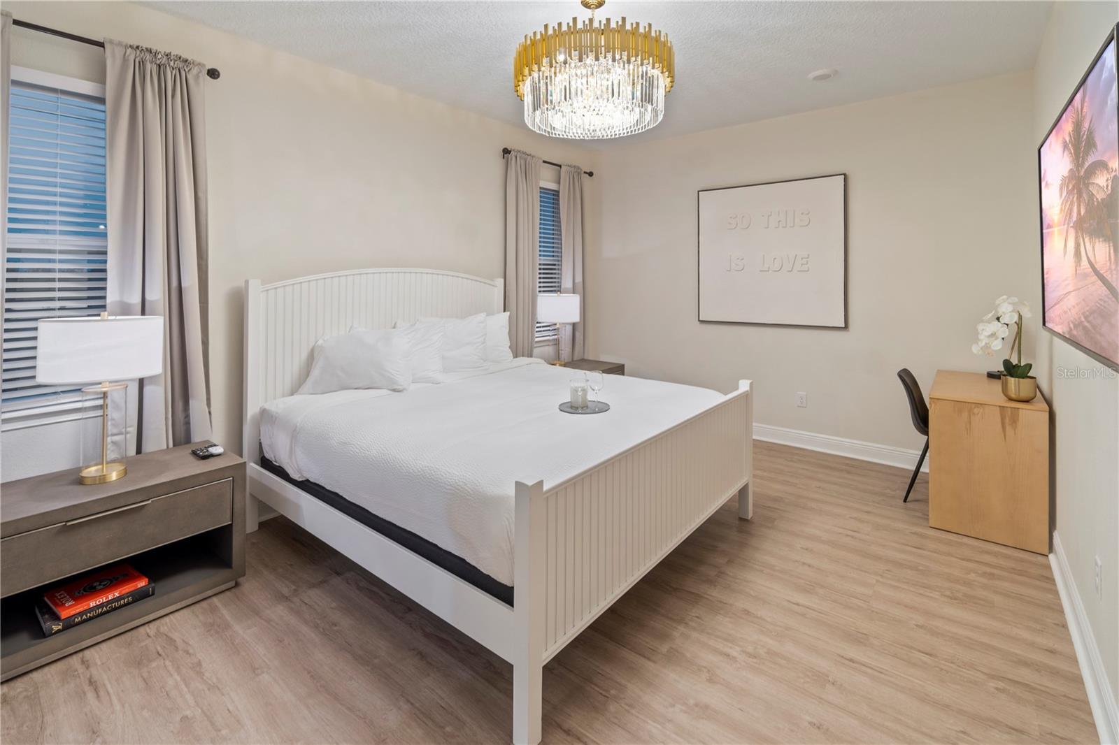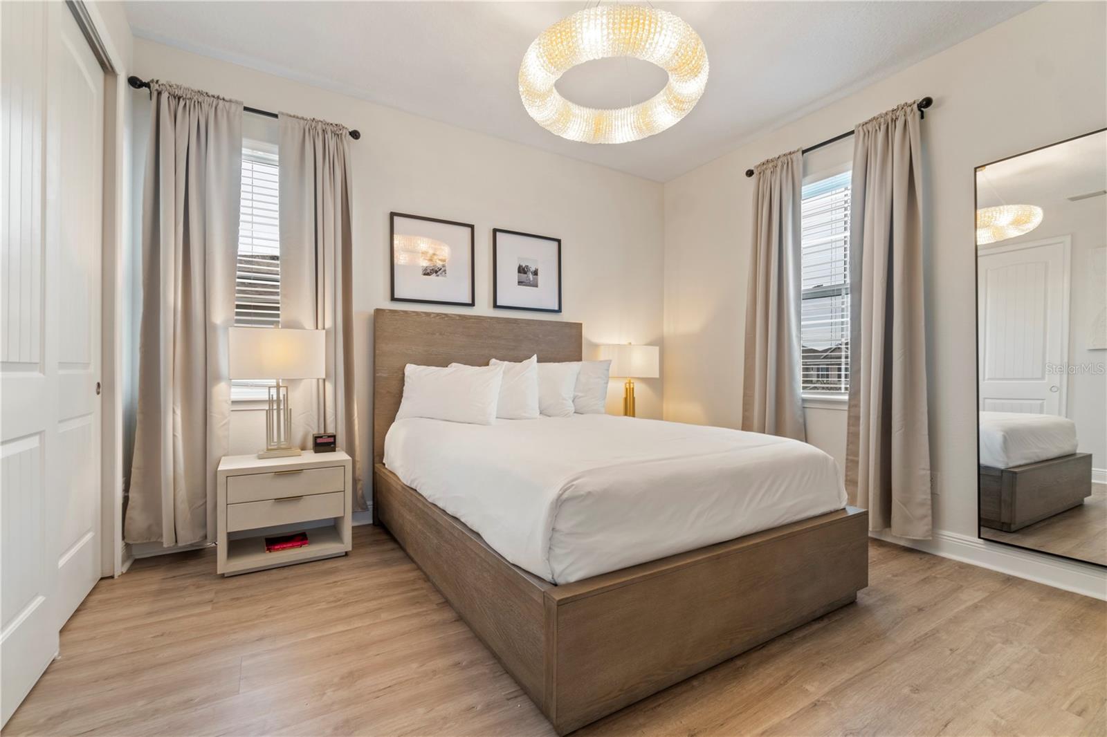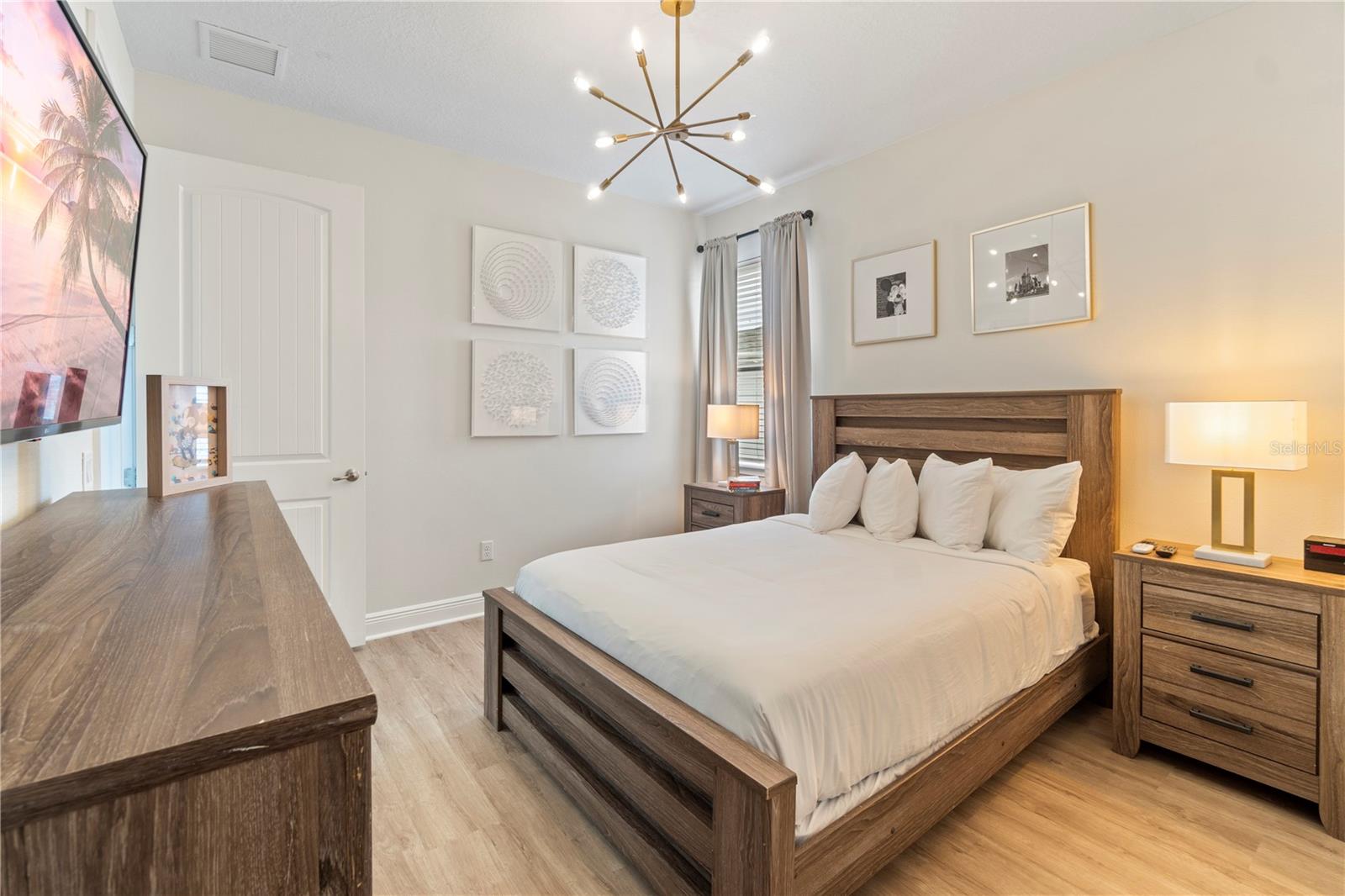 **Discover Your Dream Vacation Home or Investment Opportunity!** Step into luxury with this turn-key home, boasting over $100k in high-end upgrades, including new flooring, furniture, and exquisite decor. Perfectly situated on an oversized lot just over a quarter of an acre, this spacious 5-bedroom, 5-bathroom retreat is just 10 minutes from Disney! Located within the exclusive gated community of Encore Resort at Reunion, this property offers unparalleled amenities, including one of the area's only water parks. Enjoy endless fun in your backyard oasis featuring an extended covered lanai, a sparkling pool with a spa and splash area for kids, plus volleyball and soccer setups surrounded by lush greenery. Each of the five upstairs bedrooms comes with private en suite bathrooms, ensuring comfort and privacy for all. The HOA takes care of your pool, lawn, and landscape maintenance, giving you more time to indulge in the resort's luxury lifestyle. Encore Resort's spectacular neighborhood water park is a true gem, complemented by a cutting-edge gym, basketball, volleyball, and tennis courts. The Clubhouse offers a marketplace, casual bar, award-winning restaurants, and a concierge desk ready to assist with booking tickets, spa services, reservations, and resort-provided shuttles. Seize this incredible opportunity to own a slice of Central Florida paradise—ideal as a luxurious vacation home or a profitable investment property with flexible rental options!