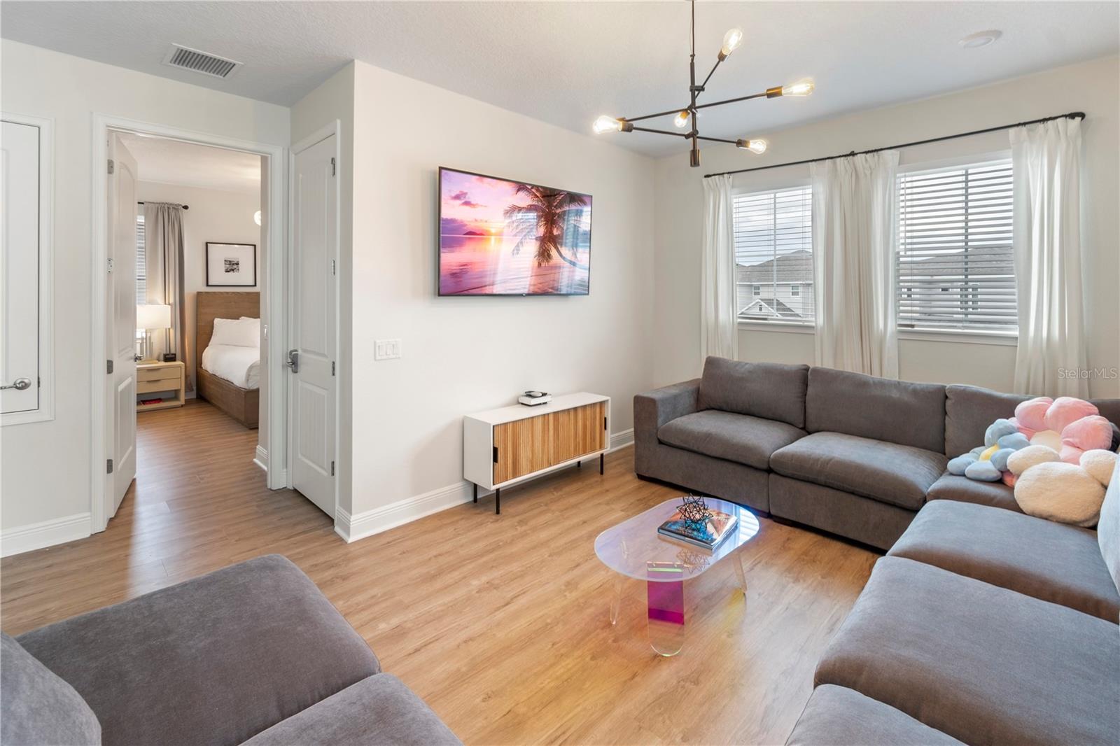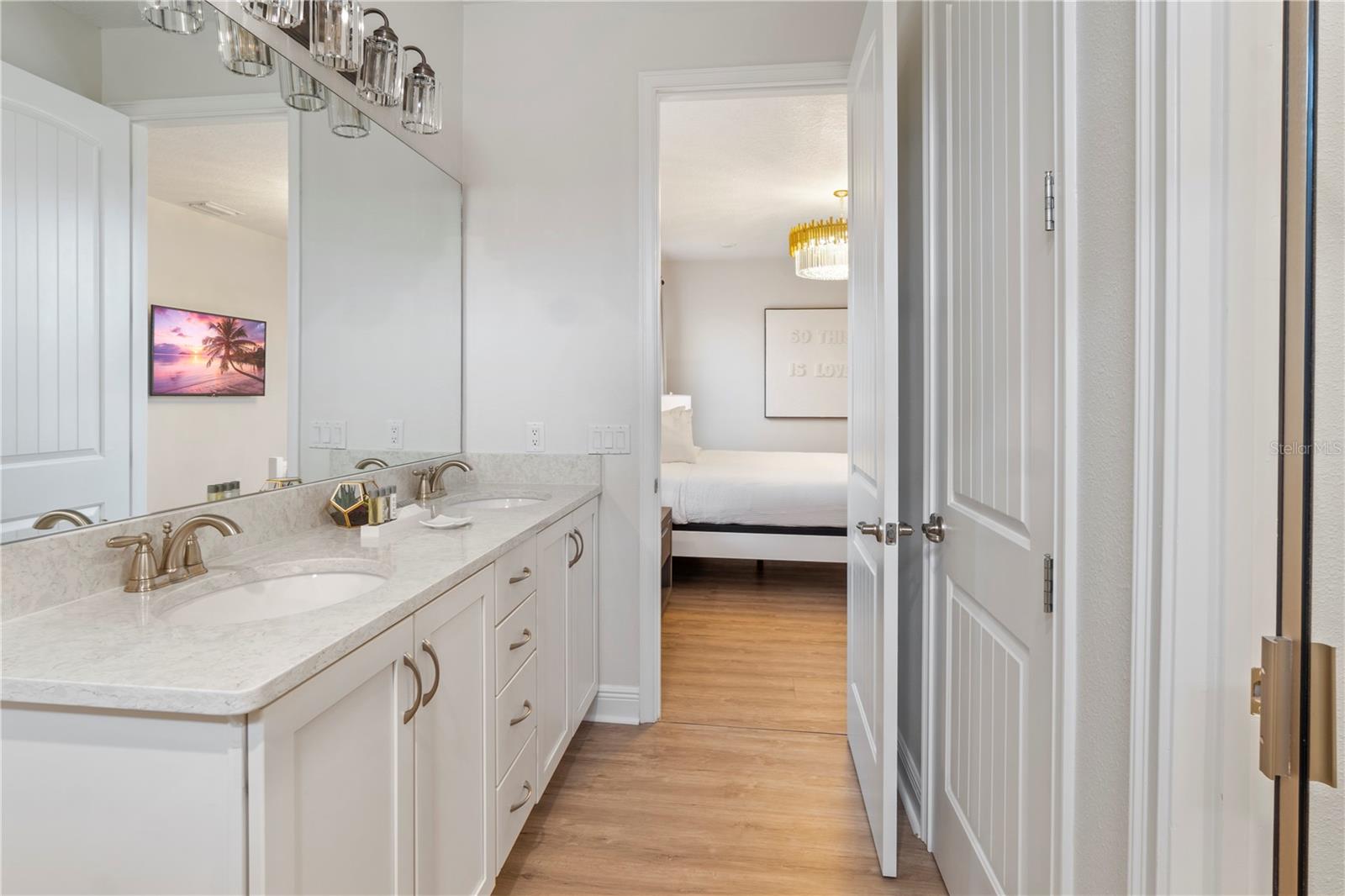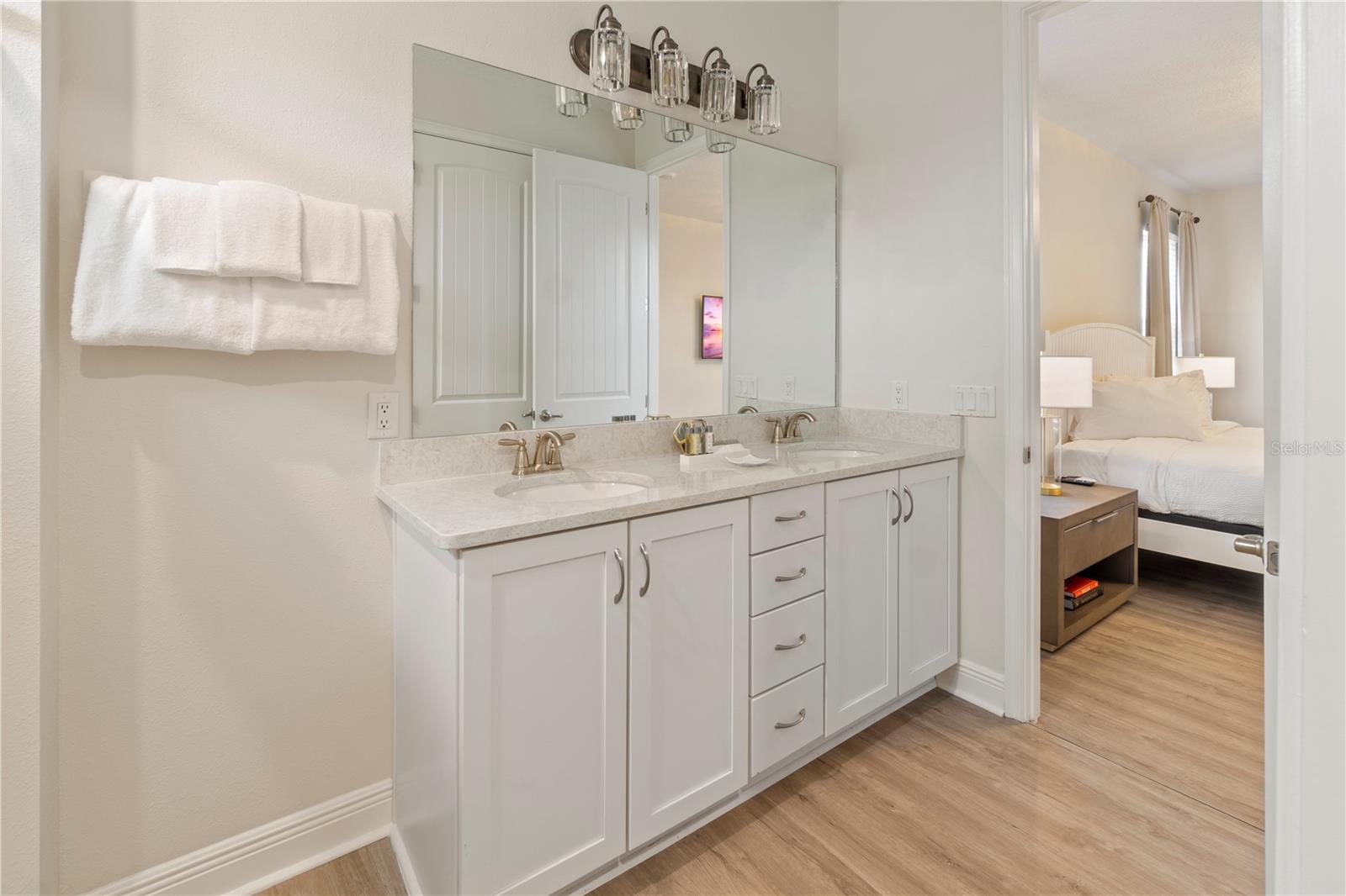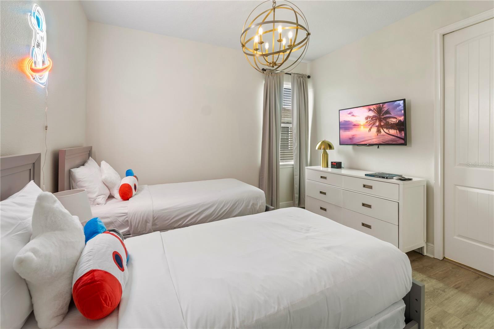 **Discover Your Dream Vacation Home or Investment Opportunity!** Step into luxury with this turn-key home, boasting over $100k in high-end upgrades, including new flooring, furniture, and exquisite decor. Perfectly situated on an oversized lot just over a quarter of an acre, this spacious 5-bedroom, 5-bathroom retreat is just 10 minutes from Disney! Located within the exclusive gated community of Encore Resort at Reunion, this property offers unparalleled amenities, including one of the area's only water parks. Enjoy endless fun in your backyard oasis featuring an extended covered lanai, a sparkling pool with a spa and splash area for kids, plus volleyball and soccer setups surrounded by lush greenery. Each of the five upstairs bedrooms comes with private en suite bathrooms, ensuring comfort and privacy for all. The HOA takes care of your pool, lawn, and landscape maintenance, giving you more time to indulge in the resort's luxury lifestyle. Encore Resort's spectacular neighborhood water park is a true gem, complemented by a cutting-edge gym, basketball, volleyball, and tennis courts. The Clubhouse offers a marketplace, casual bar, award-winning restaurants, and a concierge desk ready to assist with booking tickets, spa services, reservations, and resort-provided shuttles. Seize this incredible opportunity to own a slice of Central Florida paradise—ideal as a luxurious vacation home or a profitable investment property with flexible rental options!