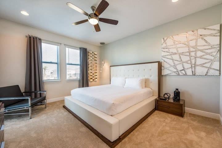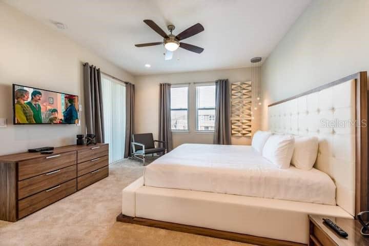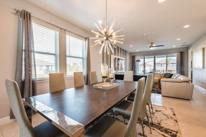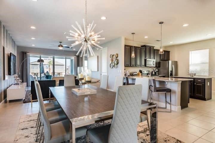 TRUE PARDISE AT ENCORE, and the best price for its size in the area. Sooo many upgrades to list which includes a fantastic Kitchen and themed bedrooms. This home is light and bright, elegant and beautiful! The moment you ste in this luxury property you will notice the meticulous care, love and attention the current owners have invested into this fully furnished, pool home.it is a great income producing property, Located in spectacular guard gated Encore Resort, a prime location in Orlando, packed with onsite amenities and with less than a 15 minute ride to Walt Disney World and other Theme Parks. This home comes fully furnished and vacation home ready with professionally designed, high end interior decor, and quality furniture, all included in the list price.This two-story residence features stunning custom design finishes for a relaxing lifestyle and an unforgettable getaway experience. Lots of living space. Plenty of parking on oversized driveway.