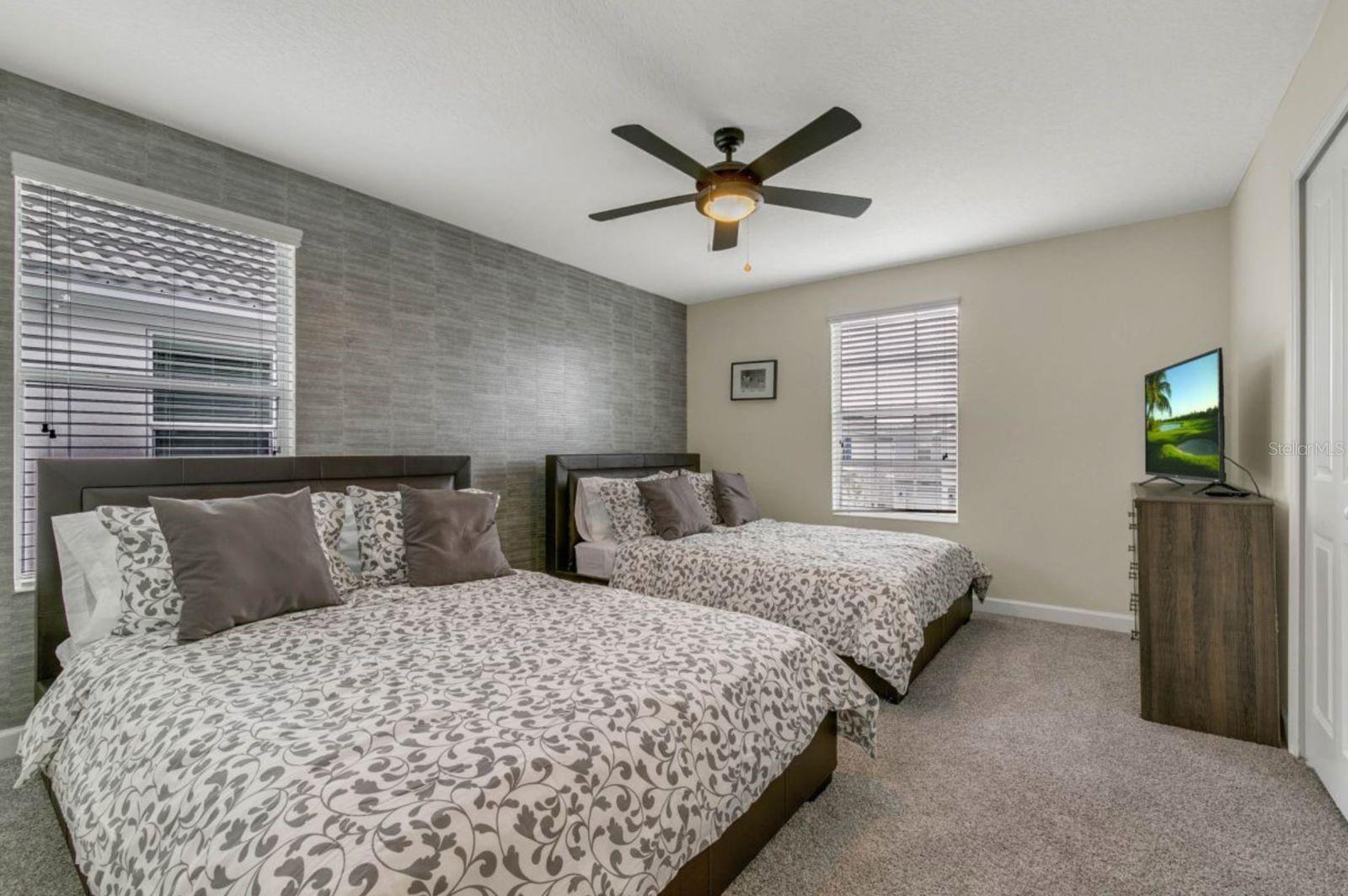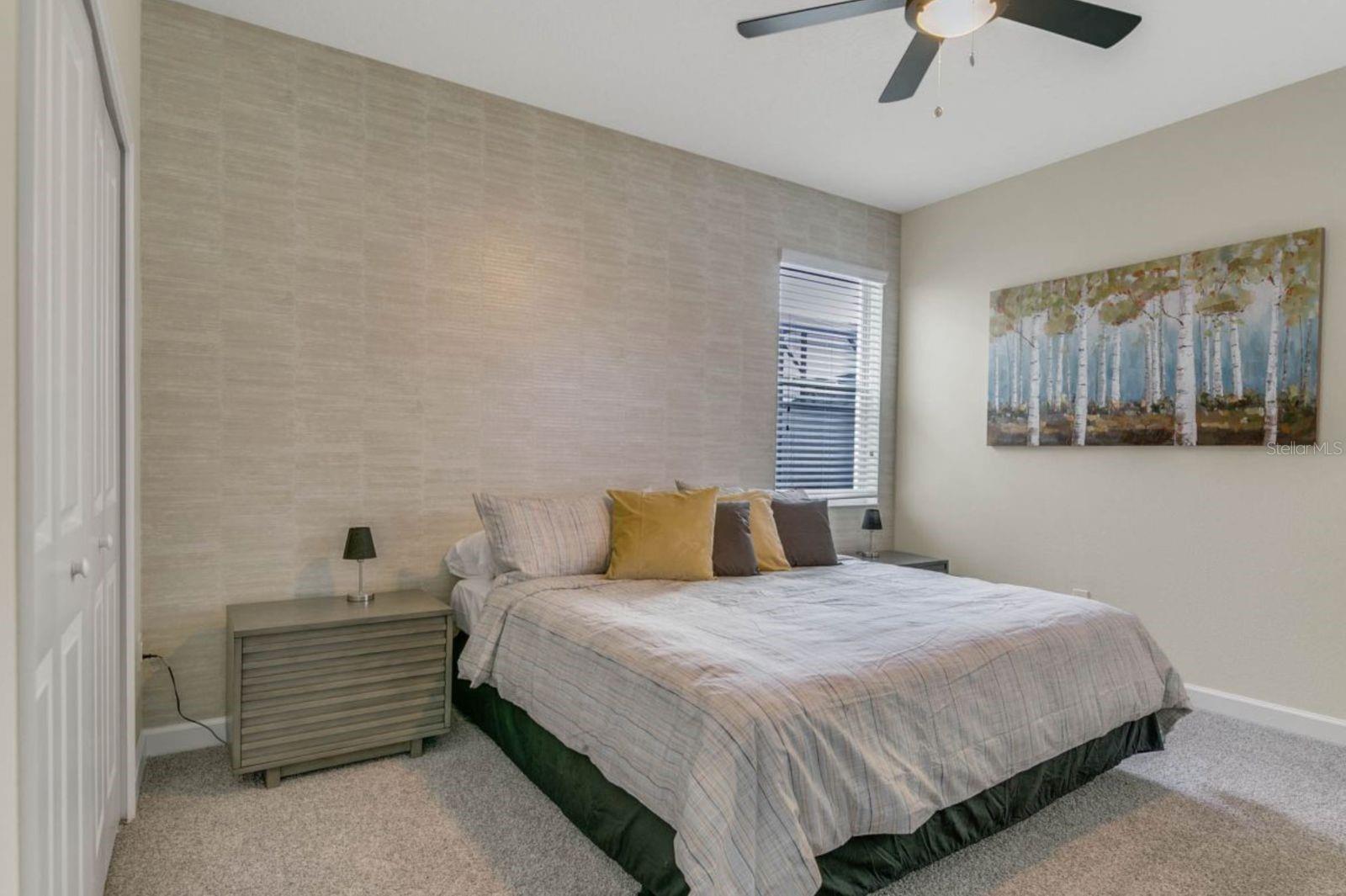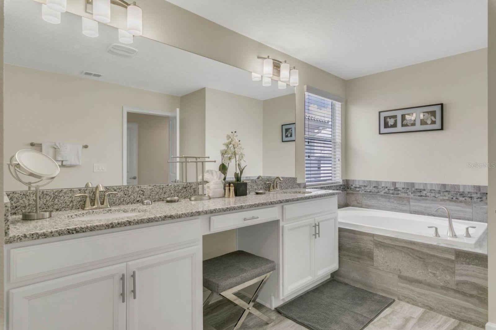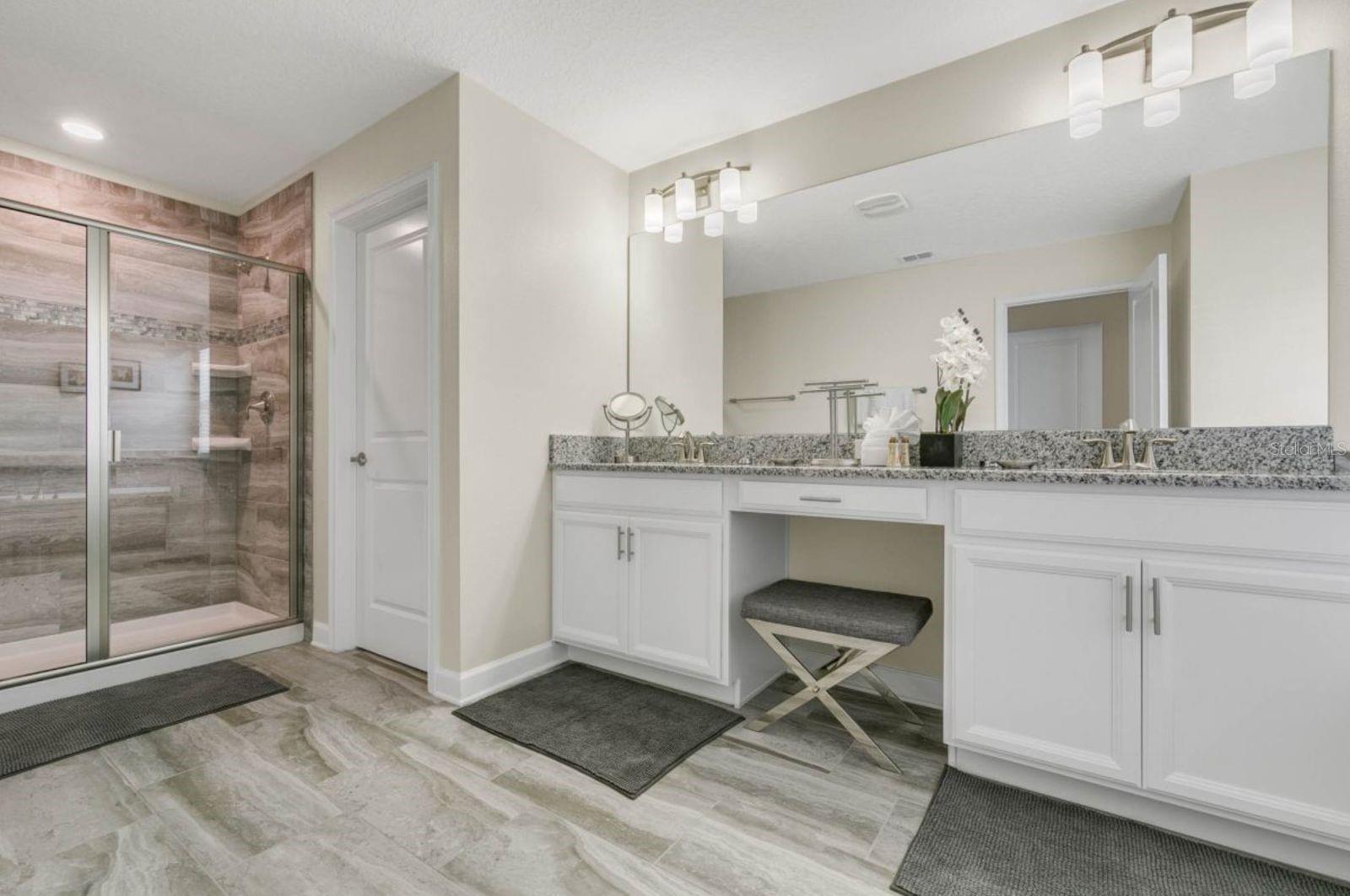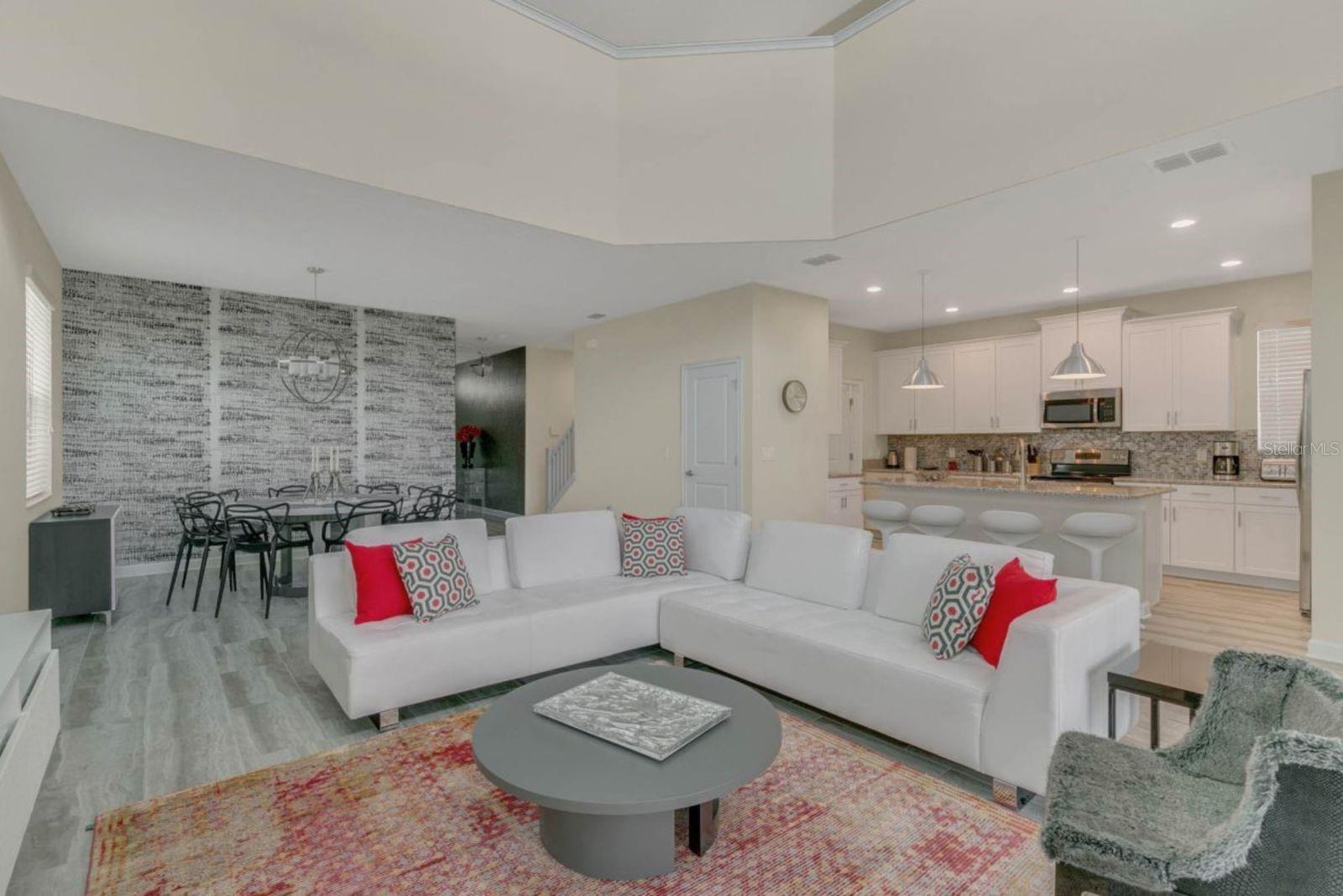Welcome to your dream vacation getaway at the renowned Storey Lake Resort! This magnificent 5-bedroom, 5-bathroom home is the perfect blend of luxury and comfort, offering an unforgettable retreat just moments away from the magic of Disney. As you enter, you're greeted by an expansive open floorplan that effortlessly merges a spacious living area, an elegant dining space, and a gourmet kitchen featuring sleek granite countertops and stainless steel appliances. The home’s light and airy tones create a refreshing ambiance, while the kitchen island adds extra seating for family gatherings. The master suite is a true haven, offering plenty of room and a walk-in closet for added convenience. Upstairs, you'll discover a versatile loft space, ideal for lounging or entertaining. Each bedroom is generously sized, giving everyone their own private space to unwind. Step outside into your personal sanctuary – a screened-in pool area complete with a heated spa, perfect for soaking up the Florida sunshine in privacy. Create lasting memories in this stunning outdoor space designed for relaxation. As a guest of Storey Lake Resort, you’ll enjoy a wealth of top-tier amenities. The resort’s clubhouse offers a tiki bar/grille, canoe and kayak rentals, a lazy river, fitness center, mini-golf, a refreshing pool, splash pad, double slide, volleyball, and sports courts. What truly sets this home apart is its exceptional decor, rivaling that of a model home with its elegance. Fully furnished and ready to host, it’s the ideal setting for your vacation. Located just minutes from Disney, Orlando International Airport, International Drive, Seaworld, Universal Studios, and the Premium Outlet Malls, convenience is always at your fingertips. Don’t miss the chance to experience this extraordinary escape. Schedule your showing today and start your journey to the ultimate vacation!