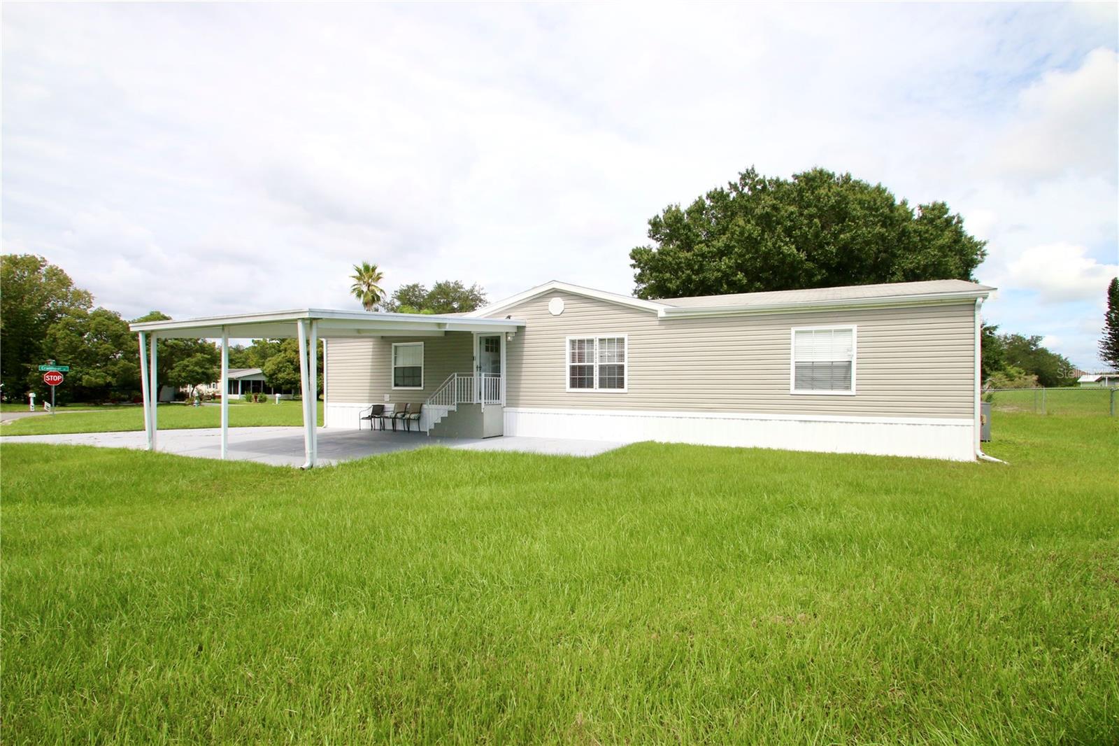 $2,000.00 back towards buyer closing cost!!!Reduced Price....Price to sell....You Own Your Land!!! This meticulously maintained oversized corner lot Manufactured Home was Built in 2005. Property has 2 large bedrooms with walk-in closets and an oversized master bedroom that fits 2 king size beds with lots of space to play. Upon entering into the front door, it has a great open feel with cathedral ceilings throughout! Kitchen offers a breakfast table for quick meals. Spacious dining room and living room combo. All kitchen appliances are included, water filtration system (Aqua Kleen), washer and dryer, and 2in wood faux blinds on every window. This home also contains two Master bedrooms! To the rare of the house is a covered lanai and includes a sturdy workbench and connected workshop area! The HOA takes care of all of the yard cutting, and access to the community center and pool. The Master HOA fee includes Spectrum Cable TV. This property is located just a few minutes away from schools, restaurants, supermarkets, Poinciana Sunrail, and Downtown Kissimmee. Property won't last long. Easy to show! Schedule your showing today. Pet on property.