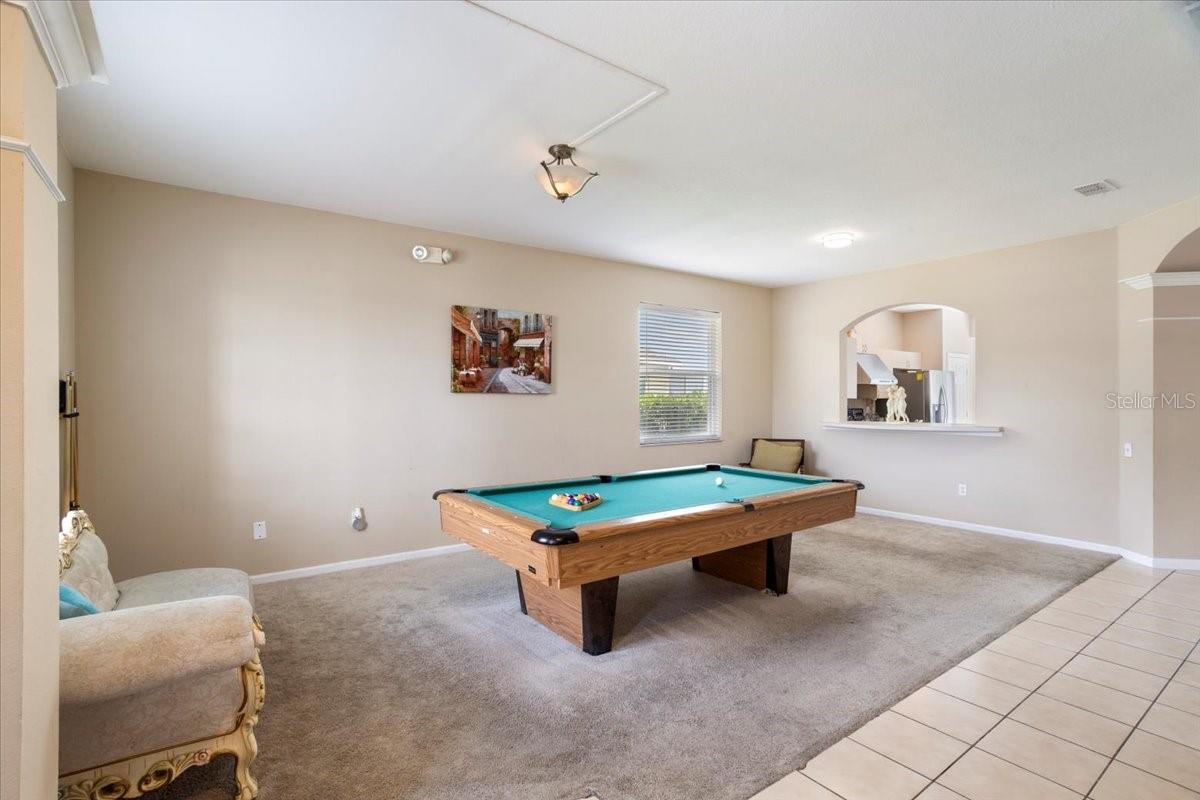 Welcome to this beautiful 6 Bed/4 Bath single family house in Wyndham Palms, a gated community with collections of fun and entertaining amenities. Fully furnished and decorated, it's turn-key ready for owner use or turn into vacation home rental property. First floor features spacious living room/ open kitchen combo, family room with pool table, and a private swimming pool with screen enclosure. Master bedroom features double door entry and vaulted ceiling, dual vanity sinks, a garden tub and separate shower. This germ is located in the one of the top vacation rental communities in the area, less than five miles to Disney World. The 7500 sq. ft. clubhouse filled with arcade games, ping-pong tables, fitness center, movie theater, wi-fi & convenience store and more much. Enjoy the tiki bar and grill and relax in the large community swimming pool, lounge area with separate kiddie pool & spa. Amenities also include playground, bbq/picnic area, tennis, basketball & volleyball courts. It's the whole vacation package for everyone! Schedule a private showing today and make this beautiful house your new residence...