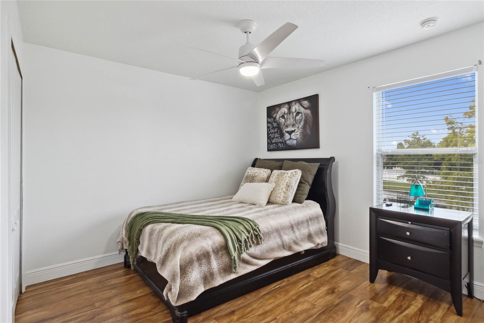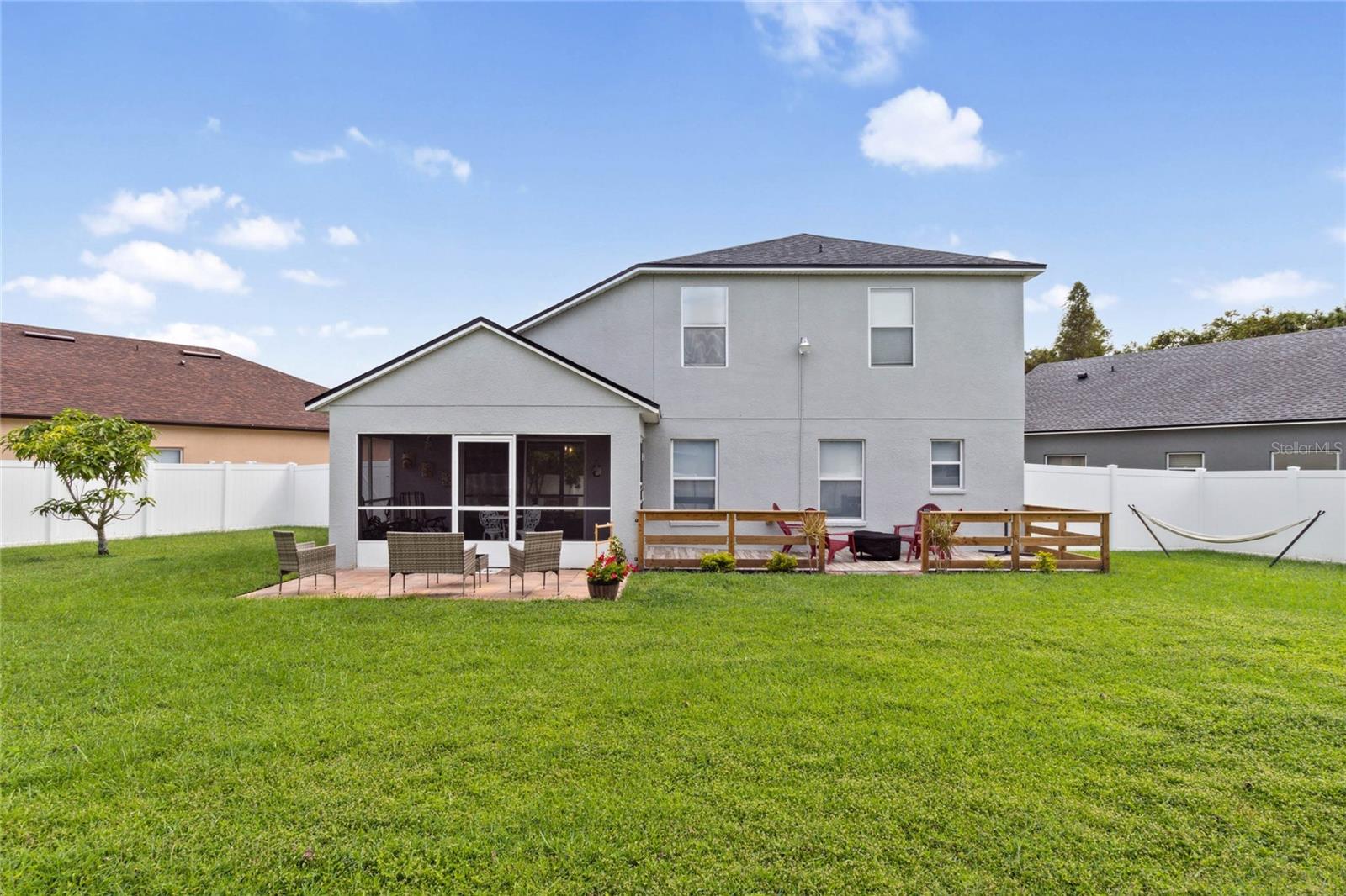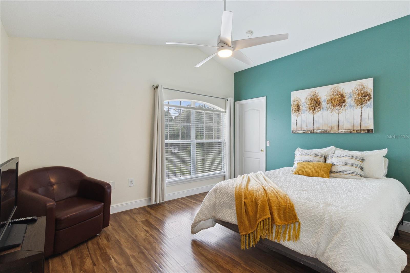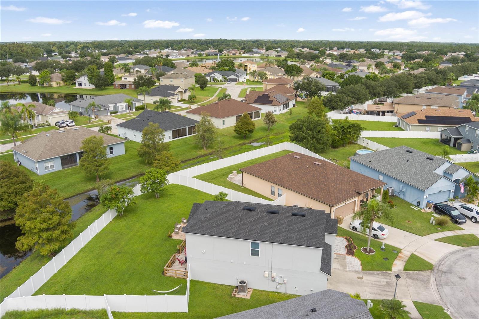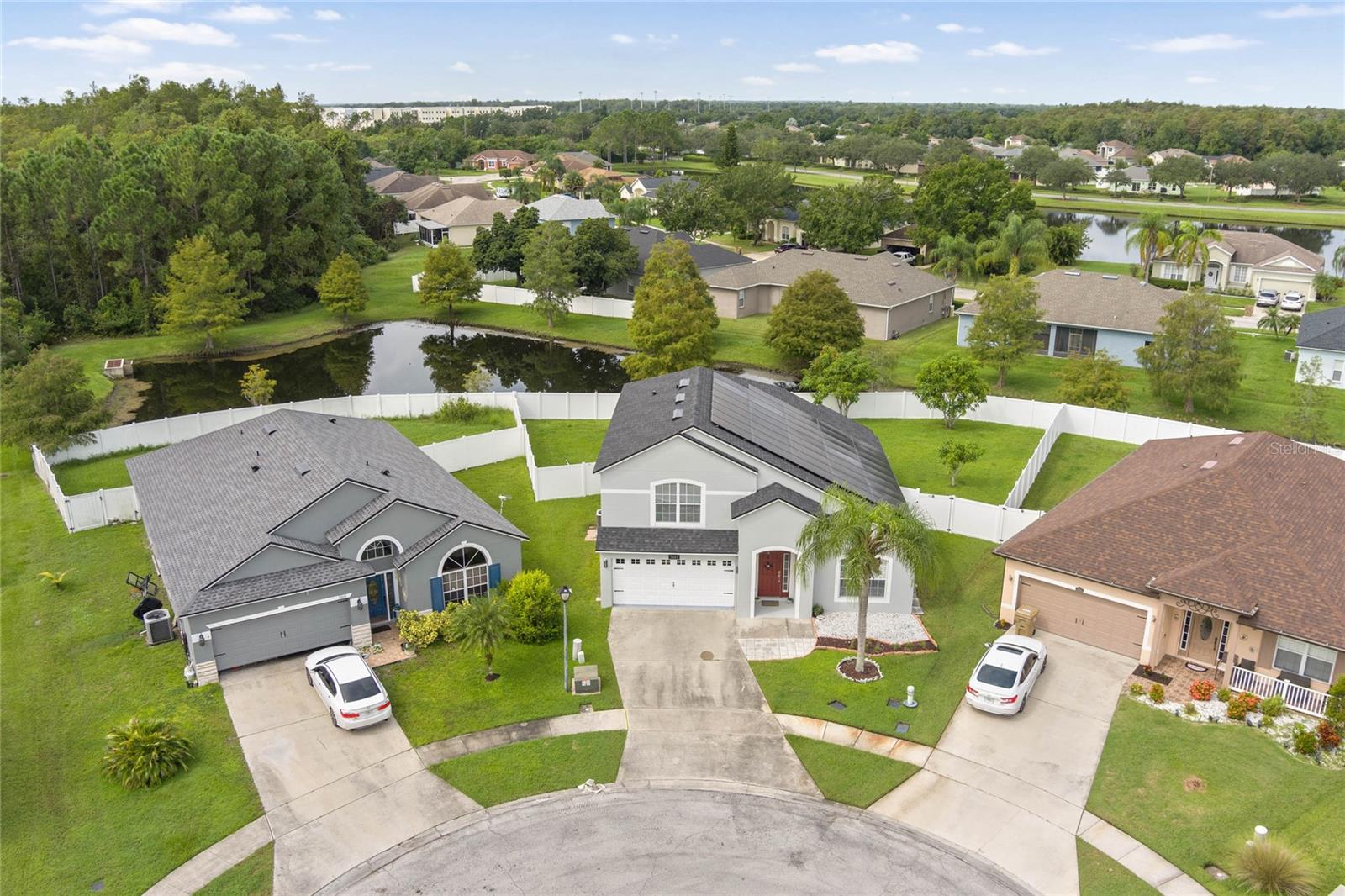 Welcome to this stunning two-story home nestled within a very pleasant guard-gated community, offering both privacy and security. Located on a tranquil cul-de-sac street, this residence features a spacious and meticulously extended landscaped backyard, enclosed by a beautiful fence—perfect for outdoor gatherings and relaxation with a backdoor to the pond. The Primary bedroom, located at the first floor has a stunning view to the backyard. Inside, you'll be captivated by the exquisitely decorated, upgraded kitchen, complete with top-of-the-line appliances, elegant countertops, and stylish cabinetry. Additional highlights include a fully paid-for solar panel system, providing energy efficiency and cost savings, and a water filtration system for clean and fresh water throughout the home. The a/c units is from 2022 and the roof was completely replaced in 2024. Conveniently situated just 15 minutes from the airport and 10 minutes from Lake Nona Medical facilities, this property offers luxury, affordability and accessibility, creating an ideal haven for everyday life.