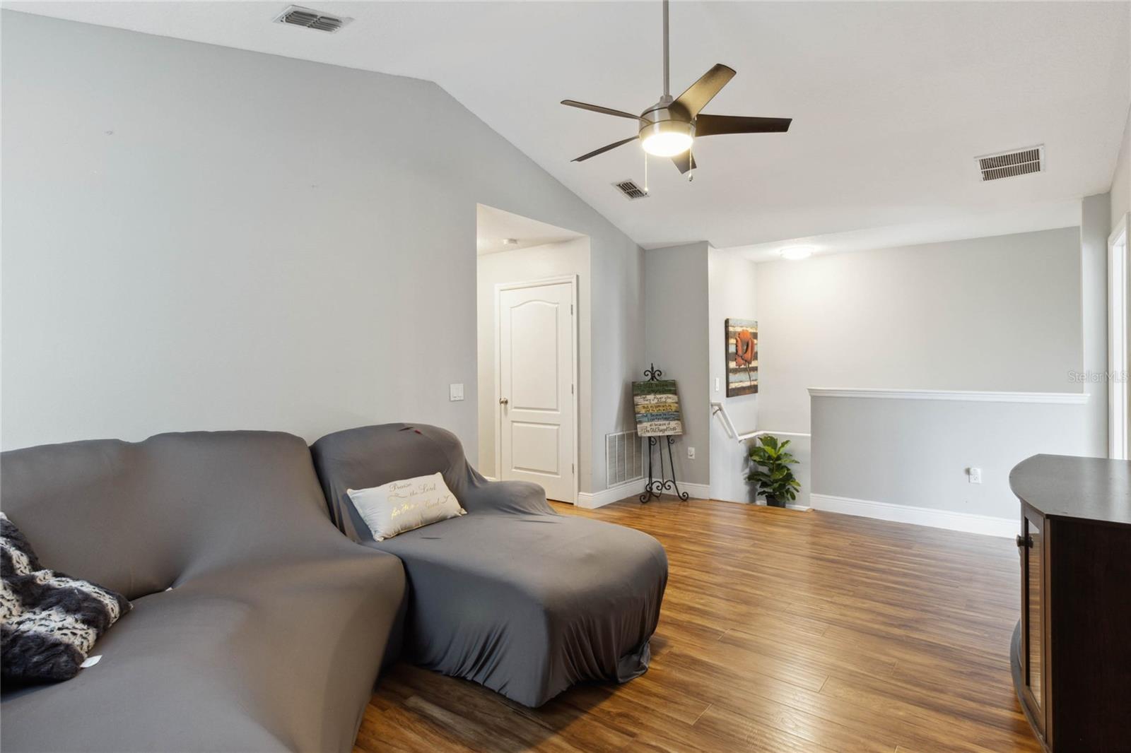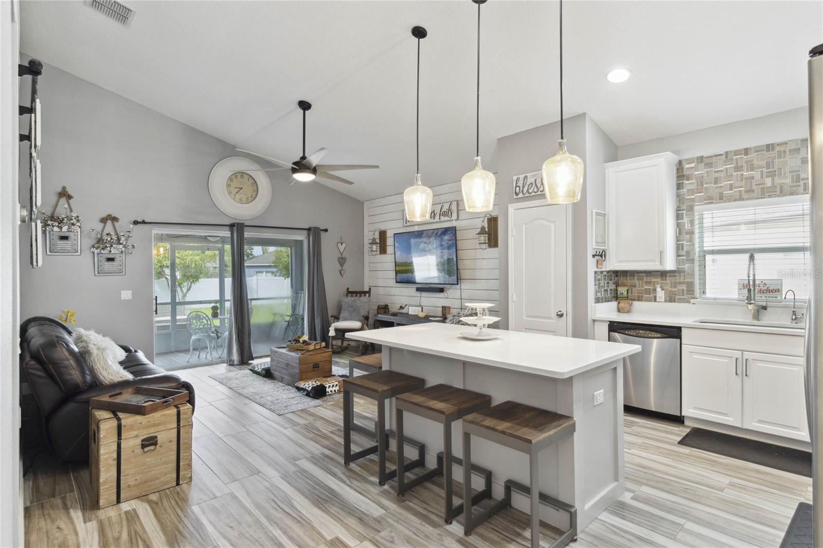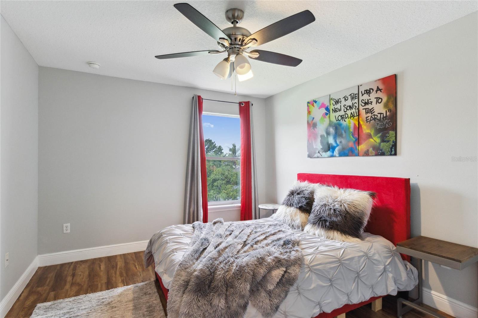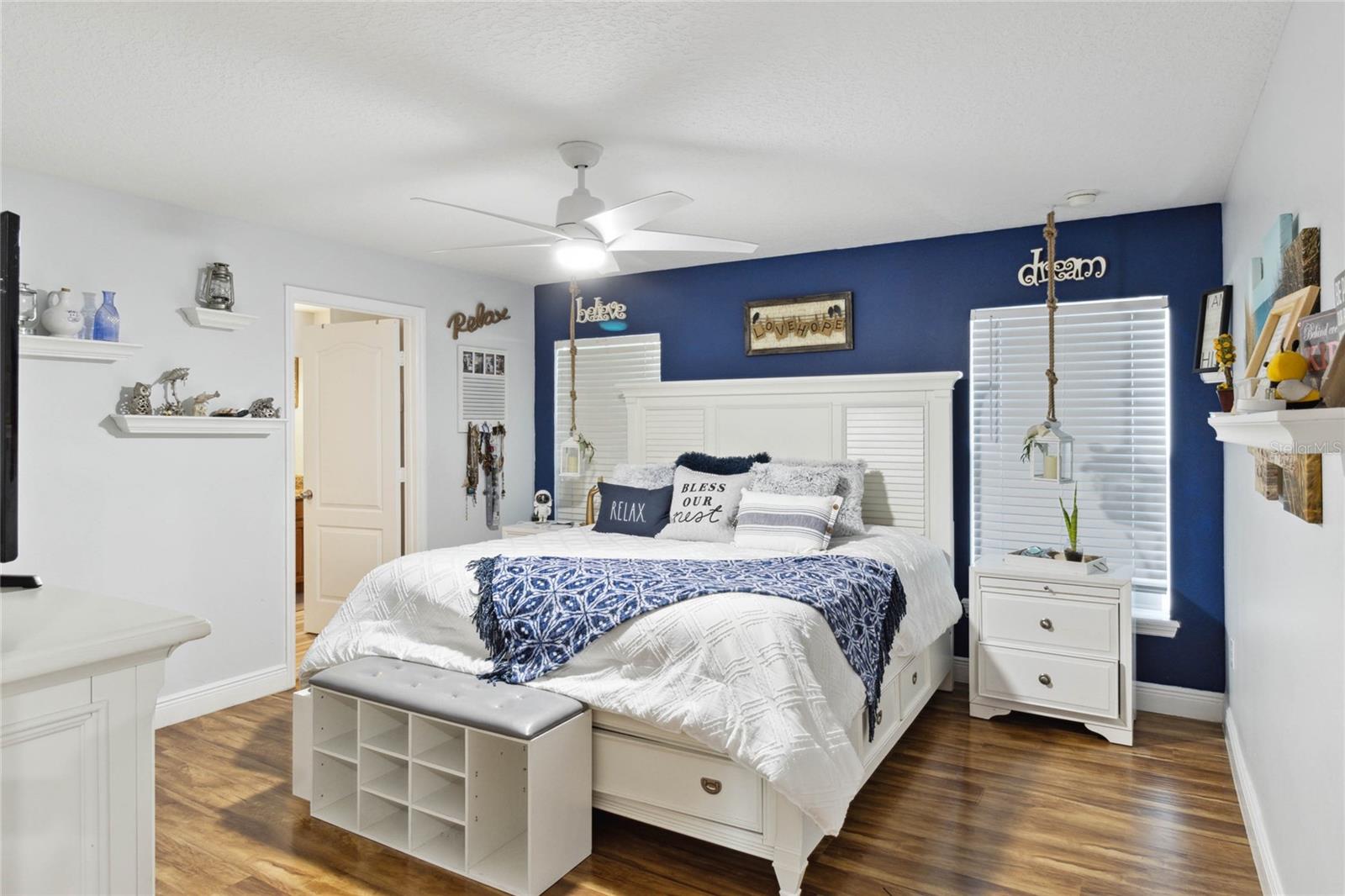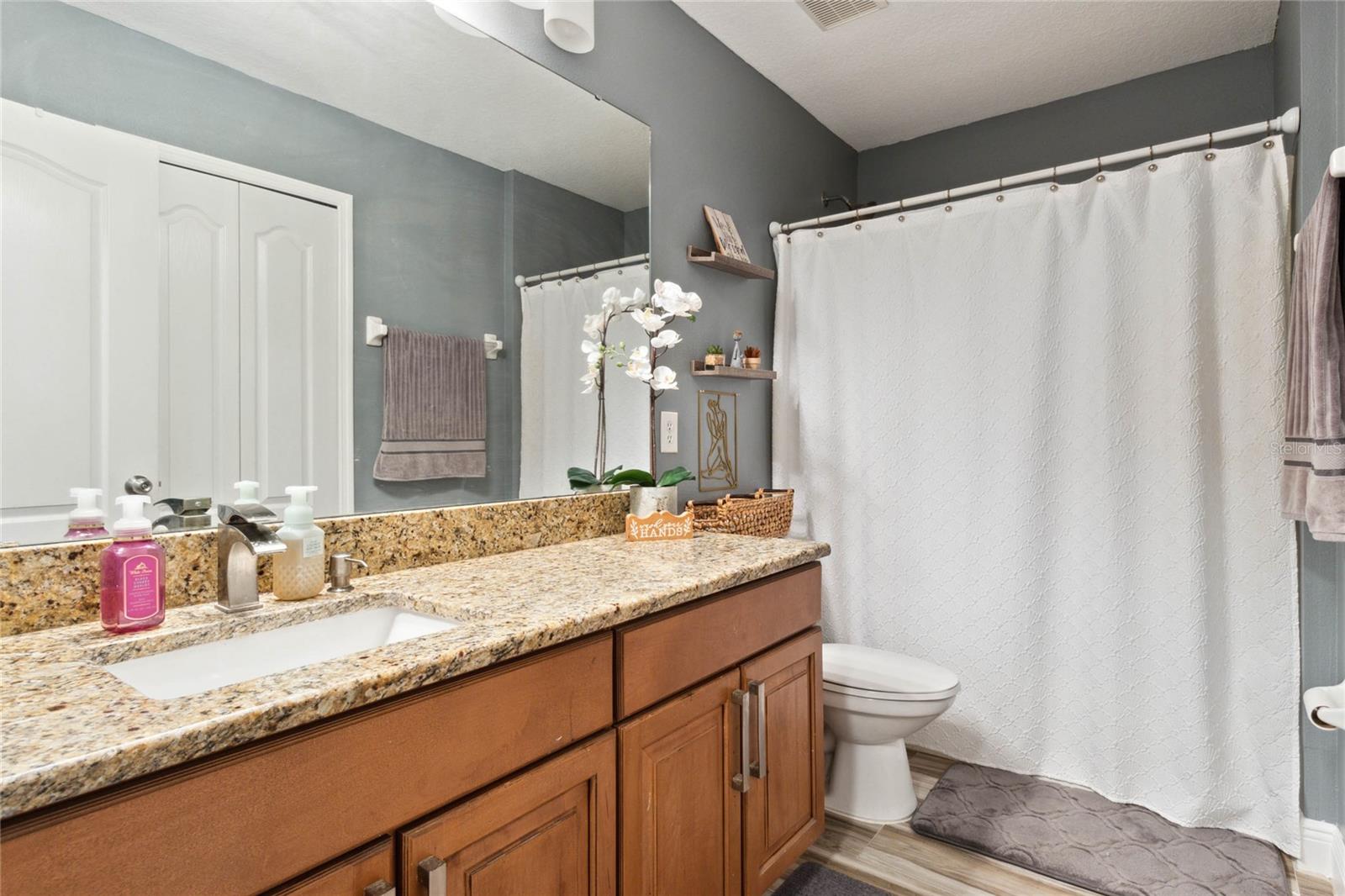 Welcome to this stunning two-story home nestled within a very pleasant guard-gated community, offering both privacy and security. Located on a tranquil cul-de-sac street, this residence features a spacious and meticulously extended landscaped backyard, enclosed by a beautiful fence—perfect for outdoor gatherings and relaxation with a backdoor to the pond. The Primary bedroom, located at the first floor has a stunning view to the backyard. Inside, you'll be captivated by the exquisitely decorated, upgraded kitchen, complete with top-of-the-line appliances, elegant countertops, and stylish cabinetry. Additional highlights include a fully paid-for solar panel system, providing energy efficiency and cost savings, and a water filtration system for clean and fresh water throughout the home. The a/c units is from 2022 and the roof was completely replaced in 2024. Conveniently situated just 15 minutes from the airport and 10 minutes from Lake Nona Medical facilities, this property offers luxury, affordability and accessibility, creating an ideal haven for everyday life.