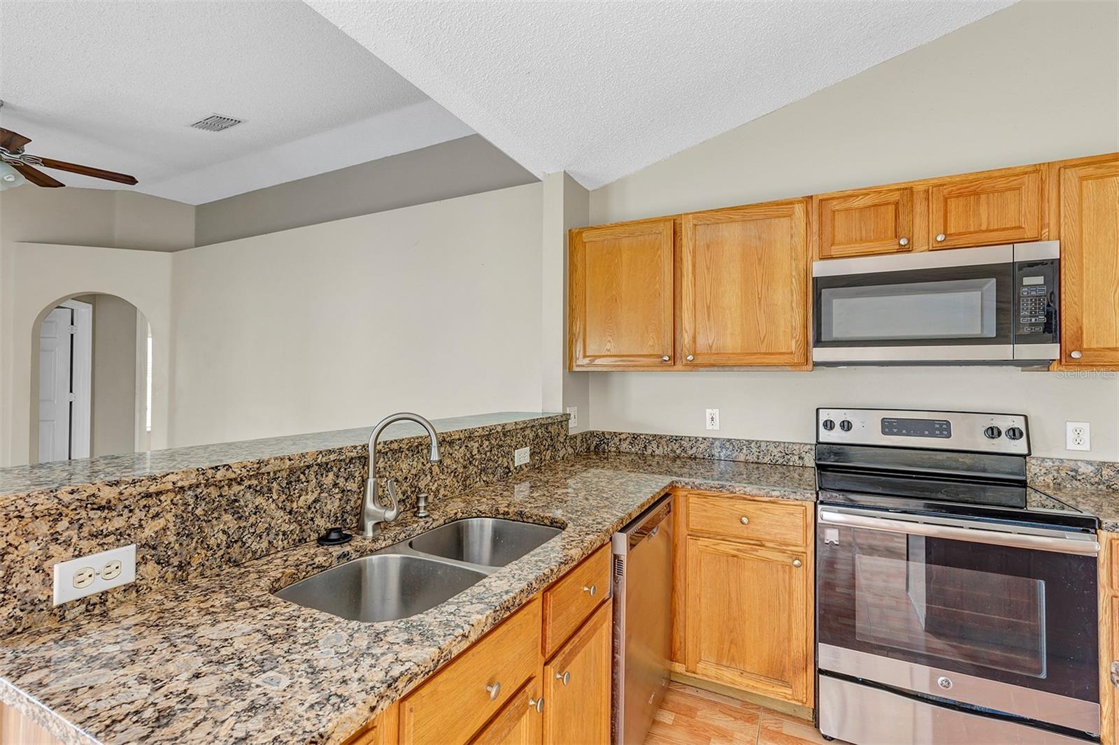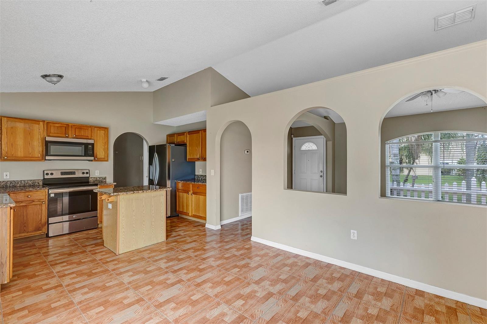 Come and see this move in ready single family, 4 bedroom, 2 bathroom home that sits on a corner lot! The kitchen is open and has granite countertops, an island and appliances. Enjoy ceramic tile flooring throughout the home, ceiling fans, a two car garage, inside laundry room and more! This home is not far from shopping, restaurants and the Poinciana Medical Center.