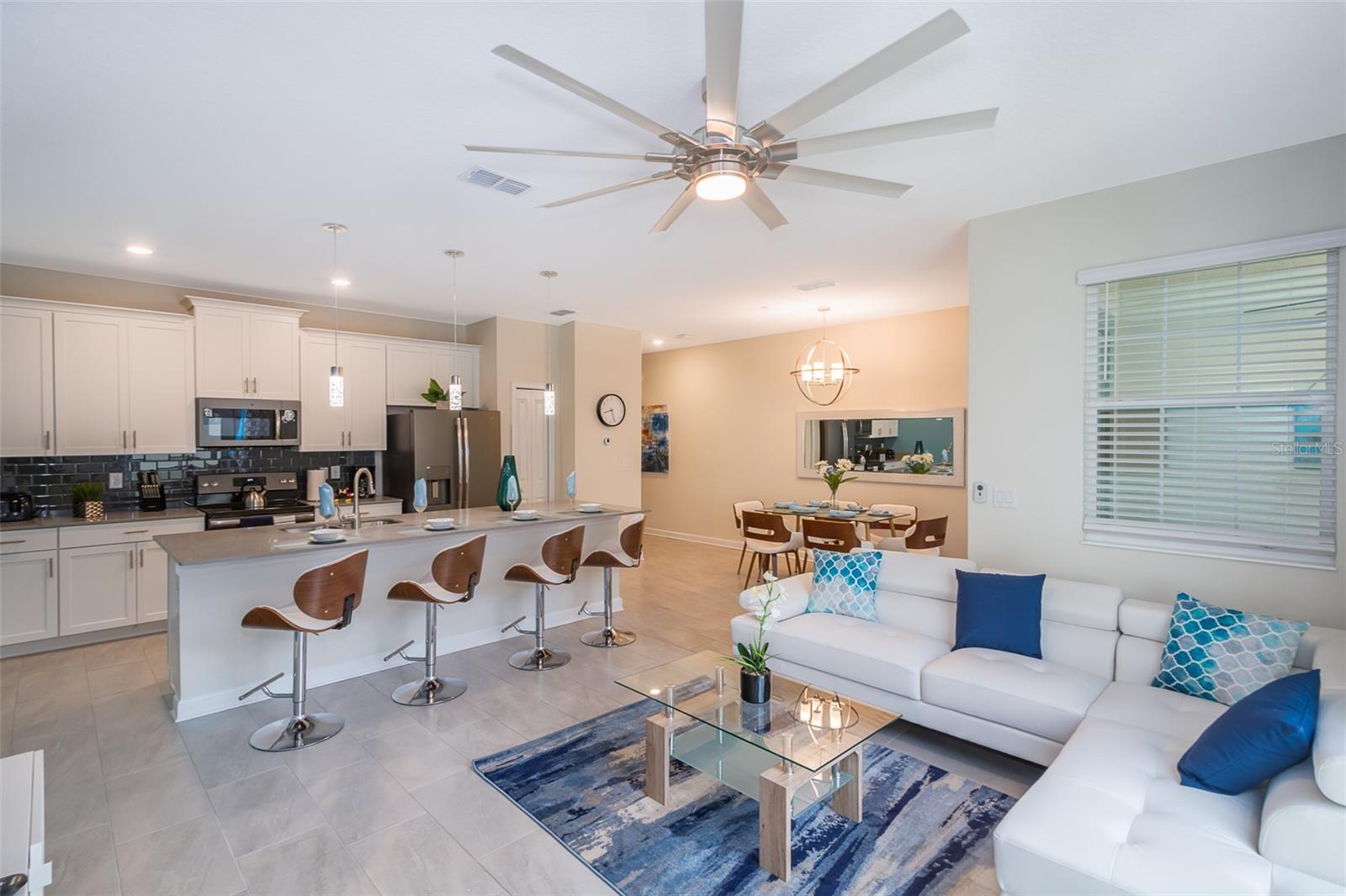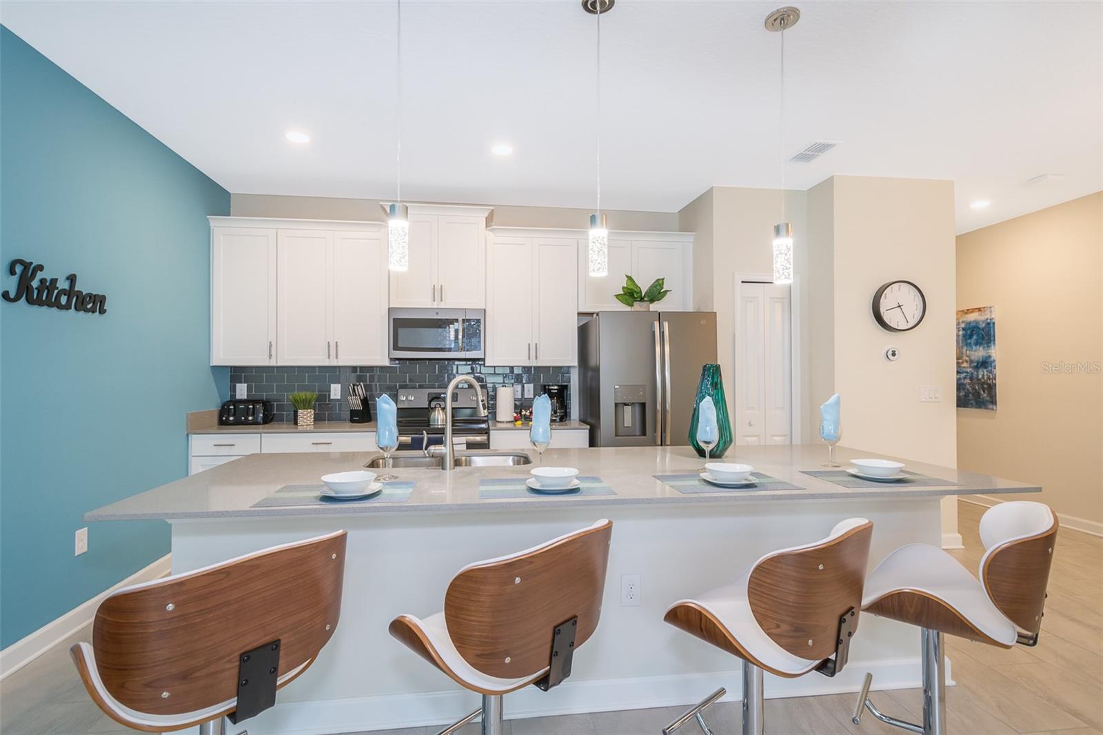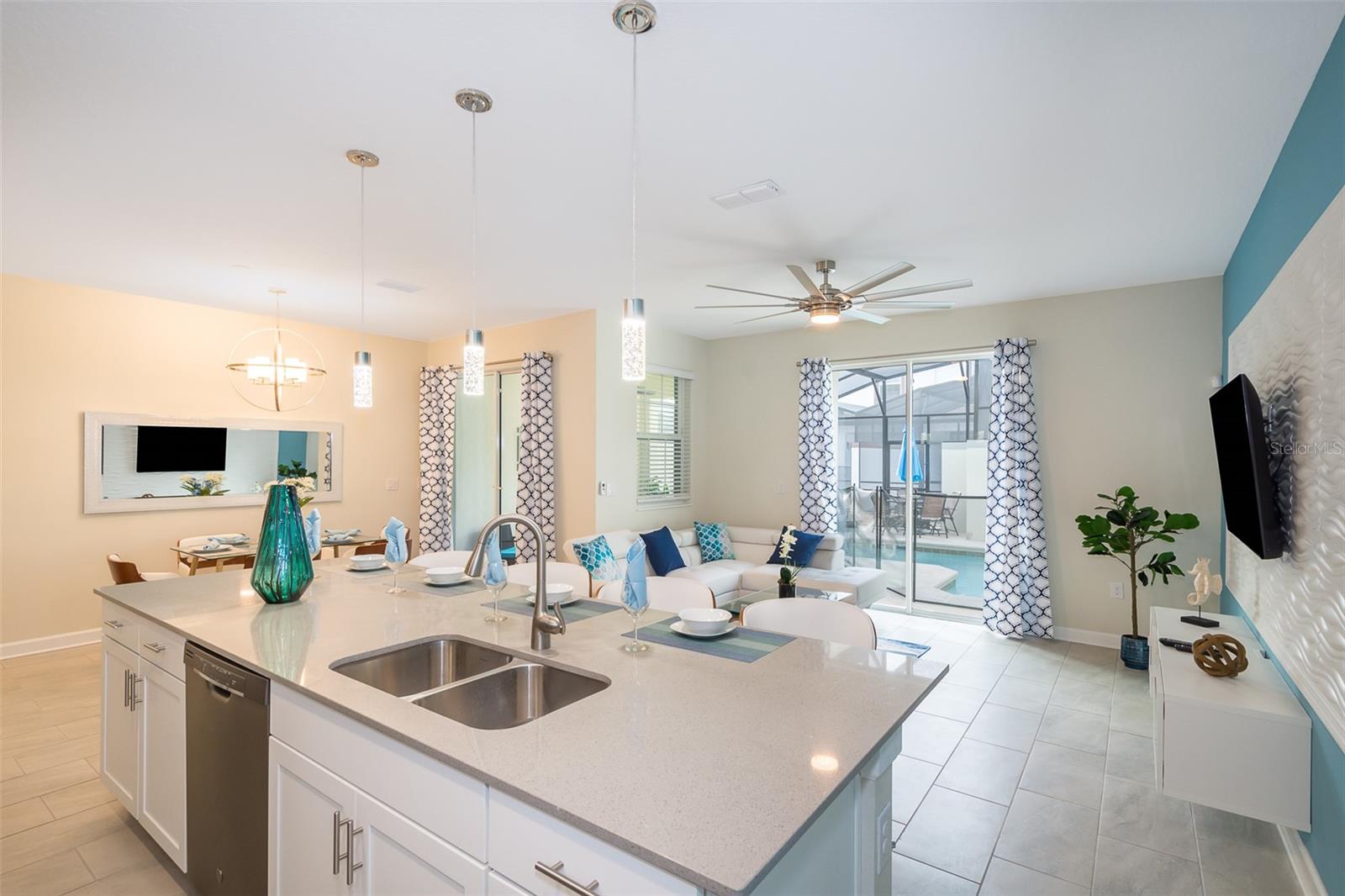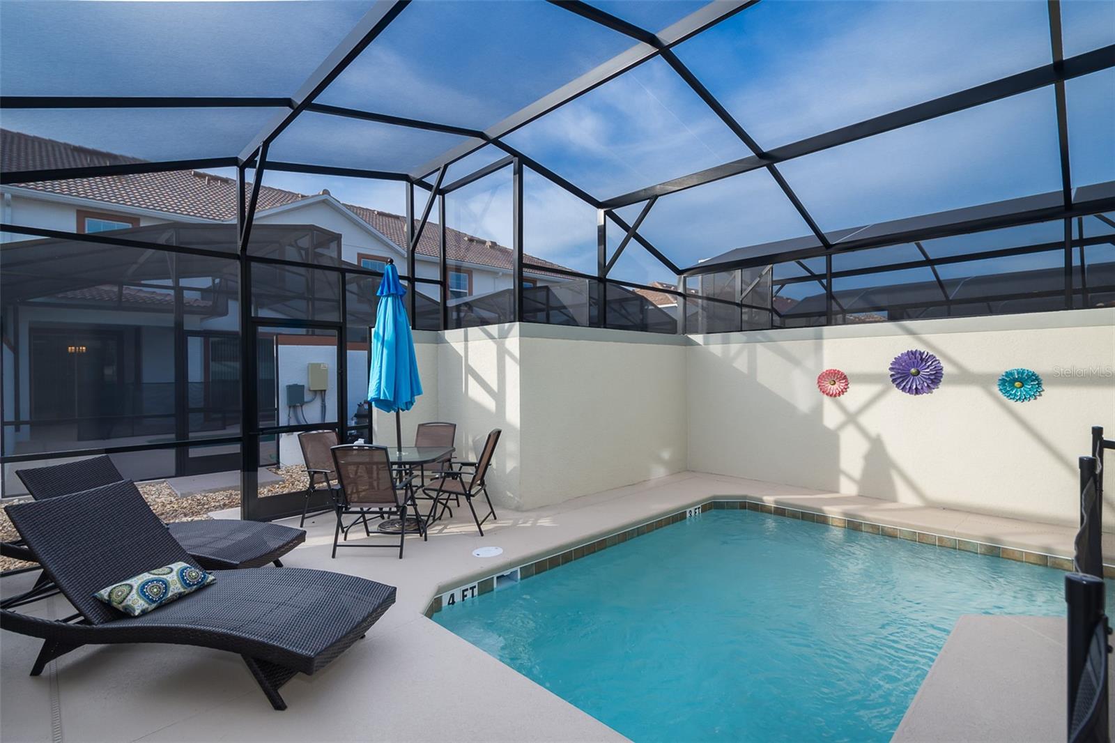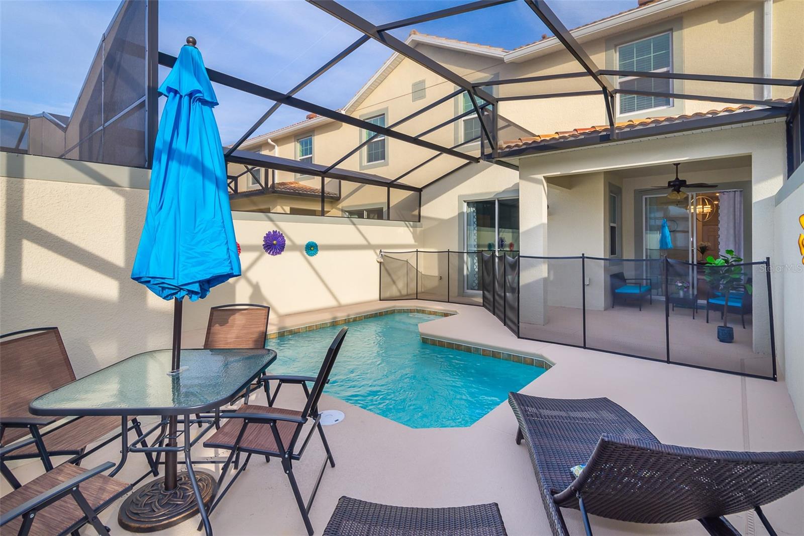 Investors....Short-Term-Rental opportunity. This 4/3 pool townhome features a private pool and plenty of space for all the family, friends or guests! The Townhouse has a open floorplan with a large quartz island in the kitchen, conveniently located amongst the large dining and living rooms. There is a bedroom and bathroom on the first floor. The Primary, two other bedrooms, a bathroom, and the laundry room are upstairs, offering privacy for you and your guests. Two sets of sliding doors lead you to your private a heated pool and space to entertain. Nearby you can find the luxurious Oasis Clubhouse and Waterpark with amenities including a Lazy River, Pool, Theater, Cafe, Shop, Spa, Games Room, Fitness Center, and Concierge. Gated community with 24/7 security and a golf course. HOA Fees Include Daily Trash Collection, Cable TV, Internet, Landscaping, Gated Security and Membership to Oasis Clubhouse.