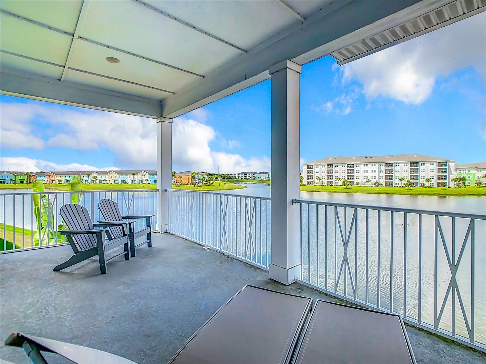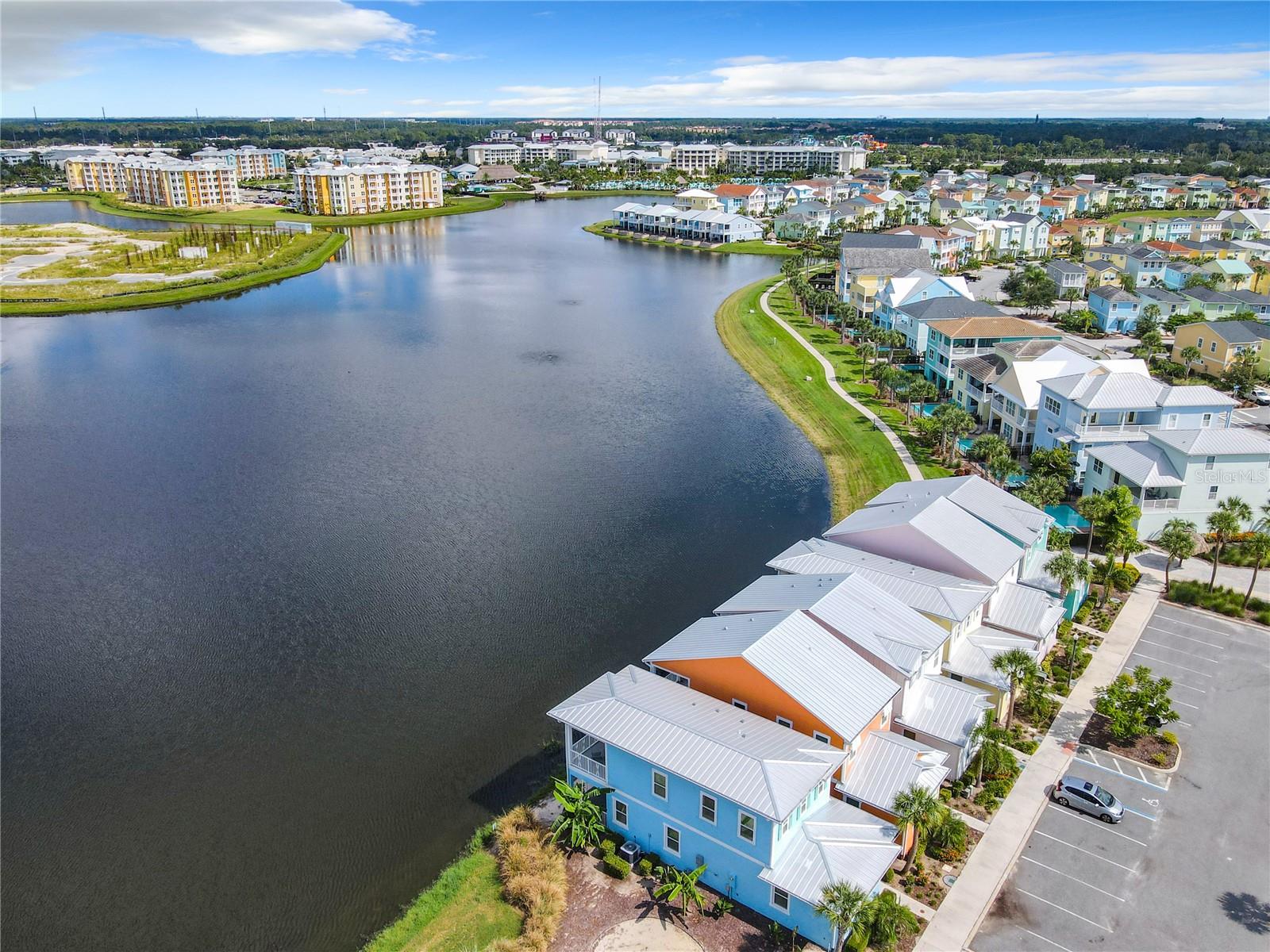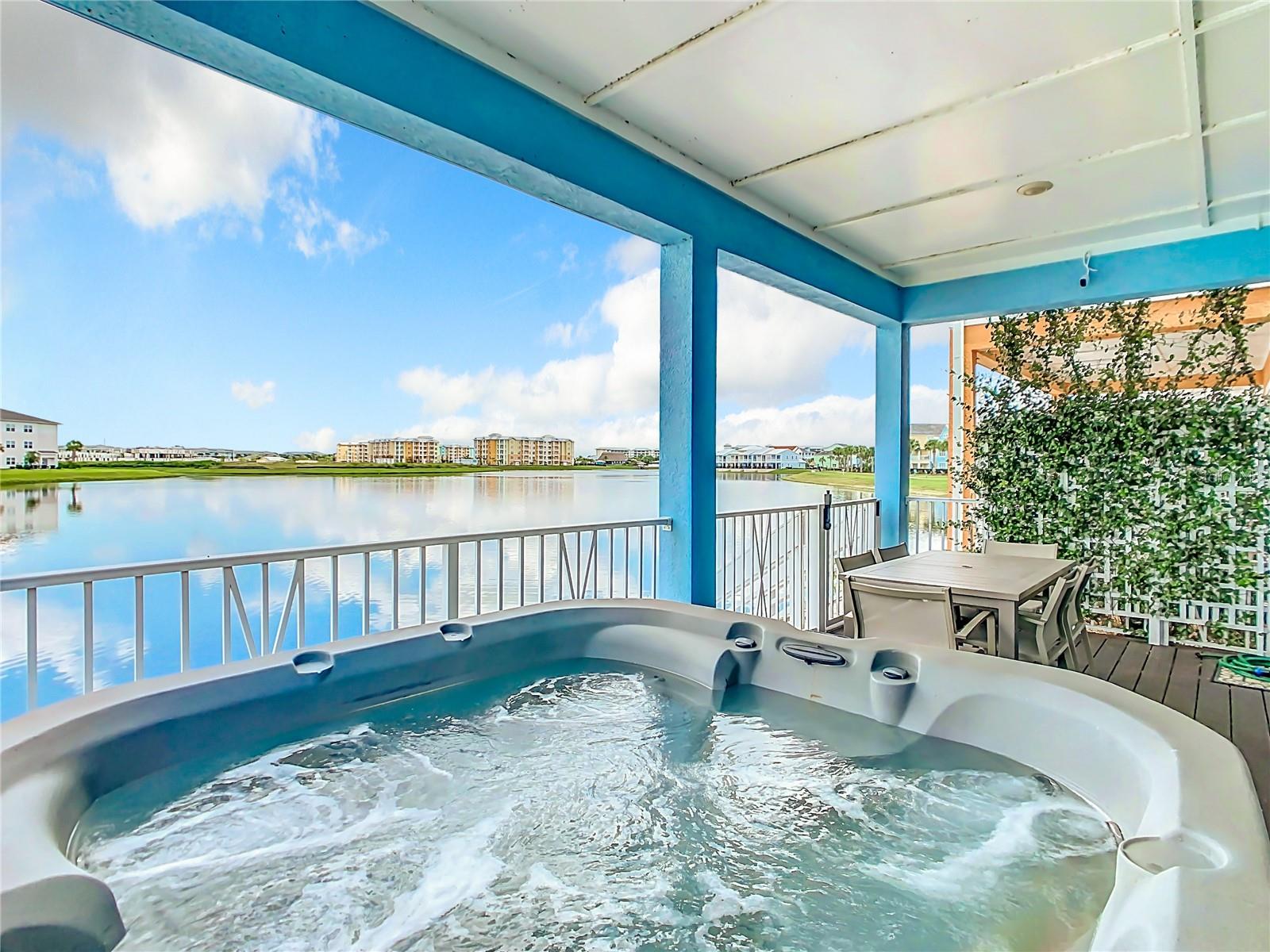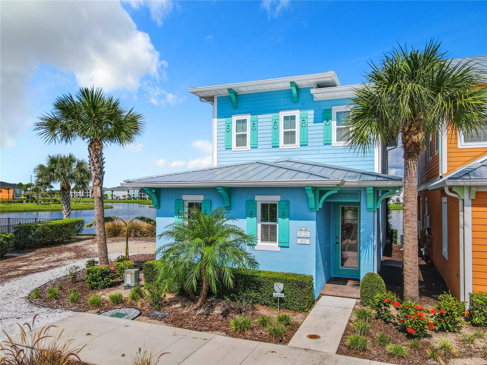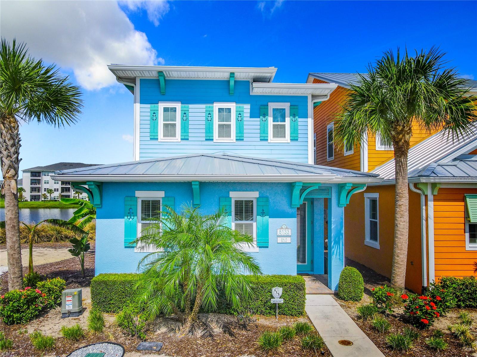Executive series Margaritaville, vacation home or full time residence ONE OF A KIND END UNIT WITH SPA ON WATER! With 3 bedrooms and 3 bathrooms, a full primary bedroom downstairs. There's plenty of space for everyone. LAKEFRONT! $40,000 furniture package INCLUDED at no additional cost. Step inside and you'll love the open floor plan. It's perfect for gatherings or entertaining. The kitchen is a real showstopper with its quartz countertops, wood cabinets, and an island that opens up to the living room. Cooking and chatting with guests has never been easier! Speaking of the living room, it's got a cozy fireplace for those chilly Florida nights. But wait, there's more! Slide open those doors and step out onto a covered balcony. The view? A stunning lake right in your backyard. Oh, and did we mention there's a hot tub on the balcony too? Talk about relaxation! The bedrooms are something special. Each one has its own private bath – no more fighting over sink space! The primary bedroom is conveniently located downstairs, while a second primary suite awaits upstairs. This upstairs retreat even has its own private balcony overlooking the lake. Located in the community, you're close to all the action. The resort pools, hotel, and other amenities are just a stone's throw away. Enjoy shuffleboard, grab a drink at the bar, dine at various restaurants, or work up a sweat at the fitness center. There's even a playground and dog park for the little ones (furry or not). And if that's not enough, Sunset Walk is nearby with even more restaurants, a movie theater, and Island H2O. This house isn't just a home – it's a lifestyle!