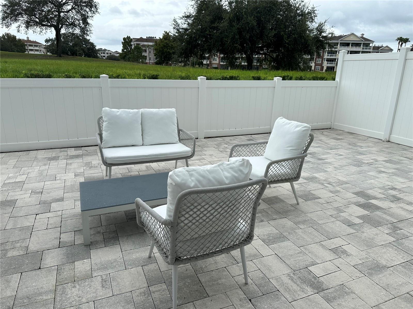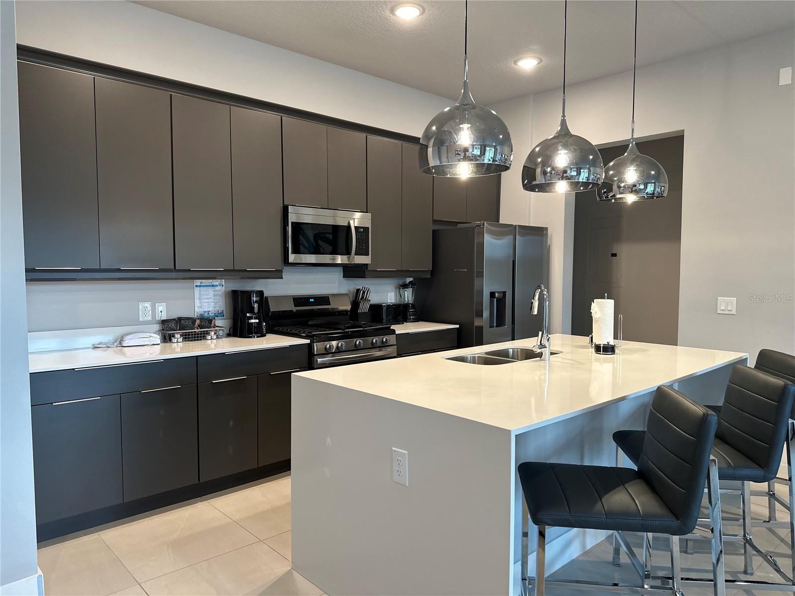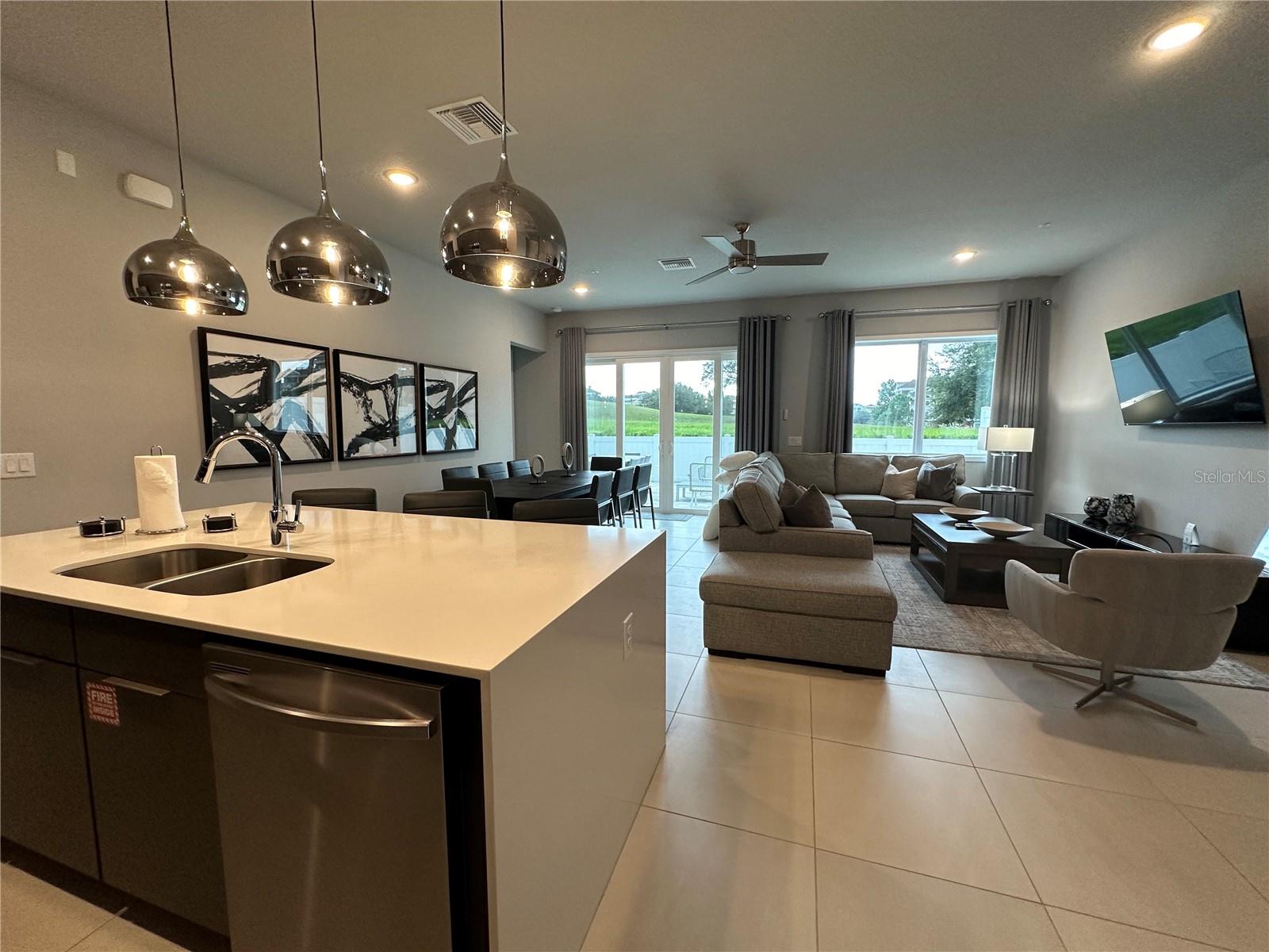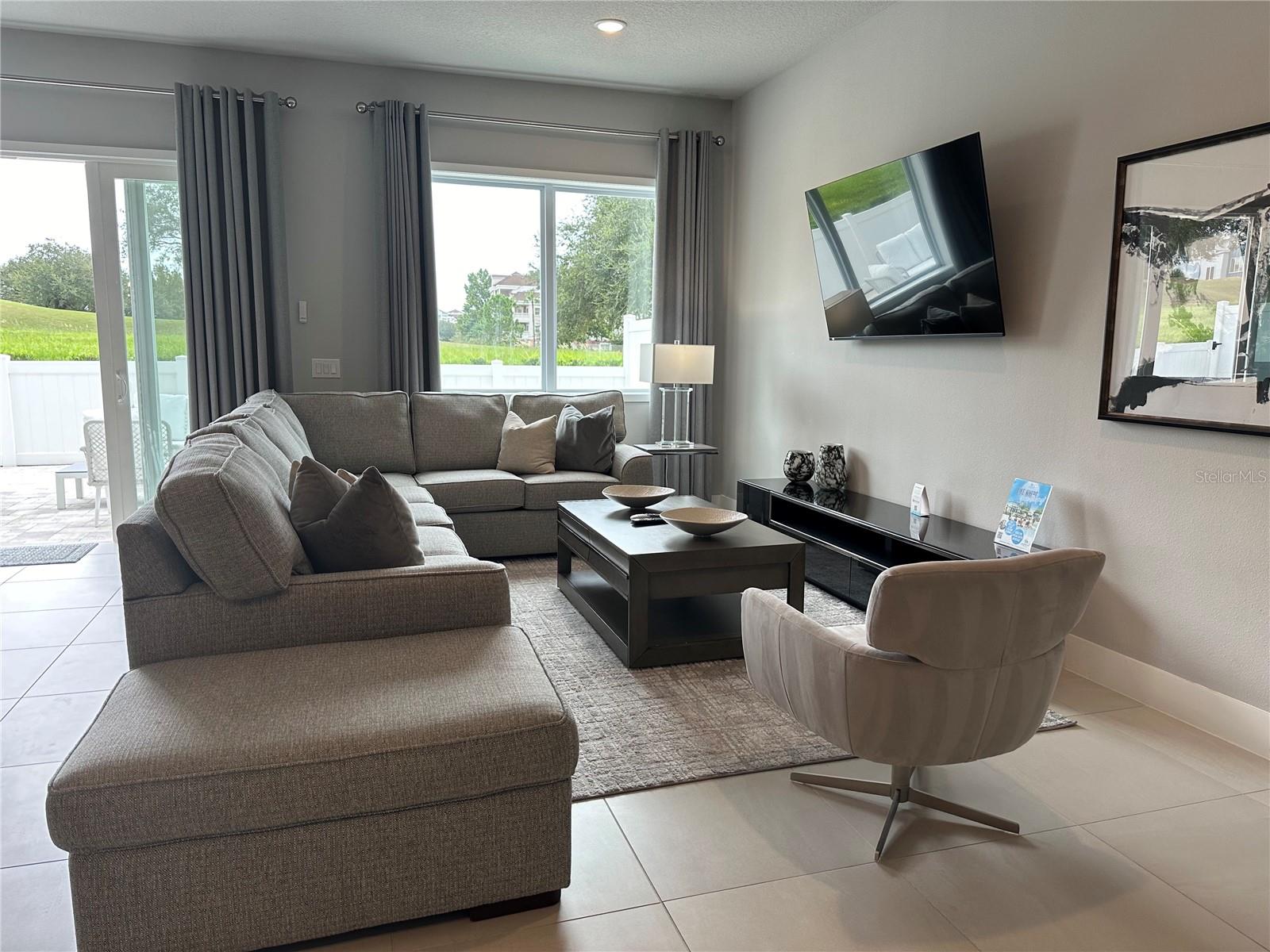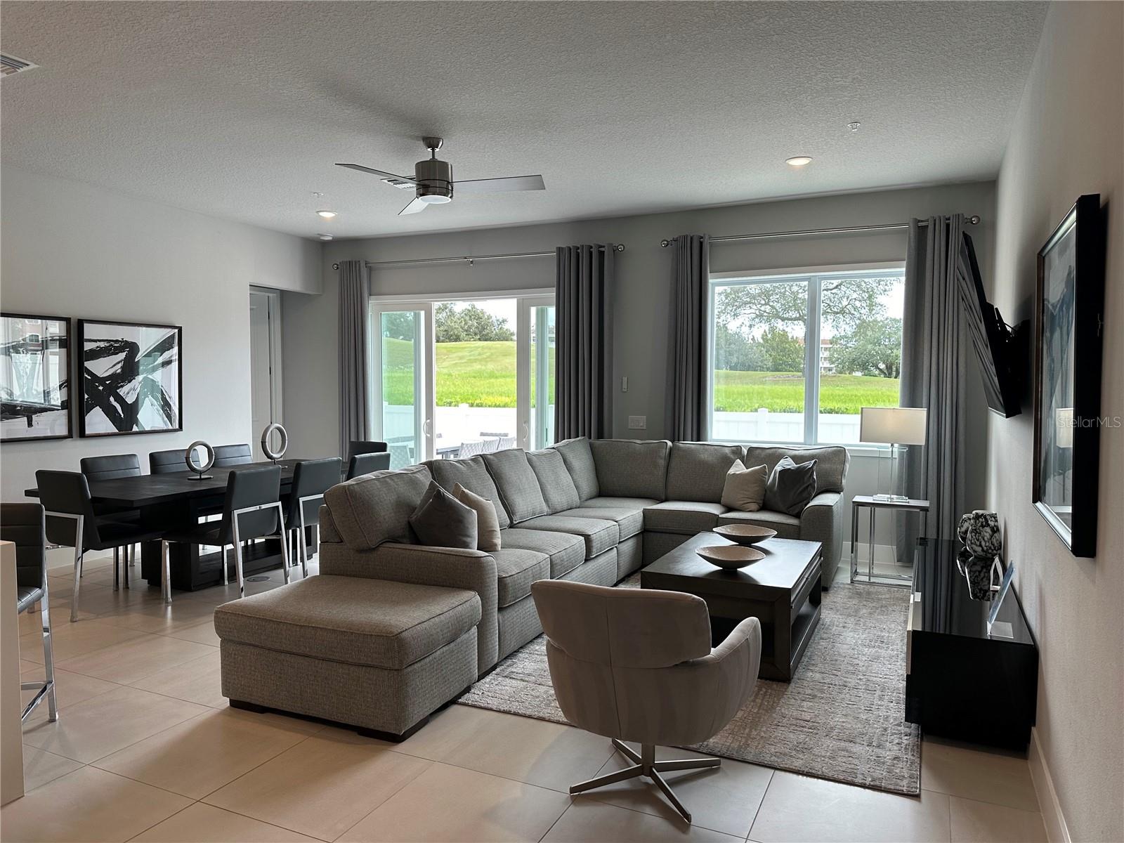 Find comfort in this beautiful luxury living resort! Fully furnished with a stunning view of the golf course. A great opportunity to invest or to enjoy with family and friends as a vacation home. Featuring four spacious bedrooms and 3 baths, the expansive open floor plan showcases sleek, modern finishes that make this residence a true standout. The gourmet kitchen is equipped with high-end stainless steel appliances, a gas range, and a beautiful island perfect for meal prep and entertaining. Also, find a generous paved patio, steps away from the resort-style pool. The amenities at this resort are also a true dream! Including a state-of-the-art gym, multiple resort-style pools, an incredible water park with a lazy river, three signature golf courses, pro shops, community pools, tennis courts, conference facilities, and a variety of dining options. The unit is fully renovated and offers brand-new porcelain tiles throughout the entire property, elegant awnings, and stunning golf course views.HOA also includes a comprehensive package covering cable, internet, water, trash, and amenities.