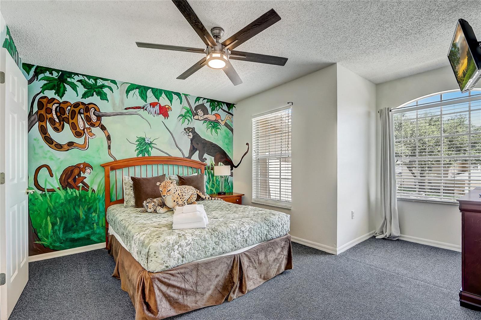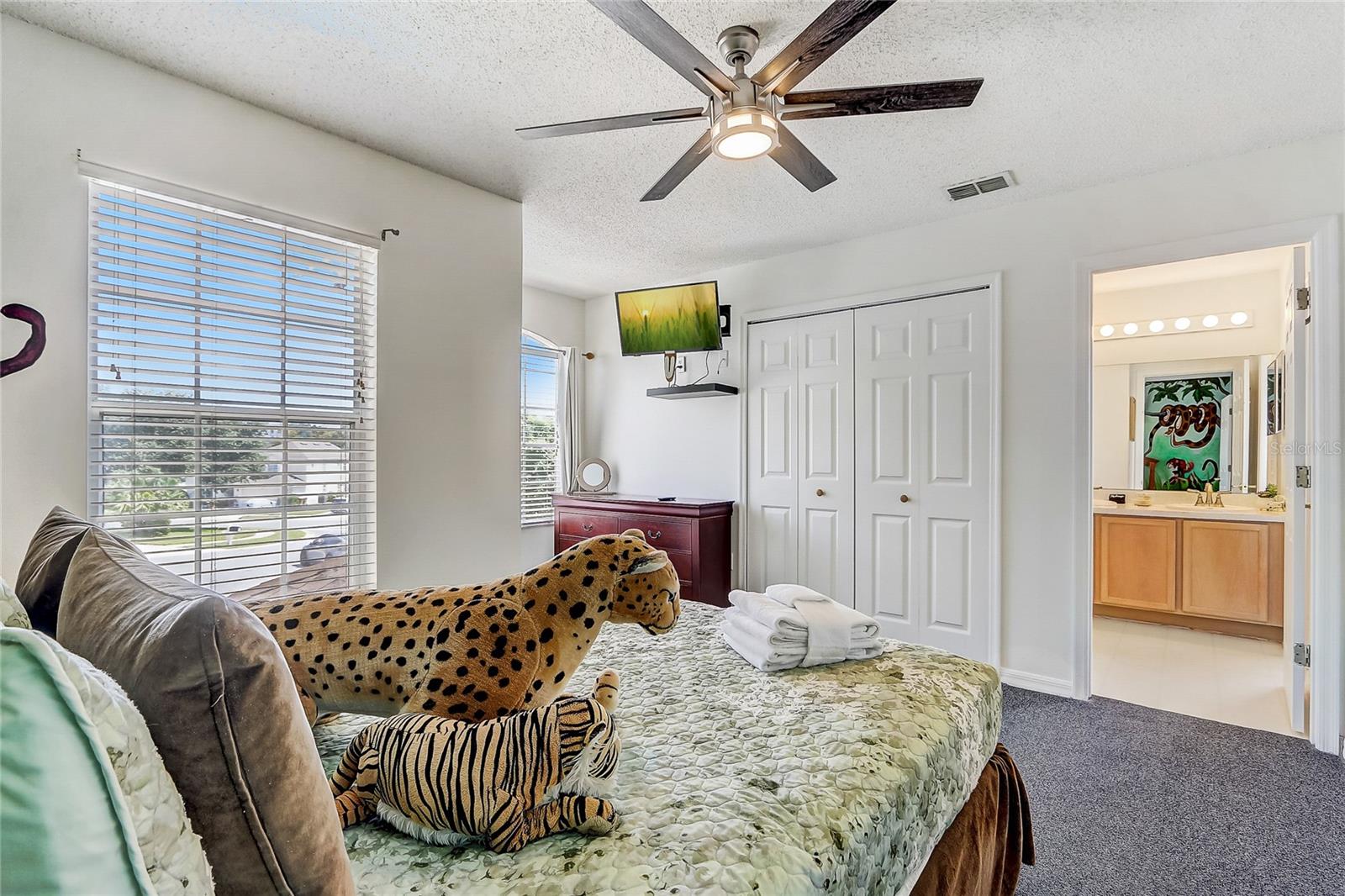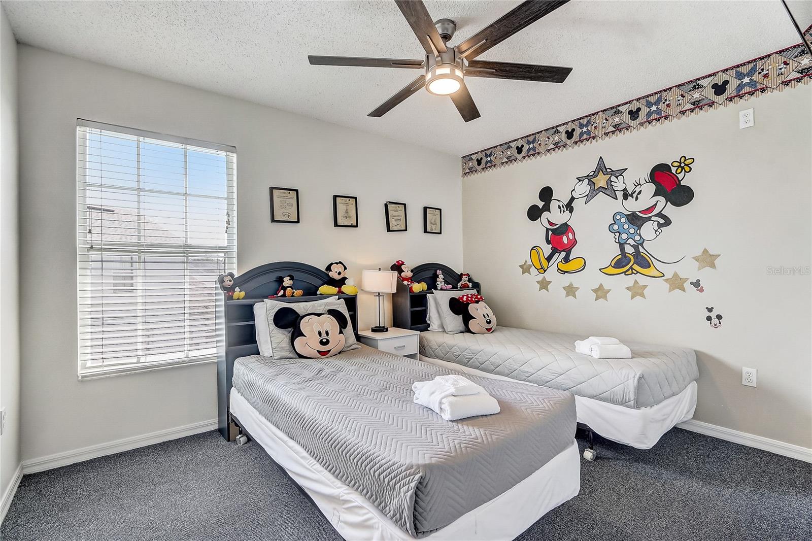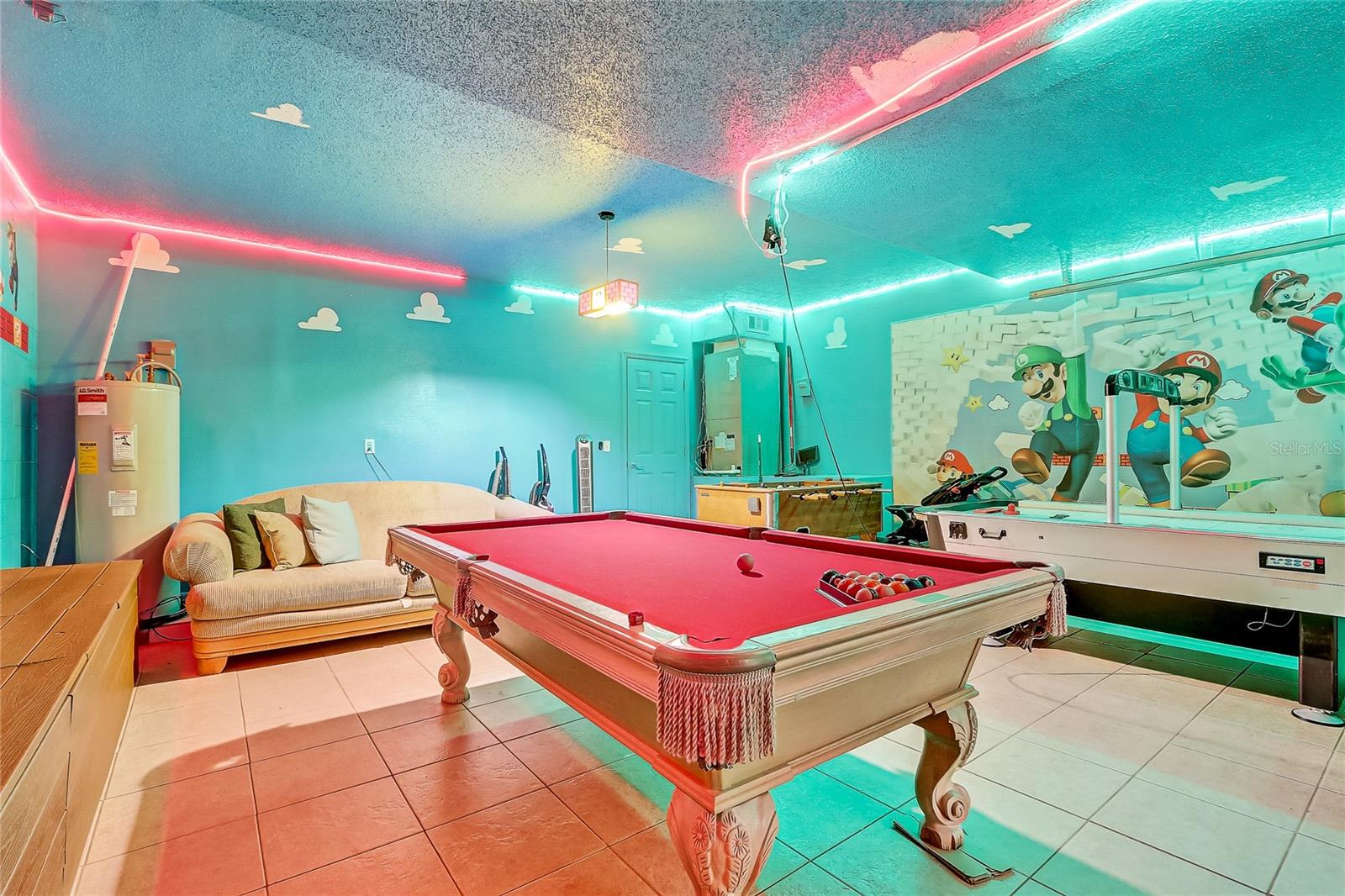 Welcome to your dream home in Kissimmee, Florida! This remarkable 6-bedroom, 4-bathroom residence provides 2,677 sq ft of thoughtfully designed living space on a spacious 1/4-acre lot, making it the ideal choice for a vacation retreat, short-term rental, or a primary residence. As you step inside, you’ll be greeted by soaring vaulted ceilings that create an airy atmosphere, seamlessly connecting the inviting living room to the dining area and kitchen. The kitchen is a culinary delight, featuring a breakfast bar, stainless steel appliances, and generous pantry storage—perfect for entertaining family and friends. The main floor includes three bedrooms, highlighted by a luxurious primary suite complete with an en suite bathroom featuring dual sinks, a relaxing tub, and a separate shower. Venture upstairs to discover three additional bedrooms and two bathrooms, along with a versatile loft area that can serve as a playroom, office, or cozy reading nook. Two of the upstairs bedrooms share a charming Jack and Jill bathroom, thoughtfully themed to celebrate the home's close proximity to Disney. Step outside to the expansive, fully fenced backyard, where you’ll find a screened-in pool area and lanai—perfect for soaking up the Florida sun or hosting gatherings. This home also boasts an air-conditioned garage for added comfort. Centrally located just 3 miles from Disney and conveniently situated near major highways, shopping, and dining, this property provides the best of Florida living. Don’t miss this incredible opportunity to make this stunning home your own!