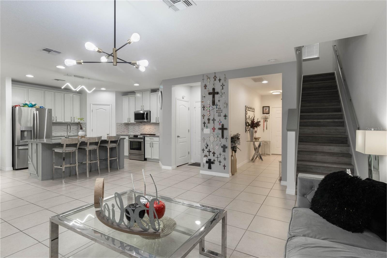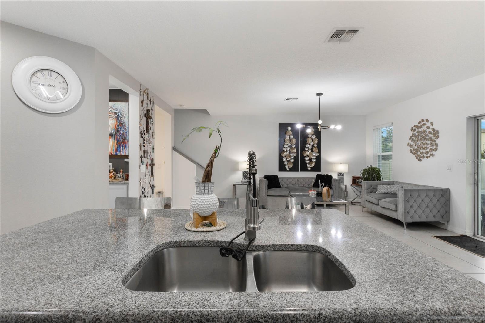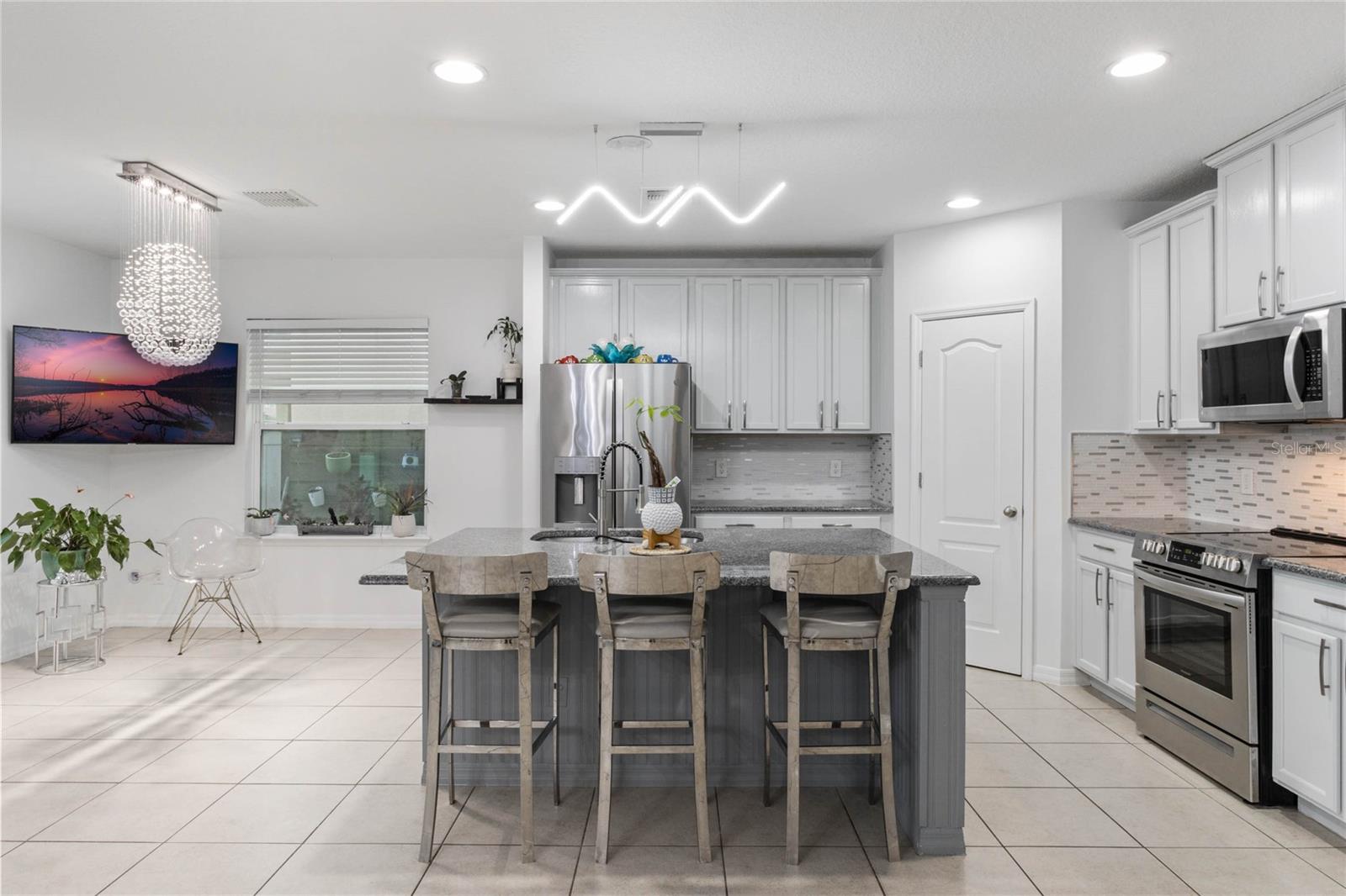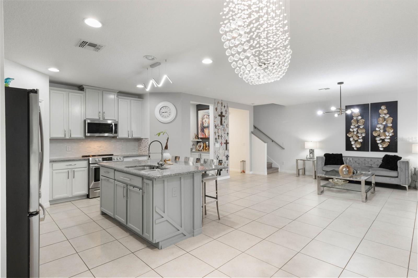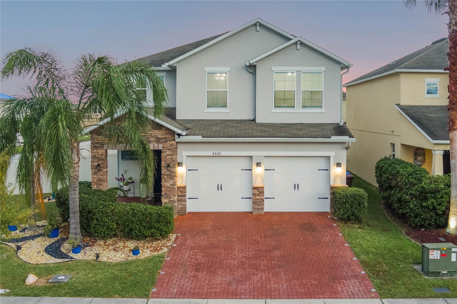 Welcome to your dream home in the heart of Kissimmee! This stunning two-story residence boasts impressive curb appeal with a brick driveway, stone-accented entryway, and lush landscaping. Solar panels will be paid in full prior to closing. The modern design flows seamlessly from the exterior into the open-concept interior, featuring a spacious living room bathed in natural light. Elegant tile flooring, stylish lighting fixtures, and custom wall art create a sophisticated ambiance perfect for entertaining. The gourmet kitchen is a chef's delight, offering granite countertops, an oversized island, and stainless-steel appliances, with a view that opens to the living and dining areas. Seller will credit $10,000 to buyer in Closing Costs. Assumable loan option with a 3.375 interest reate. Upstairs, you'll find generously sized bedrooms with large windows, providing plenty of light and warmth. The primary suite is a true retreat, offering a luxurious ensuite bathroom with dual vanities, a soaking tub, and a walk-in shower. Outside, enjoy a private backyard oasis that’s perfect for relaxation or entertaining. Conveniently located near top-rated schools, shopping, dining, and major highways, this home has everything you've been looking for. Don't miss your chance to own this exceptional property – schedule your private tour today!