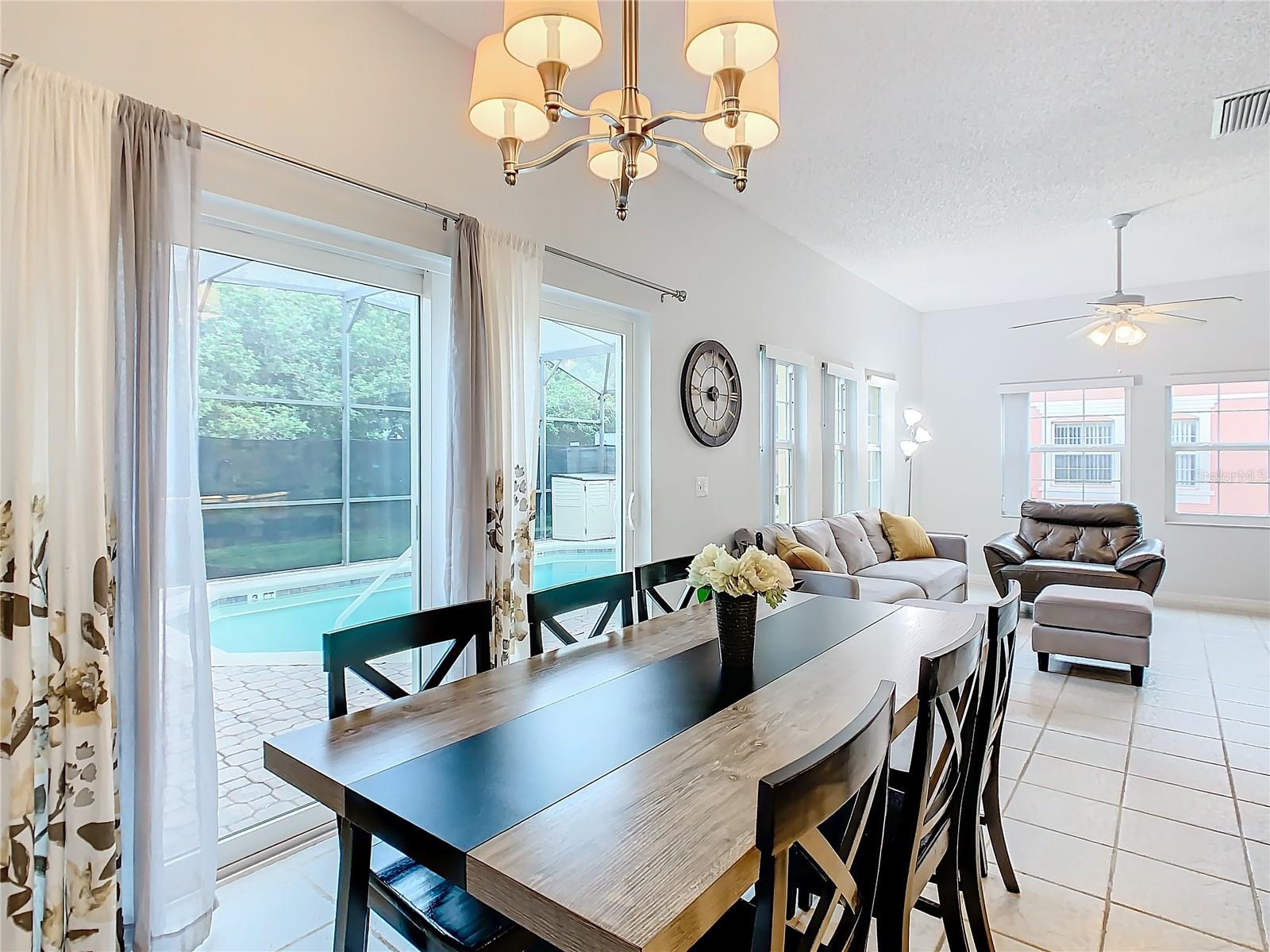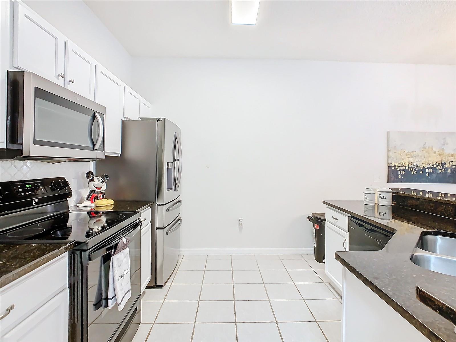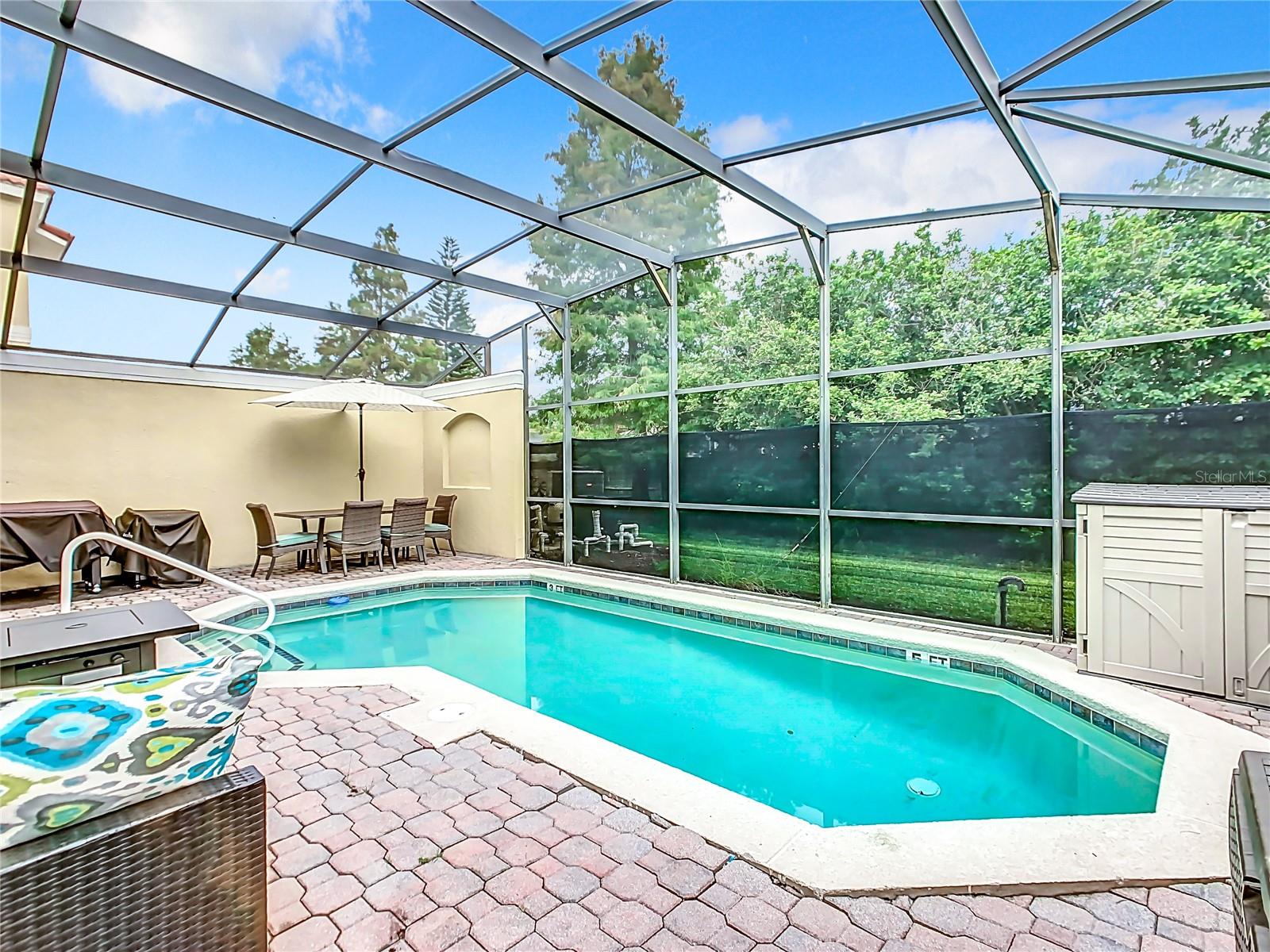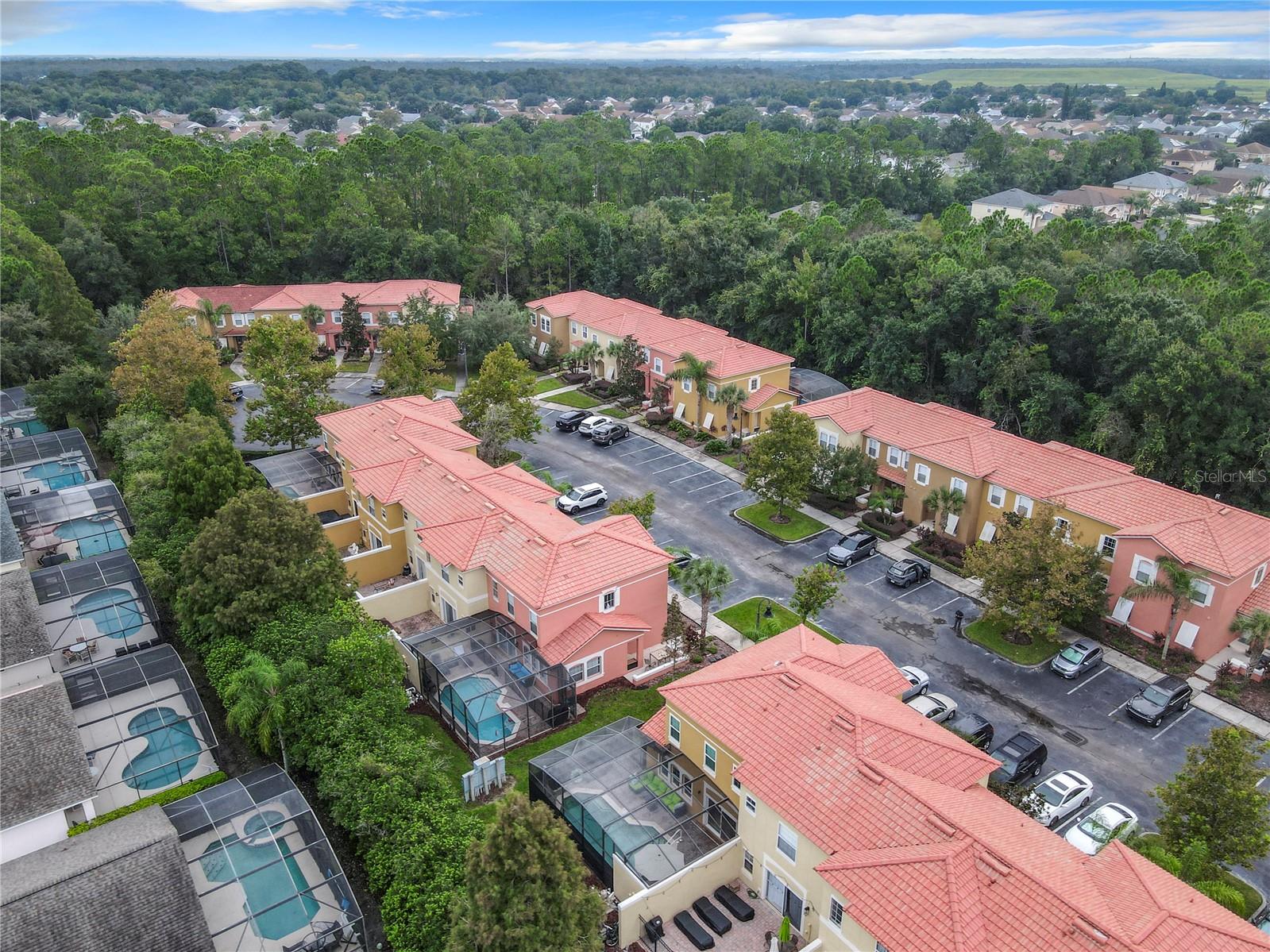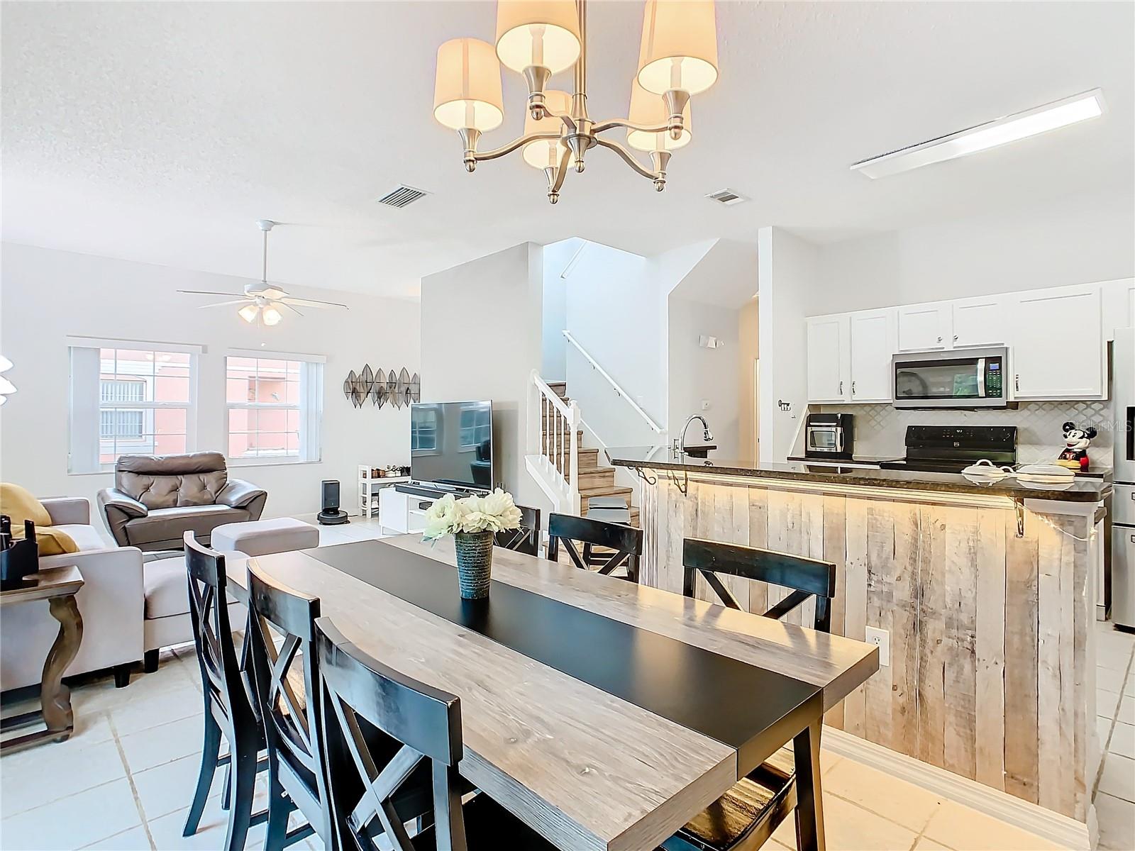 Discover this beautiful 4-bedroom, 3-bath townhome with a private pool, perfectly situated on a corner lot in the exclusive Terra Verde Villas. As you enter, you’ll be welcomed by an abundance of natural light and elegant tile flooring throughout the main level. The spacious family room creates a warm and inviting atmosphere, ideal for relaxing or entertaining. The kitchen boasts granite countertops, stainless steel appliances, and a convenient breakfast bar, providing ample cabinet and counter space. Overlooking the dining area, the kitchen flows effortlessly through sliding glass doors to the screened-in, sparkling pool—perfect for outdoor dining and lounging. On the first floor, you’ll find a versatile bedroom with a full bath, along with a convenient laundry closet. Upstairs, the expansive primary ensuite offers comfort and privacy, while the additional bedrooms share a well-appointed hall bath. The vinyl flooring seamlessly connects each room, giving the home a modern, cohesive feel. Terra Verde is designed with resort-style living in mind, offering a wide range of amenities including a clubhouse, fitness center, theater room, community pool, tennis and basketball courts, and more! As a primarily short-term rental community, this townhome is also a fantastic investment opportunity, just minutes from Disney, world-class attractions, dining, and shopping. Don’t miss the chance to own a slice of paradise in Terra Verde!