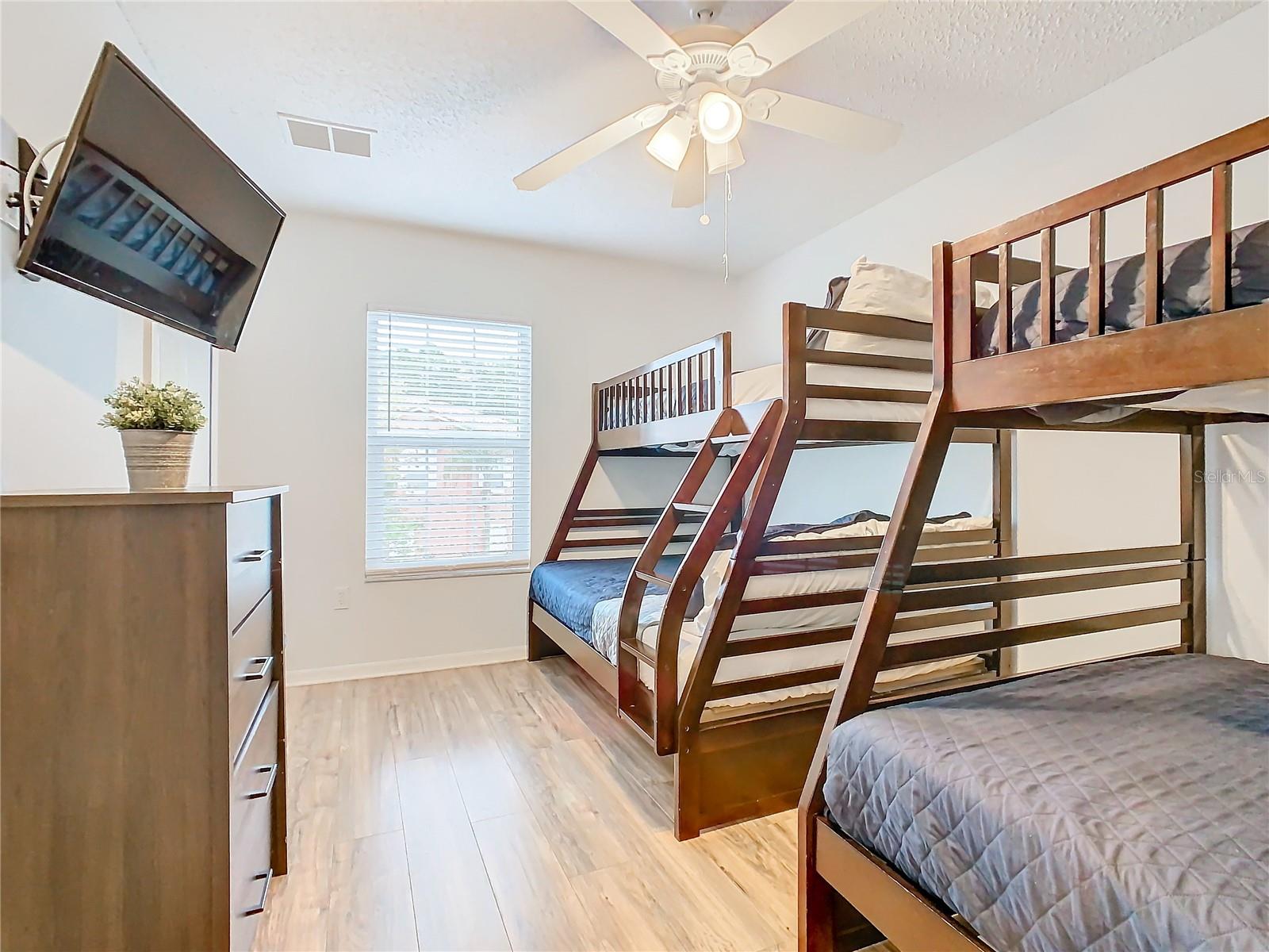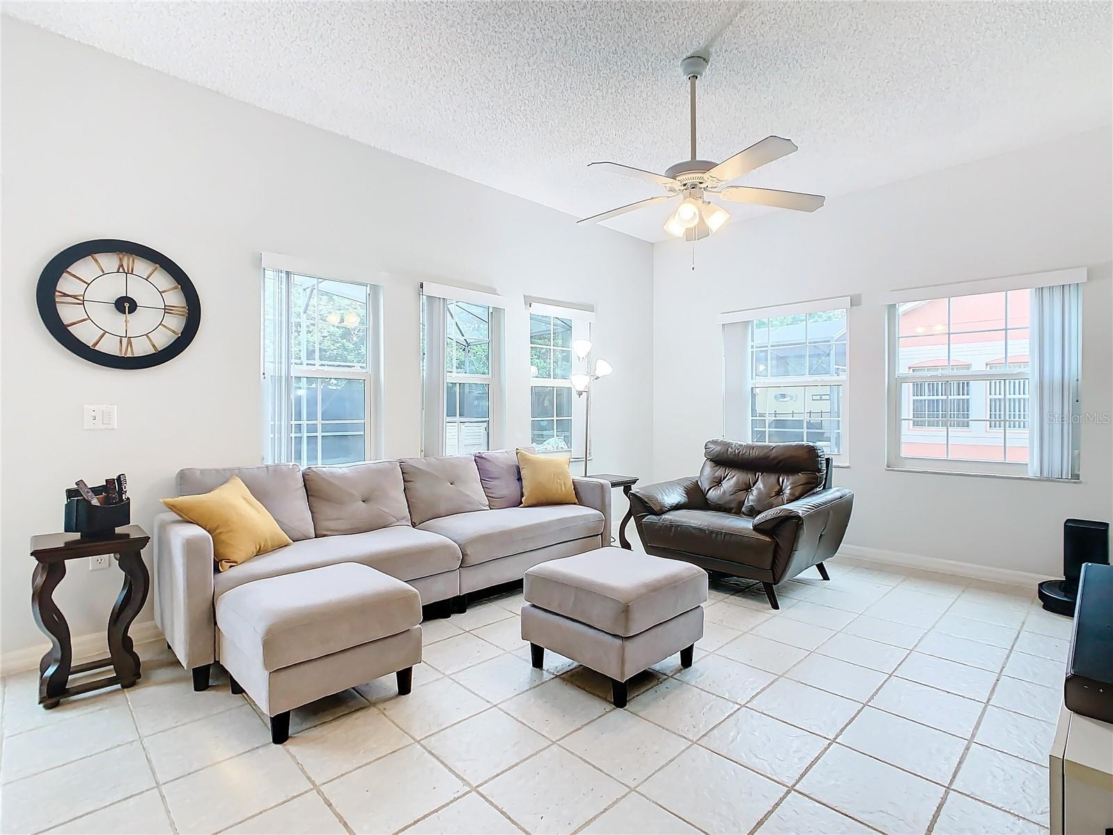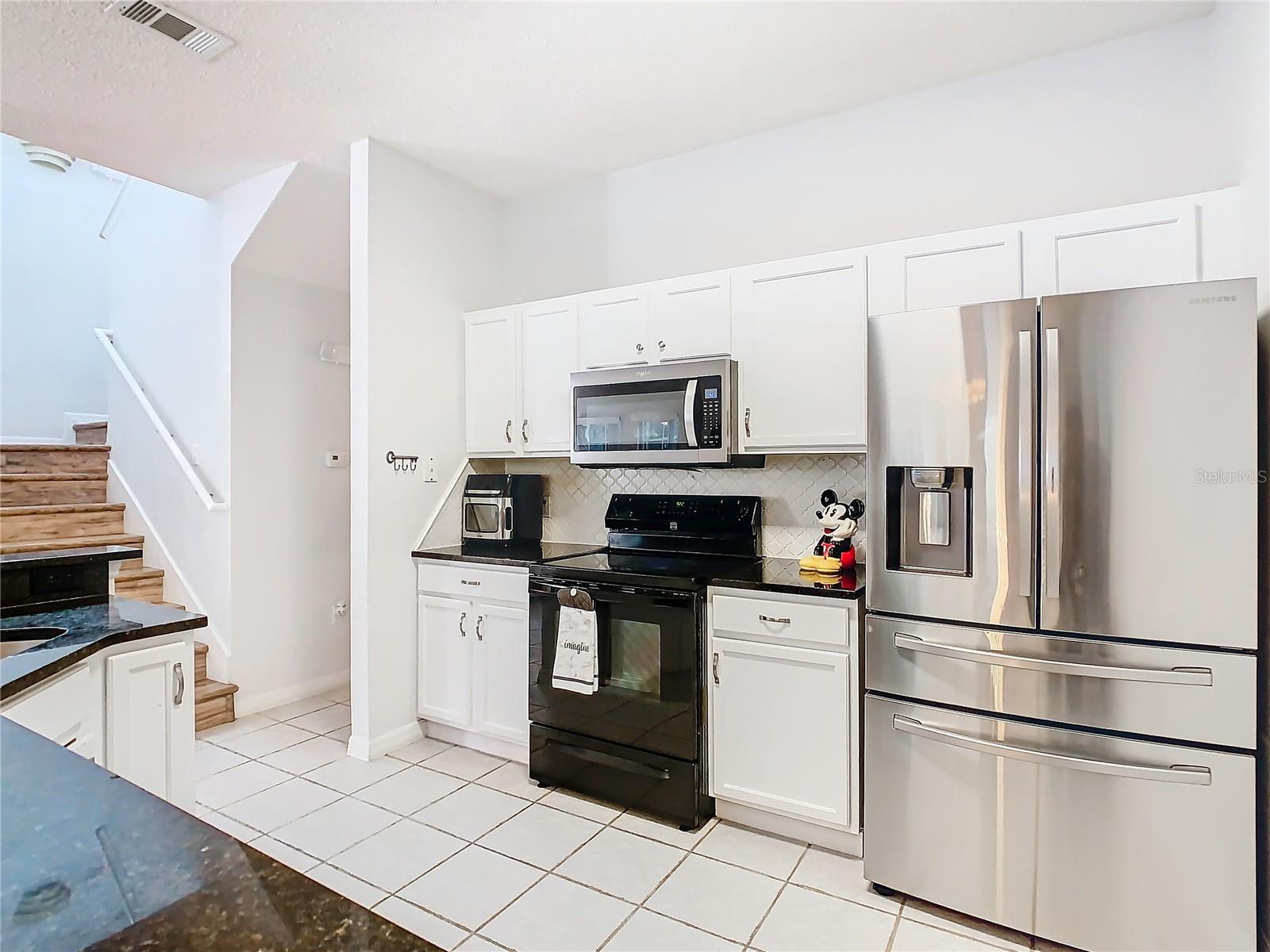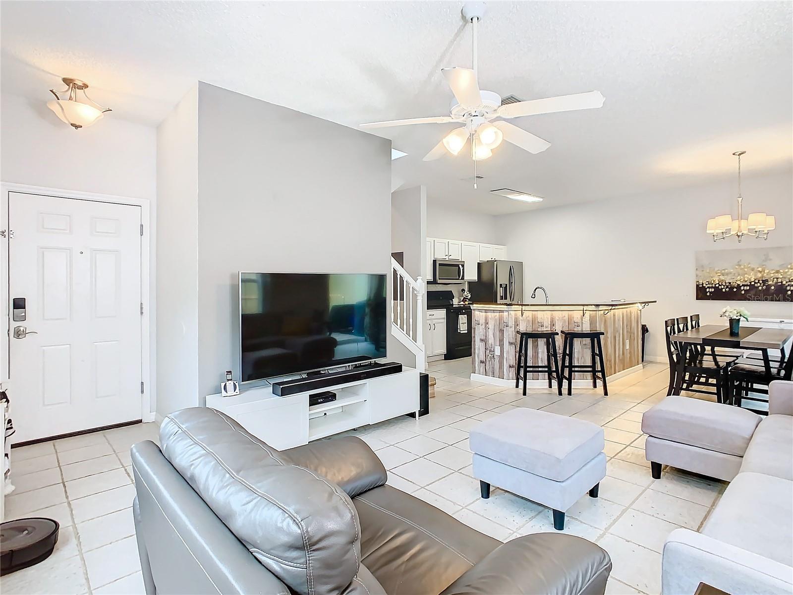 Discover this beautiful 4-bedroom, 3-bath townhome with a private pool, perfectly situated on a corner lot in the exclusive Terra Verde Villas. As you enter, you’ll be welcomed by an abundance of natural light and elegant tile flooring throughout the main level. The spacious family room creates a warm and inviting atmosphere, ideal for relaxing or entertaining. The kitchen boasts granite countertops, stainless steel appliances, and a convenient breakfast bar, providing ample cabinet and counter space. Overlooking the dining area, the kitchen flows effortlessly through sliding glass doors to the screened-in, sparkling pool—perfect for outdoor dining and lounging. On the first floor, you’ll find a versatile bedroom with a full bath, along with a convenient laundry closet. Upstairs, the expansive primary ensuite offers comfort and privacy, while the additional bedrooms share a well-appointed hall bath. The vinyl flooring seamlessly connects each room, giving the home a modern, cohesive feel. Terra Verde is designed with resort-style living in mind, offering a wide range of amenities including a clubhouse, fitness center, theater room, community pool, tennis and basketball courts, and more! As a primarily short-term rental community, this townhome is also a fantastic investment opportunity, just minutes from Disney, world-class attractions, dining, and shopping. Don’t miss the chance to own a slice of paradise in Terra Verde!