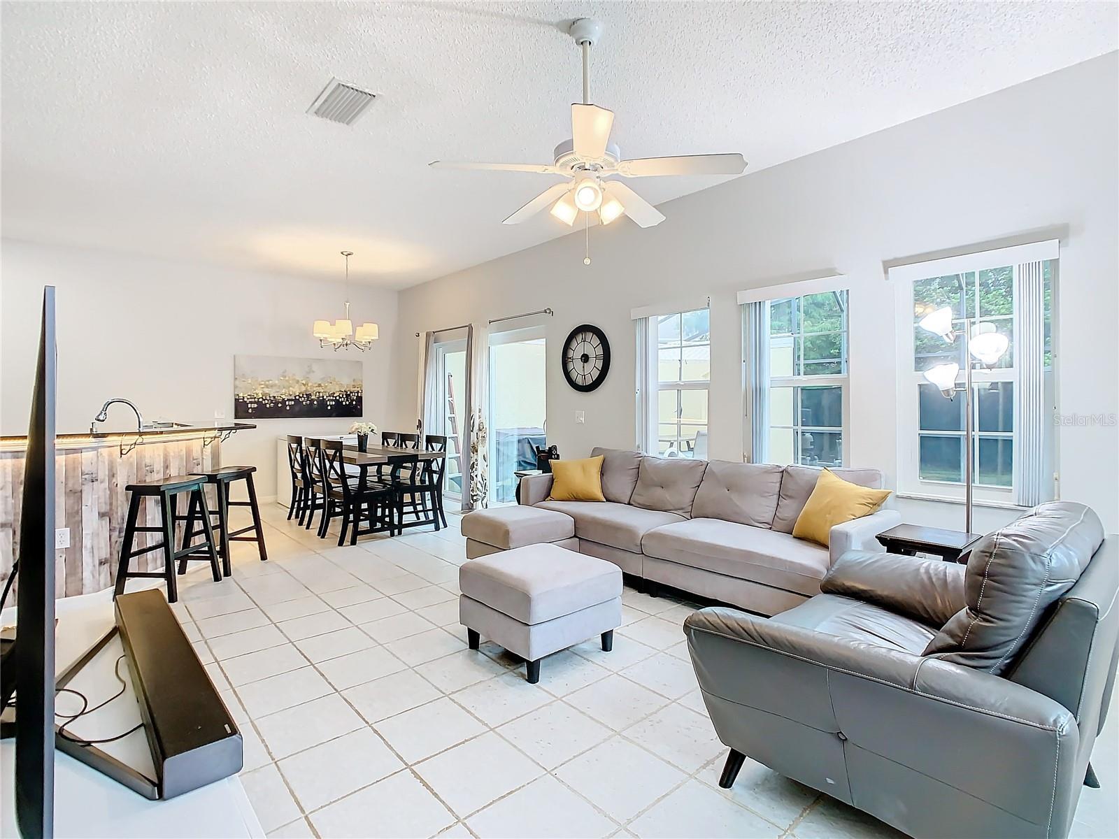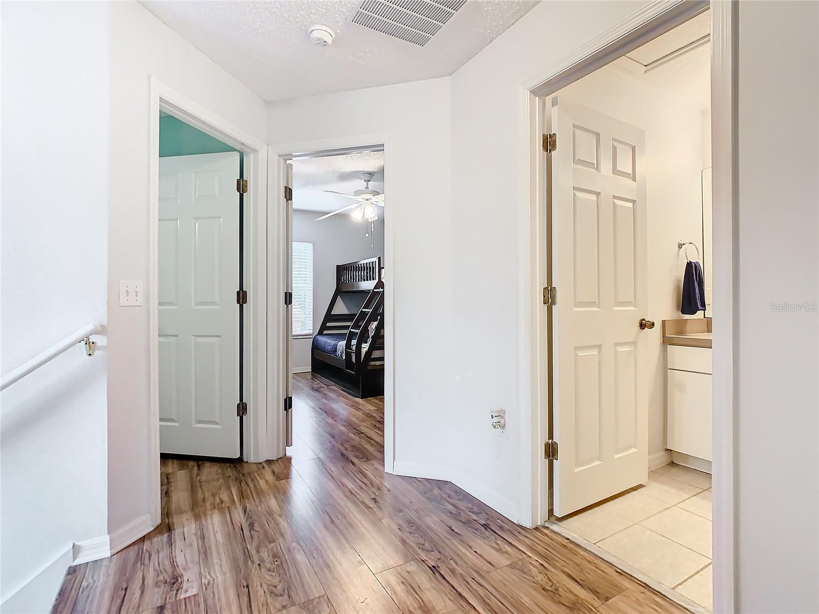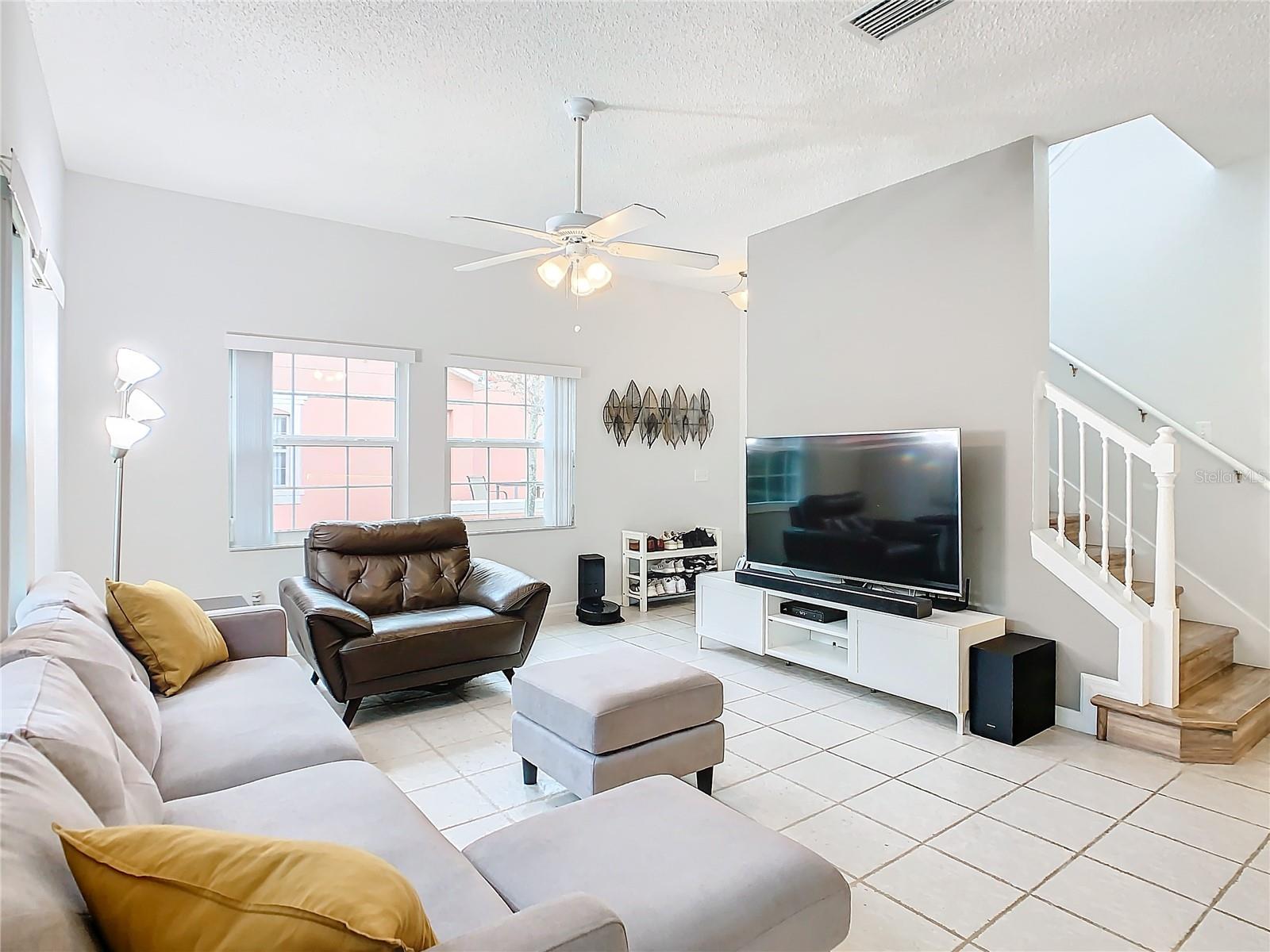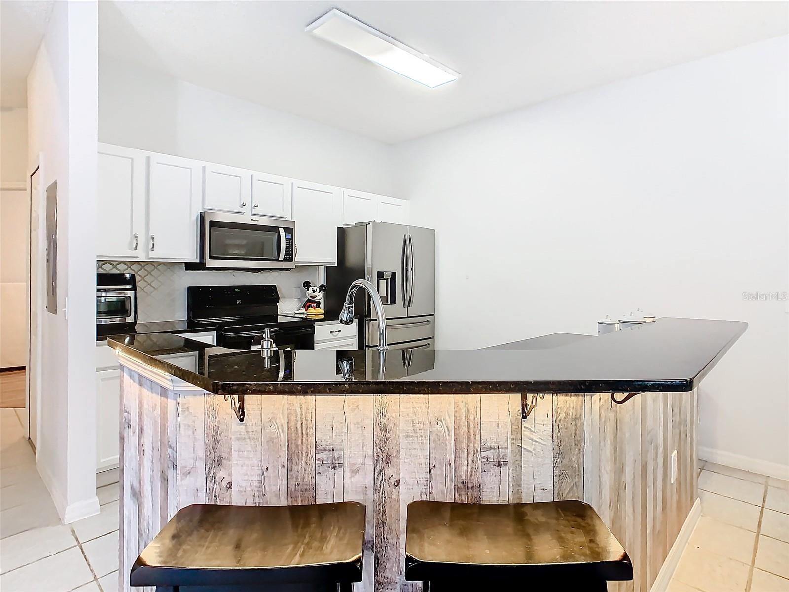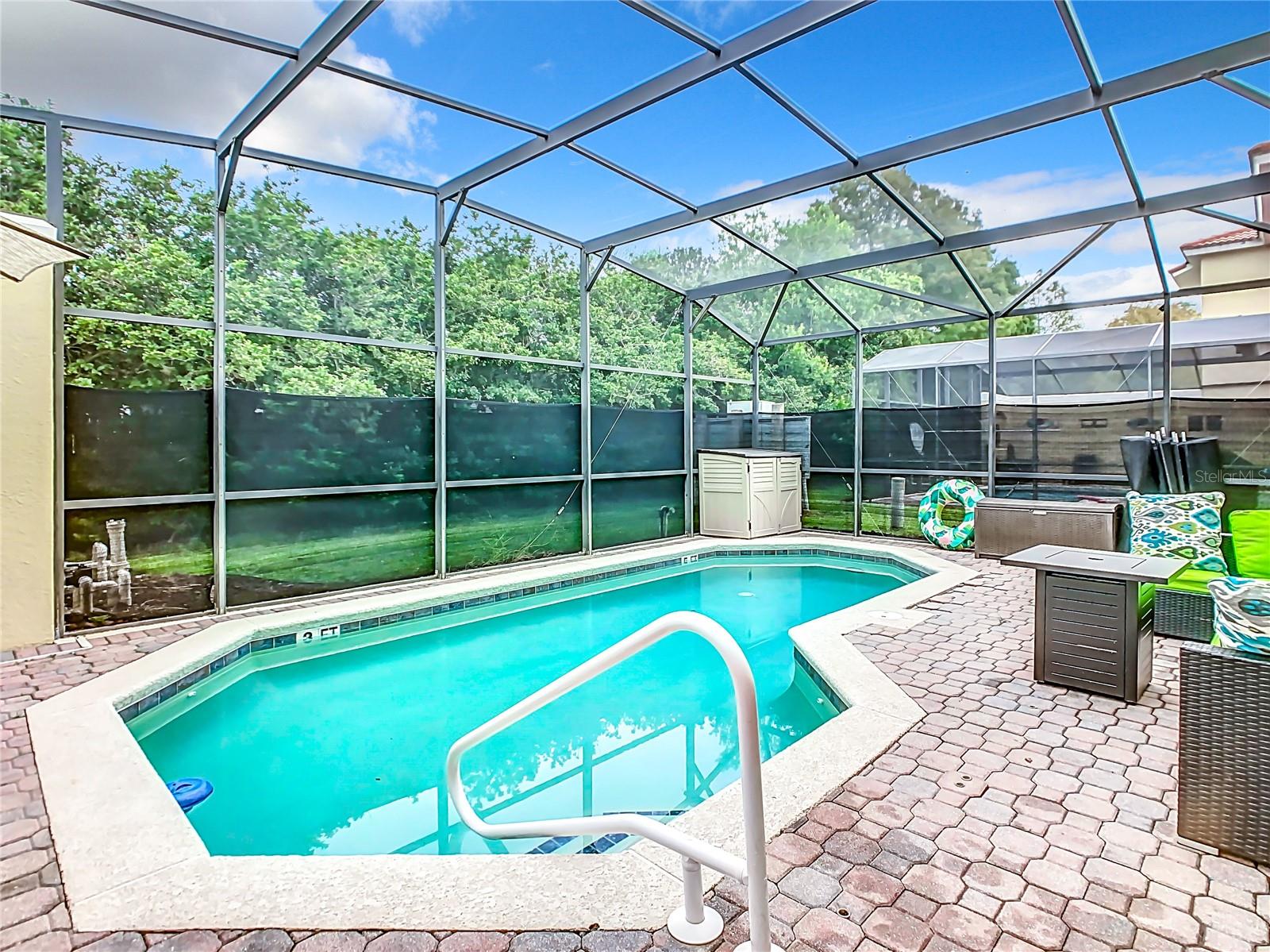 Discover this beautiful 4-bedroom, 3-bath townhome with a private pool, perfectly situated on a corner lot in the exclusive Terra Verde Villas. As you enter, you’ll be welcomed by an abundance of natural light and elegant tile flooring throughout the main level. The spacious family room creates a warm and inviting atmosphere, ideal for relaxing or entertaining. The kitchen boasts granite countertops, stainless steel appliances, and a convenient breakfast bar, providing ample cabinet and counter space. Overlooking the dining area, the kitchen flows effortlessly through sliding glass doors to the screened-in, sparkling pool—perfect for outdoor dining and lounging. On the first floor, you’ll find a versatile bedroom with a full bath, along with a convenient laundry closet. Upstairs, the expansive primary ensuite offers comfort and privacy, while the additional bedrooms share a well-appointed hall bath. The vinyl flooring seamlessly connects each room, giving the home a modern, cohesive feel. Terra Verde is designed with resort-style living in mind, offering a wide range of amenities including a clubhouse, fitness center, theater room, community pool, tennis and basketball courts, and more! As a primarily short-term rental community, this townhome is also a fantastic investment opportunity, just minutes from Disney, world-class attractions, dining, and shopping. Don’t miss the chance to own a slice of paradise in Terra Verde!