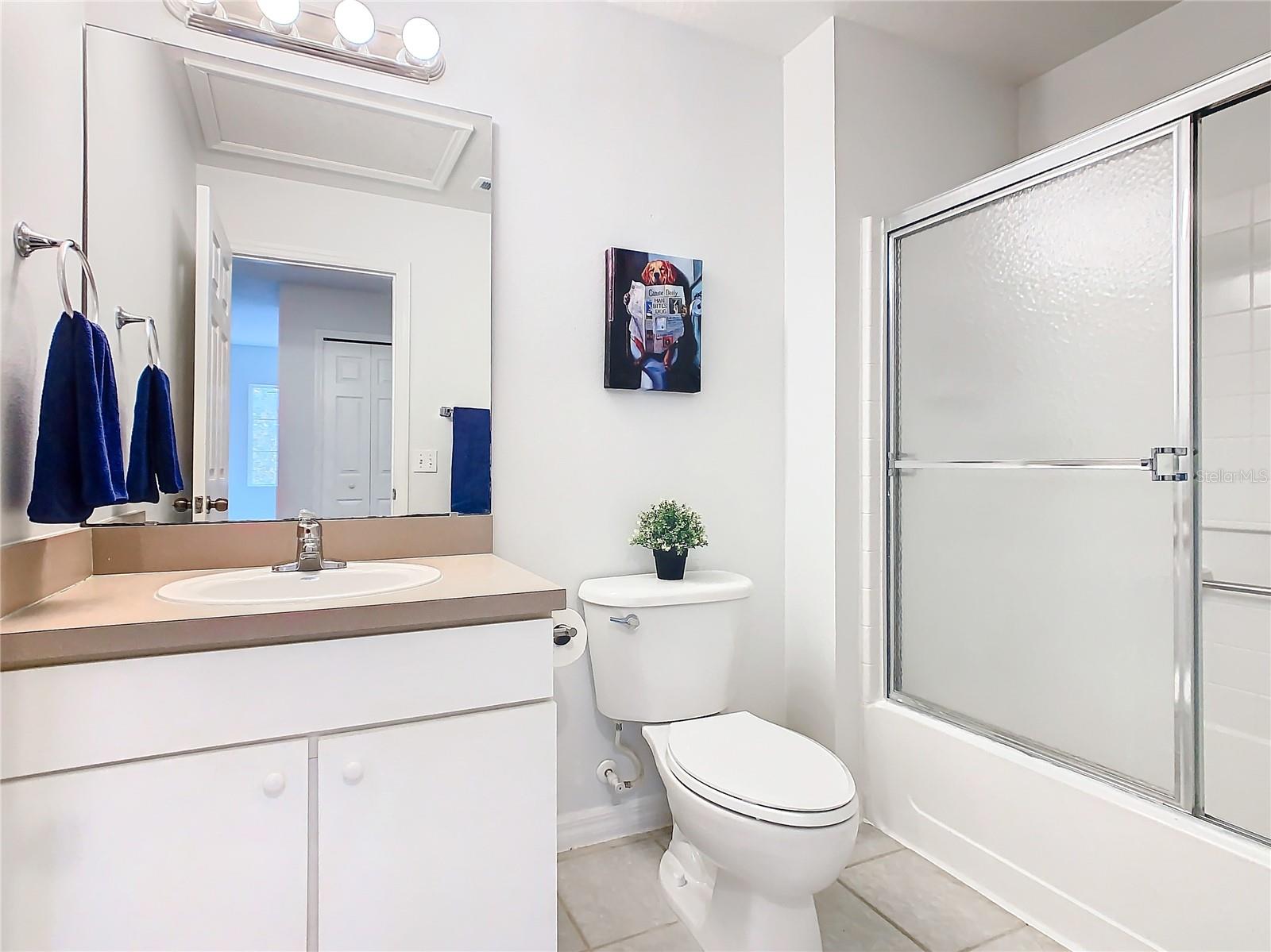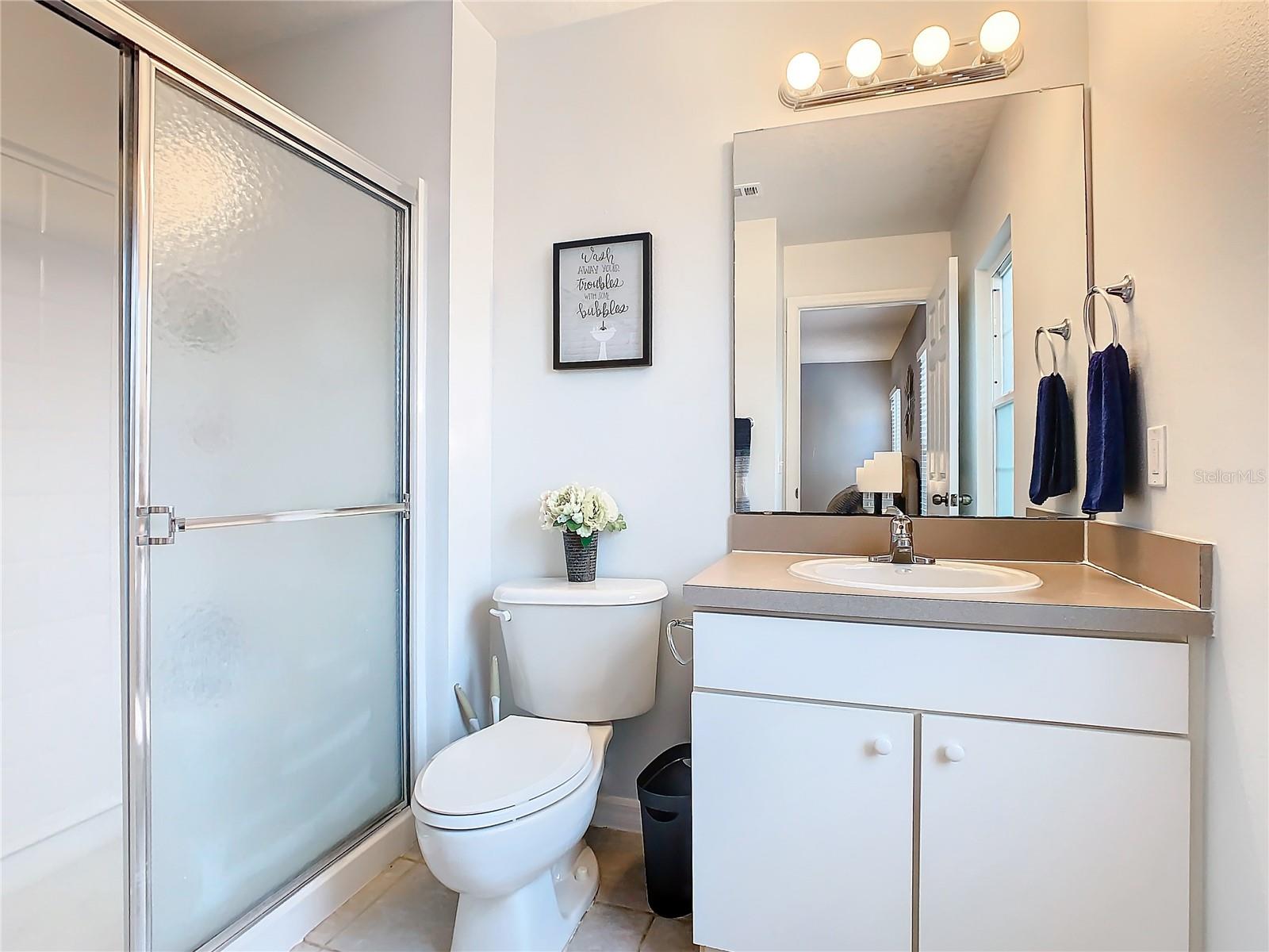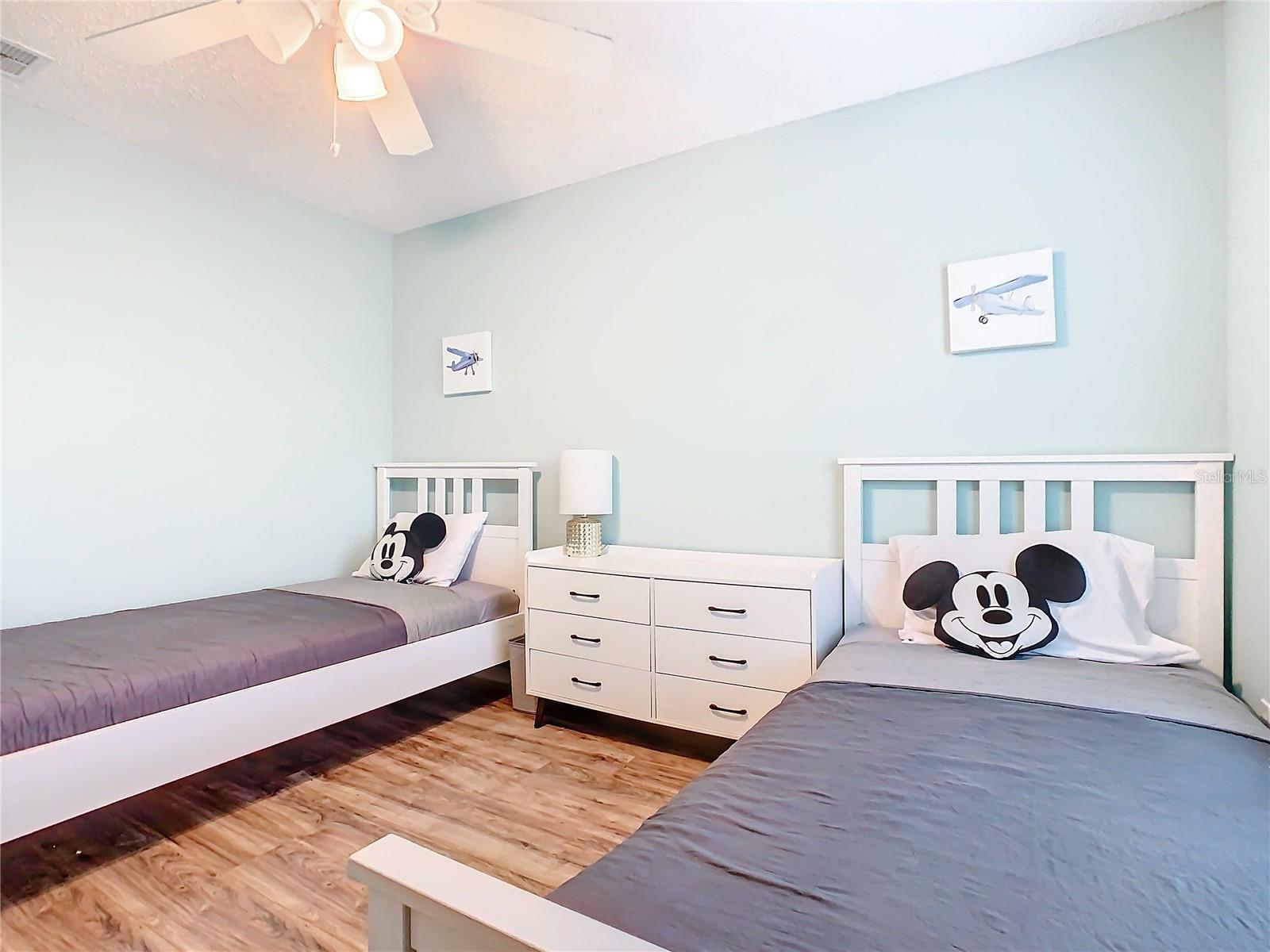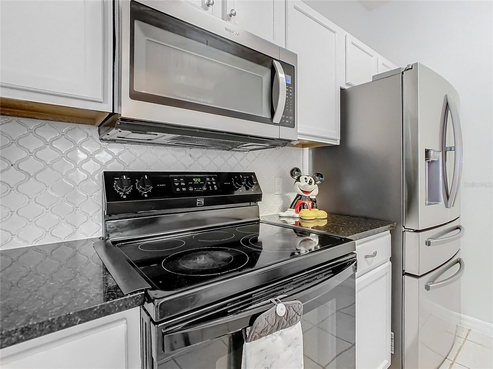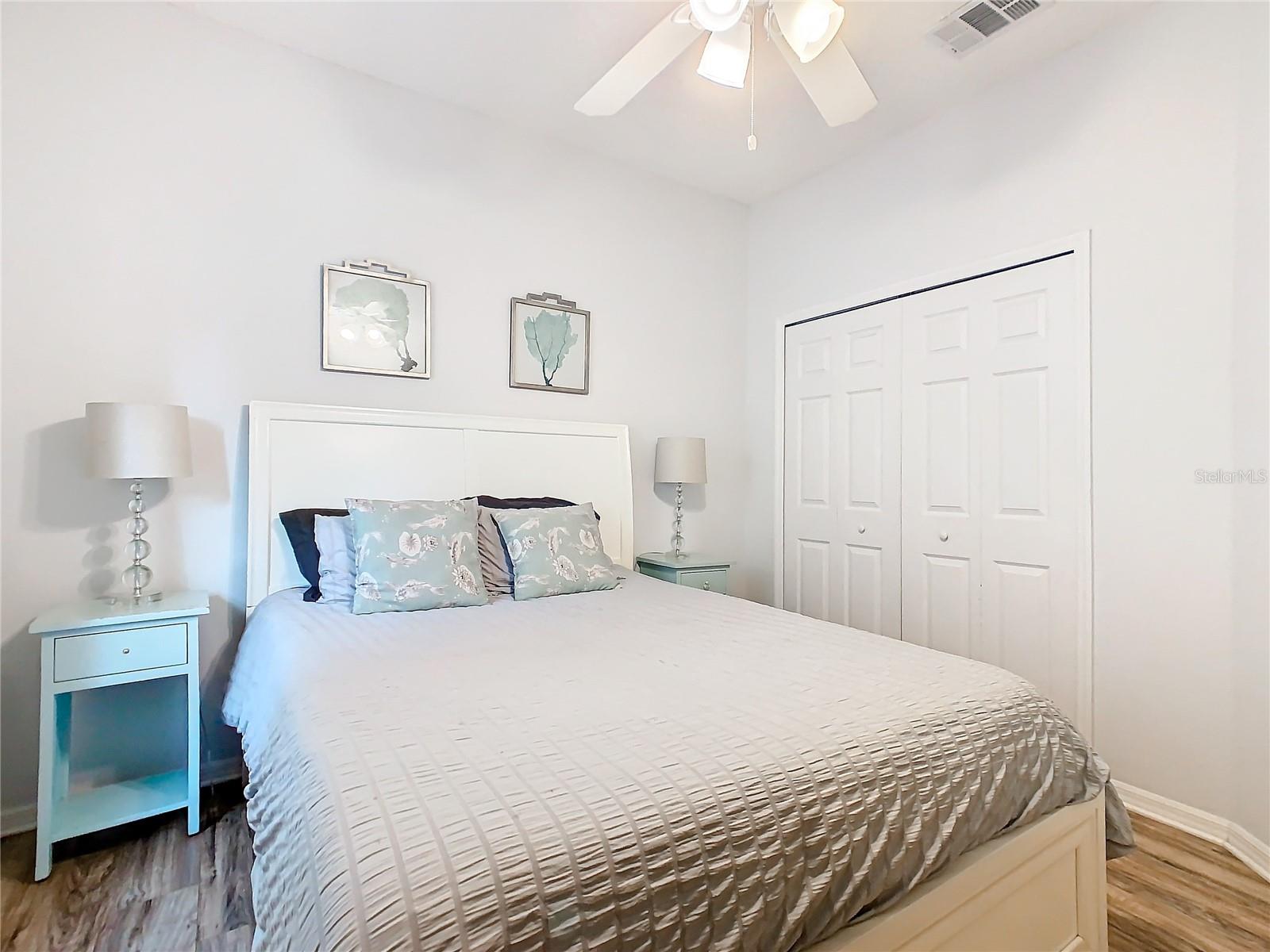 Discover this beautiful 4-bedroom, 3-bath townhome with a private pool, perfectly situated on a corner lot in the exclusive Terra Verde Villas. As you enter, you’ll be welcomed by an abundance of natural light and elegant tile flooring throughout the main level. The spacious family room creates a warm and inviting atmosphere, ideal for relaxing or entertaining. The kitchen boasts granite countertops, stainless steel appliances, and a convenient breakfast bar, providing ample cabinet and counter space. Overlooking the dining area, the kitchen flows effortlessly through sliding glass doors to the screened-in, sparkling pool—perfect for outdoor dining and lounging. On the first floor, you’ll find a versatile bedroom with a full bath, along with a convenient laundry closet. Upstairs, the expansive primary ensuite offers comfort and privacy, while the additional bedrooms share a well-appointed hall bath. The vinyl flooring seamlessly connects each room, giving the home a modern, cohesive feel. Terra Verde is designed with resort-style living in mind, offering a wide range of amenities including a clubhouse, fitness center, theater room, community pool, tennis and basketball courts, and more! As a primarily short-term rental community, this townhome is also a fantastic investment opportunity, just minutes from Disney, world-class attractions, dining, and shopping. Don’t miss the chance to own a slice of paradise in Terra Verde!