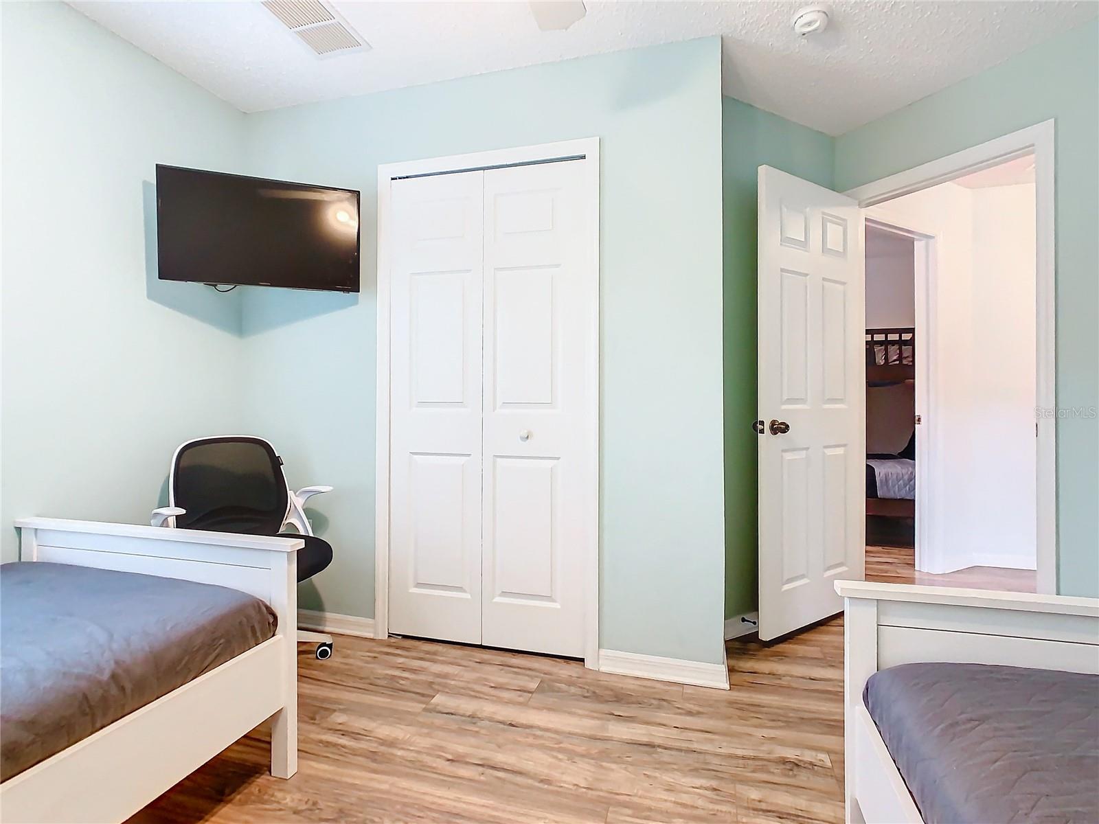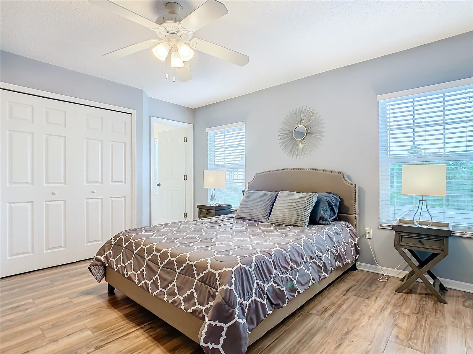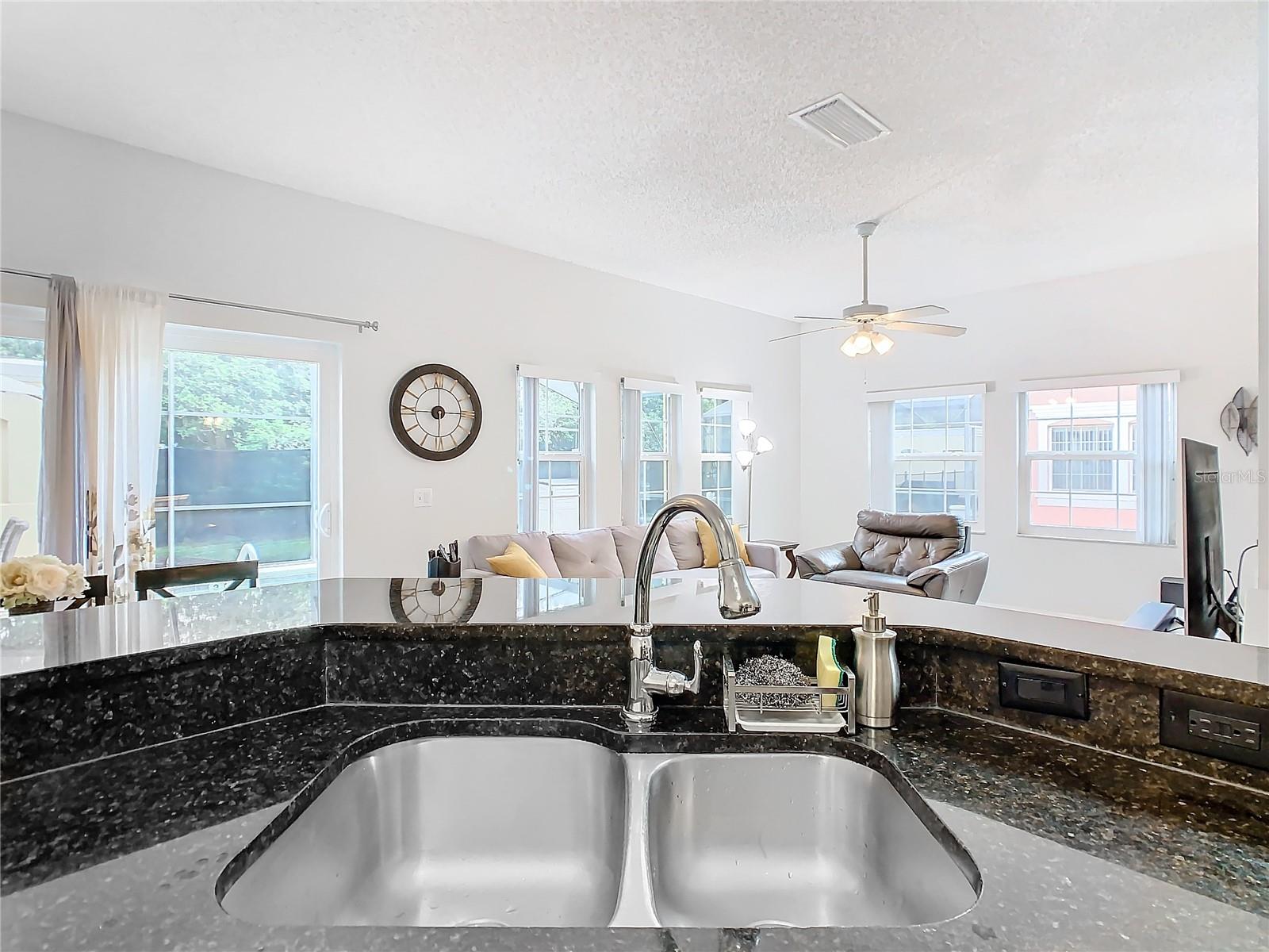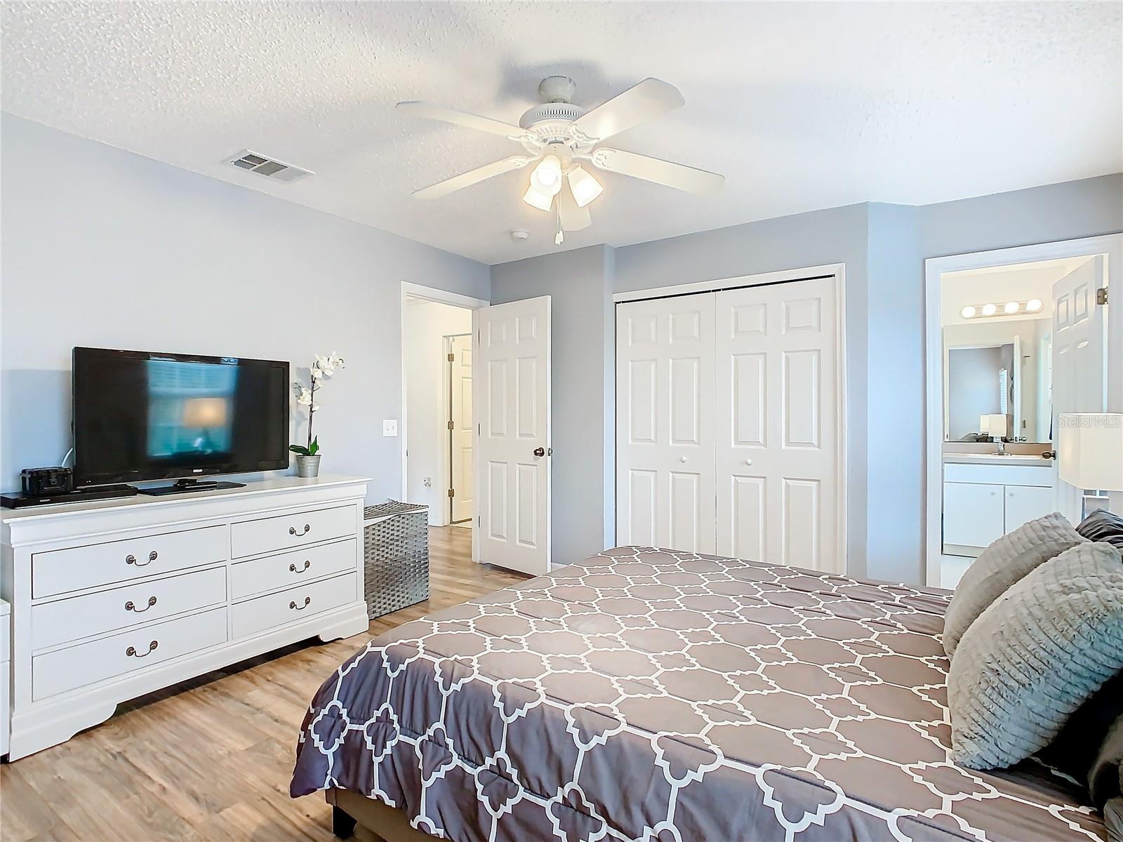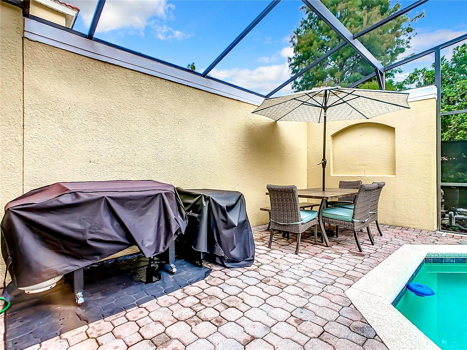 Discover this beautiful 4-bedroom, 3-bath townhome with a private pool, perfectly situated on a corner lot in the exclusive Terra Verde Villas. As you enter, you’ll be welcomed by an abundance of natural light and elegant tile flooring throughout the main level. The spacious family room creates a warm and inviting atmosphere, ideal for relaxing or entertaining. The kitchen boasts granite countertops, stainless steel appliances, and a convenient breakfast bar, providing ample cabinet and counter space. Overlooking the dining area, the kitchen flows effortlessly through sliding glass doors to the screened-in, sparkling pool—perfect for outdoor dining and lounging. On the first floor, you’ll find a versatile bedroom with a full bath, along with a convenient laundry closet. Upstairs, the expansive primary ensuite offers comfort and privacy, while the additional bedrooms share a well-appointed hall bath. The vinyl flooring seamlessly connects each room, giving the home a modern, cohesive feel. Terra Verde is designed with resort-style living in mind, offering a wide range of amenities including a clubhouse, fitness center, theater room, community pool, tennis and basketball courts, and more! As a primarily short-term rental community, this townhome is also a fantastic investment opportunity, just minutes from Disney, world-class attractions, dining, and shopping. Don’t miss the chance to own a slice of paradise in Terra Verde!