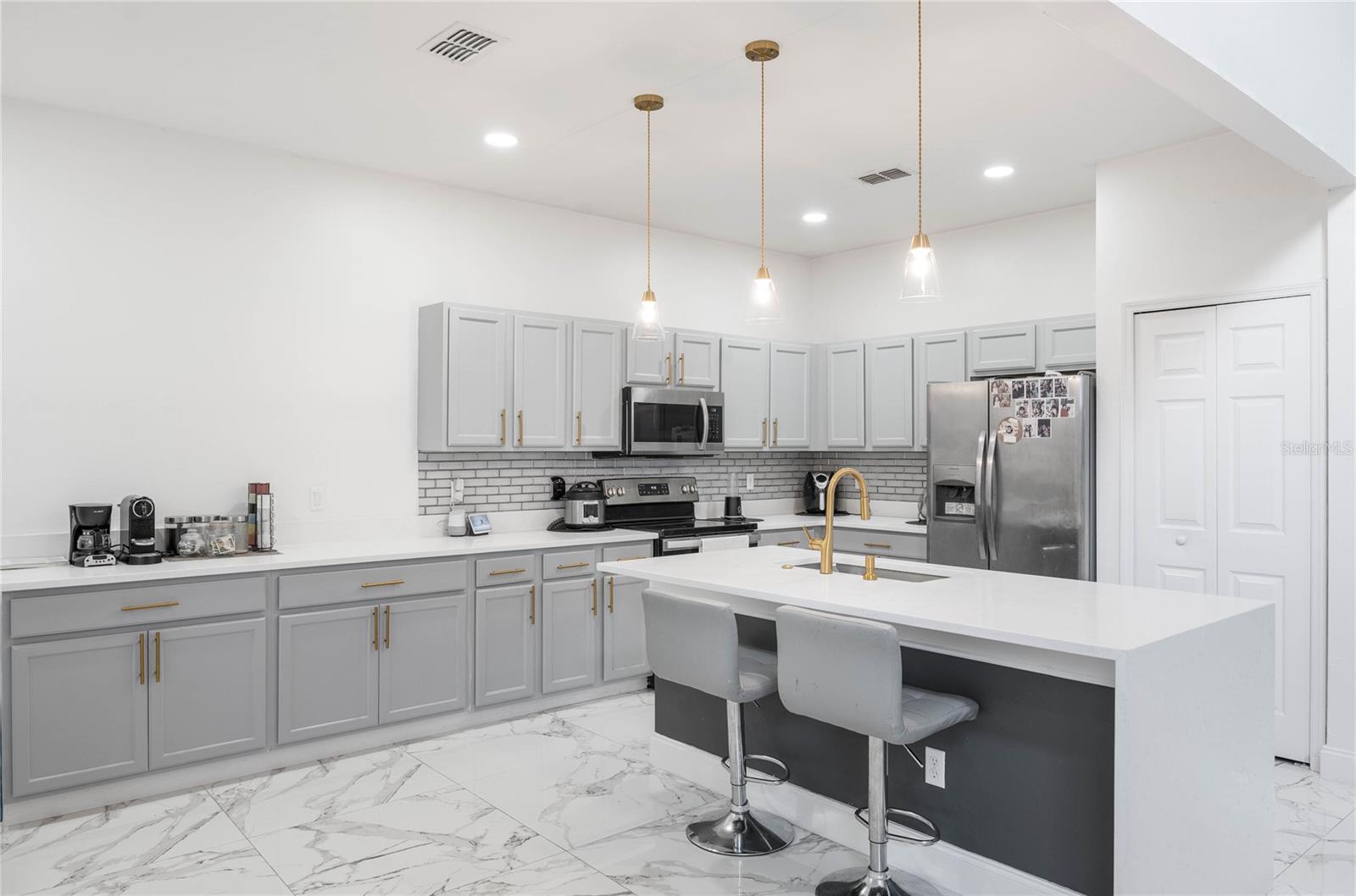 Welcome to your dream home! This stunning, recently renovated 3-bedroom, 2.5-bathroom property is situated in a highly sought-after, safe, and secure gated community. It boasts 24-hour security and patrol for your peace of mind. 3 Bedrooms / 2.5 Bathrooms with a Bonus Room (Loft) – Perfect for a home office, playroom, or additional living space. Spacious Family Room – Featuring high ceilings that create an open and airy atmosphere. Elegant Dining Room – Ideal for hosting family gatherings or dinner parties. Modern Kitchen – Beautifully renovated with white cabinetry and sleek finishes, ready for the chef in the family. Immaculate Tile Flooring – Clean, white tiles throughout for a fresh, modern look. Corner Lot – Offering ample outdoor space and a large backyard, perfect for entertaining or relaxing in privacy. This home is located in a family-friendly community, known for its safety and well-maintained environment. Enjoy the comfort and luxury of this beautiful property while being just a short drive from local shops, dining, and entertainment. Don’t miss out on this amazing opportunity to own a home that’s move-in ready in Kissimmee! Contact us today for more information or to schedule a viewing!