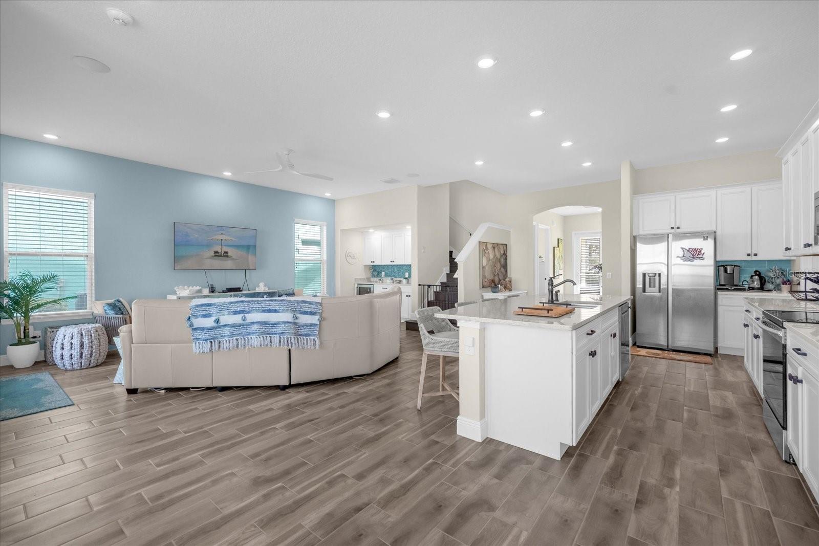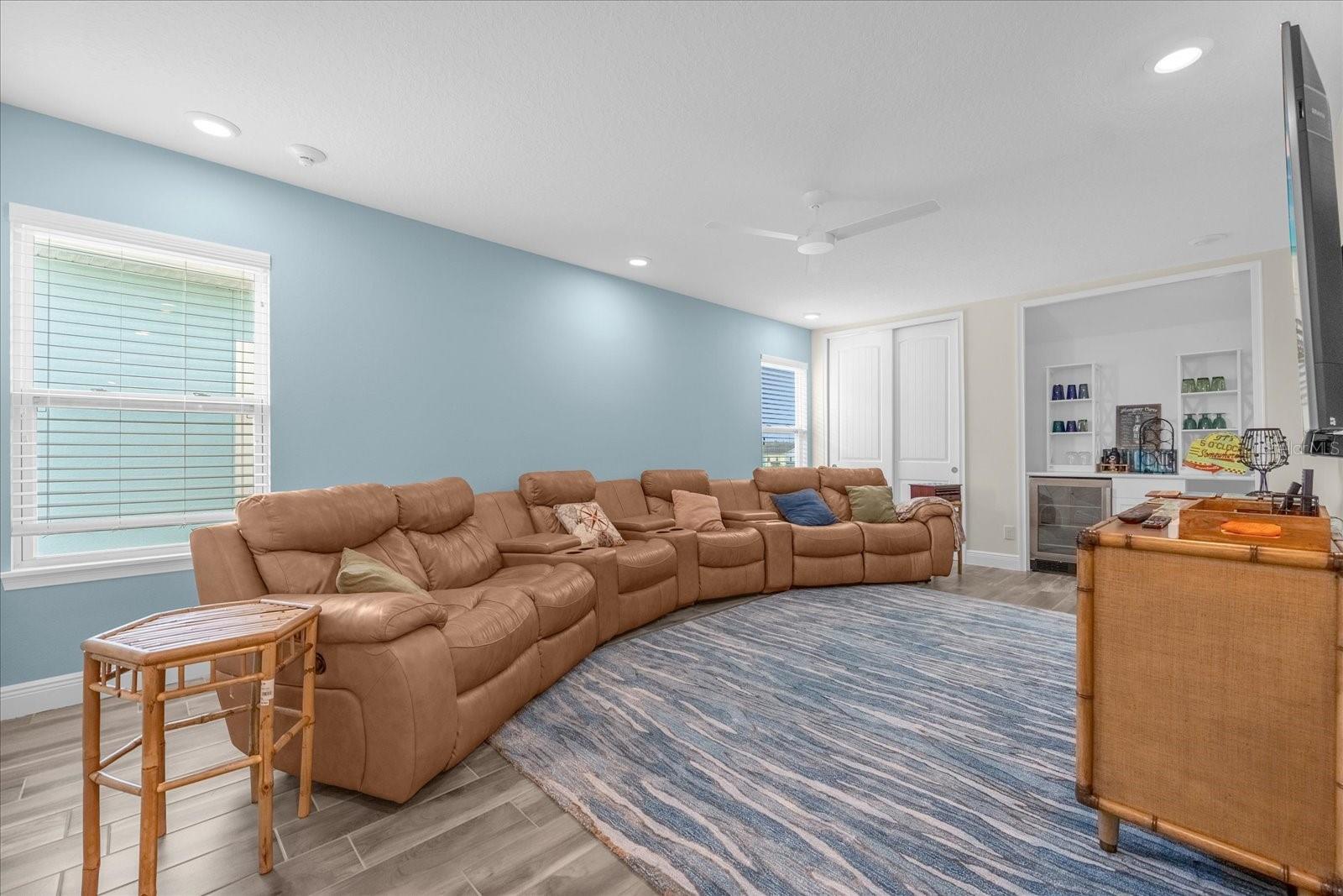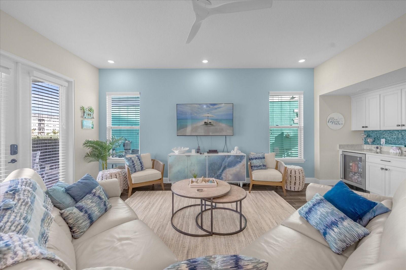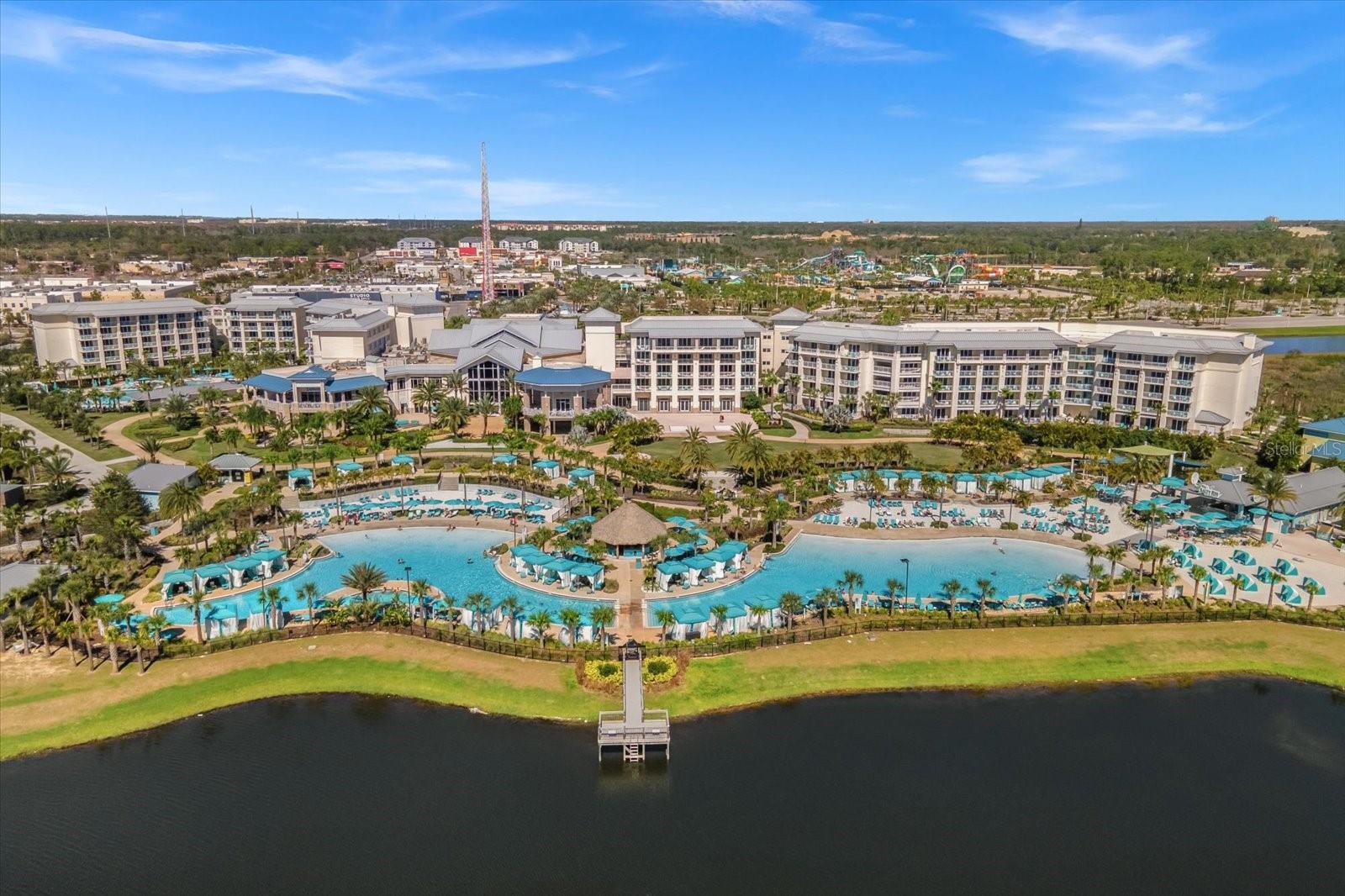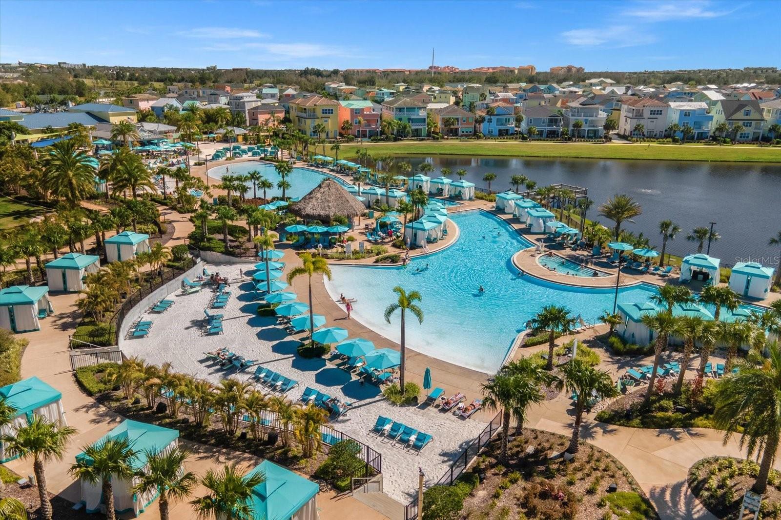 RENTAL PROJECTIONS OVER 180K **A RARE find in the heart of one of Central Florida’s premier resort Communities. RESORT STYLE LIVING AND OWNING! There are only a HANDFUL of 7 bedrooms in the entire resort and they rarely come up for sale, UNITIL NOW! This is a Highly desirable floor plan with tons of the most sought-after finishes allowed in the resort. Welcome to “Sunny Side Up’ at Margaritaville! Full time, part time or investment living at its finest. Notice first that this property is located with the most desired view in the entire resort called “large lake view.” The lot itself feels larger than the lots around it! Escape to this well-appointed floor plan which features 2 first floor bedrooms. A must for guests and renters who don’t do stairs. Also notice the reserved handicap parking spaces in the front of the home. Once inside you are drawn to the robust water views off the large paver pool deck. Everyone loves the large open floor plan and ceiling height. The kitchen’s cabinets and quartz countertop fit perfect in the coastal theme décor of the home. Also notice the extra built-in fridge, storage and wet bar area off the first floor living space. Easy access to the pool and grilling area also accents the first floor and not to mention a private pool bath with multiple entry points for easy access. The home is filled with tons of storage, a walk-in pantry, and each bedroom has its own bathroom. Winning! Gathering areas are a must and the dinning space is large and surrounded by bright and airy windows. Perfect for a morning cup of coffee or planning your beach day. The second floor has dual patios with amazing vistas and the third floor is perfectly decorated and acts has the quiet space to get away from it all. The third floor also has a media room that makes for a great place to gather everyone to look at the pictures from the days adventures or host a movie night! Margaritaville is a top 3 sought after destination in Central Florida with the Sunset Walk Entertainment District, Disney, Theme Parks, Restaurants, Shopping, Water parks, Grocery, Transportation and if needed Medical Care just minutes away. It really doesn’t get much better. There is no doubt that this house will not last long. Please schedule your private showing today!