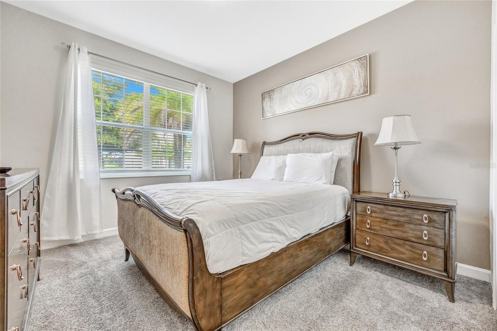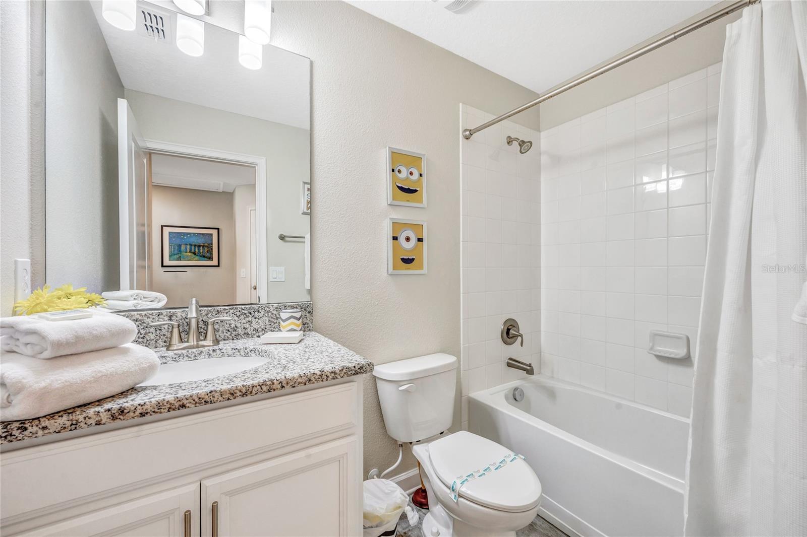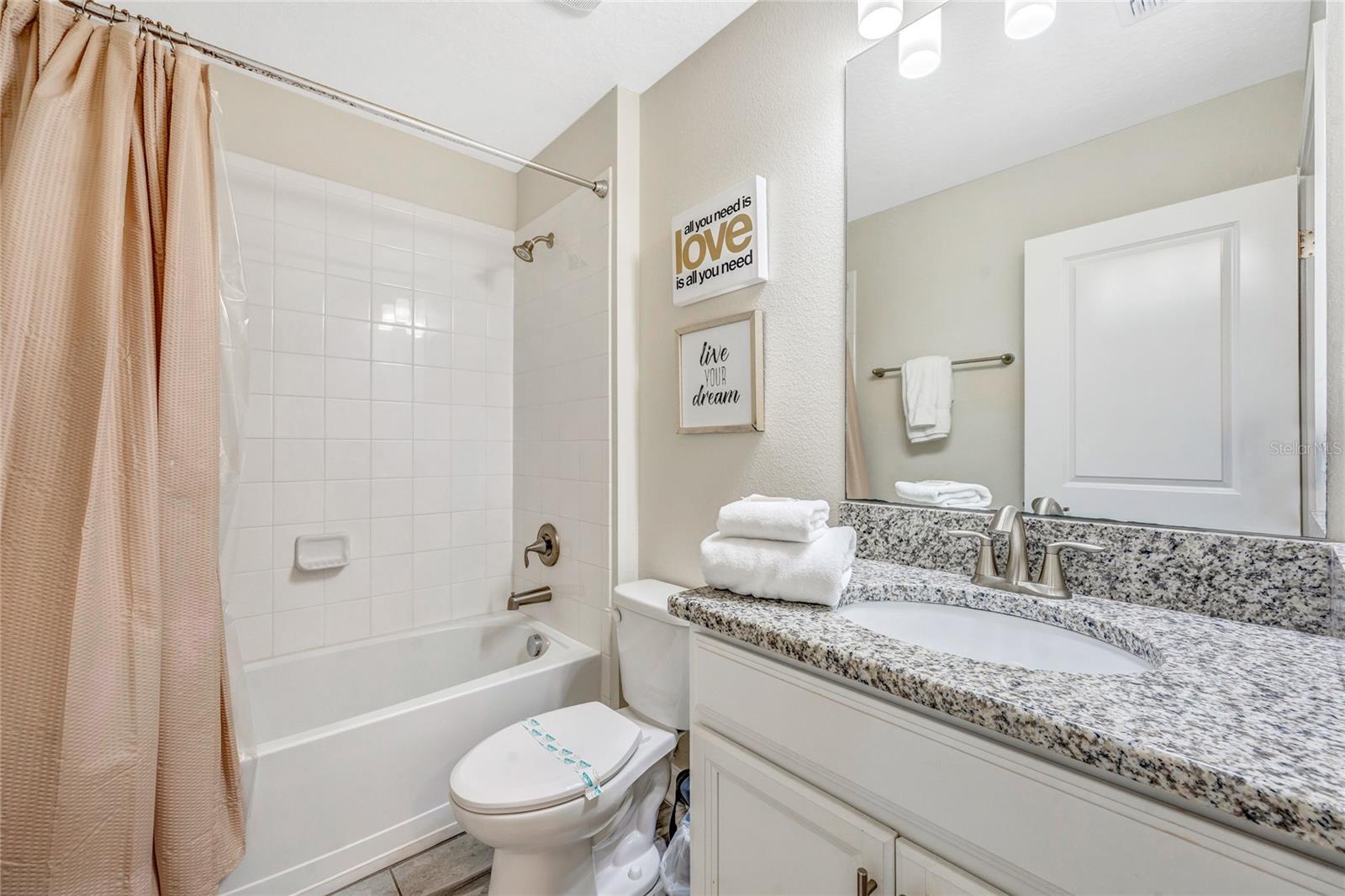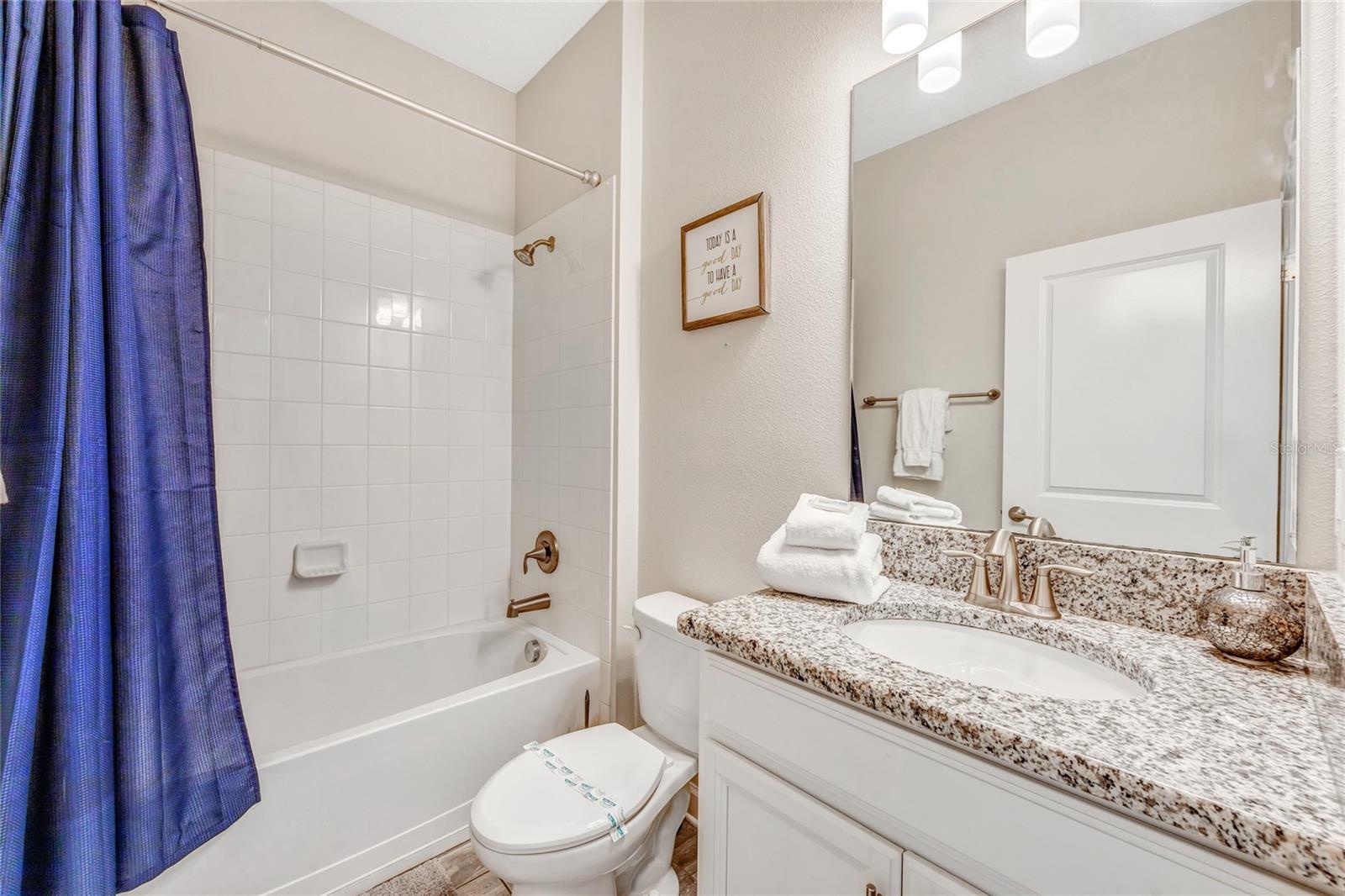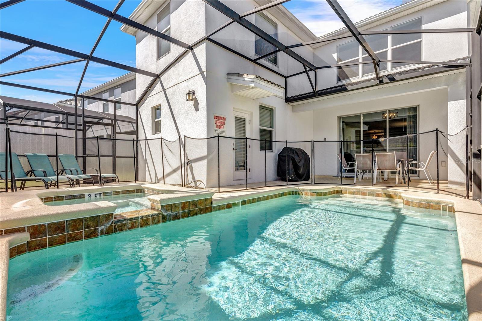YOUR PARADISE AWAITS! This wonderful FULLY-FURNISHED POOL HOME is ready to go - as an investment property, vacation home, or primary residence! Walk in to the spacious, open-concept living space featuring tons of seating, a formal dining table, and easy access to the kitchen. The kitchen has GRANITE countertops, STAINLESS STEEL appliances, large pantry, and counter seating! There are two DOWNSTAIRS BEDROOMS, each with their own dedicated bathroom. The back bathroom even has a door to the patio for easy access from the pool! Upstairs, you have a large LOFT SPACE that overlooks the downstairs, perfect for a movie room or game room. There are two THEMED guest bedrooms, each with their own bathroom. The final bedroom is a large primary suite, with a SOAKING TUB and large walk-in shower. Stepping outside, you have a PRIVATE POOL AND SPA with room for lounging and dining, the perfect Florida retreat! The garage has also been equipped as a GAME ROOM, a great space to entertain guests of all ages. The GATED Storey Lake community features a large clubhouse with fitness center, resort-style pool, lazy river, water slides, splash pad, mini golf course, volleyball, and more! Plus, the HOA includes landscaping, basic cable and internet, and trash pickup, so there is little for you and guests to worry about. Located between Walt Disney World and Orlando International Airport, the community is in the PERFECT LOCATION, with easy access to numerous shopping, dining, and entertainment destinations. Make this home your Florida oasis, before it is gone!