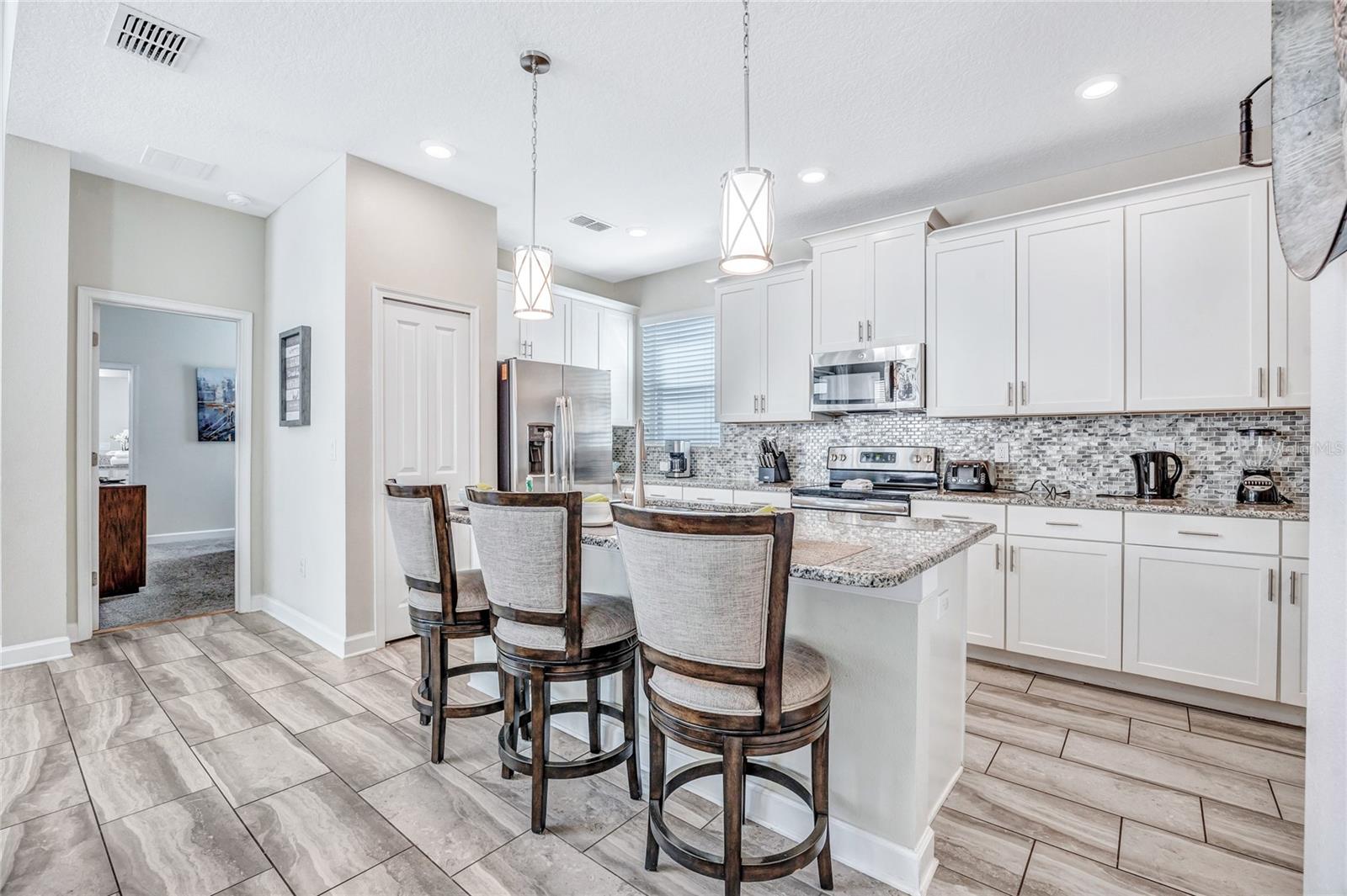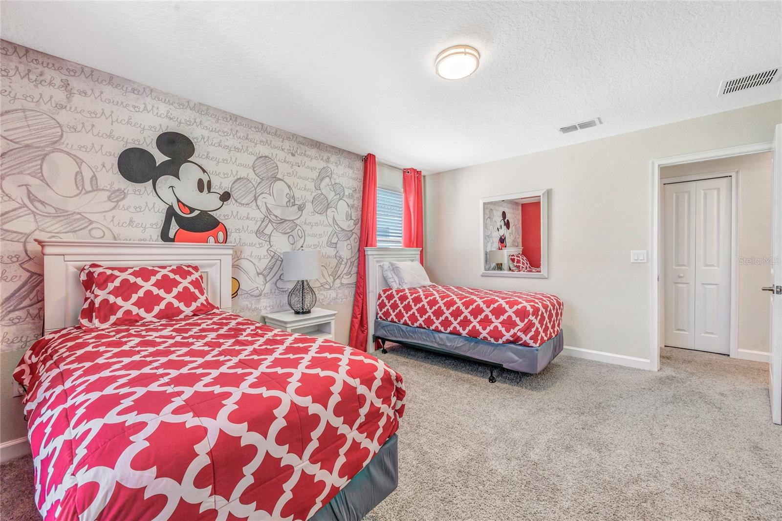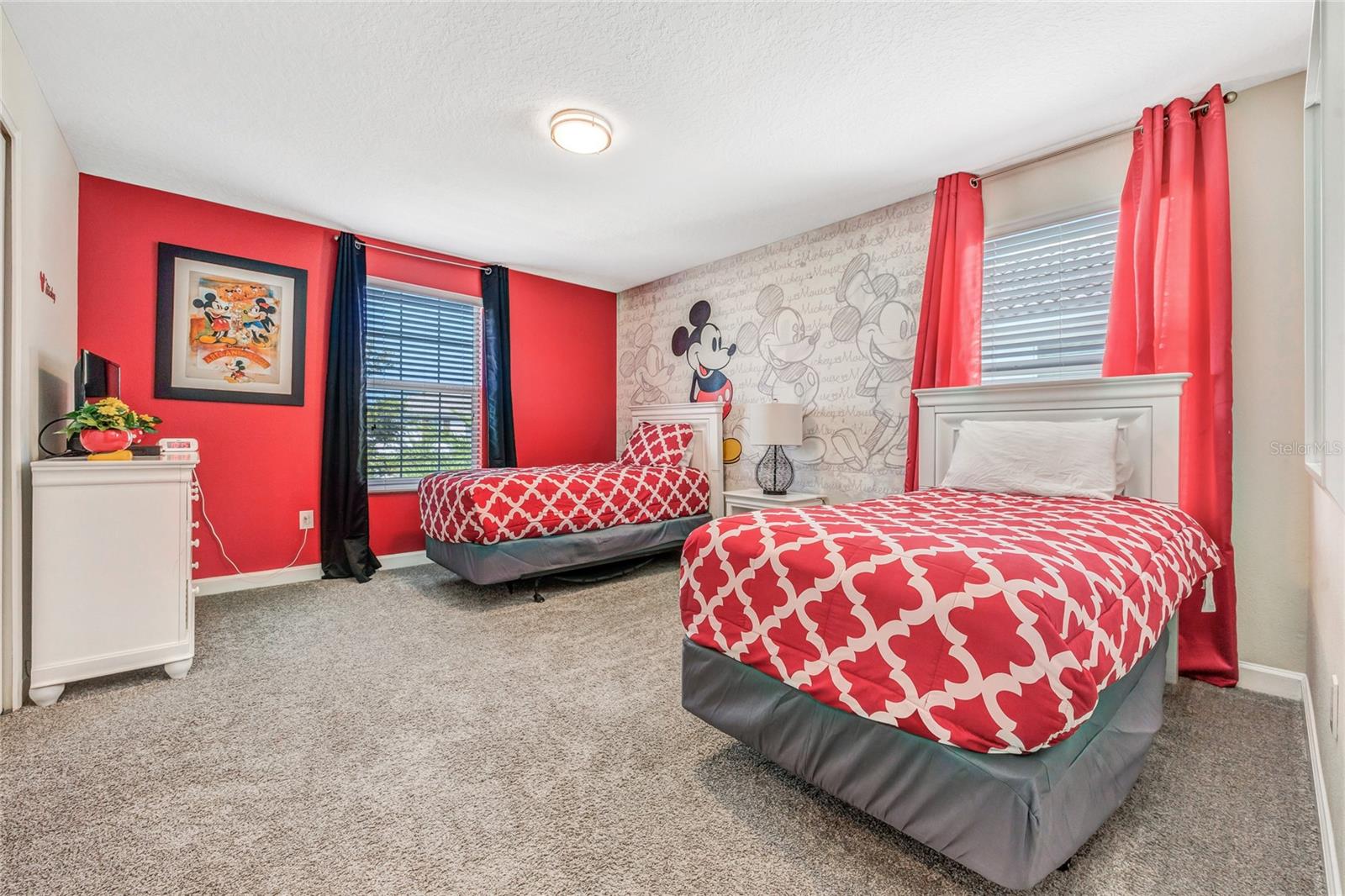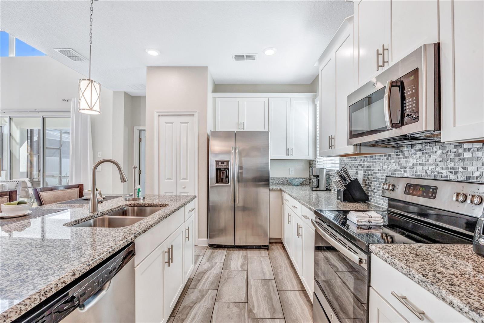 YOUR PARADISE AWAITS! This wonderful FULLY-FURNISHED POOL HOME is ready to go - as an investment property, vacation home, or primary residence! Walk in to the spacious, open-concept living space featuring tons of seating, a formal dining table, and easy access to the kitchen. The kitchen has GRANITE countertops, STAINLESS STEEL appliances, large pantry, and counter seating! There are two DOWNSTAIRS BEDROOMS, each with their own dedicated bathroom. The back bathroom even has a door to the patio for easy access from the pool! Upstairs, you have a large LOFT SPACE that overlooks the downstairs, perfect for a movie room or game room. There are two THEMED guest bedrooms, each with their own bathroom. The final bedroom is a large primary suite, with a SOAKING TUB and large walk-in shower. Stepping outside, you have a PRIVATE POOL AND SPA with room for lounging and dining, the perfect Florida retreat! The garage has also been equipped as a GAME ROOM, a great space to entertain guests of all ages. The GATED Storey Lake community features a large clubhouse with fitness center, resort-style pool, lazy river, water slides, splash pad, mini golf course, volleyball, and more! Plus, the HOA includes landscaping, basic cable and internet, and trash pickup, so there is little for you and guests to worry about. Located between Walt Disney World and Orlando International Airport, the community is in the PERFECT LOCATION, with easy access to numerous shopping, dining, and entertainment destinations. Make this home your Florida oasis, before it is gone!