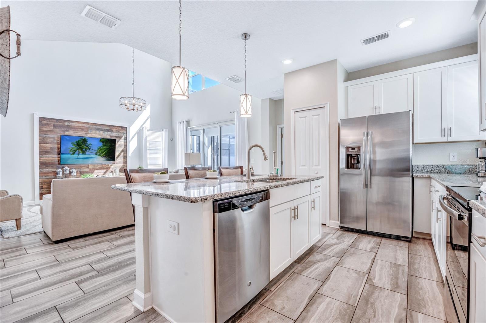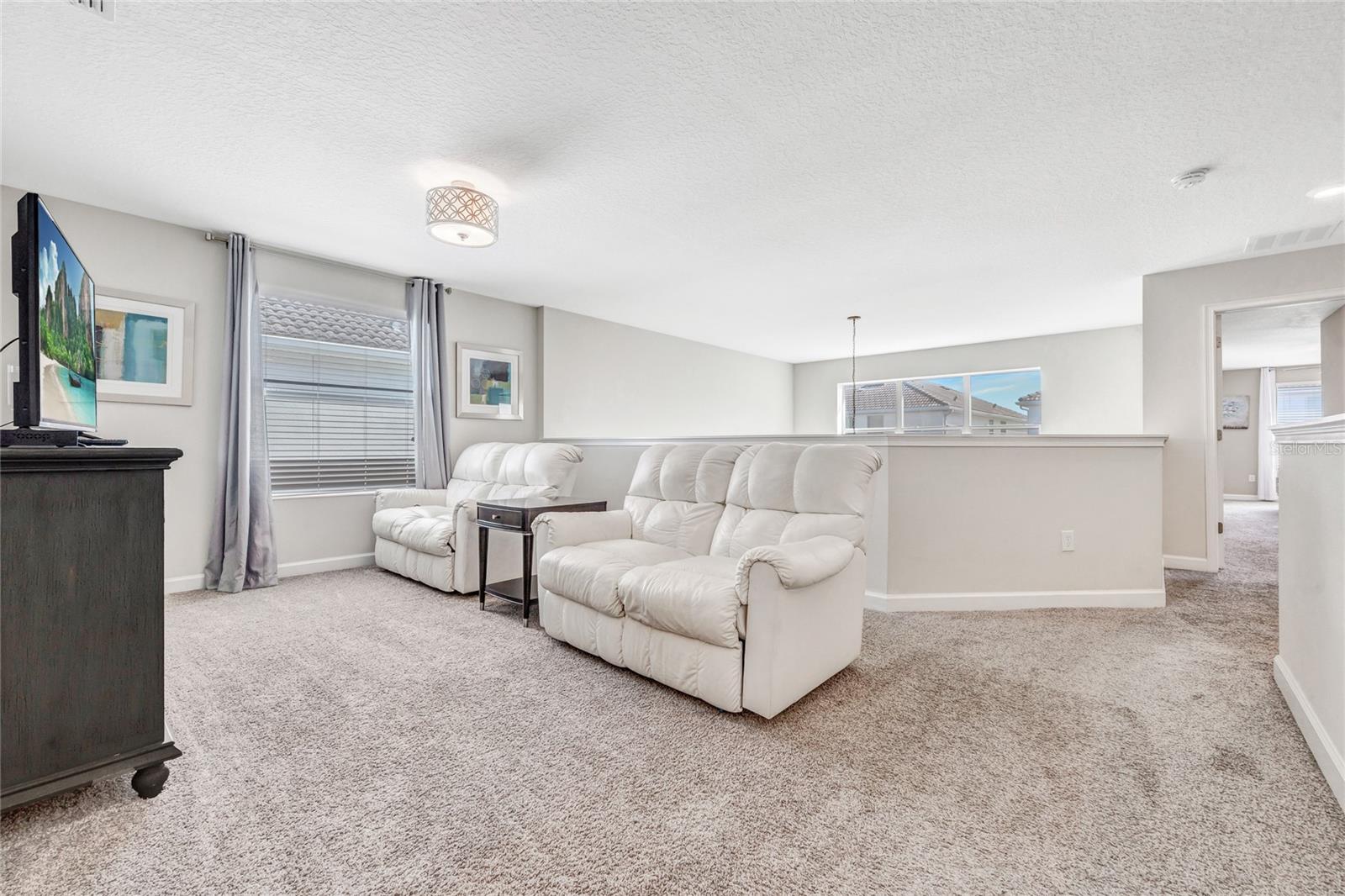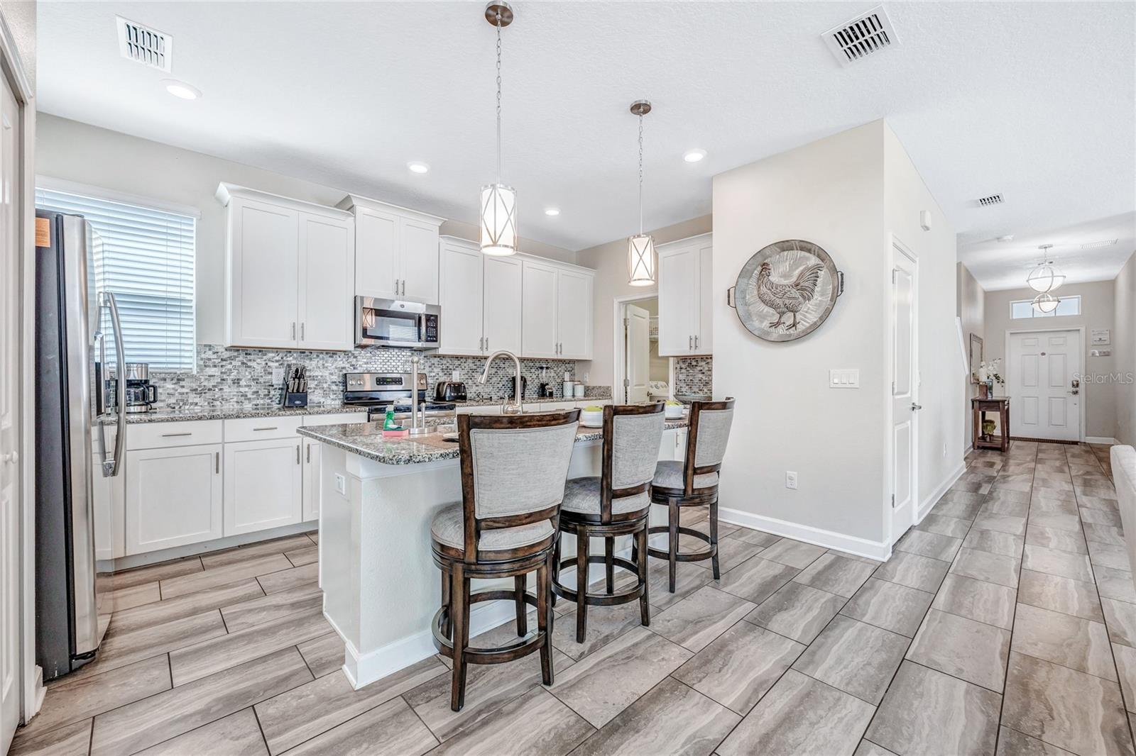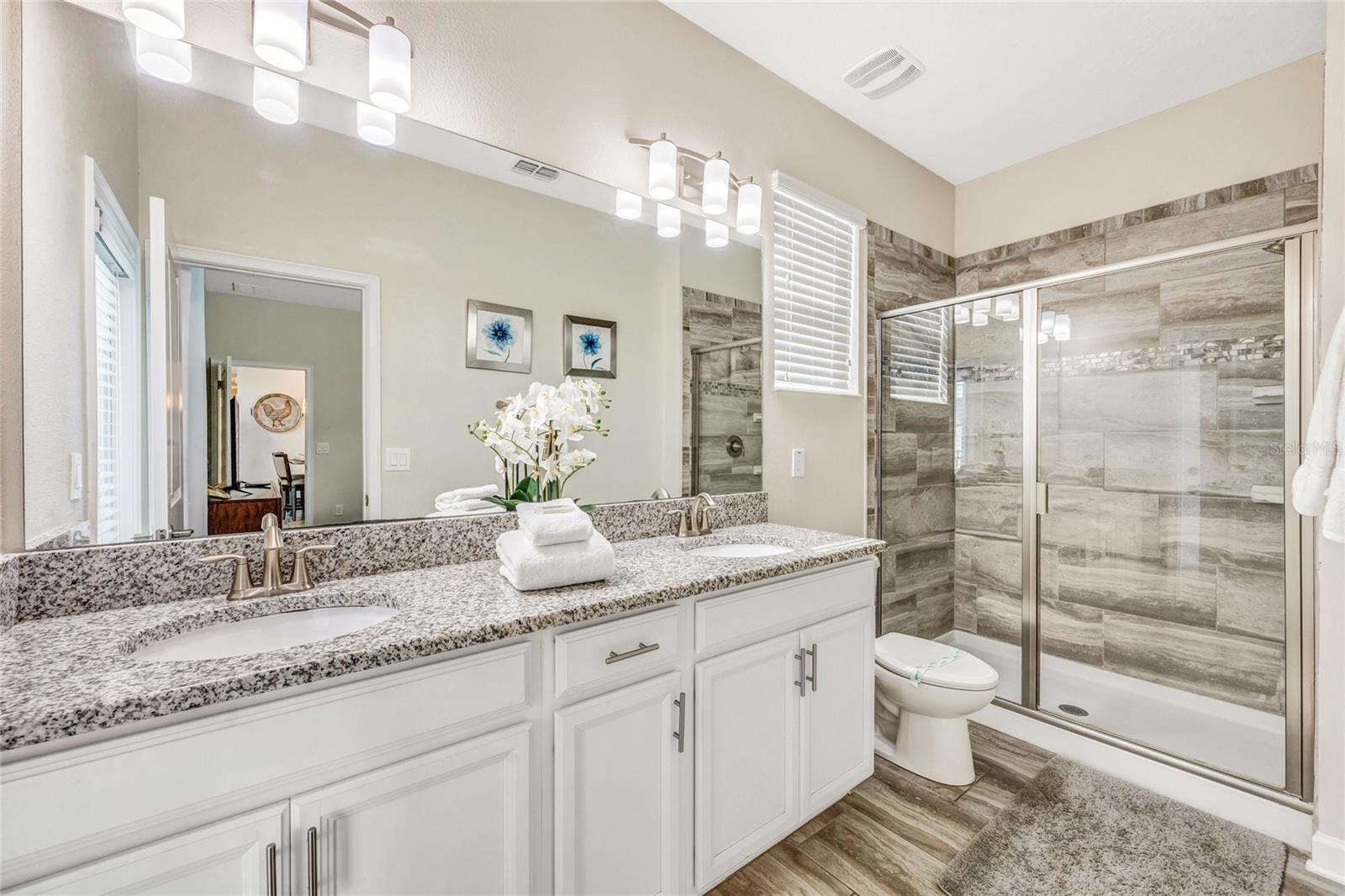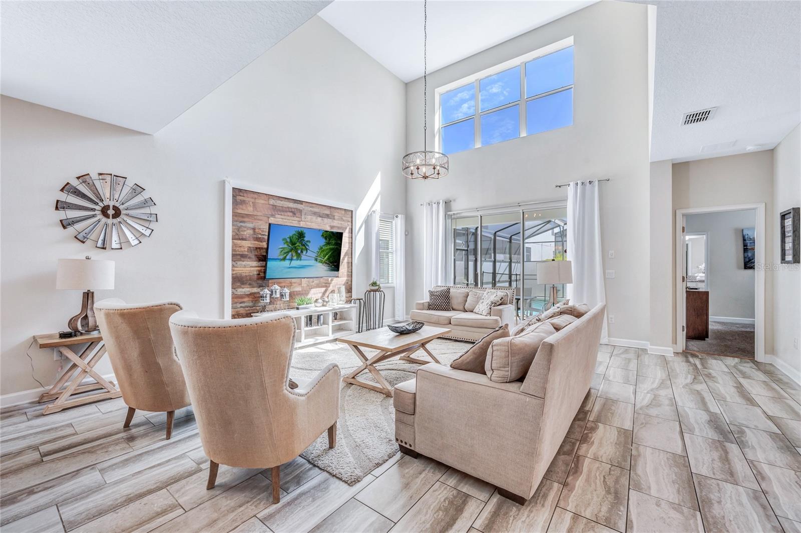 YOUR PARADISE AWAITS! This wonderful FULLY-FURNISHED POOL HOME is ready to go - as an investment property, vacation home, or primary residence! Walk in to the spacious, open-concept living space featuring tons of seating, a formal dining table, and easy access to the kitchen. The kitchen has GRANITE countertops, STAINLESS STEEL appliances, large pantry, and counter seating! There are two DOWNSTAIRS BEDROOMS, each with their own dedicated bathroom. The back bathroom even has a door to the patio for easy access from the pool! Upstairs, you have a large LOFT SPACE that overlooks the downstairs, perfect for a movie room or game room. There are two THEMED guest bedrooms, each with their own bathroom. The final bedroom is a large primary suite, with a SOAKING TUB and large walk-in shower. Stepping outside, you have a PRIVATE POOL AND SPA with room for lounging and dining, the perfect Florida retreat! The garage has also been equipped as a GAME ROOM, a great space to entertain guests of all ages. The GATED Storey Lake community features a large clubhouse with fitness center, resort-style pool, lazy river, water slides, splash pad, mini golf course, volleyball, and more! Plus, the HOA includes landscaping, basic cable and internet, and trash pickup, so there is little for you and guests to worry about. Located between Walt Disney World and Orlando International Airport, the community is in the PERFECT LOCATION, with easy access to numerous shopping, dining, and entertainment destinations. Make this home your Florida oasis, before it is gone!