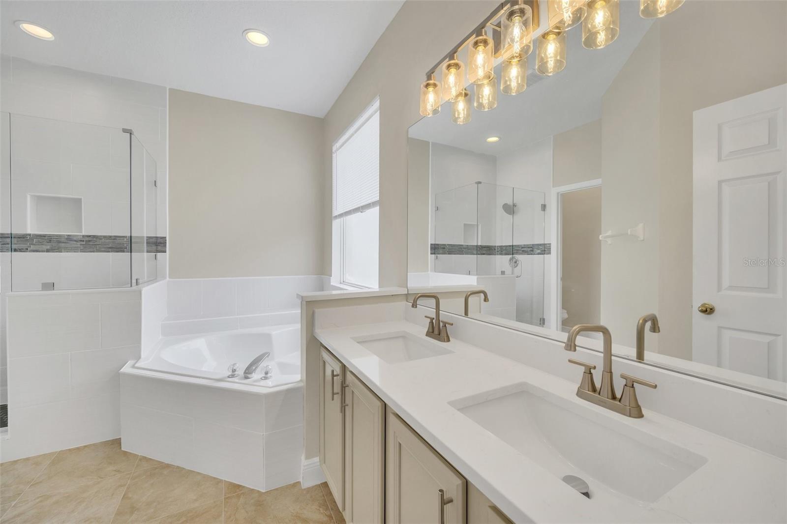 Welcome to your dream escape in the prestigious Emerald Island Resort, a secure gated community just minutes from Disney and Orlando’s top attractions! This beautifully remodeled six-bedroom, five-bathroom home seamlessly blends luxury, comfort, and convenience, making it perfect for both long-term living and short-term rentals. With 2,901 sq. ft. of expansive living space, this home is designed for effortless entertaining and family gatherings. The open-concept layout ensures everyone stays connected, whether you're hosting a cozy dinner or a lively celebration. Four of the six spacious bedrooms feature private ensuites, including a luxurious downstairs master suite with dual sinks, a soaking tub, and a separate water closet. Step outside to enjoy your private screen-enclosed gunite pool, heated spa, and lanai offering both sunny and shaded areas—perfect for relaxation and outdoor fun. Emerald Island Resort boasts an array of amenities, including a community pool and spa, sauna, tiki bar, mini-golf, gym, tennis and volleyball courts, nature trail, playground, and EV charging stations at the clubhouse, all within a secure setting with 24-hour on-site security. Recent updates to the home include a stylish interior remodel, new flooring, countertops, updated bathrooms, and modern light fixtures. Located just under 5 miles (12 minutes) from Walt Disney World, this property is a true gem, offering resort-style living in a prime location. Don’t miss the chance to own your piece of paradise in Kissimmee, Florida!
